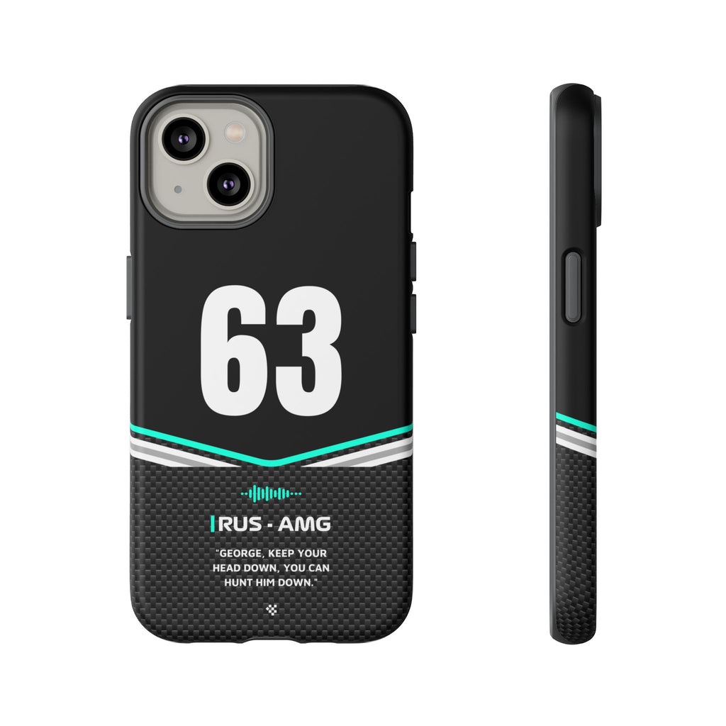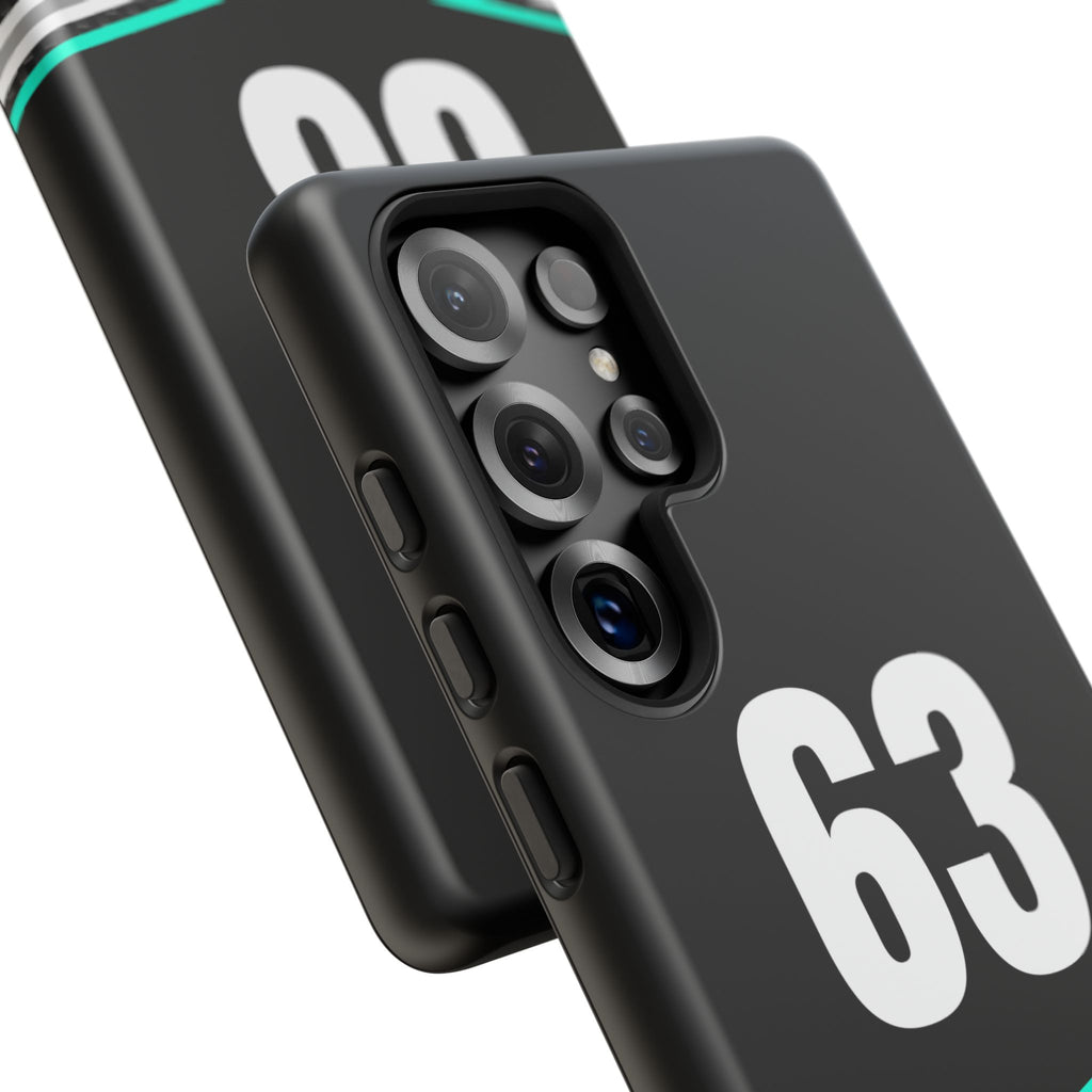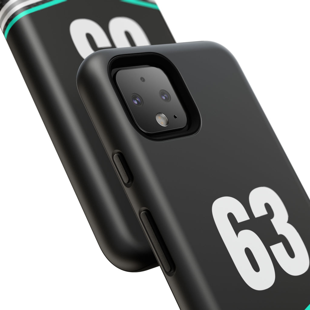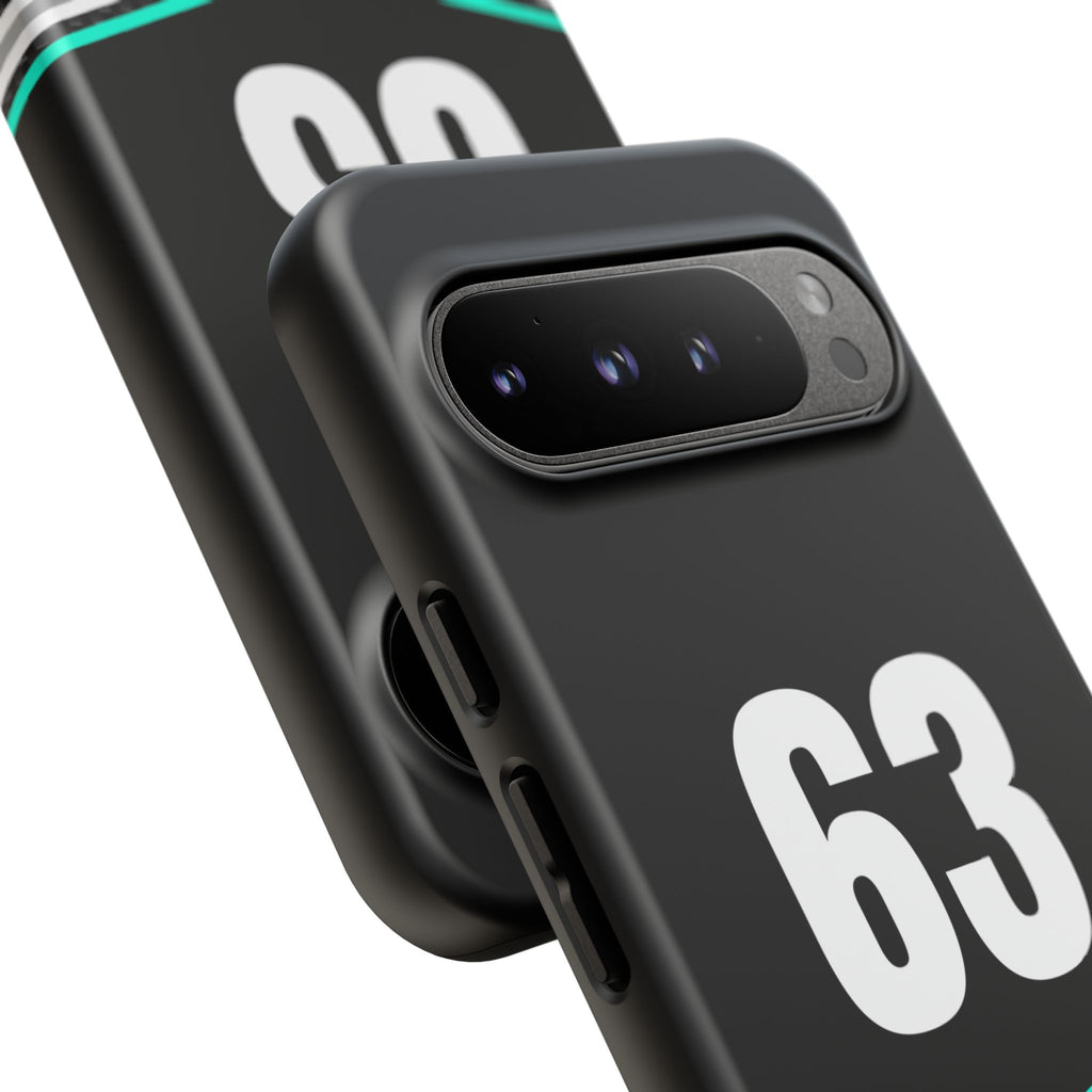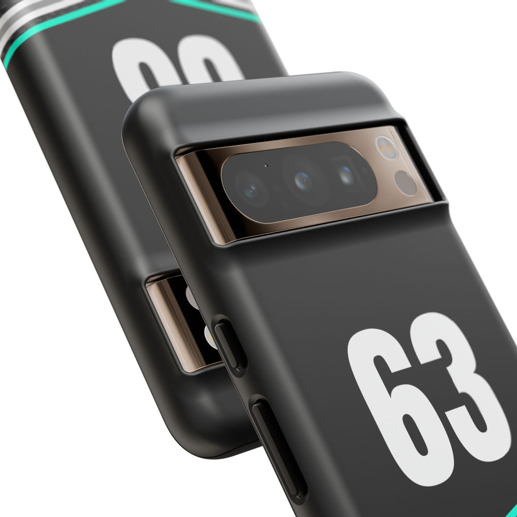 Support your favorite F1 driver with the exclusive George Russell F1 2025 Team Phone Case. It's the perfect accessory for every passionate Formula 1 and Russell fan. Featuring George's iconic #63 race number and the bold 2025 Mercedes-AMG Petronas team colors, this black phone case brings racing energy straight to your hand.