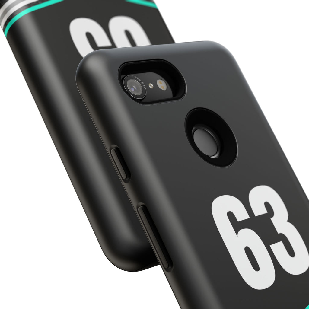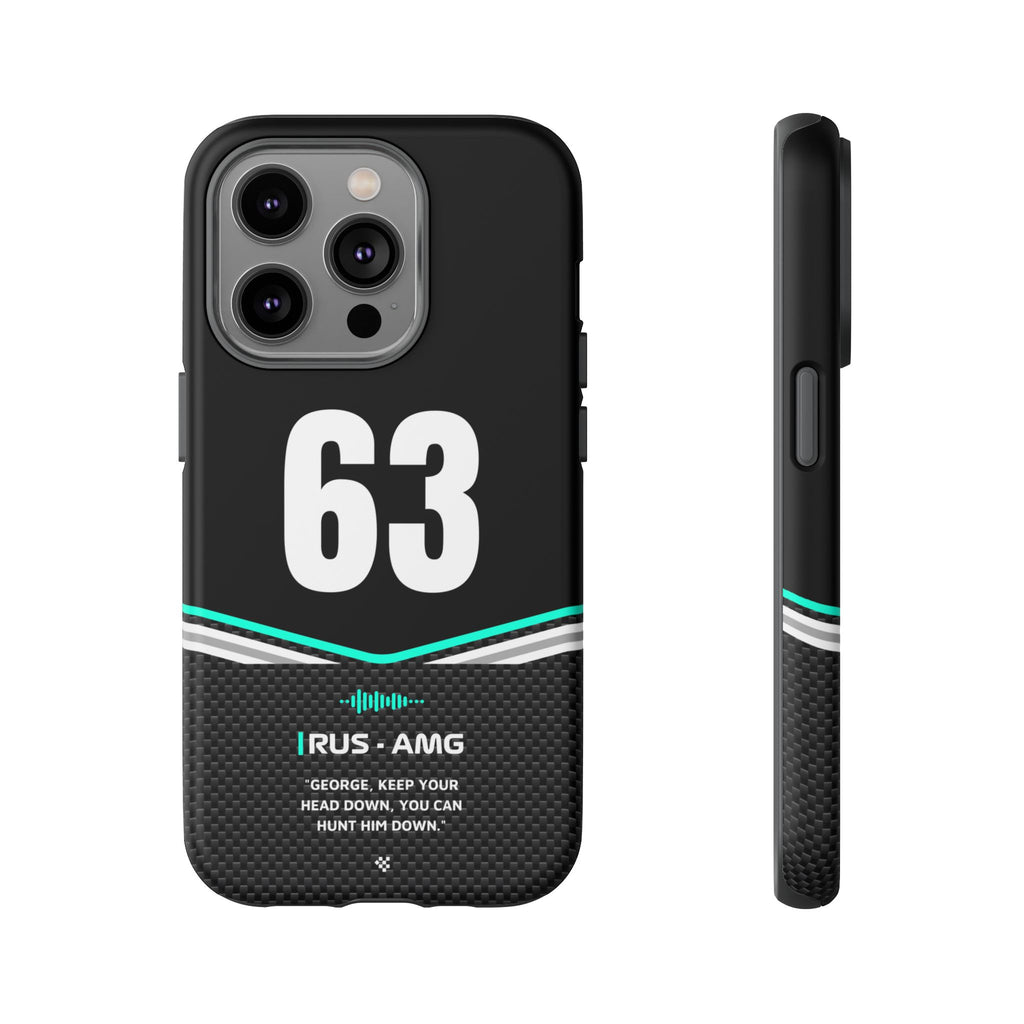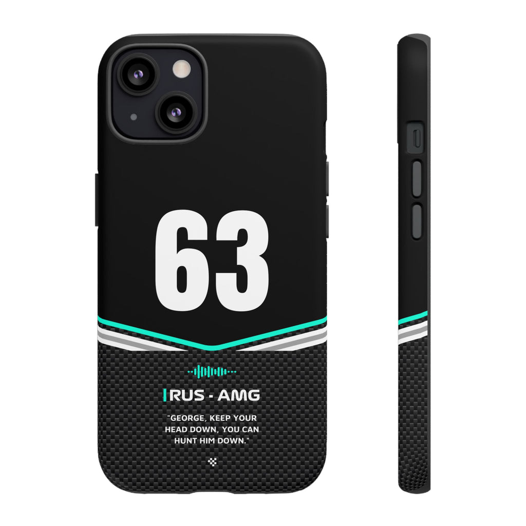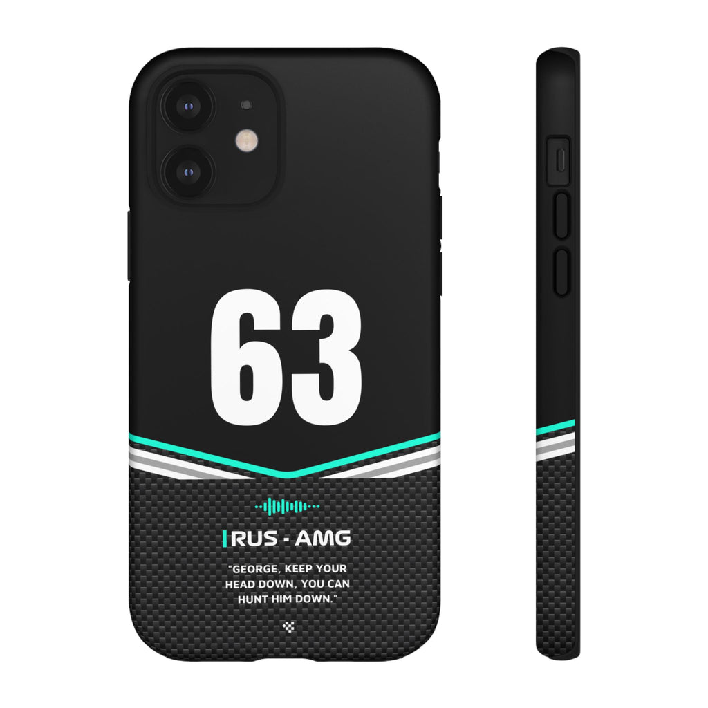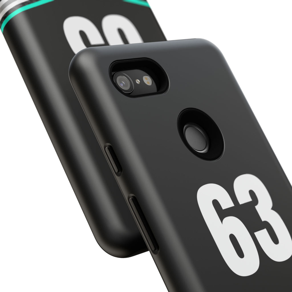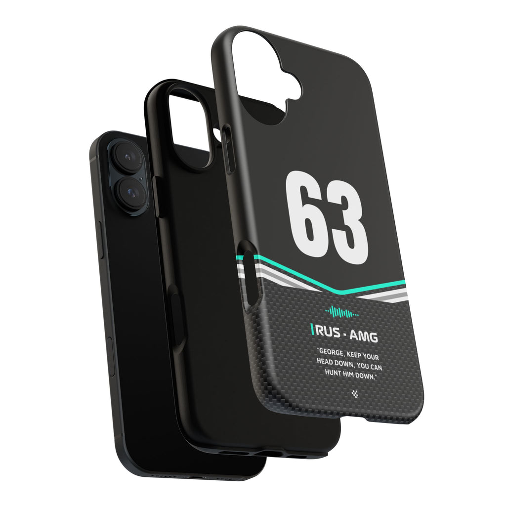 Support your favorite F1 driver with the exclusive George Russell F1 2025 Team Phone Case. It's the perfect accessory for every passionate Formula 1 and Russell fan. Featuring George's iconic #63 race number and the bold 2025 Mercedes-AMG Petronas team colors, this black phone case brings racing energy straight to your hand.