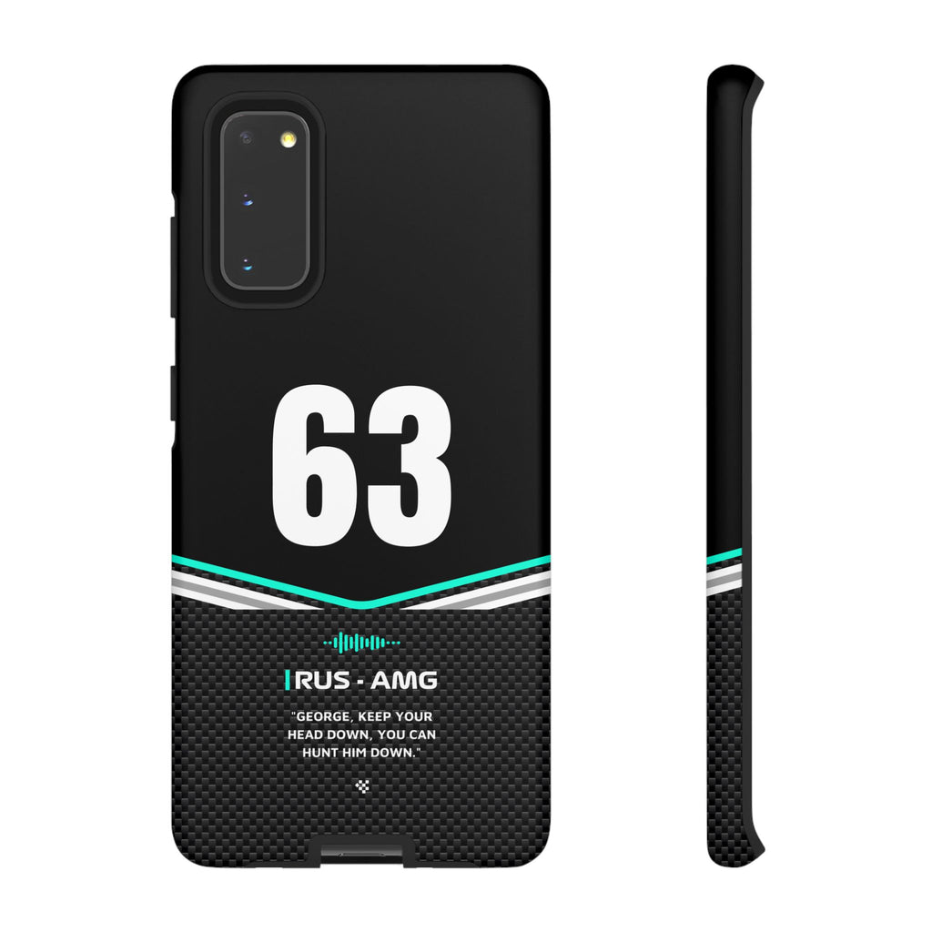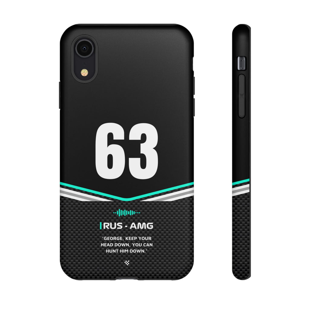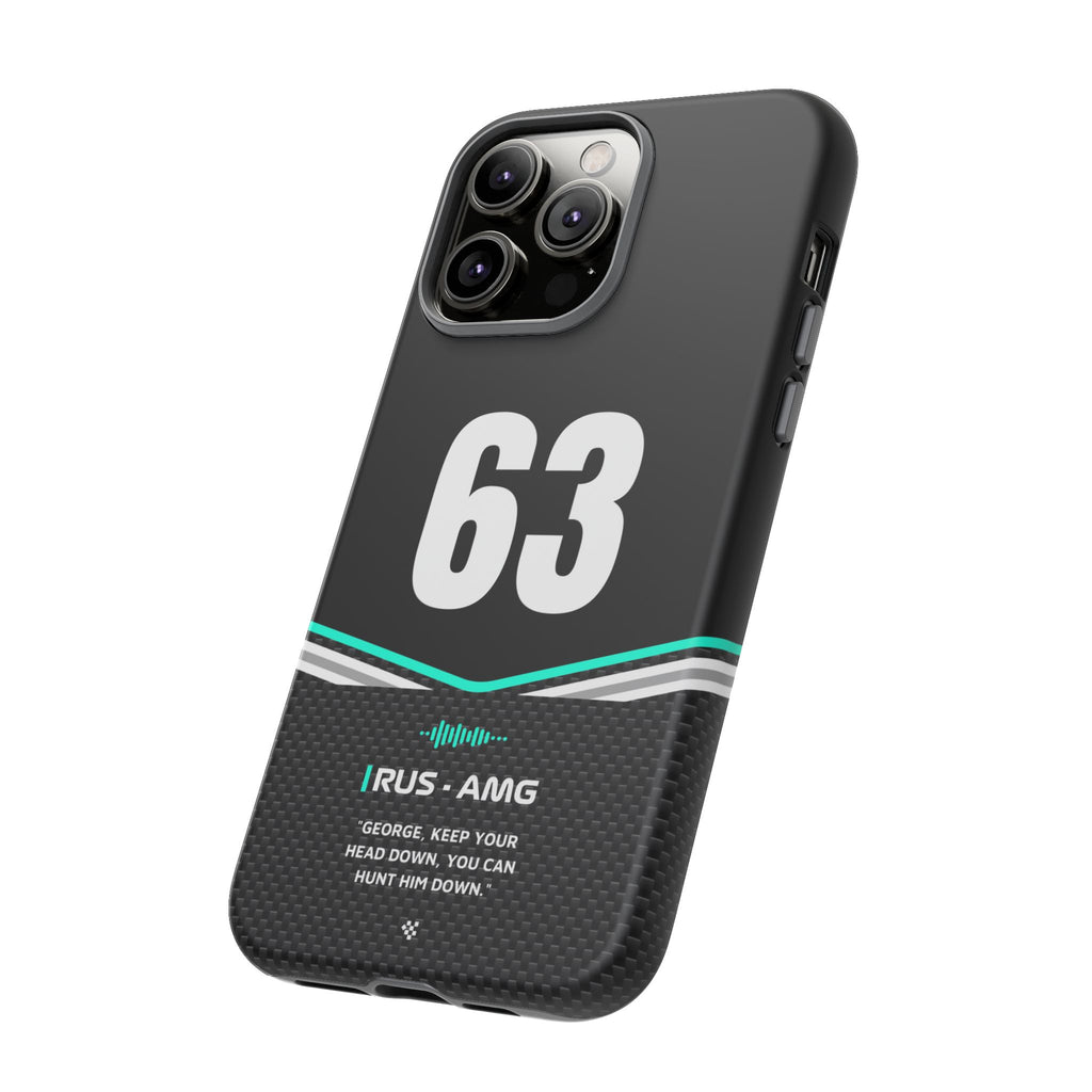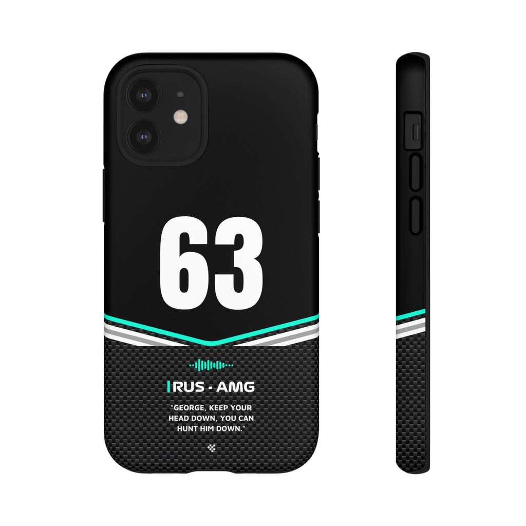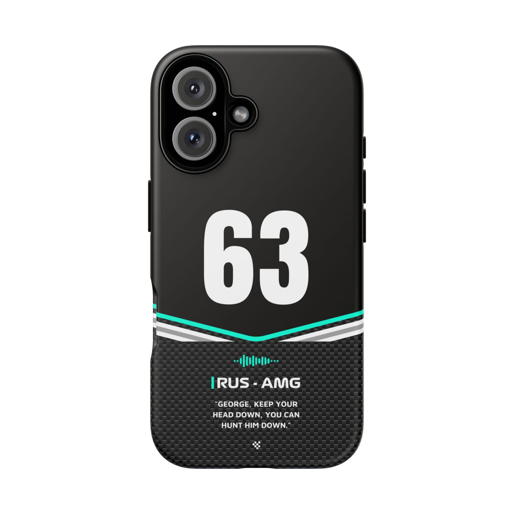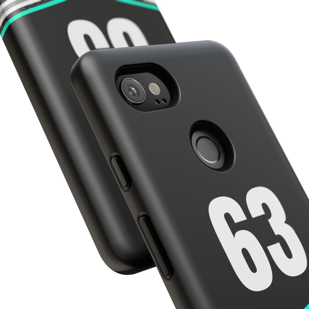 Support your favorite F1 driver with the exclusive George Russell F1 2025 Team Phone Case. It's the perfect accessory for every passionate Formula 1 and Russell fan. Featuring George's iconic #63 race number and the bold 2025 Mercedes-AMG Petronas team colors, this black phone case brings racing energy straight to your hand.