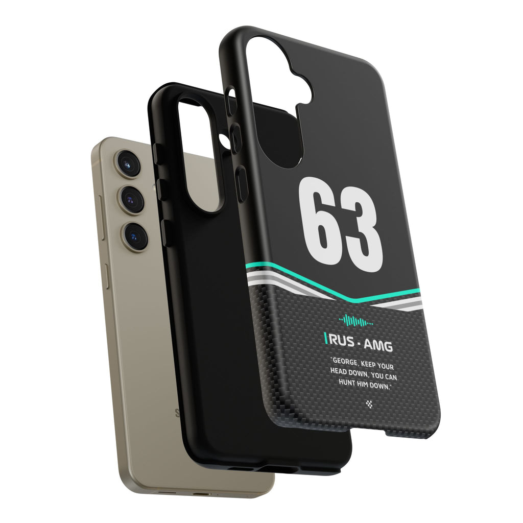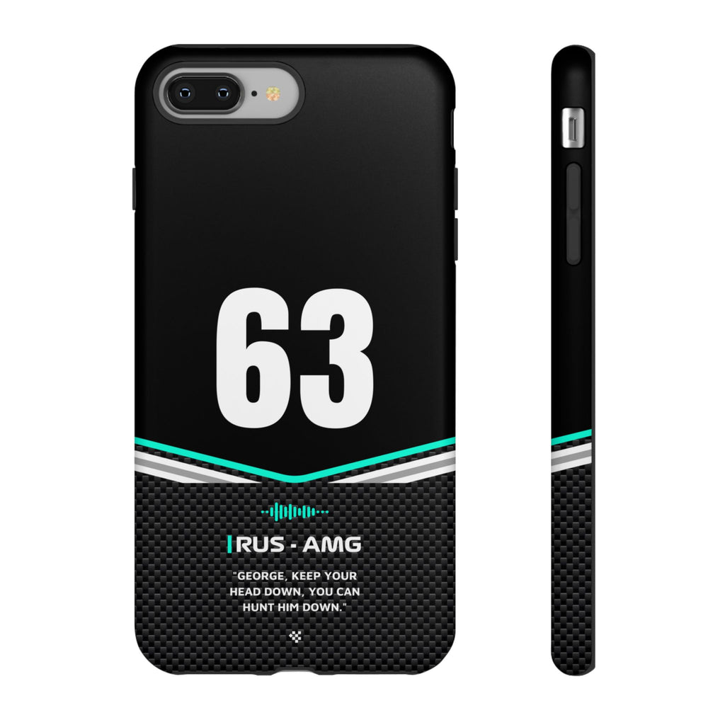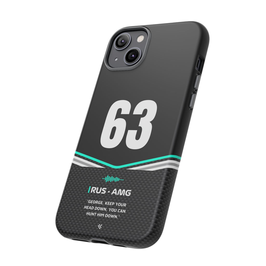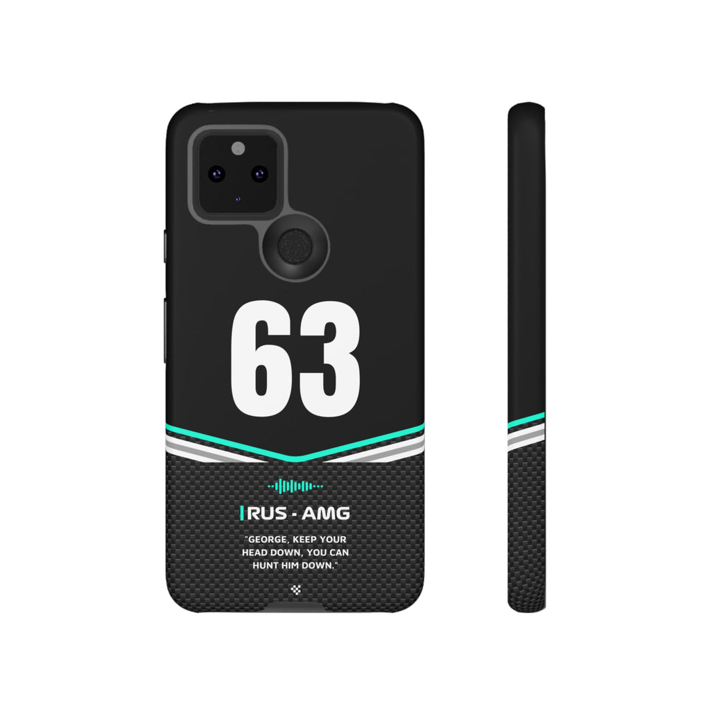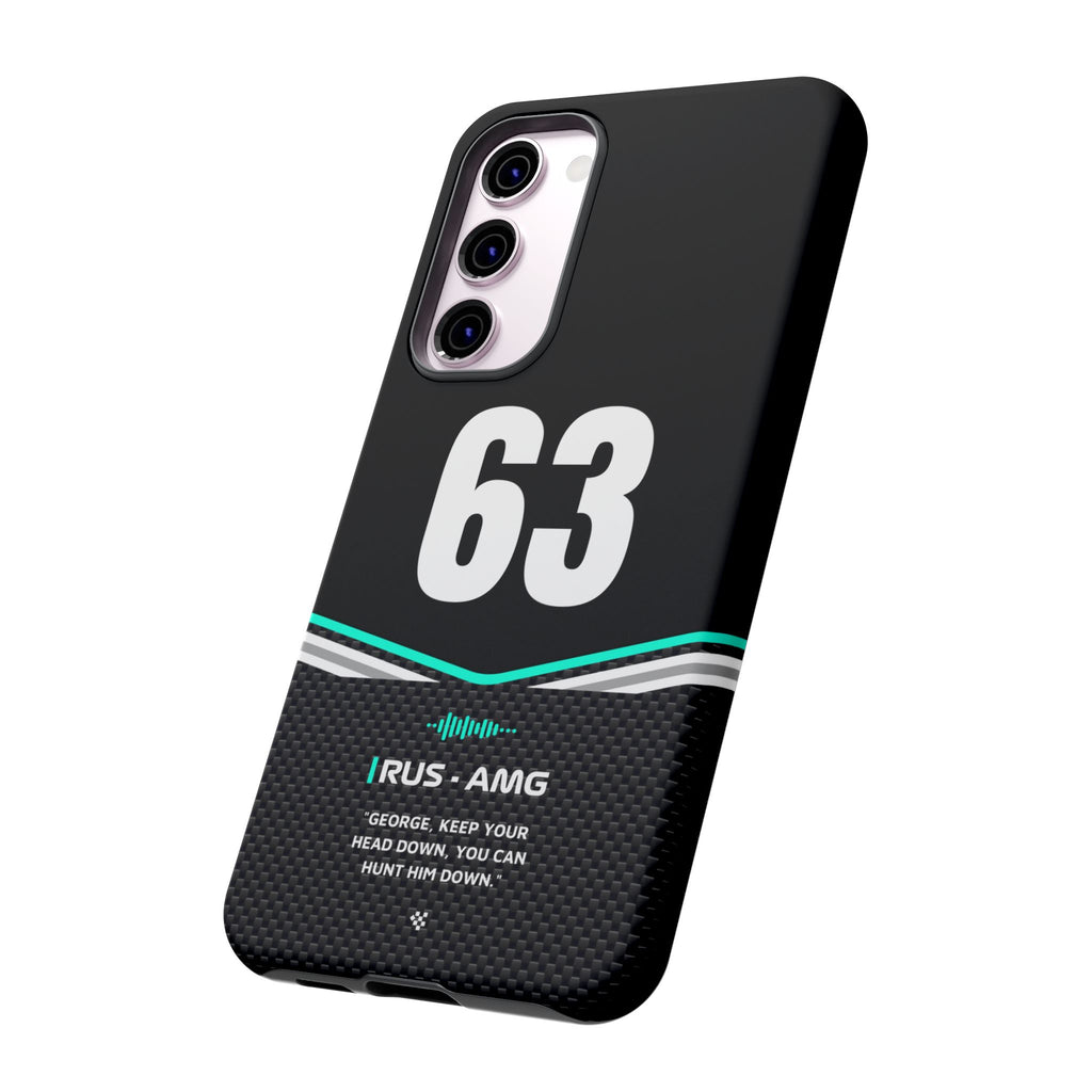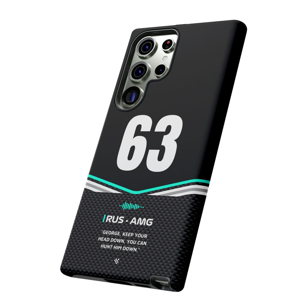 Support your favorite F1 driver with the exclusive George Russell F1 2025 Team Phone Case. It's the perfect accessory for every passionate Formula 1 and Russell fan. Featuring George's iconic #63 race number and the bold 2025 Mercedes-AMG Petronas team colors, this black phone case brings racing energy straight to your hand.