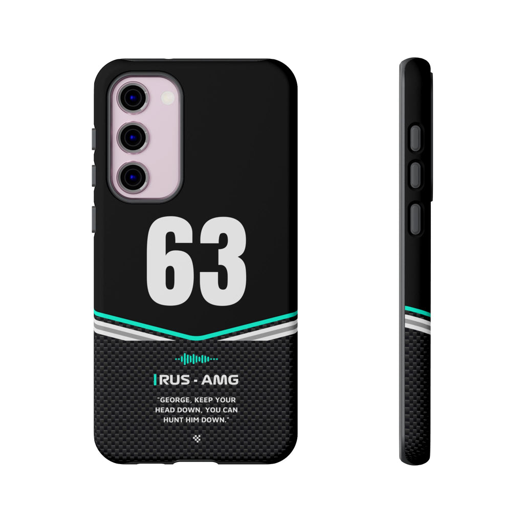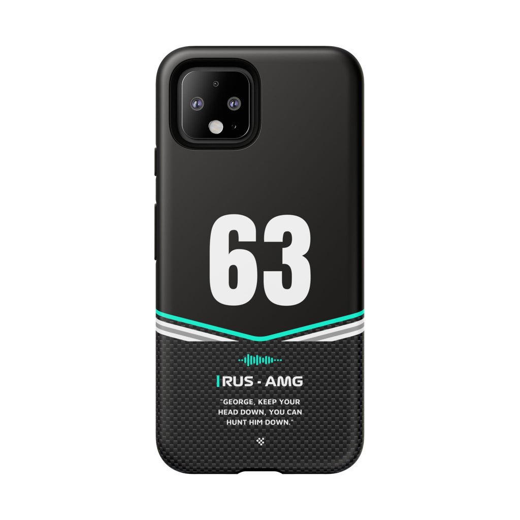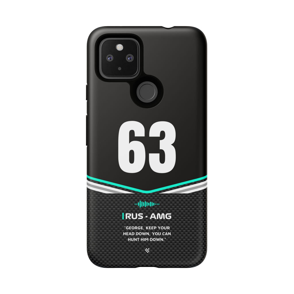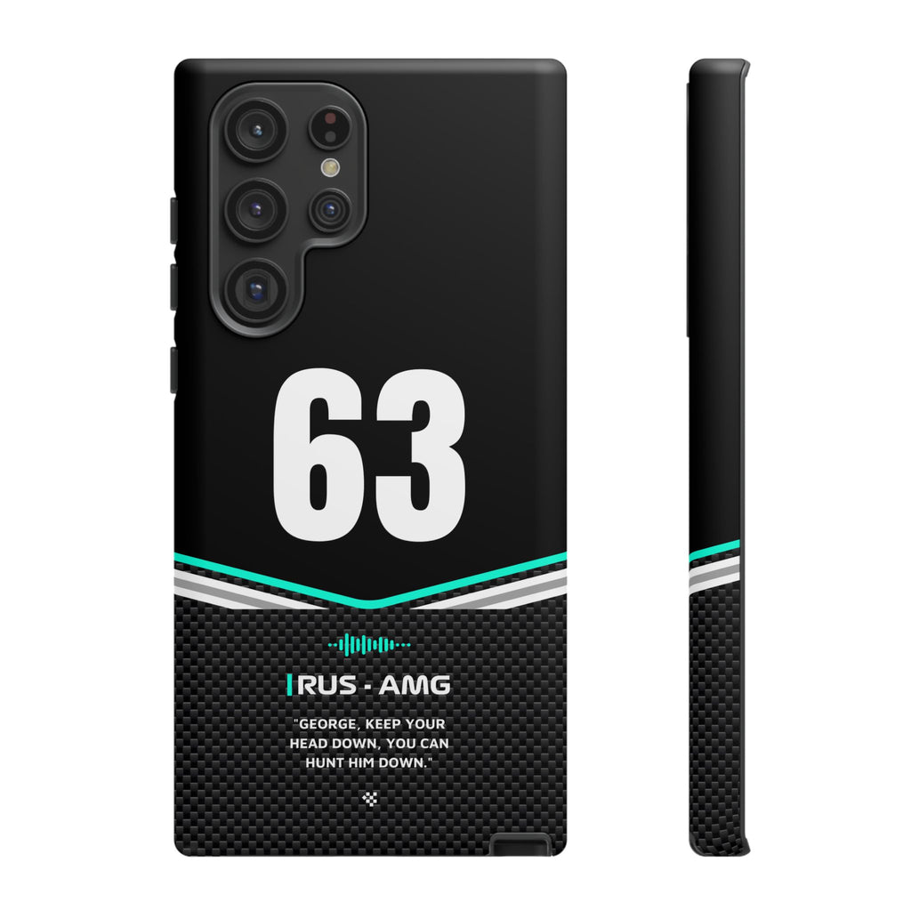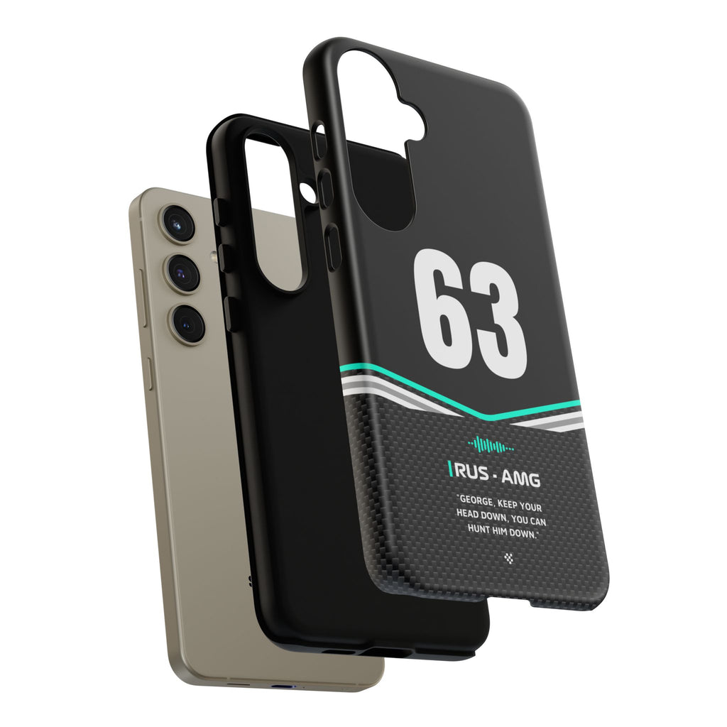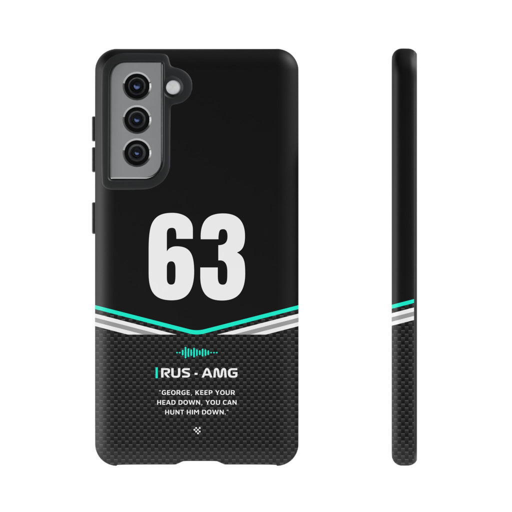 Support your favorite F1 driver with the exclusive George Russell F1 2025 Team Phone Case. It's the perfect accessory for every passionate Formula 1 and Russell fan. Featuring George's iconic #63 race number and the bold 2025 Mercedes-AMG Petronas team colors, this black phone case brings racing energy straight to your hand.
