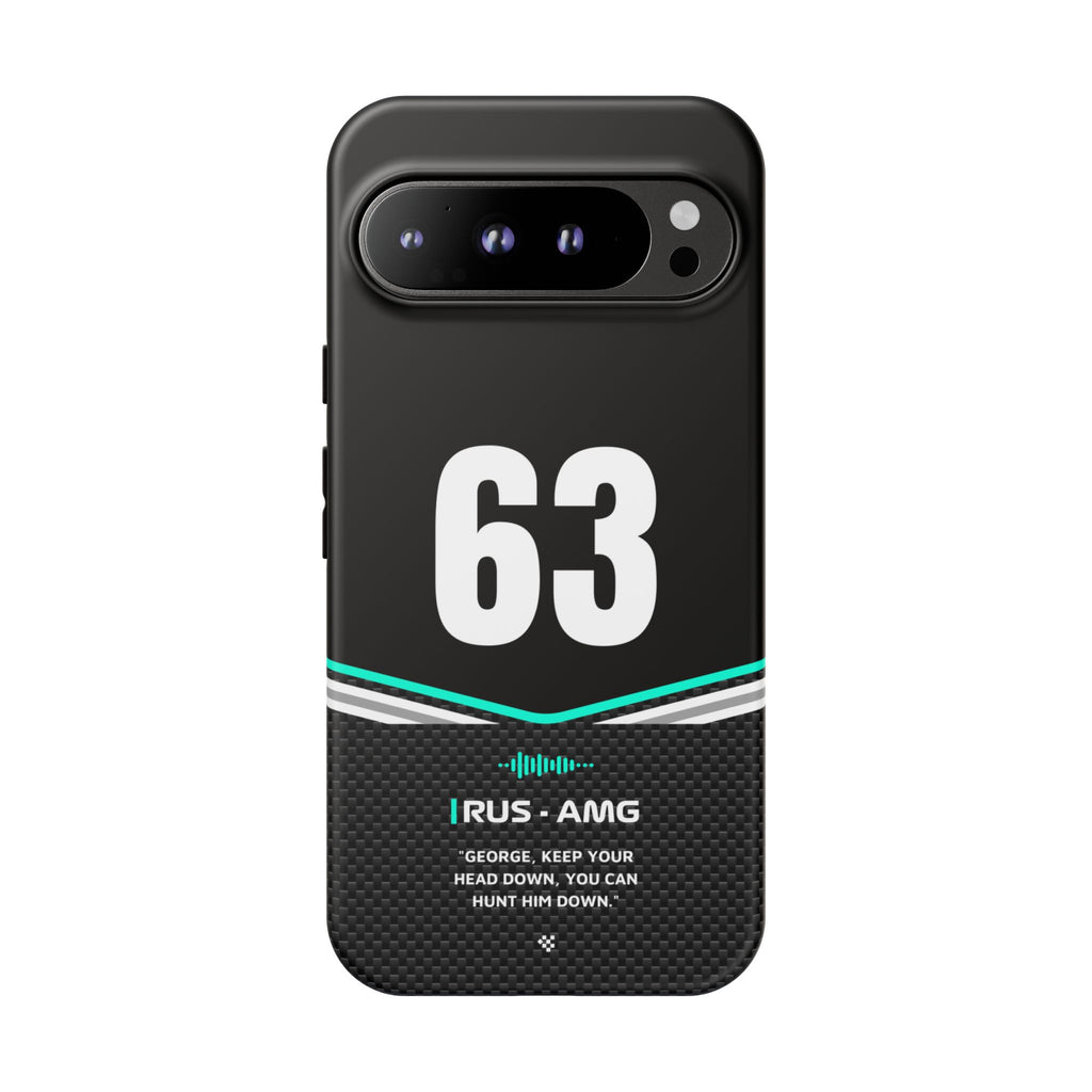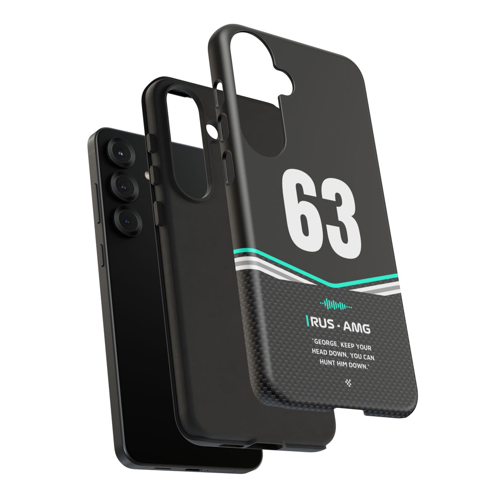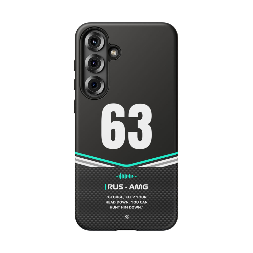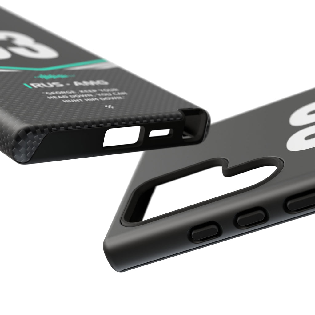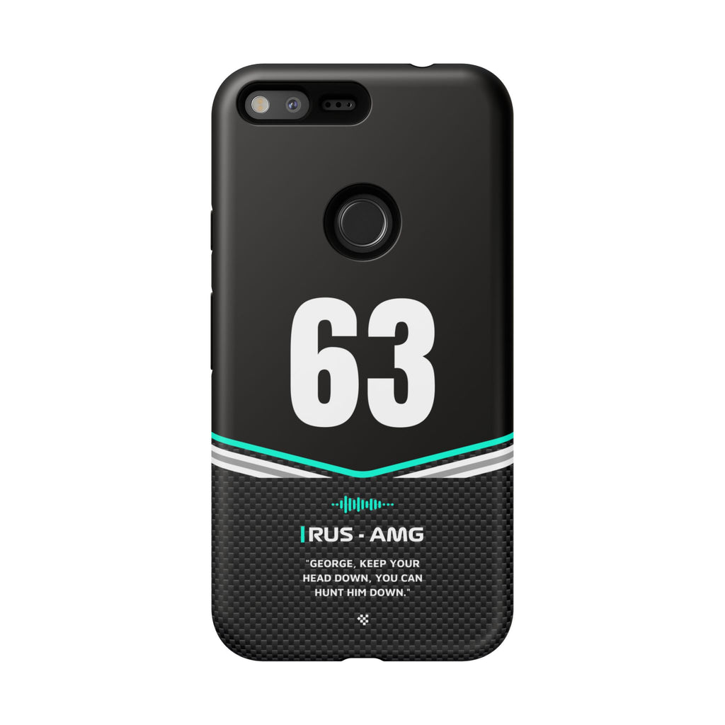 Support your favorite F1 driver with the exclusive George Russell F1 2025 Team Phone Case. It's the perfect accessory for every passionate Formula 1 and Russell fan. Featuring George's iconic #63 race number and the bold 2025 Mercedes-AMG Petronas team colors, this black phone case brings racing energy straight to your hand.