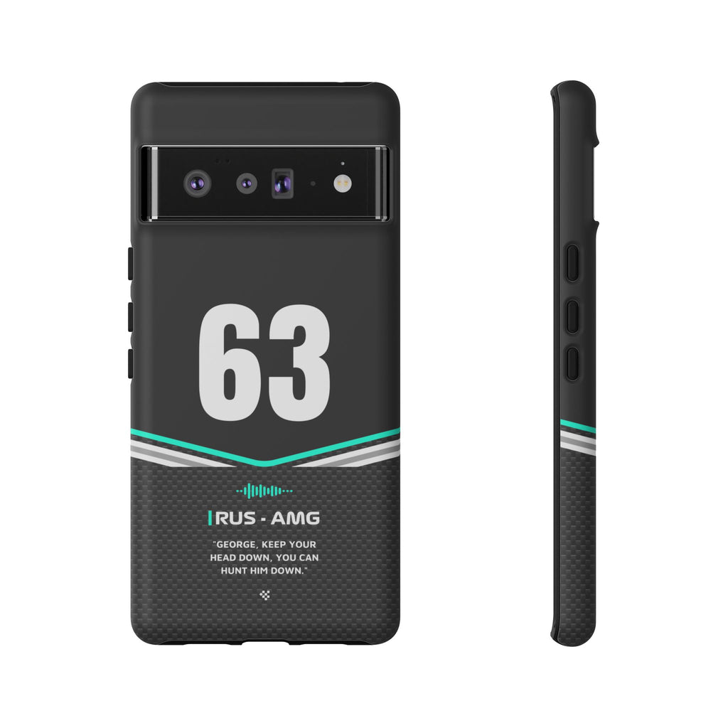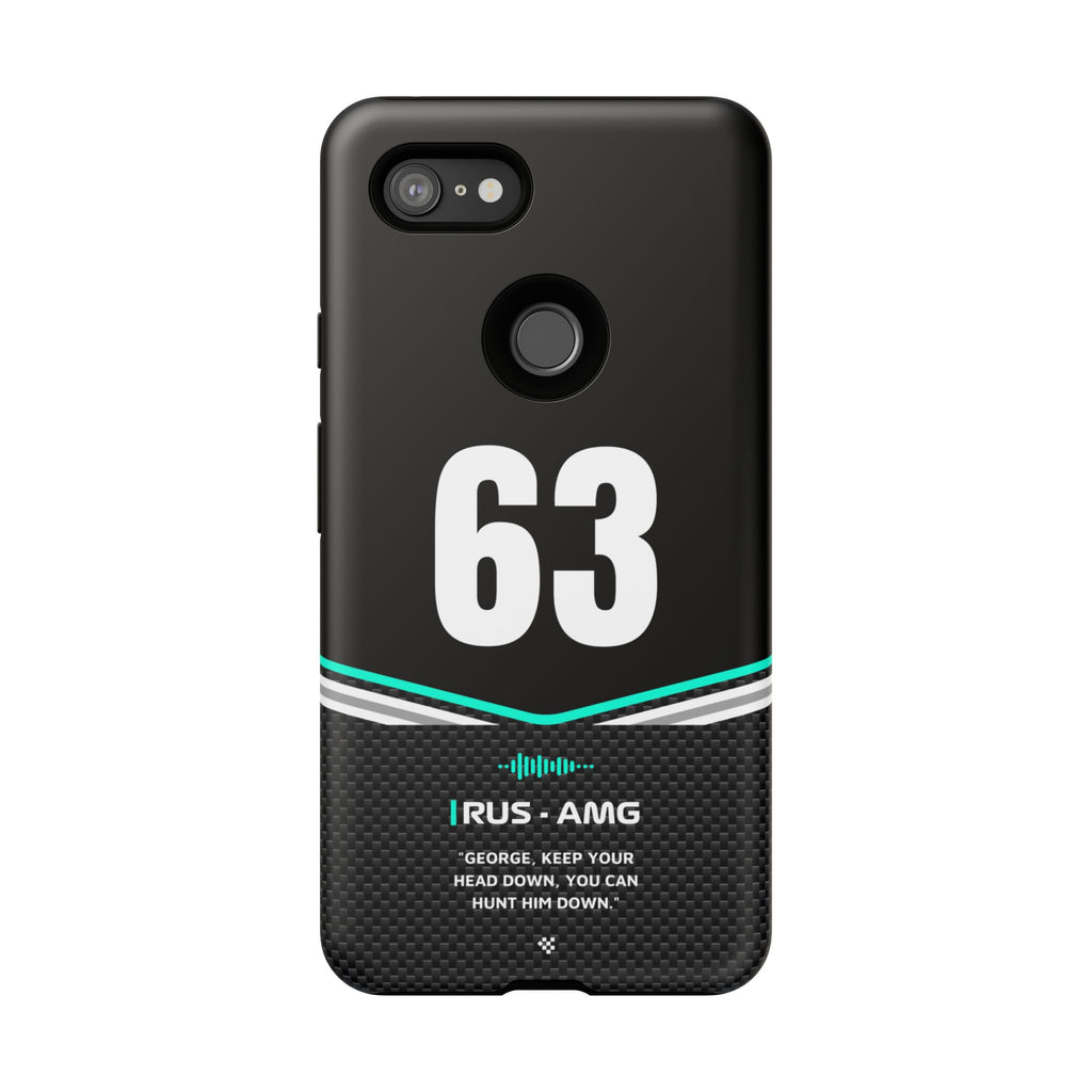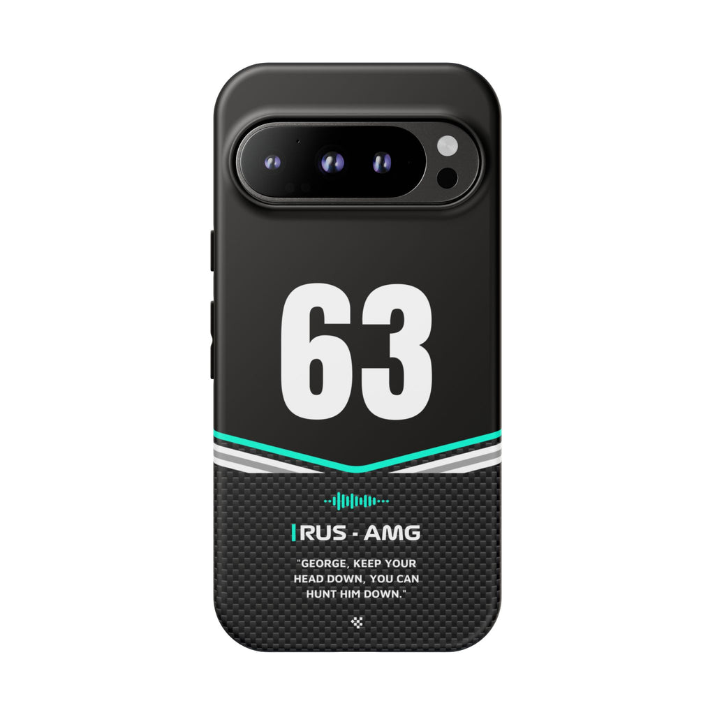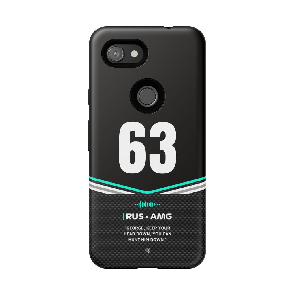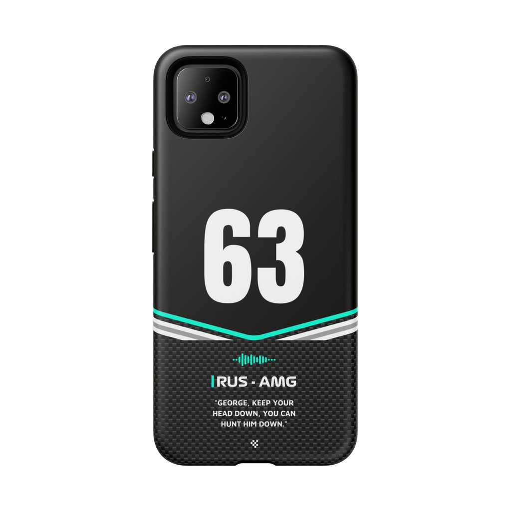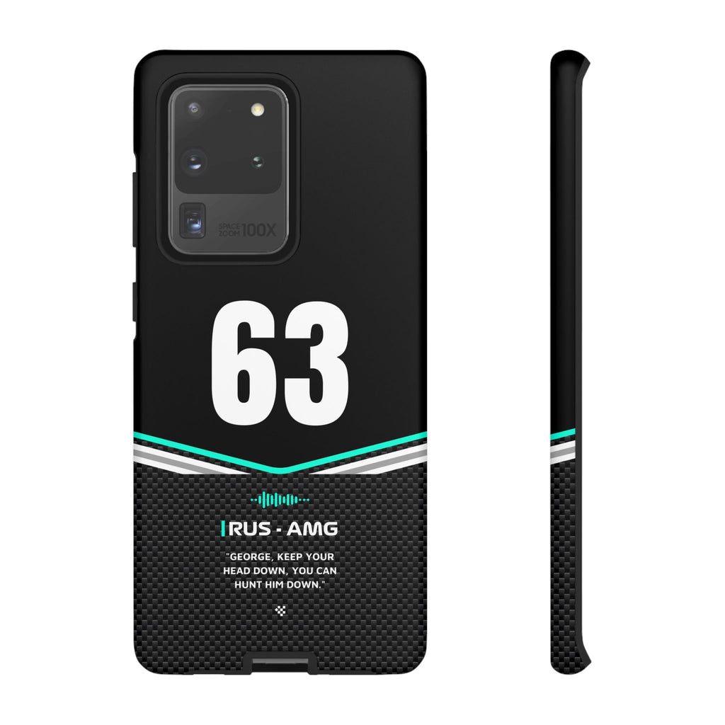 Support your favorite F1 driver with the exclusive George Russell F1 2025 Team Phone Case. It's the perfect accessory for every passionate Formula 1 and Russell fan. Featuring George's iconic #63 race number and the bold 2025 Mercedes-AMG Petronas team colors, this black phone case brings racing energy straight to your hand.