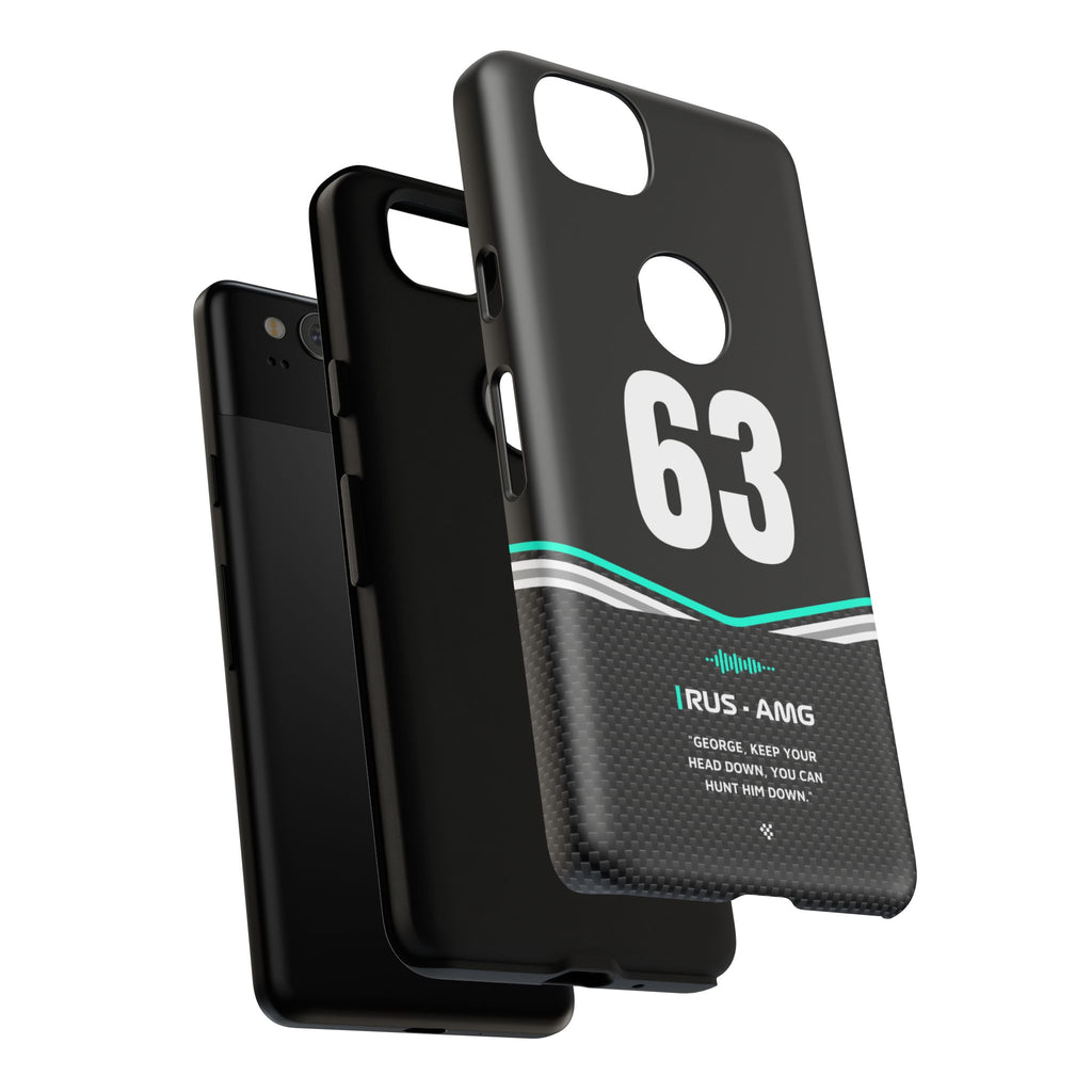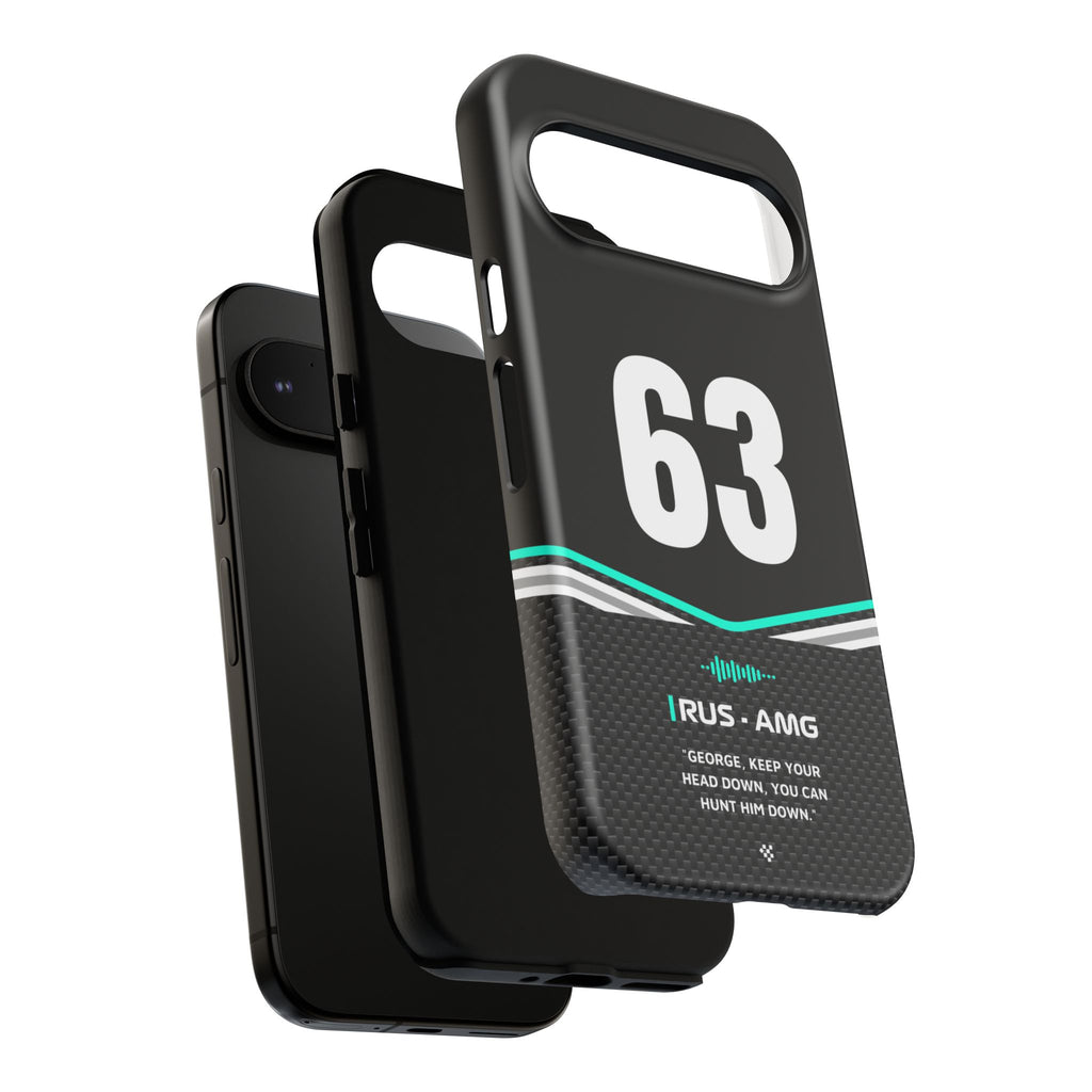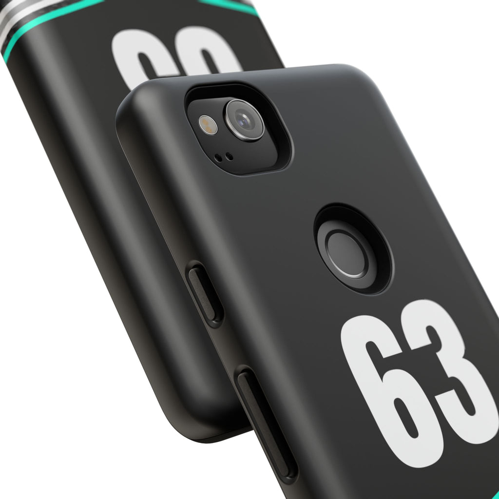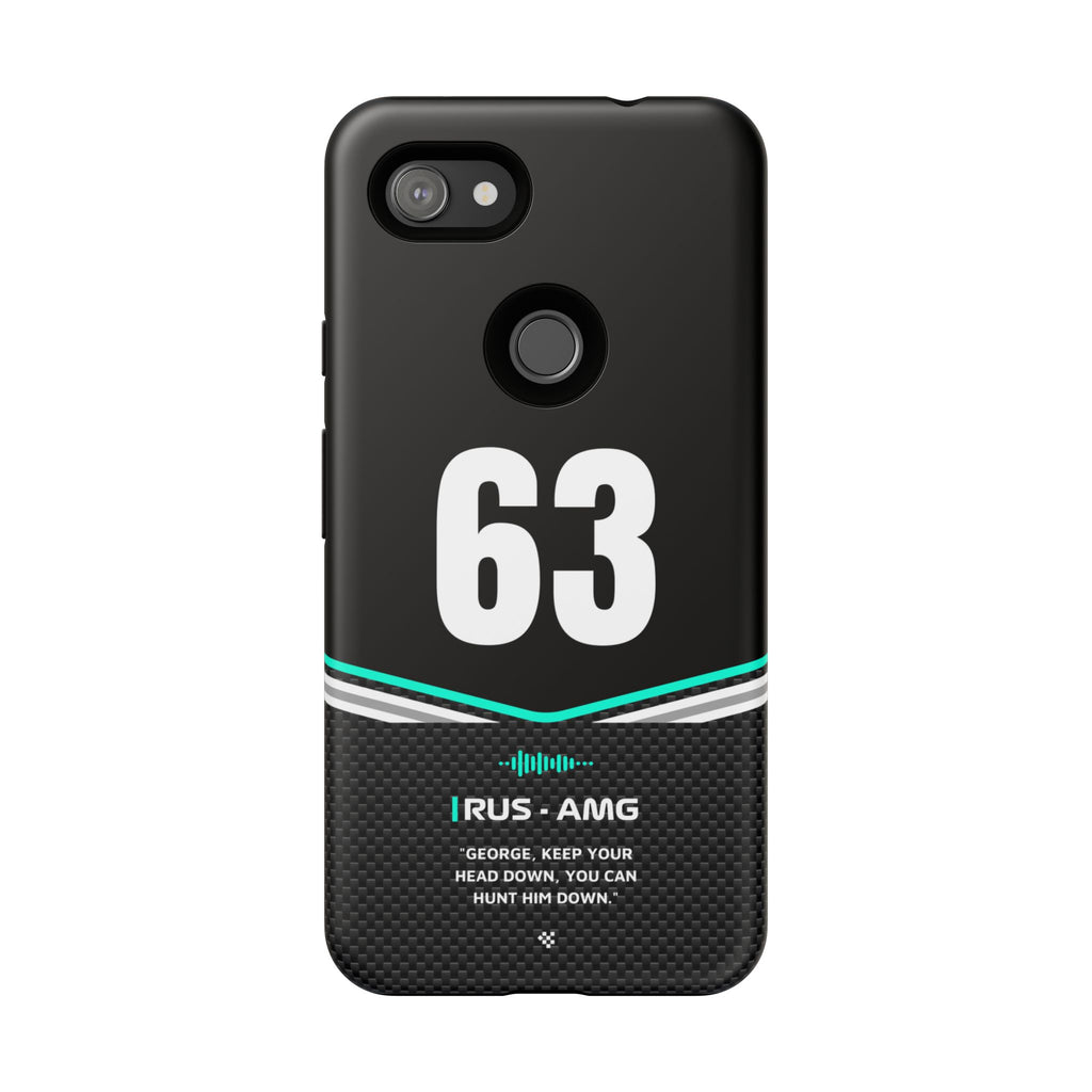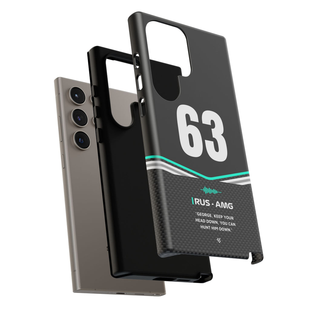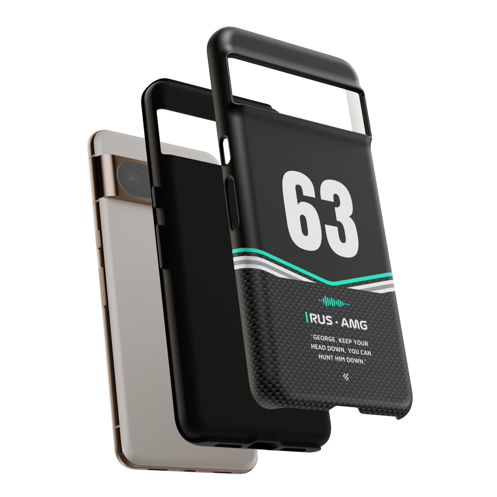 Support your favorite F1 driver with the exclusive George Russell F1 2025 Team Phone Case. It's the perfect accessory for every passionate Formula 1 and Russell fan. Featuring George's iconic #63 race number and the bold 2025 Mercedes-AMG Petronas team colors, this black phone case brings racing energy straight to your hand.