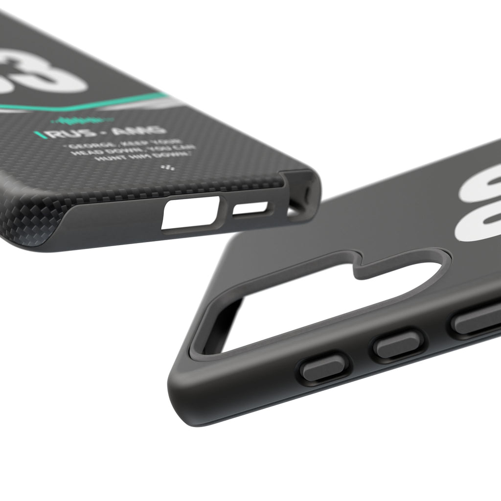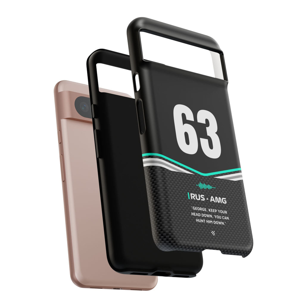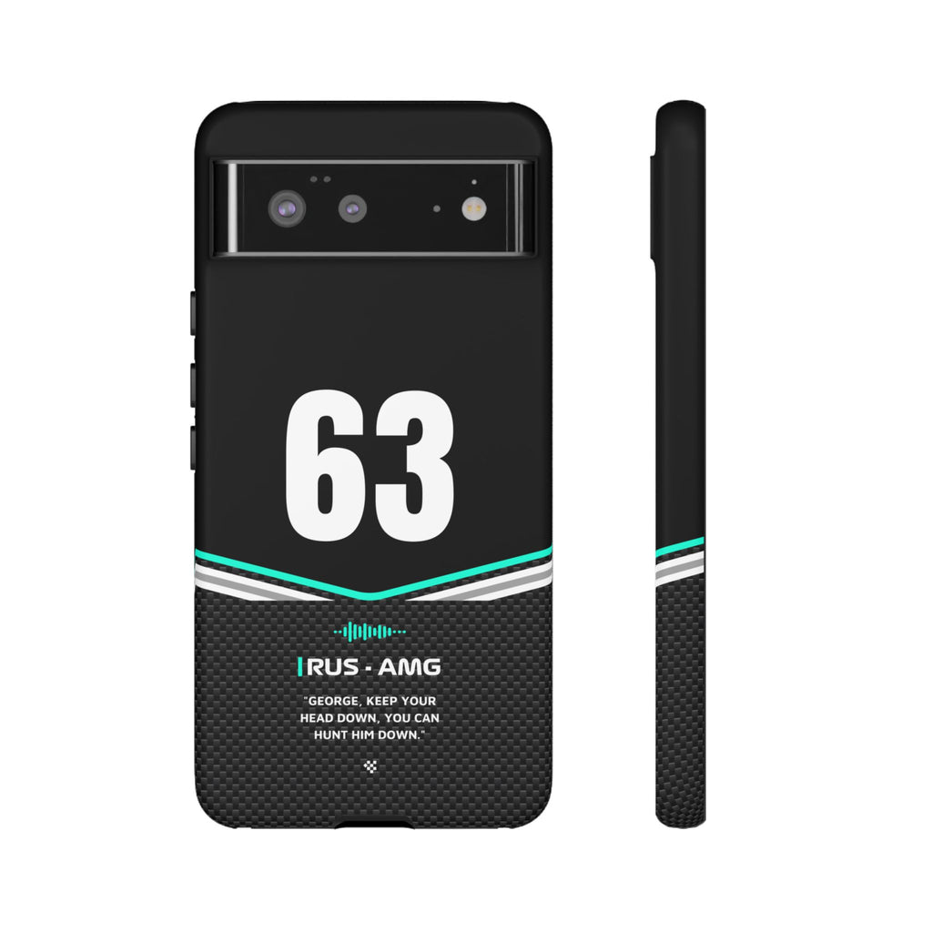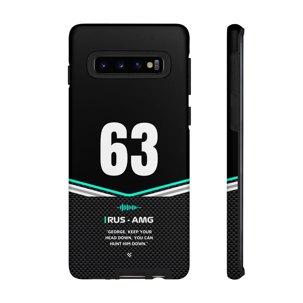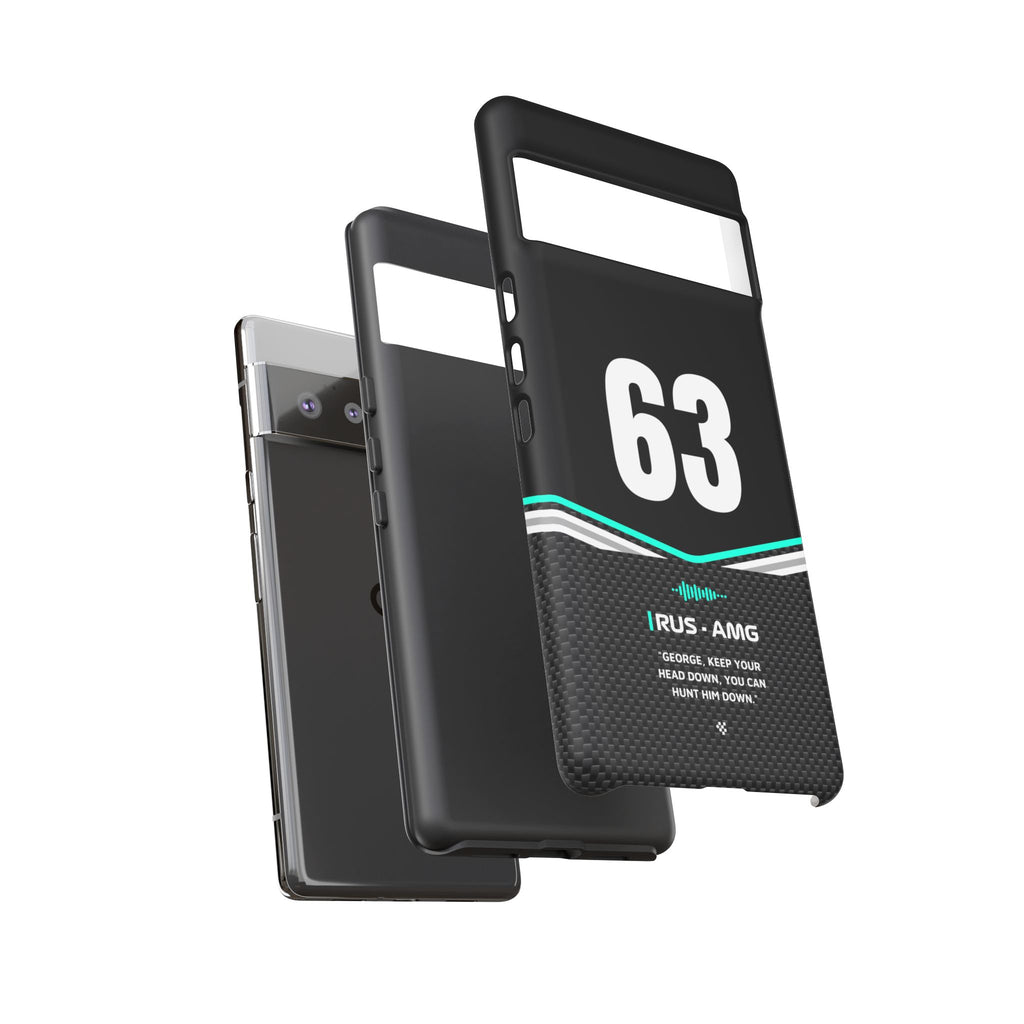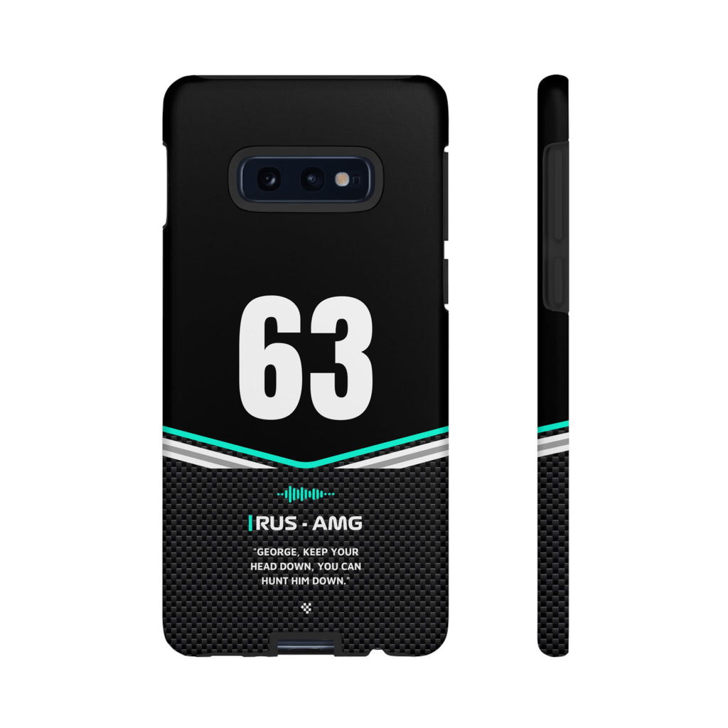 Support your favorite F1 driver with the exclusive George Russell F1 2025 Team Phone Case. It's the perfect accessory for every passionate Formula 1 and Russell fan. Featuring George's iconic #63 race number and the bold 2025 Mercedes-AMG Petronas team colors, this black phone case brings racing energy straight to your hand.