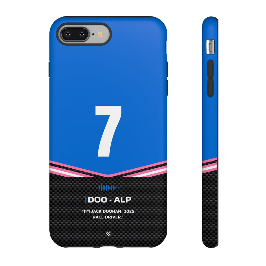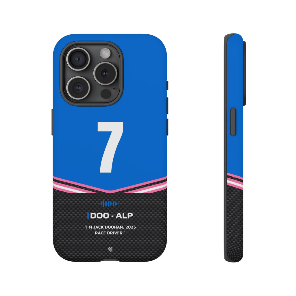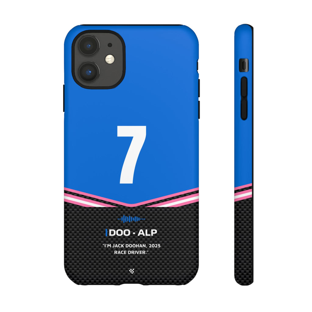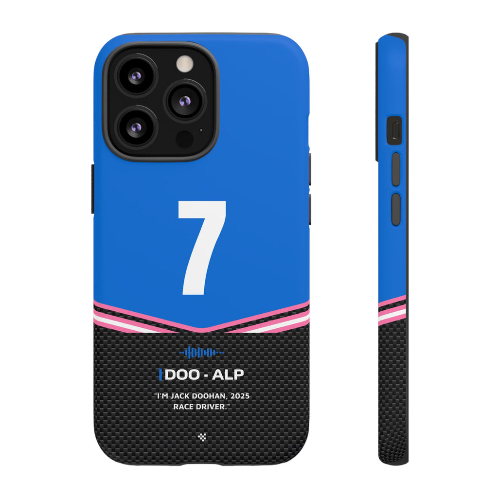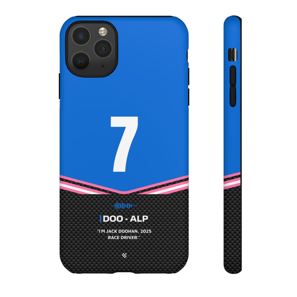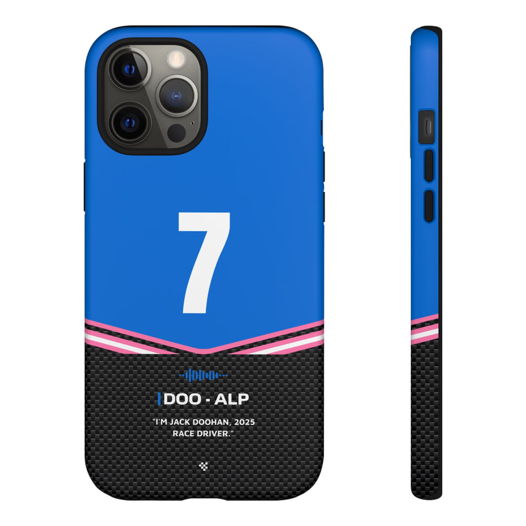 Get ready to support Jack during the 2025 Formula 1 season with the Jack Doohan F1 2025 Team Phone Case. Designed for true Formula 1 fans, this case features his iconic #7 race car number alongside the striking 2025 Alpine colors. But that's not all - it also proudly showcases an iconic text that you can personalize. Whether you're cheering from the grandstands or watching from home, this premium phone case is a must-have for every Doohan fan.