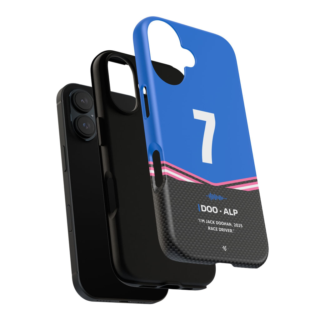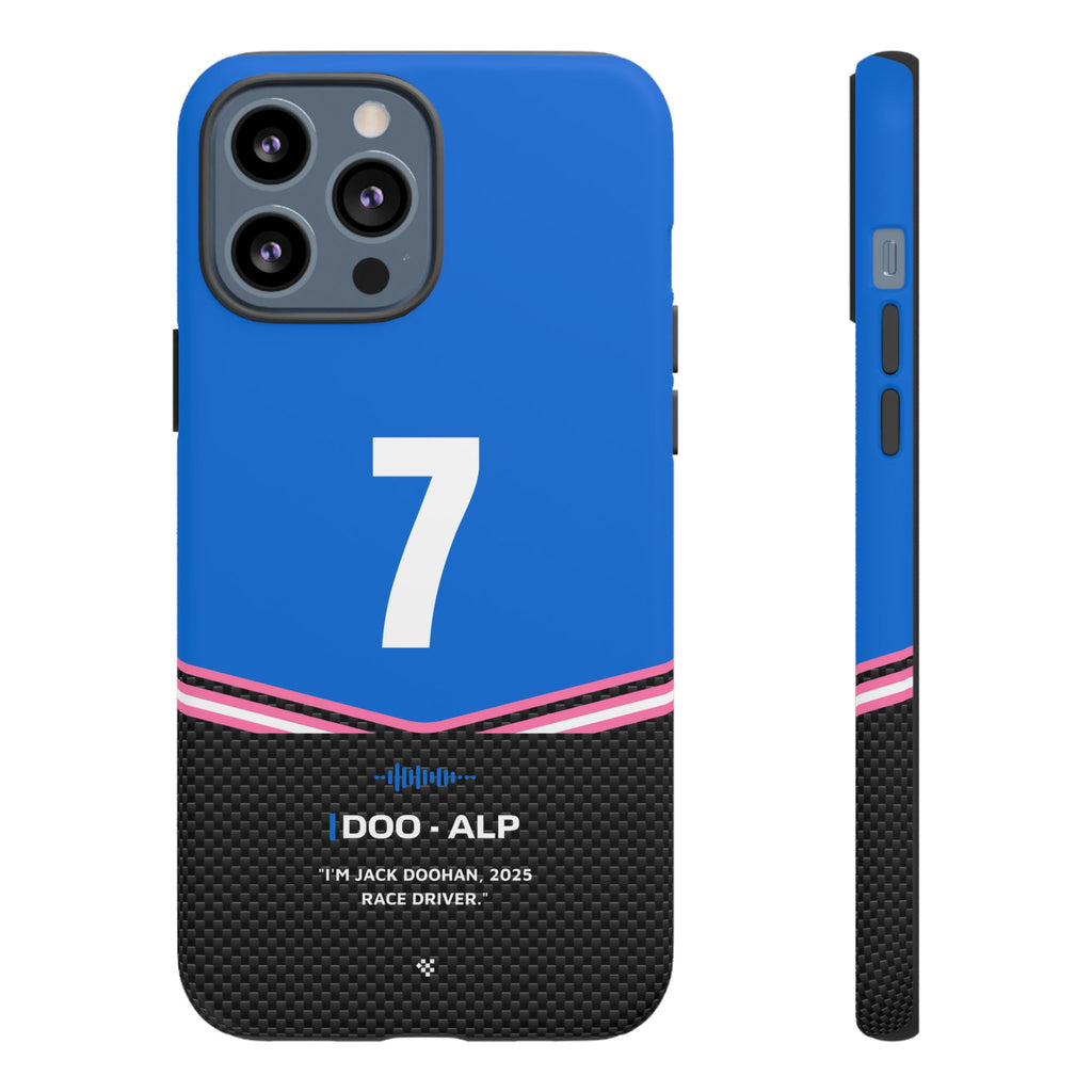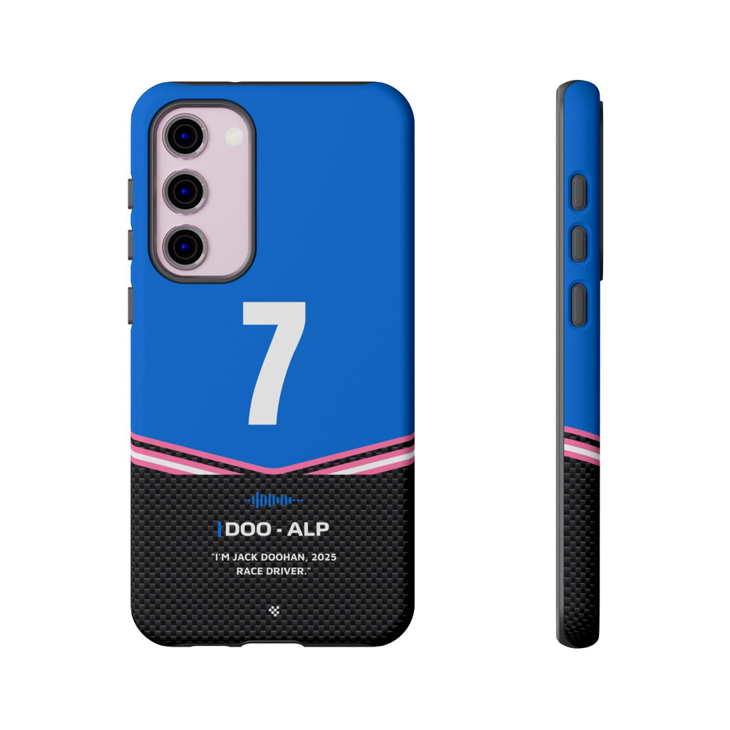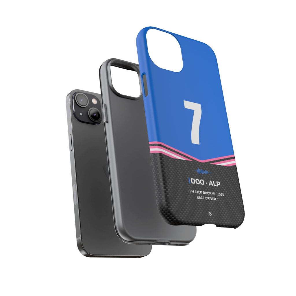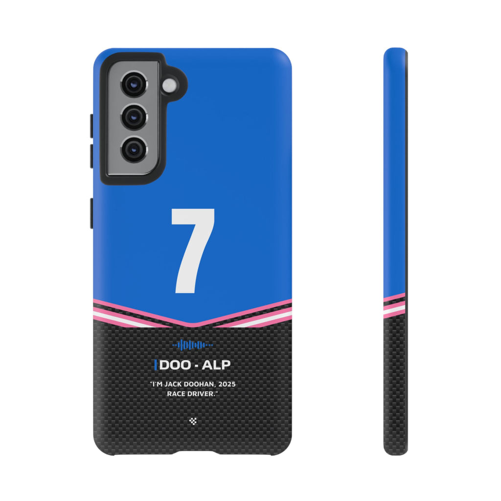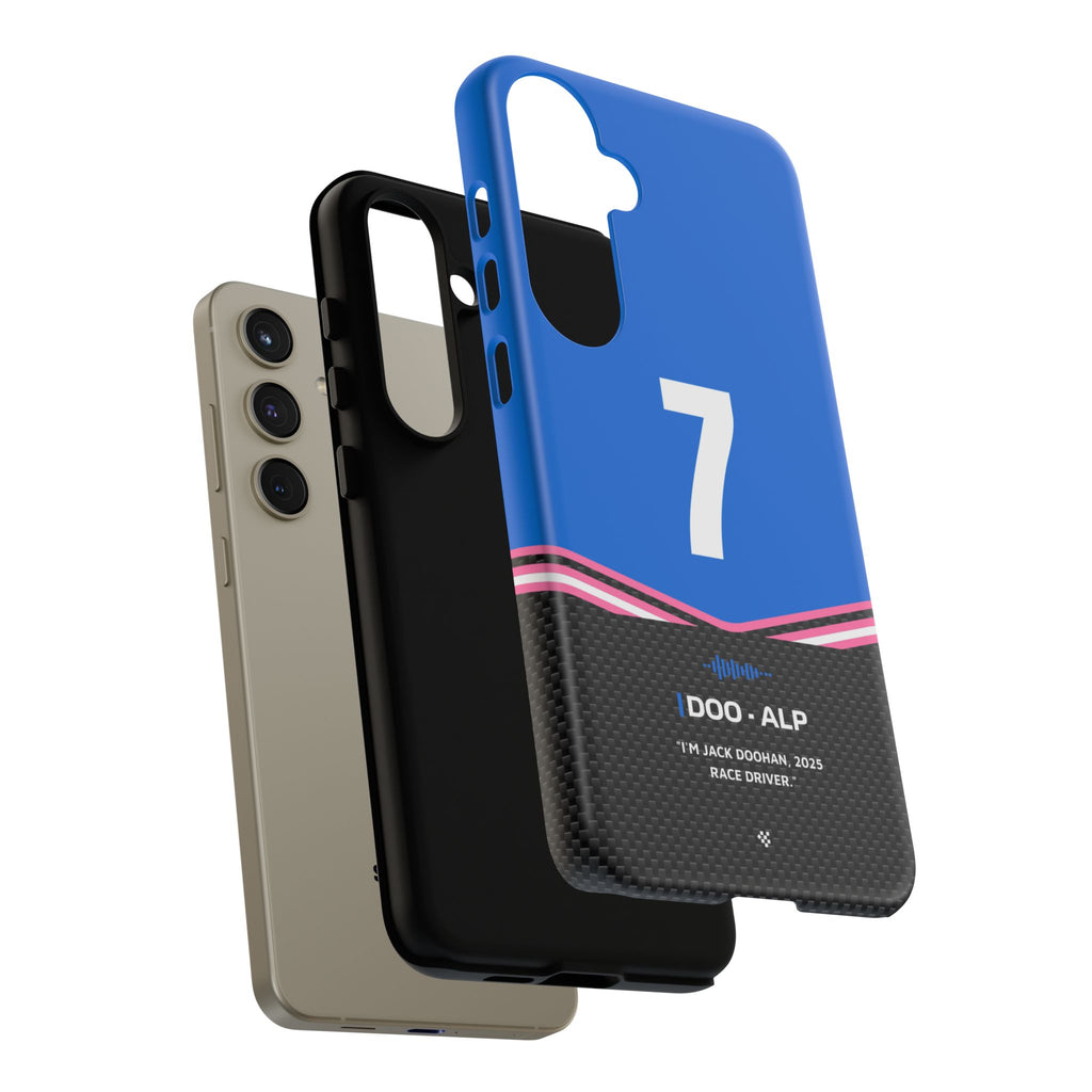 Get ready to support Jack during the 2025 Formula 1 season with the Jack Doohan F1 2025 Team Phone Case. Designed for true Formula 1 fans, this case features his iconic #7 race car number alongside the striking 2025 Alpine colors. But that's not all - it also proudly showcases an iconic text that you can personalize. Whether you're cheering from the grandstands or watching from home, this premium phone case is a must-have for every Doohan fan.