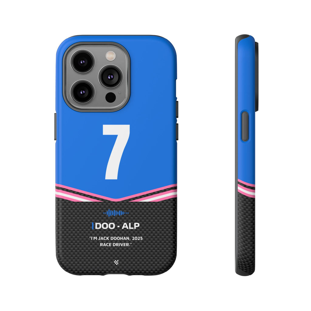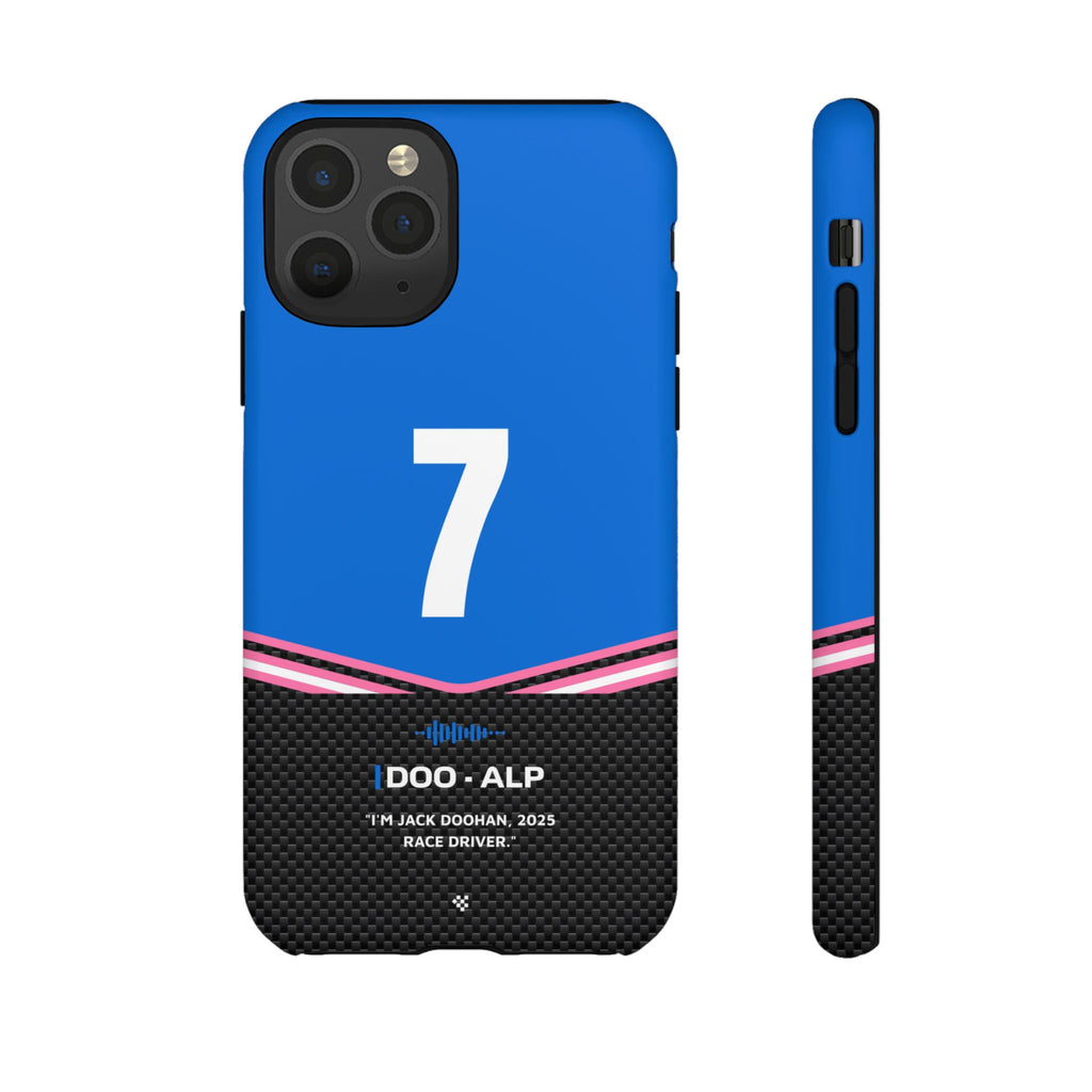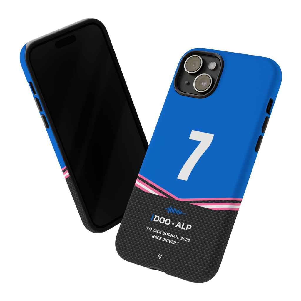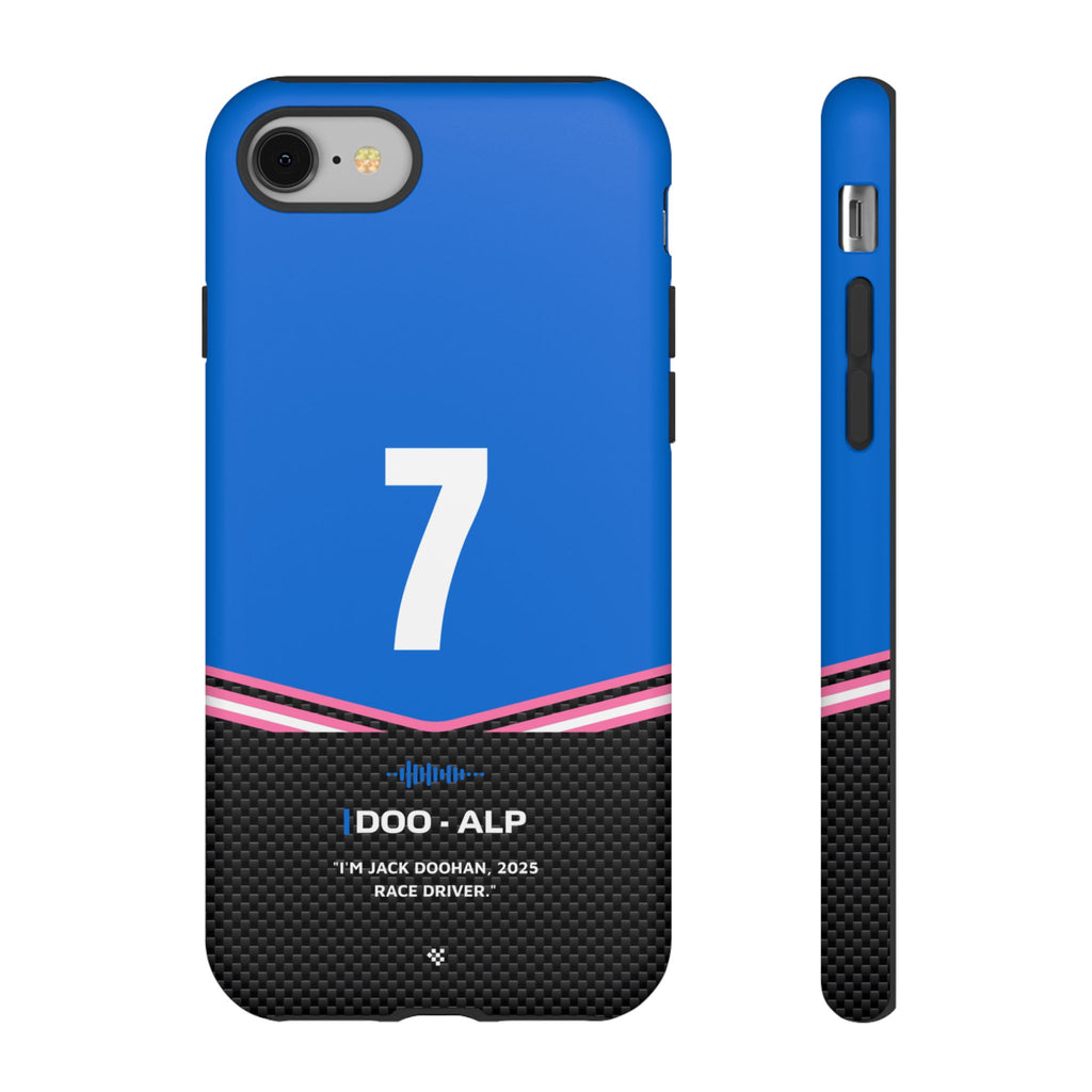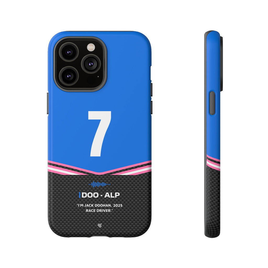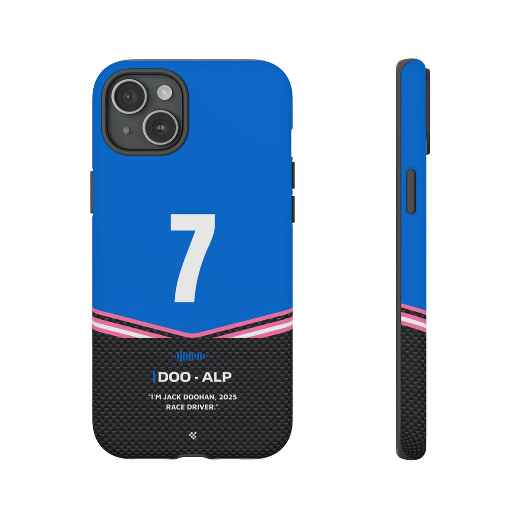 Get ready to support Jack during the 2025 Formula 1 season with the Jack Doohan F1 2025 Team Phone Case. Designed for true Formula 1 fans, this case features his iconic #7 race car number alongside the striking 2025 Alpine colors. But that's not all - it also proudly showcases an iconic text that you can personalize. Whether you're cheering from the grandstands or watching from home, this premium phone case is a must-have for every Doohan fan.