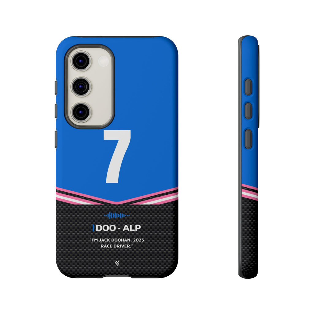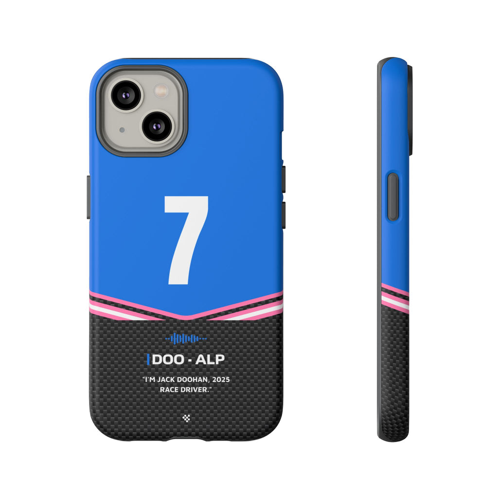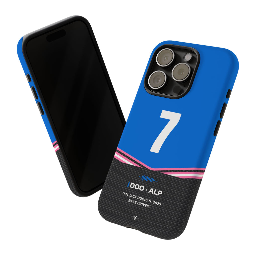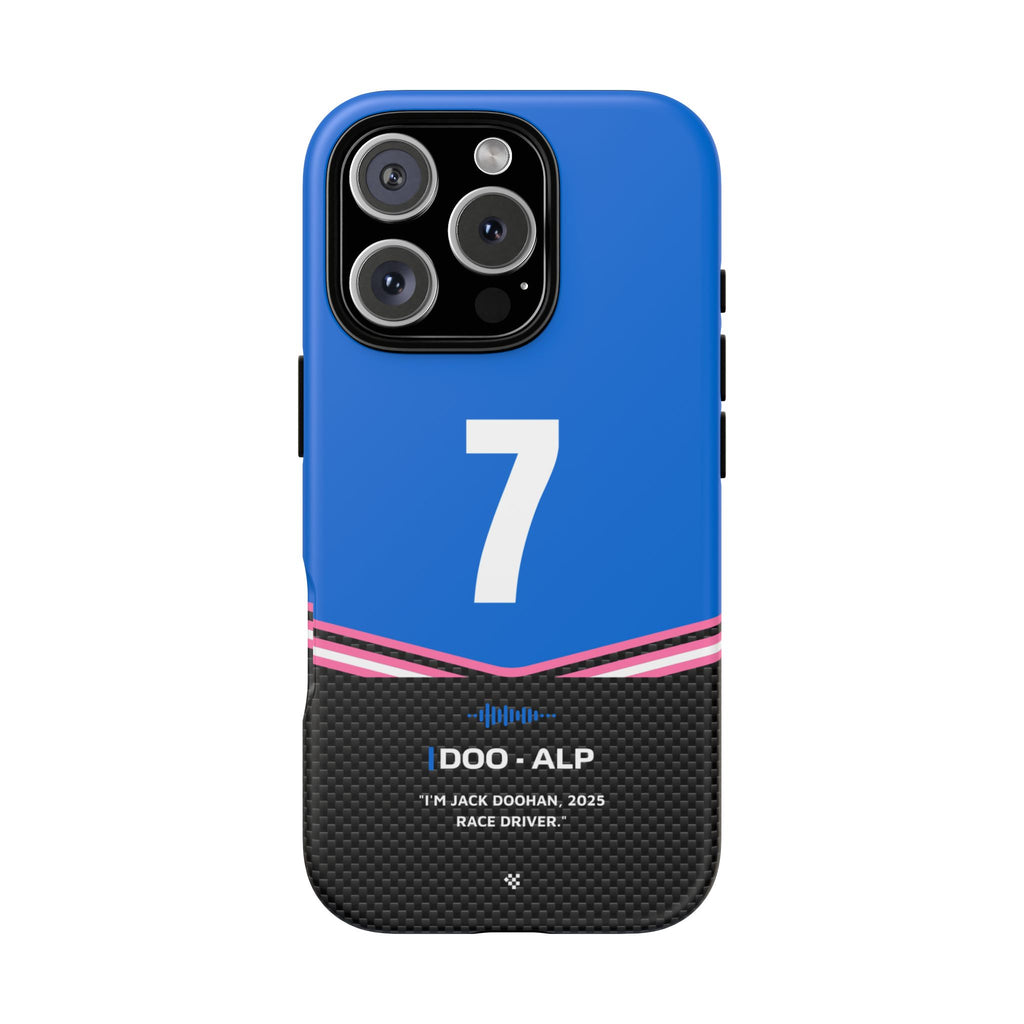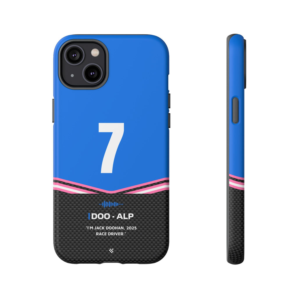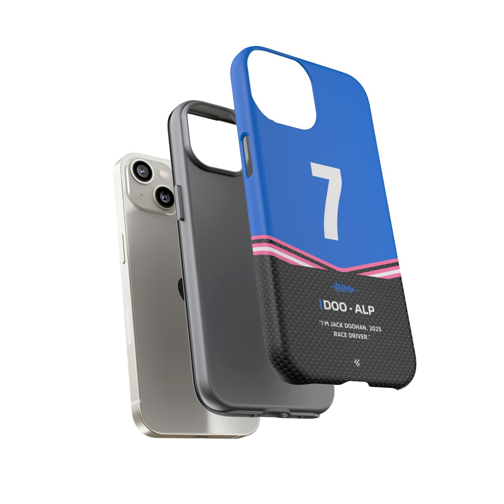 Get ready to support Jack during the 2025 Formula 1 season with the Jack Doohan F1 2025 Team Phone Case. Designed for true Formula 1 fans, this case features his iconic #7 race car number alongside the striking 2025 Alpine colors. But that's not all - it also proudly showcases an iconic text that you can personalize. Whether you're cheering from the grandstands or watching from home, this premium phone case is a must-have for every Doohan fan.