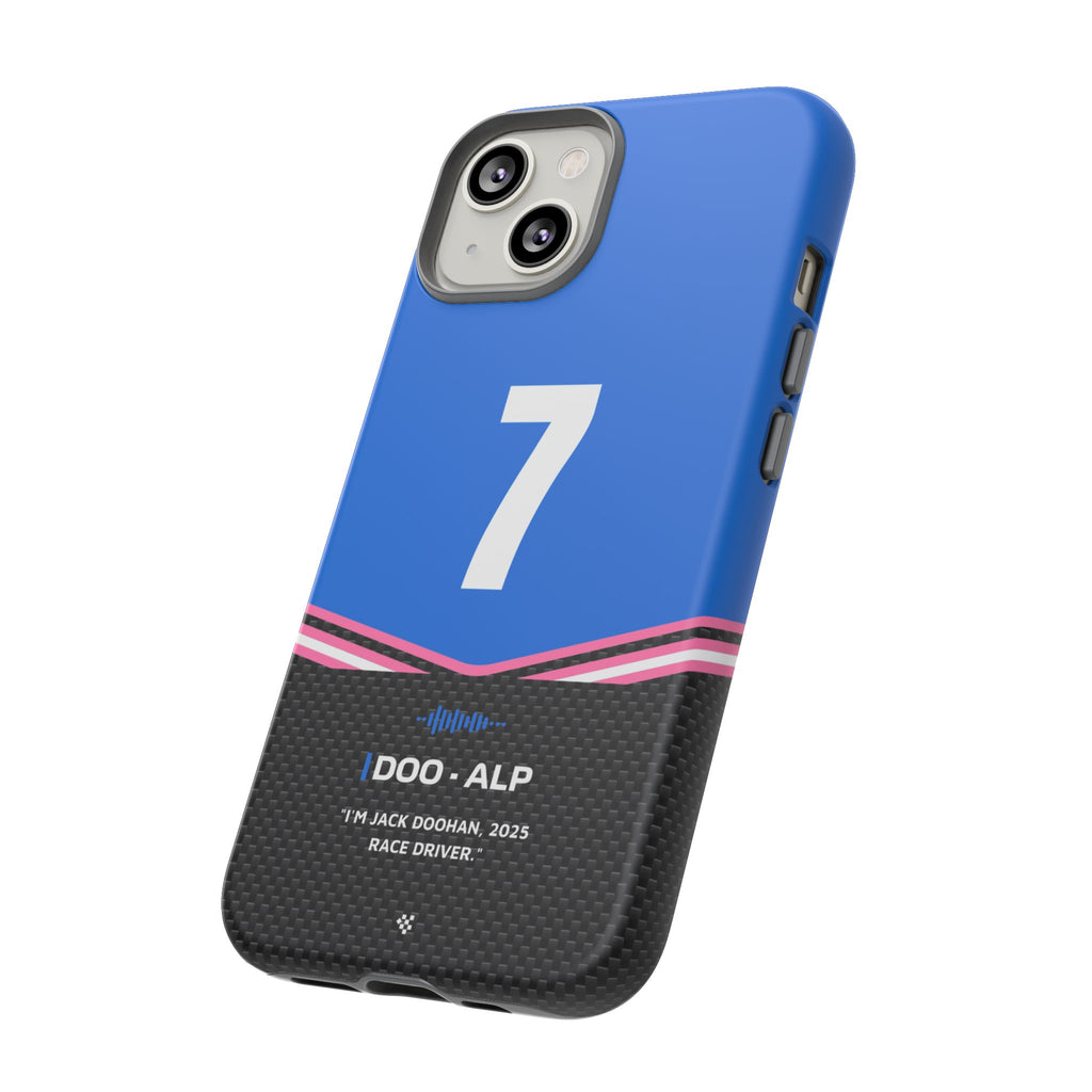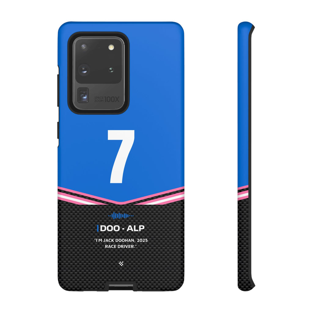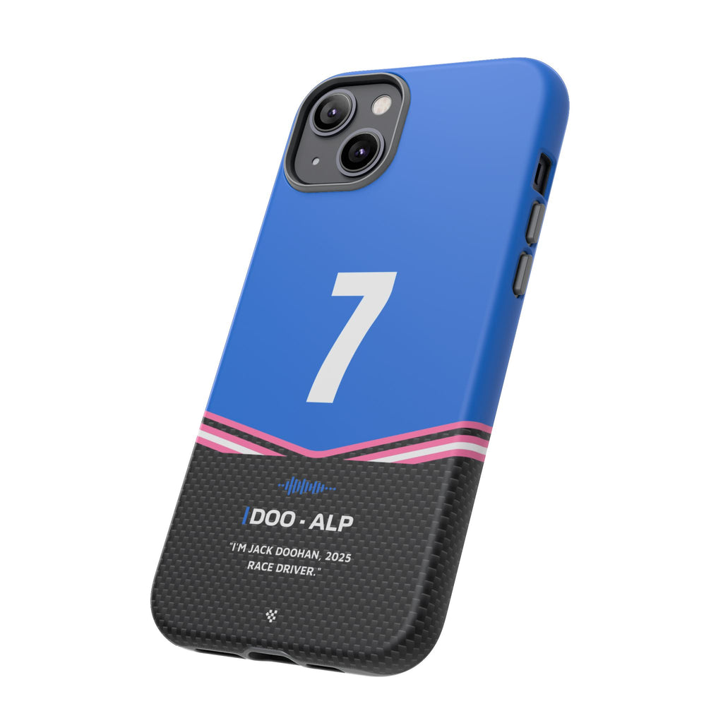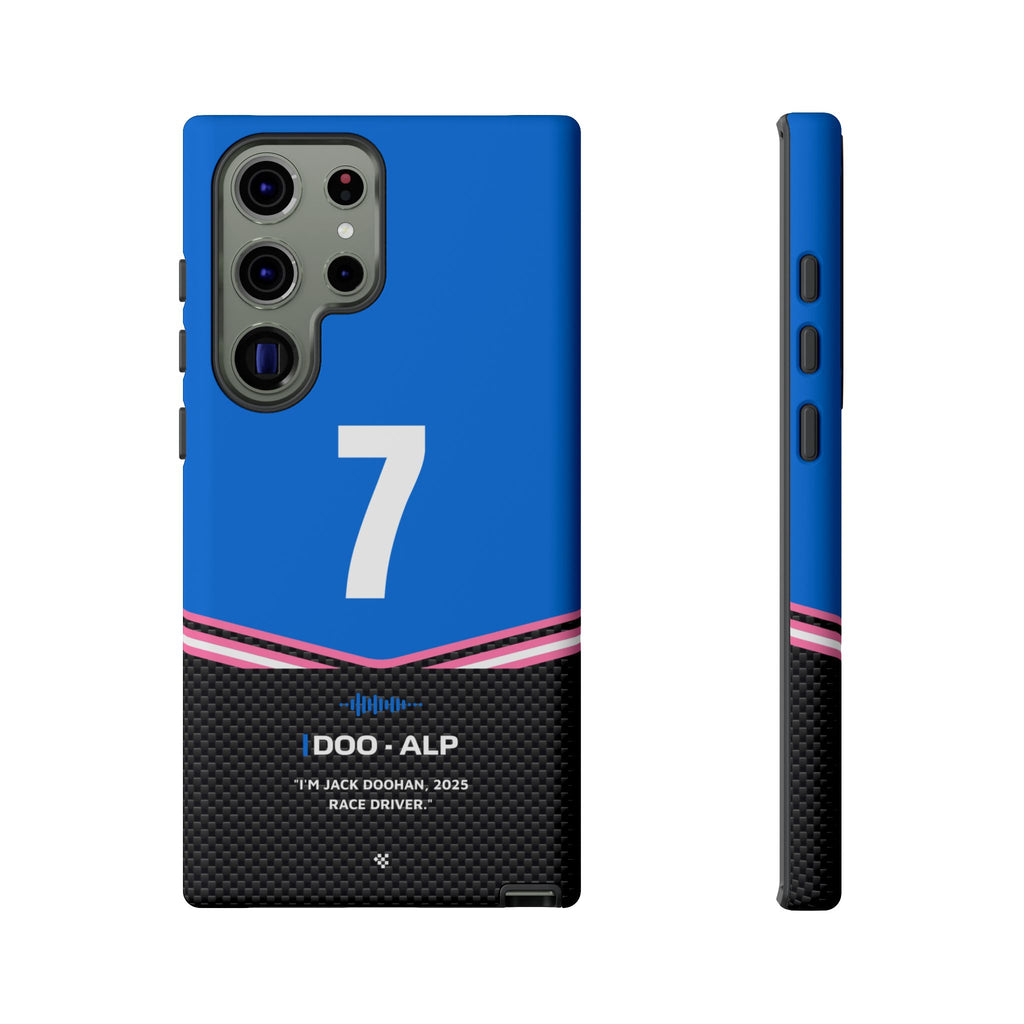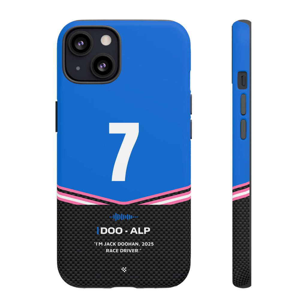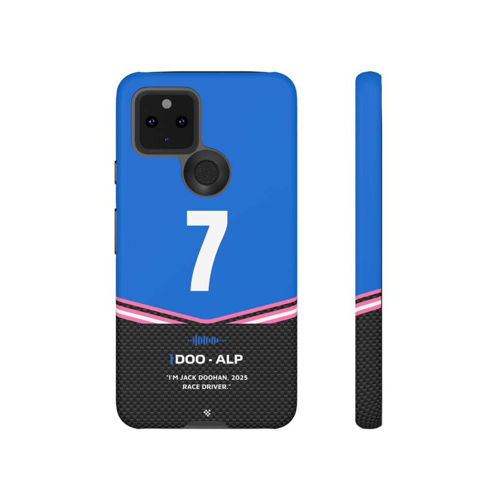 Get ready to support Jack during the 2025 Formula 1 season with the Jack Doohan F1 2025 Team Phone Case. Designed for true Formula 1 fans, this case features his iconic #7 race car number alongside the striking 2025 Alpine colors. But that's not all - it also proudly showcases an iconic text that you can personalize. Whether you're cheering from the grandstands or watching from home, this premium phone case is a must-have for every Doohan fan.