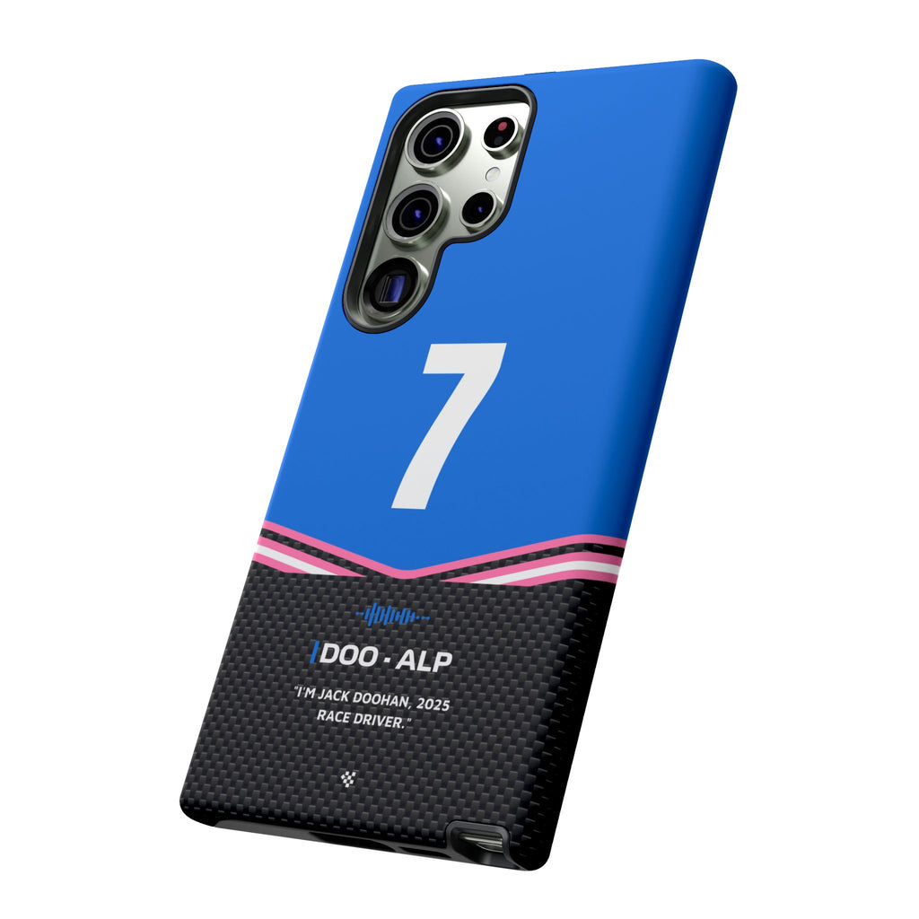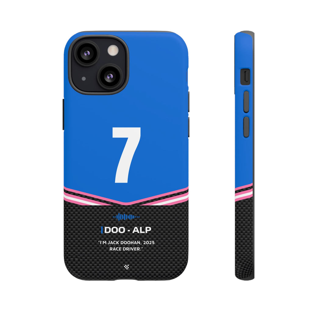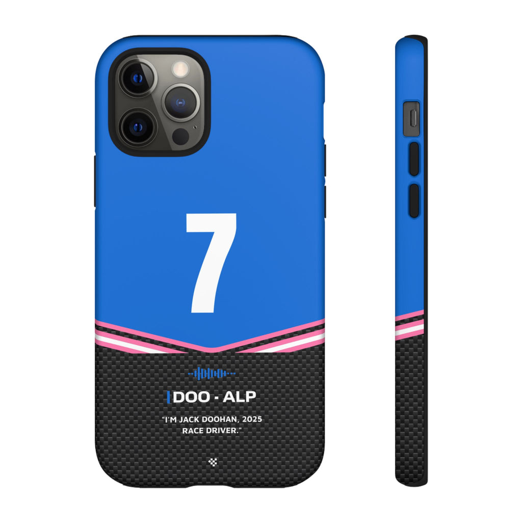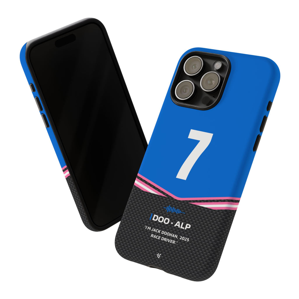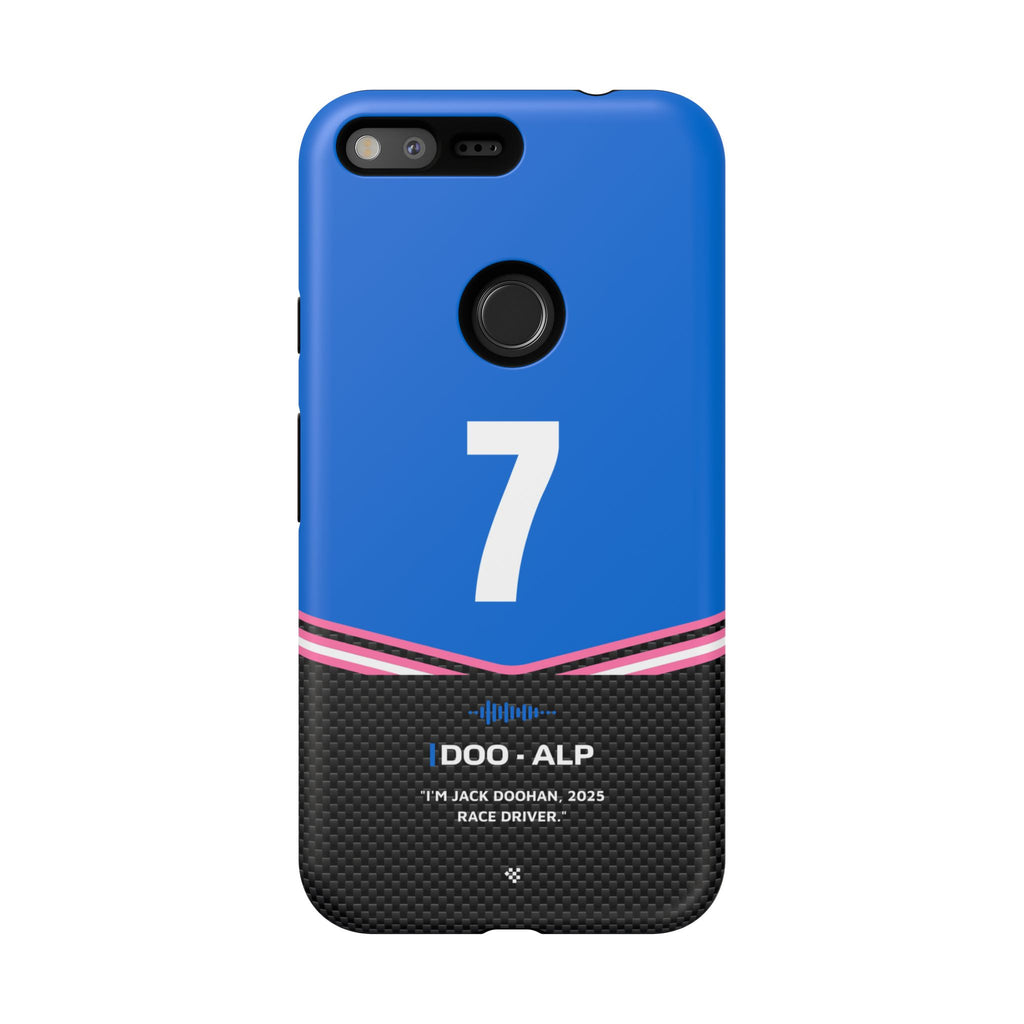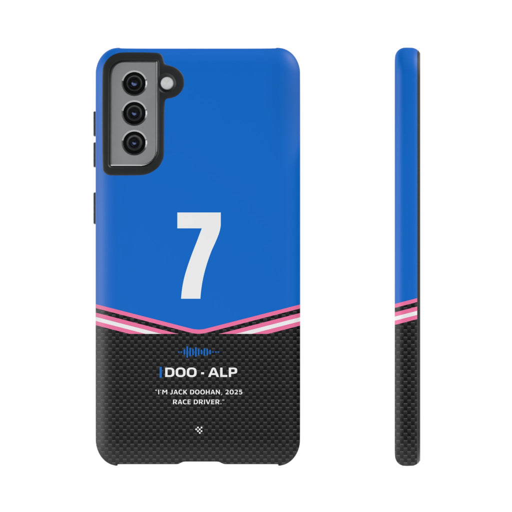 Get ready to support Jack during the 2025 Formula 1 season with the Jack Doohan F1 2025 Team Phone Case. Designed for true Formula 1 fans, this case features his iconic #7 race car number alongside the striking 2025 Alpine colors. But that's not all - it also proudly showcases an iconic text that you can personalize. Whether you're cheering from the grandstands or watching from home, this premium phone case is a must-have for every Doohan fan.