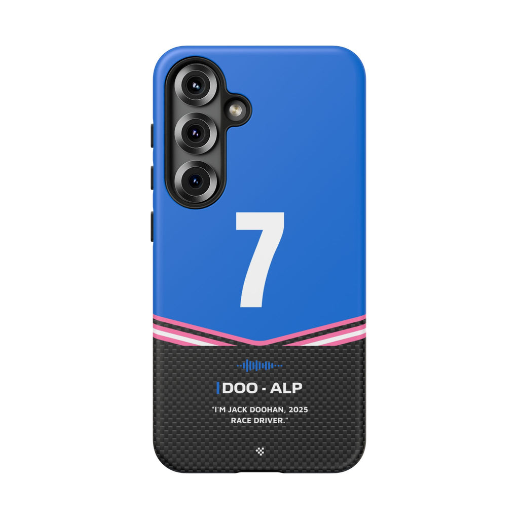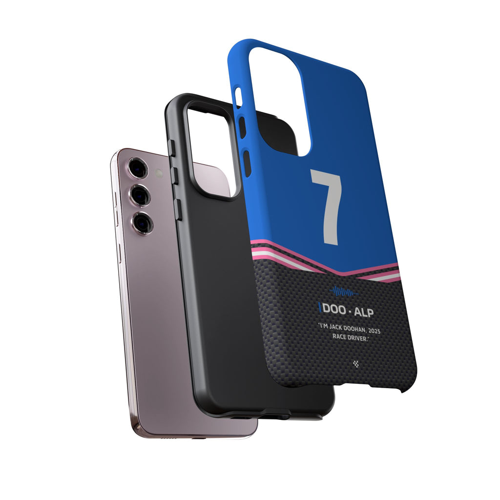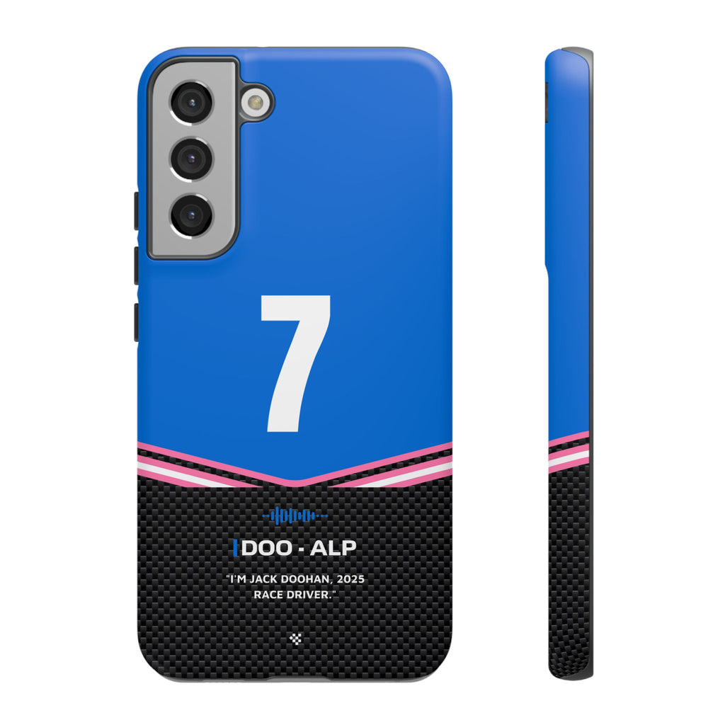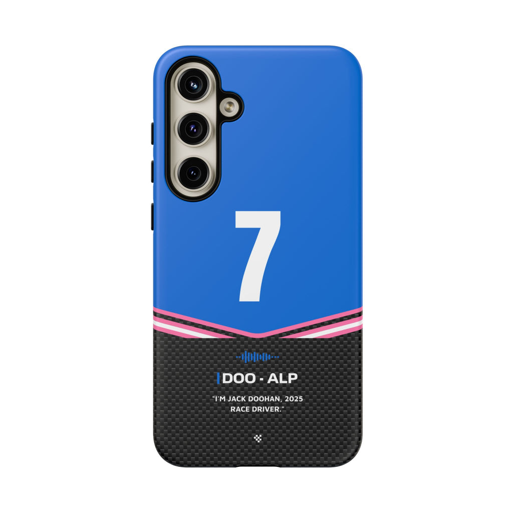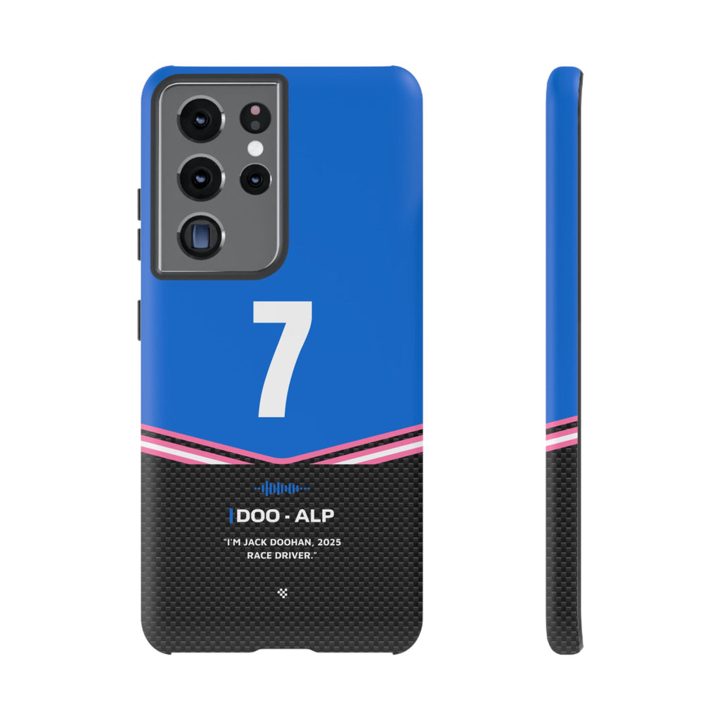 Get ready to support Jack during the 2025 Formula 1 season with the Jack Doohan F1 2025 Team Phone Case. Designed for true Formula 1 fans, this case features his iconic #7 race car number alongside the striking 2025 Alpine colors. But that's not all - it also proudly showcases an iconic text that you can personalize. Whether you're cheering from the grandstands or watching from home, this premium phone case is a must-have for every Doohan fan.