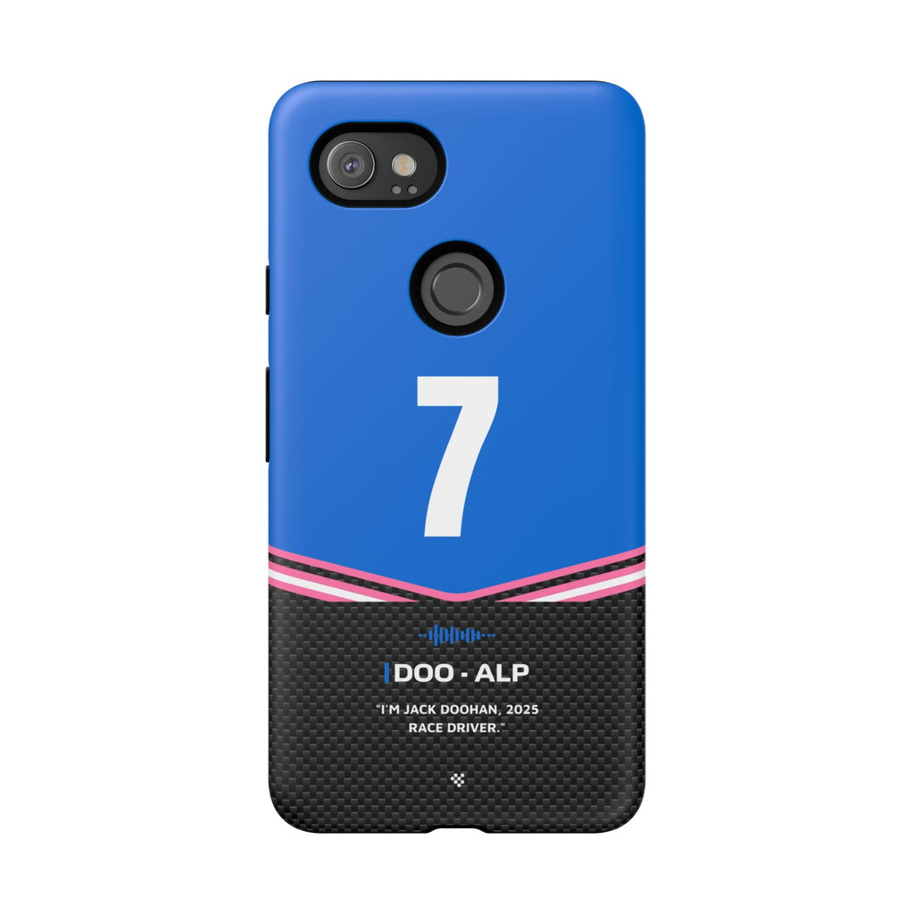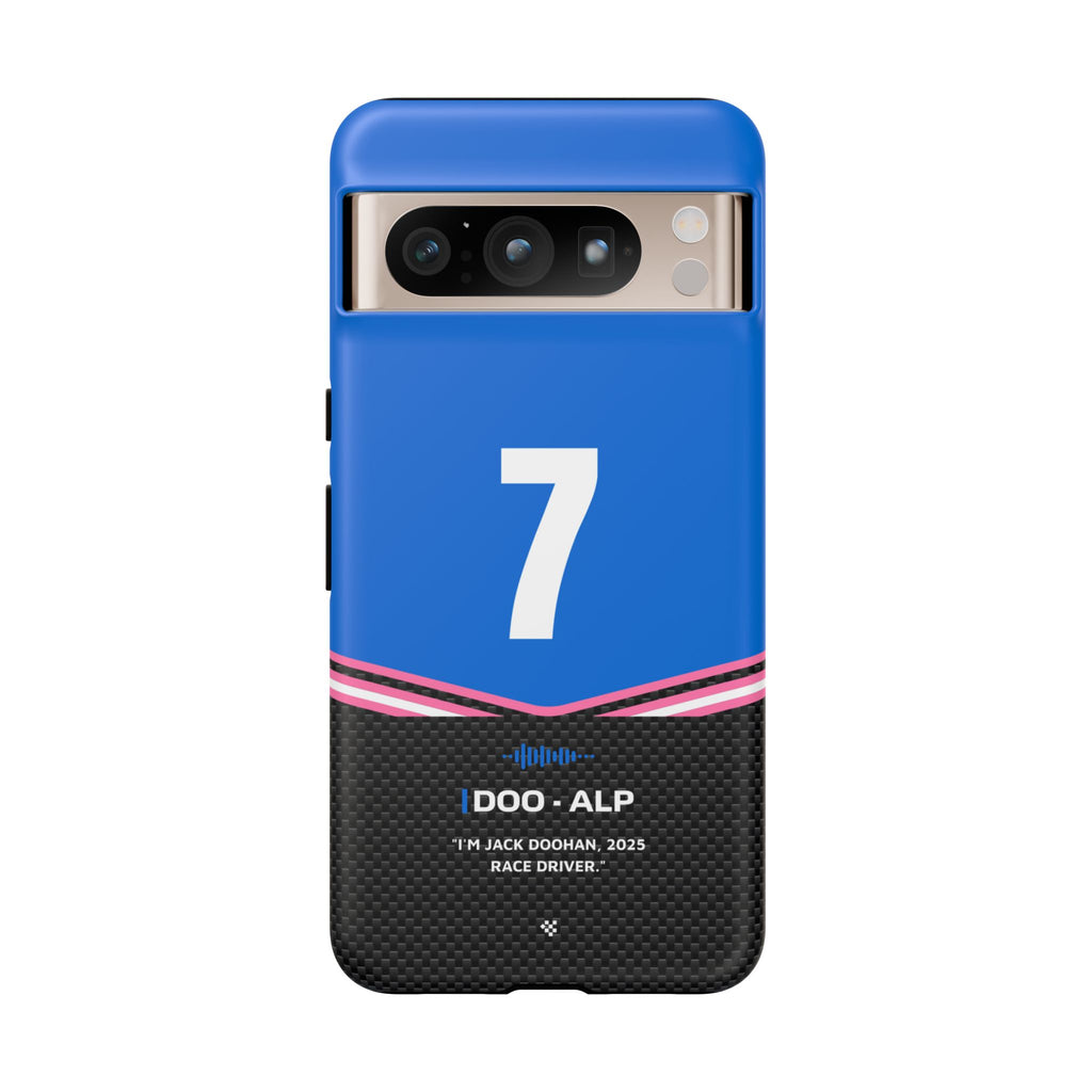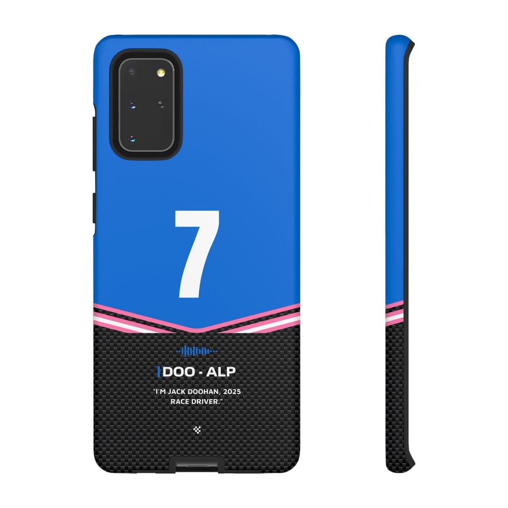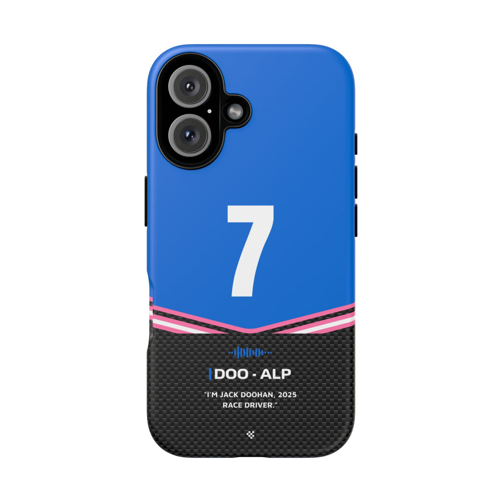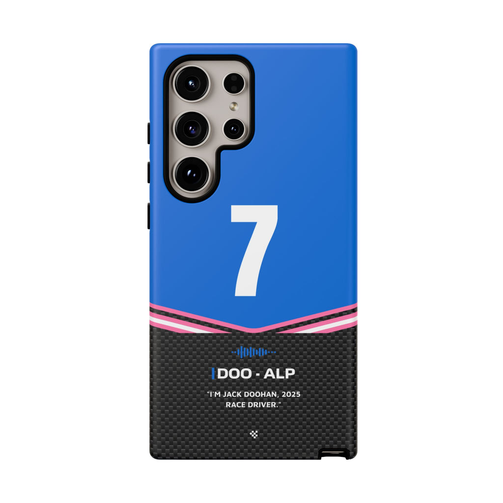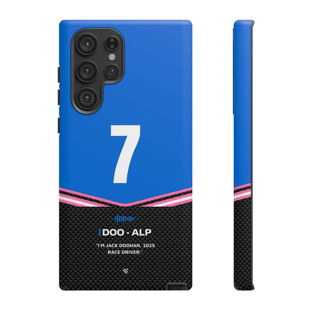 Get ready to support Jack during the 2025 Formula 1 season with the Jack Doohan F1 2025 Team Phone Case. Designed for true Formula 1 fans, this case features his iconic #7 race car number alongside the striking 2025 Alpine colors. But that's not all - it also proudly showcases an iconic text that you can personalize. Whether you're cheering from the grandstands or watching from home, this premium phone case is a must-have for every Doohan fan.