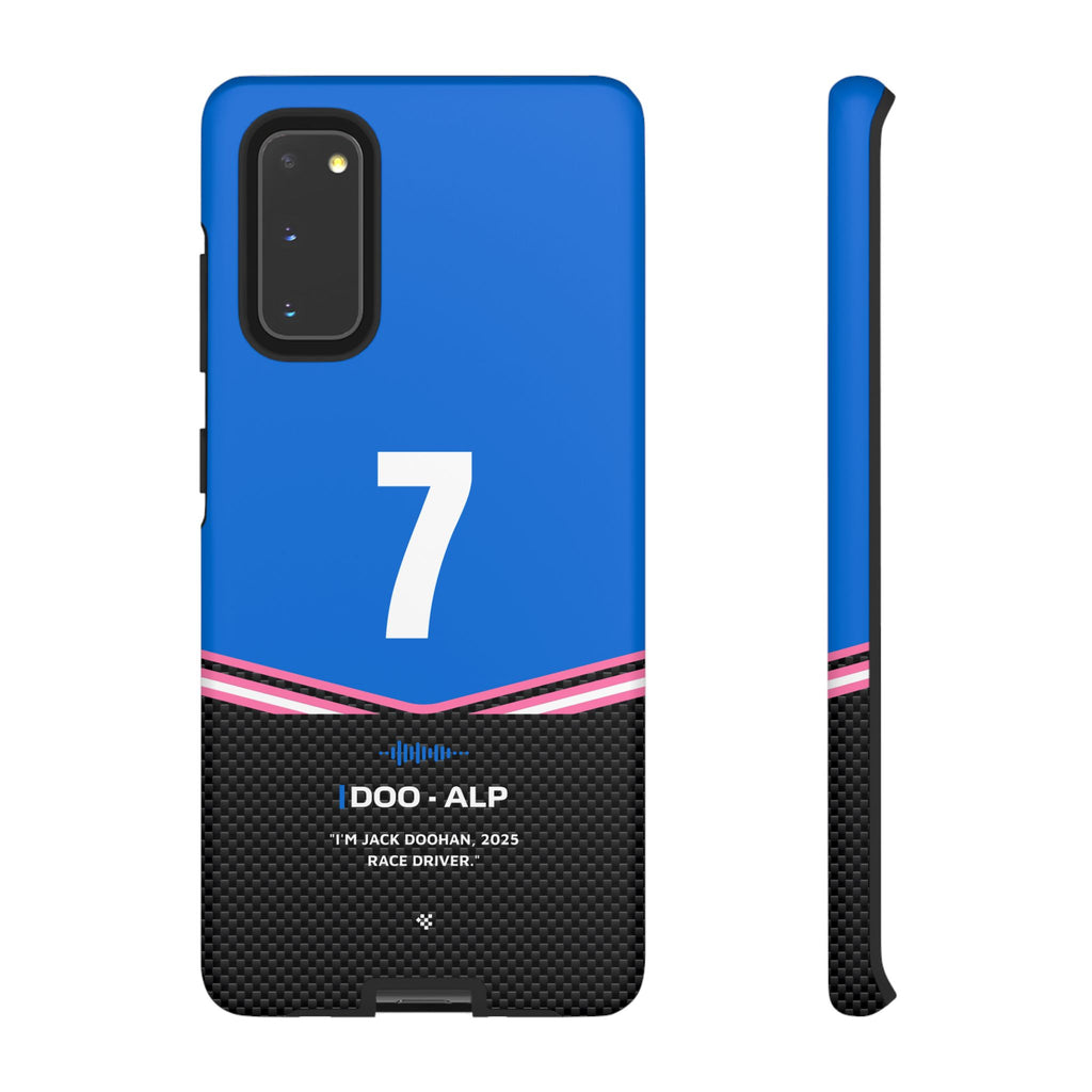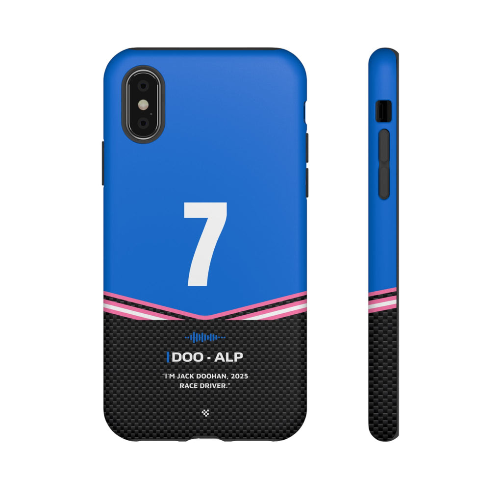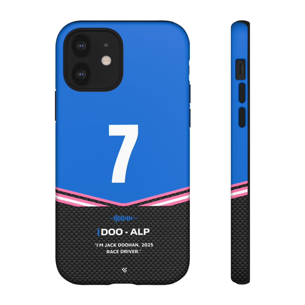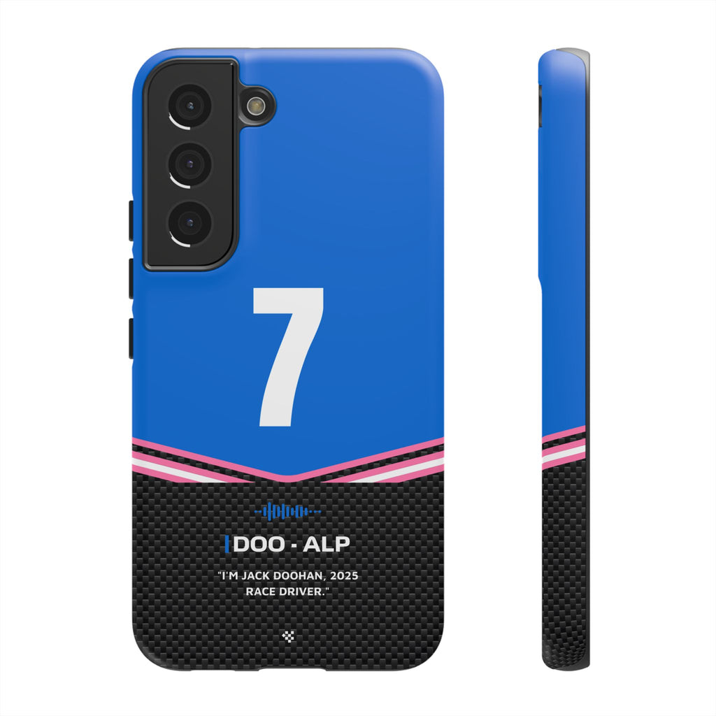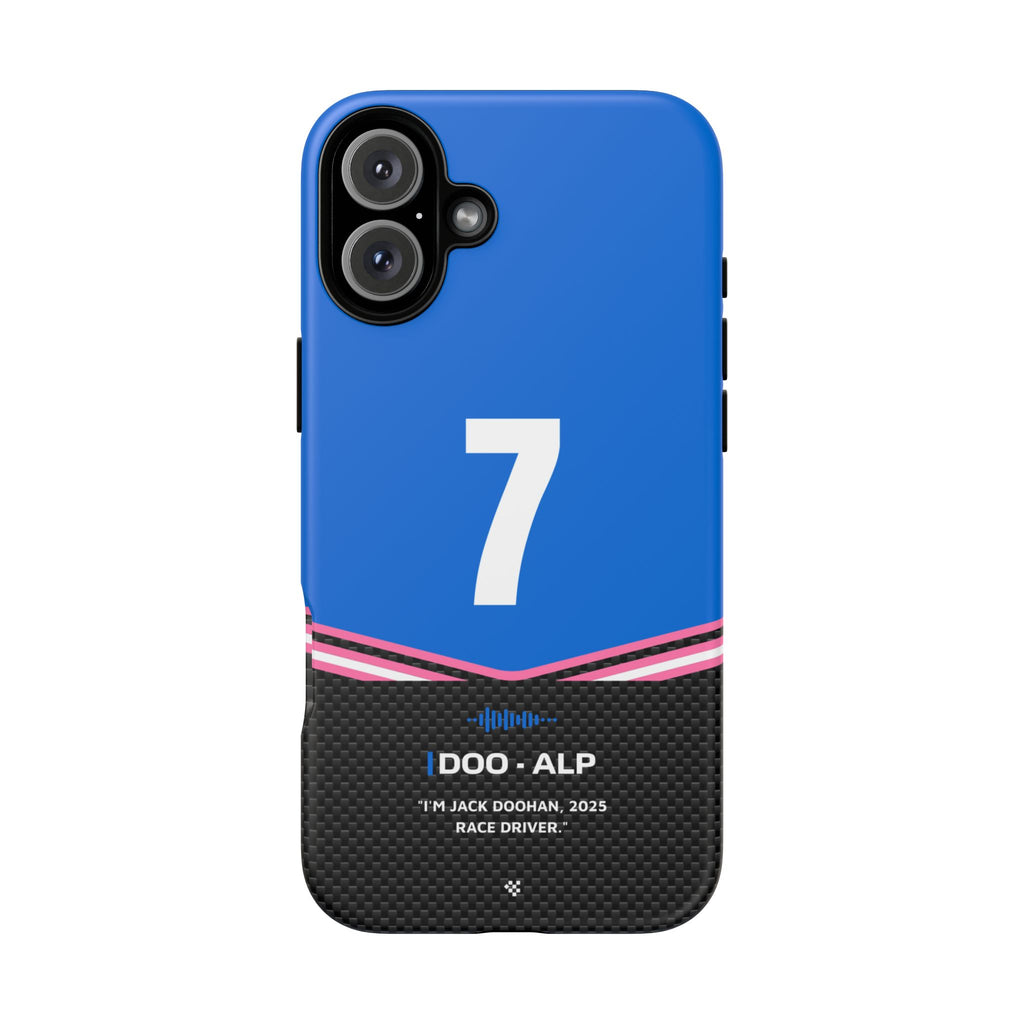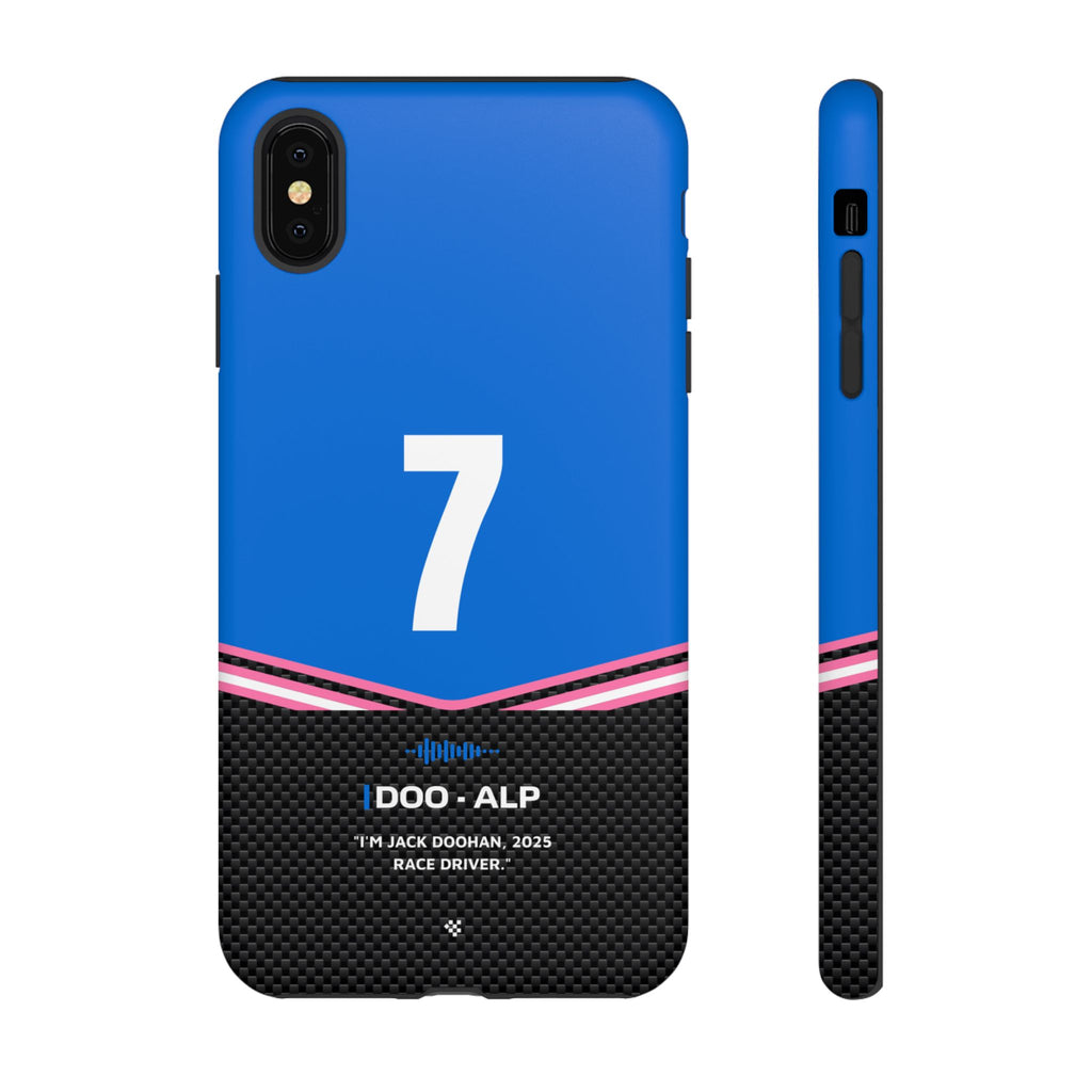 Get ready to support Jack during the 2025 Formula 1 season with the Jack Doohan F1 2025 Team Phone Case. Designed for true Formula 1 fans, this case features his iconic #7 race car number alongside the striking 2025 Alpine colors. But that's not all - it also proudly showcases an iconic text that you can personalize. Whether you're cheering from the grandstands or watching from home, this premium phone case is a must-have for every Doohan fan.
