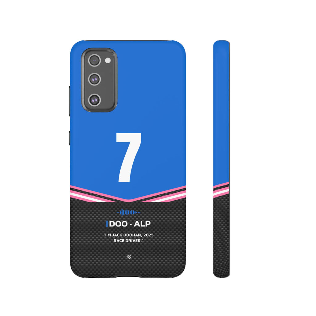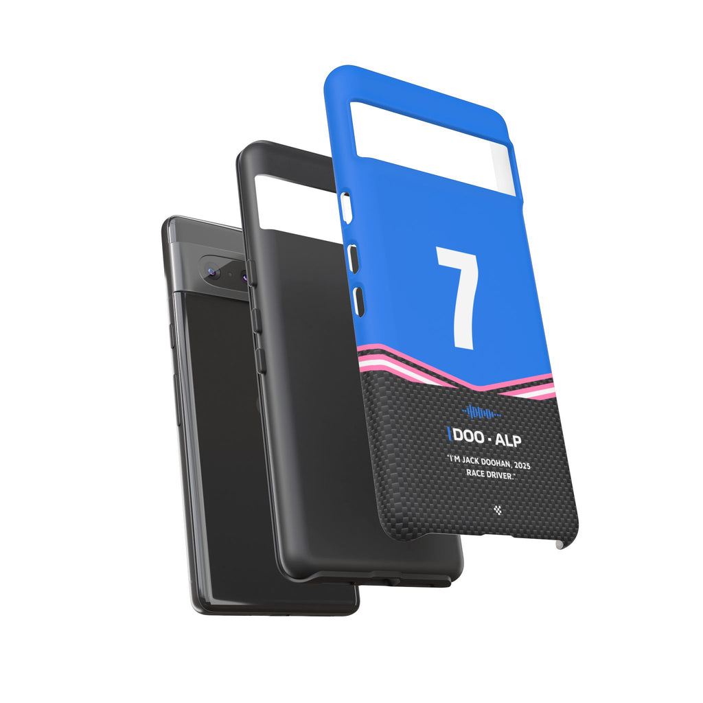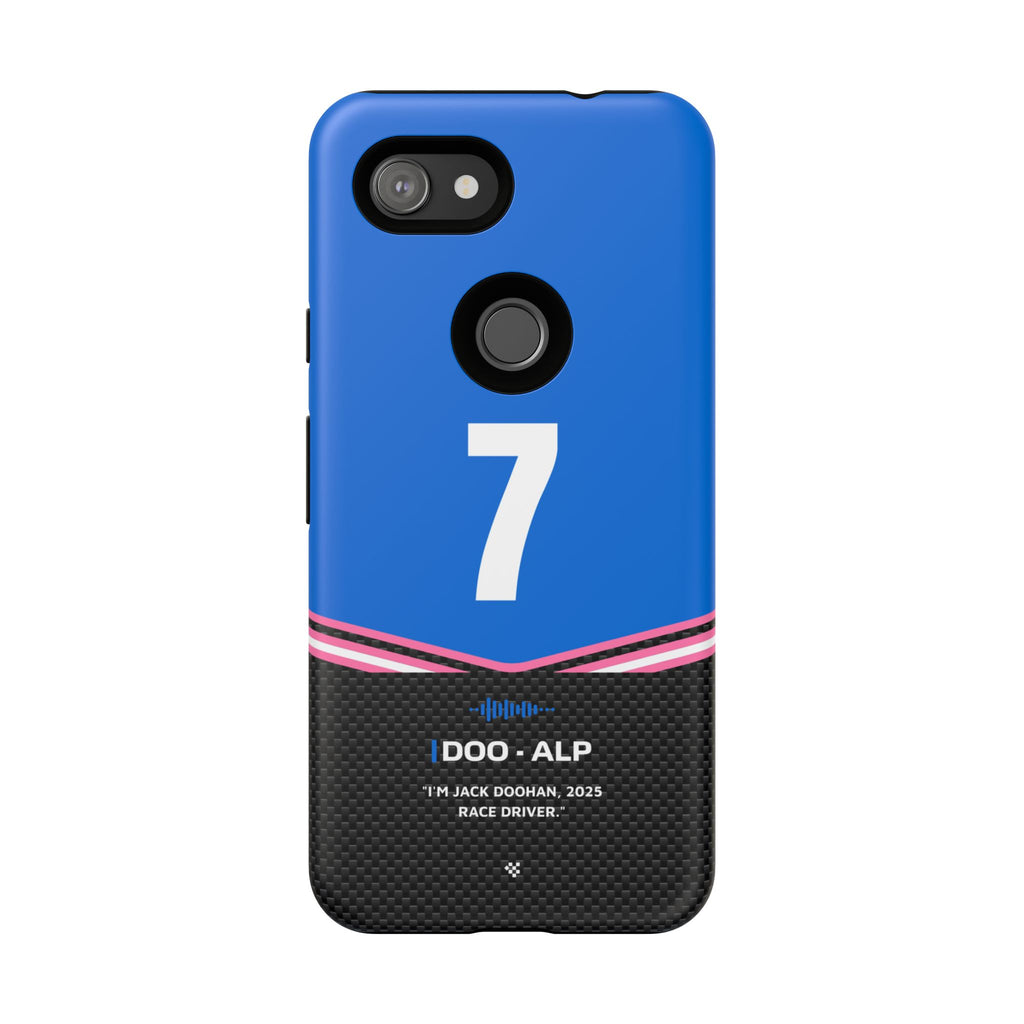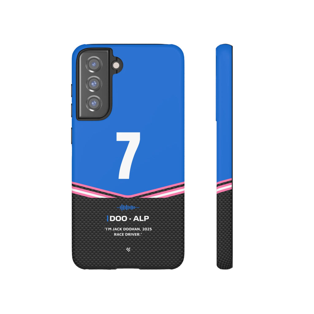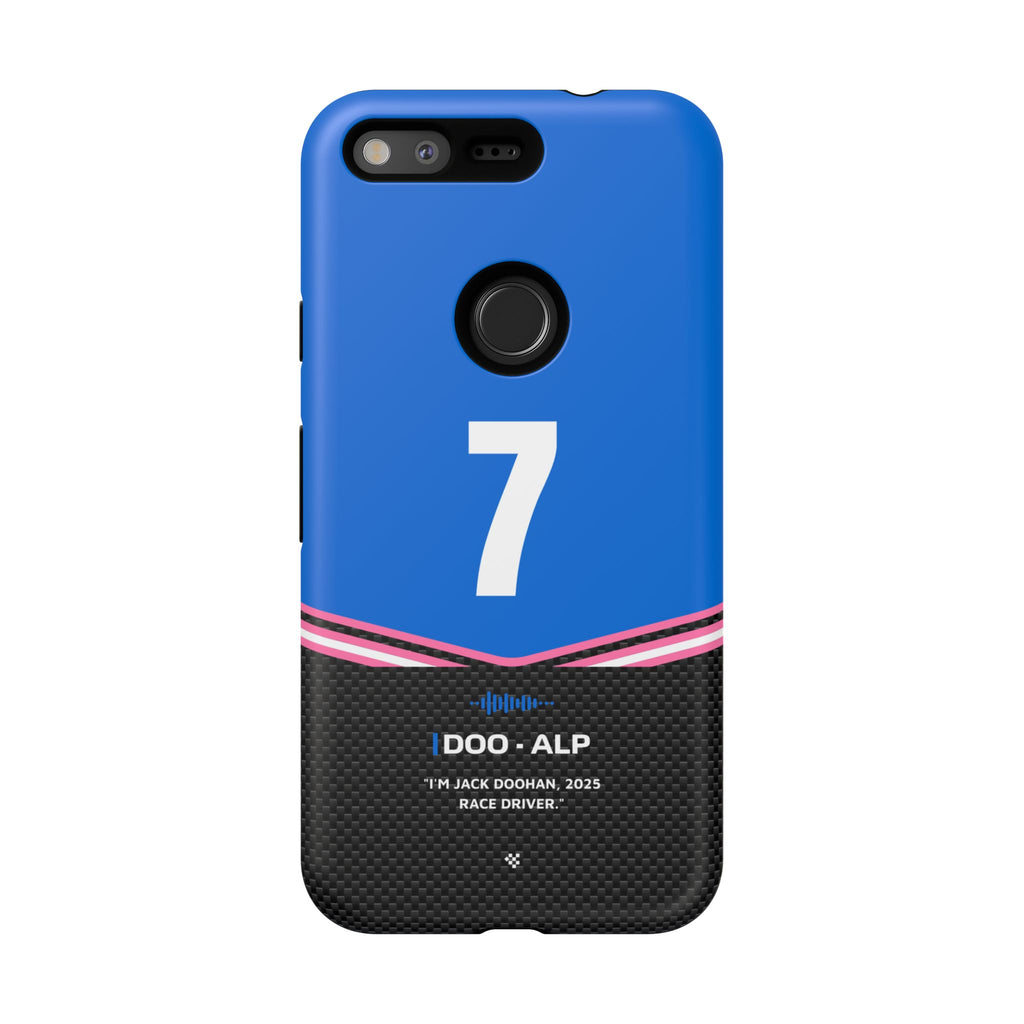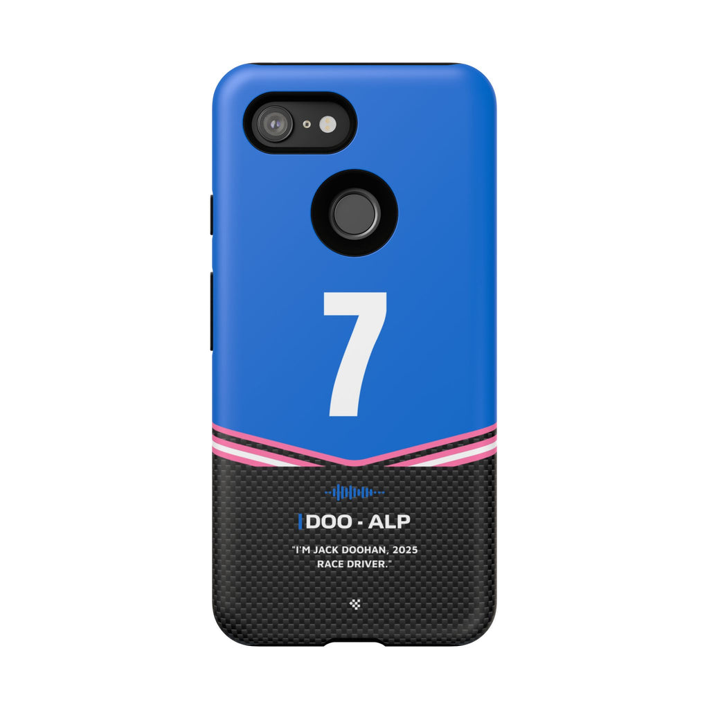 Get ready to support Jack during the 2025 Formula 1 season with the Jack Doohan F1 2025 Team Phone Case. Designed for true Formula 1 fans, this case features his iconic #7 race car number alongside the striking 2025 Alpine colors. But that's not all - it also proudly showcases an iconic text that you can personalize. Whether you're cheering from the grandstands or watching from home, this premium phone case is a must-have for every Doohan fan.