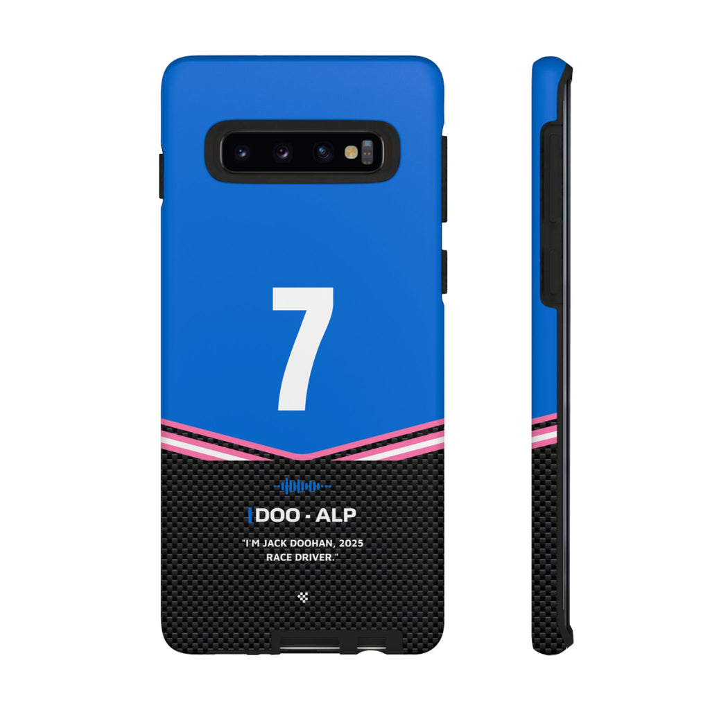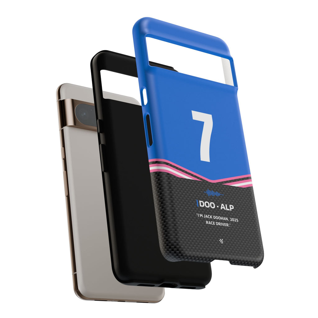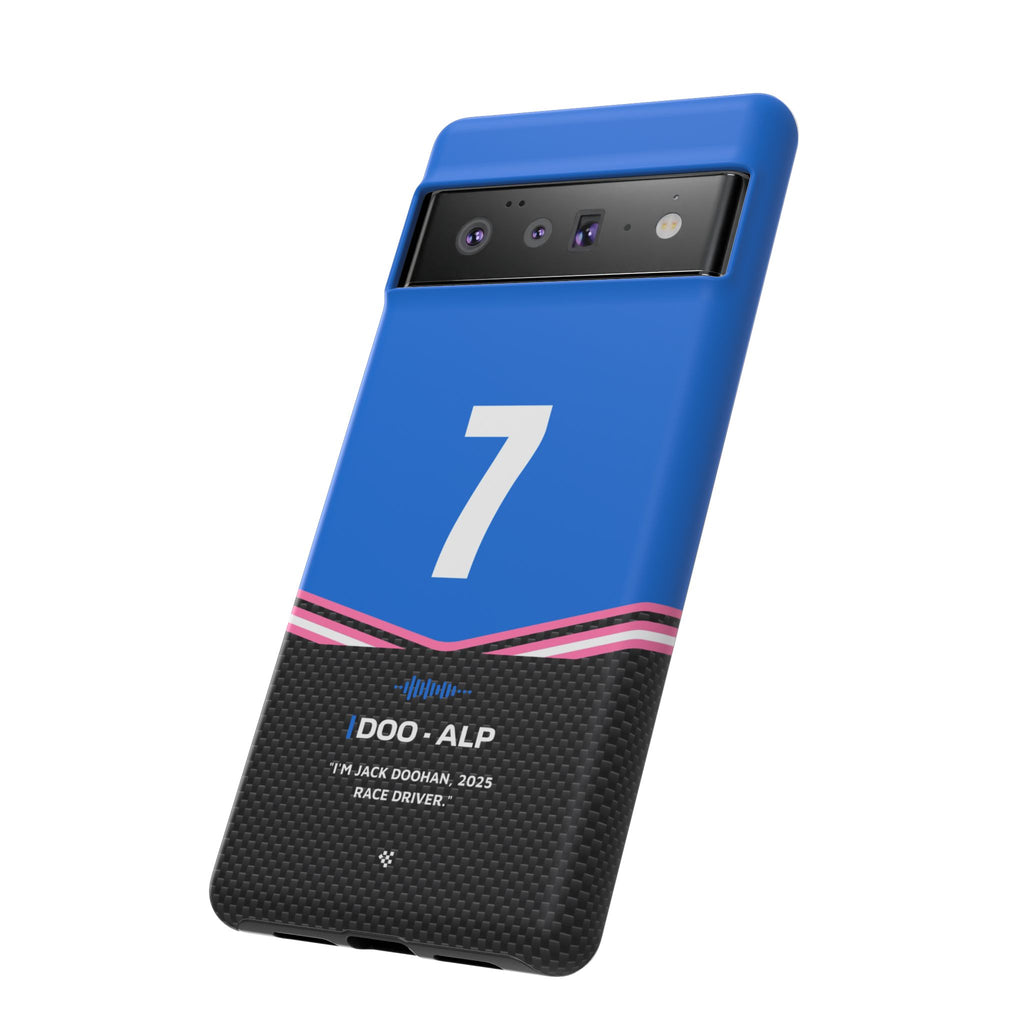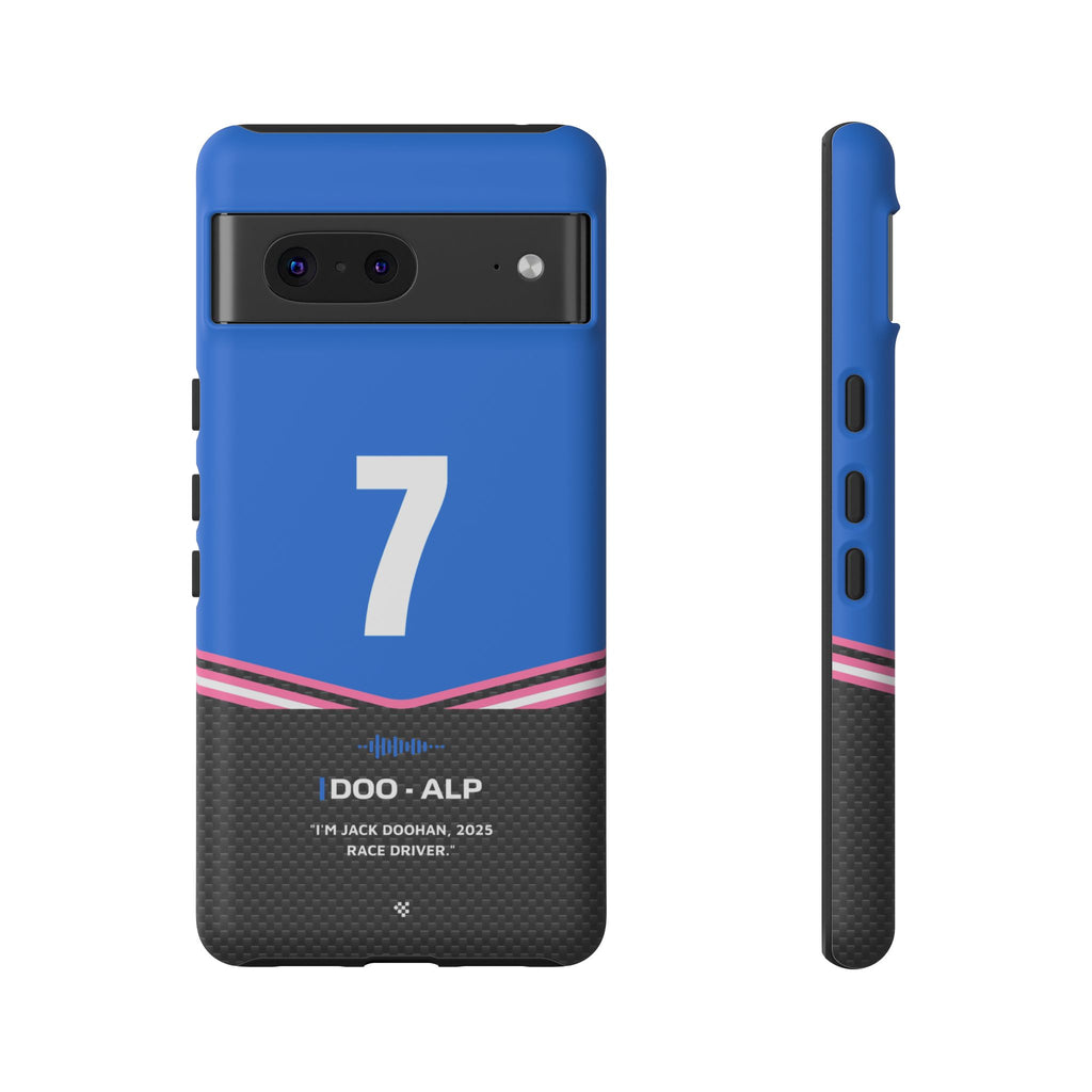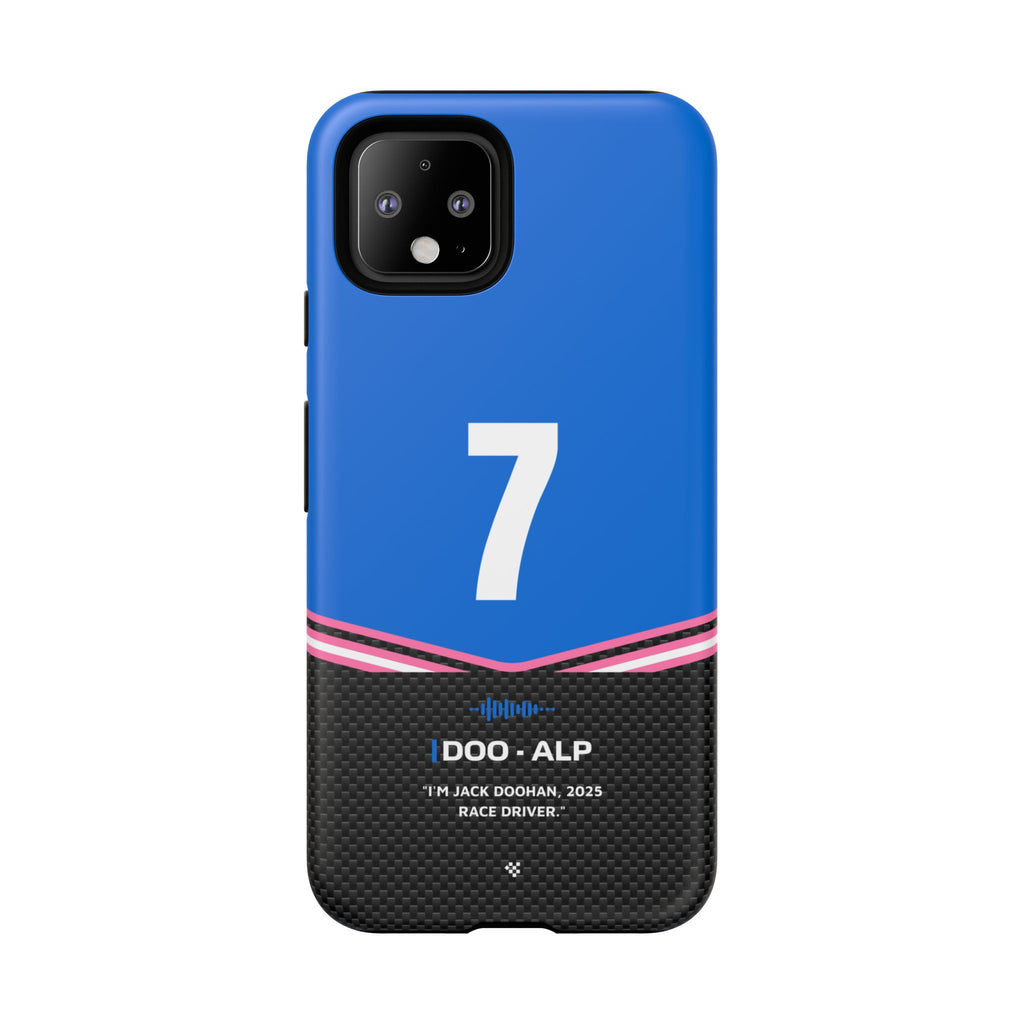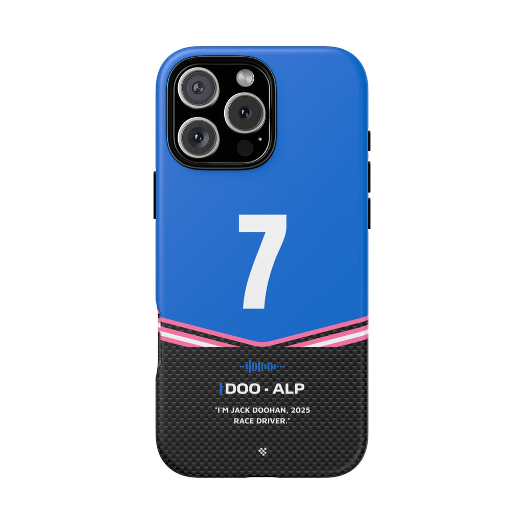 Get ready to support Jack during the 2025 Formula 1 season with the Jack Doohan F1 2025 Team Phone Case. Designed for true Formula 1 fans, this case features his iconic #7 race car number alongside the striking 2025 Alpine colors. But that's not all - it also proudly showcases an iconic text that you can personalize. Whether you're cheering from the grandstands or watching from home, this premium phone case is a must-have for every Doohan fan.