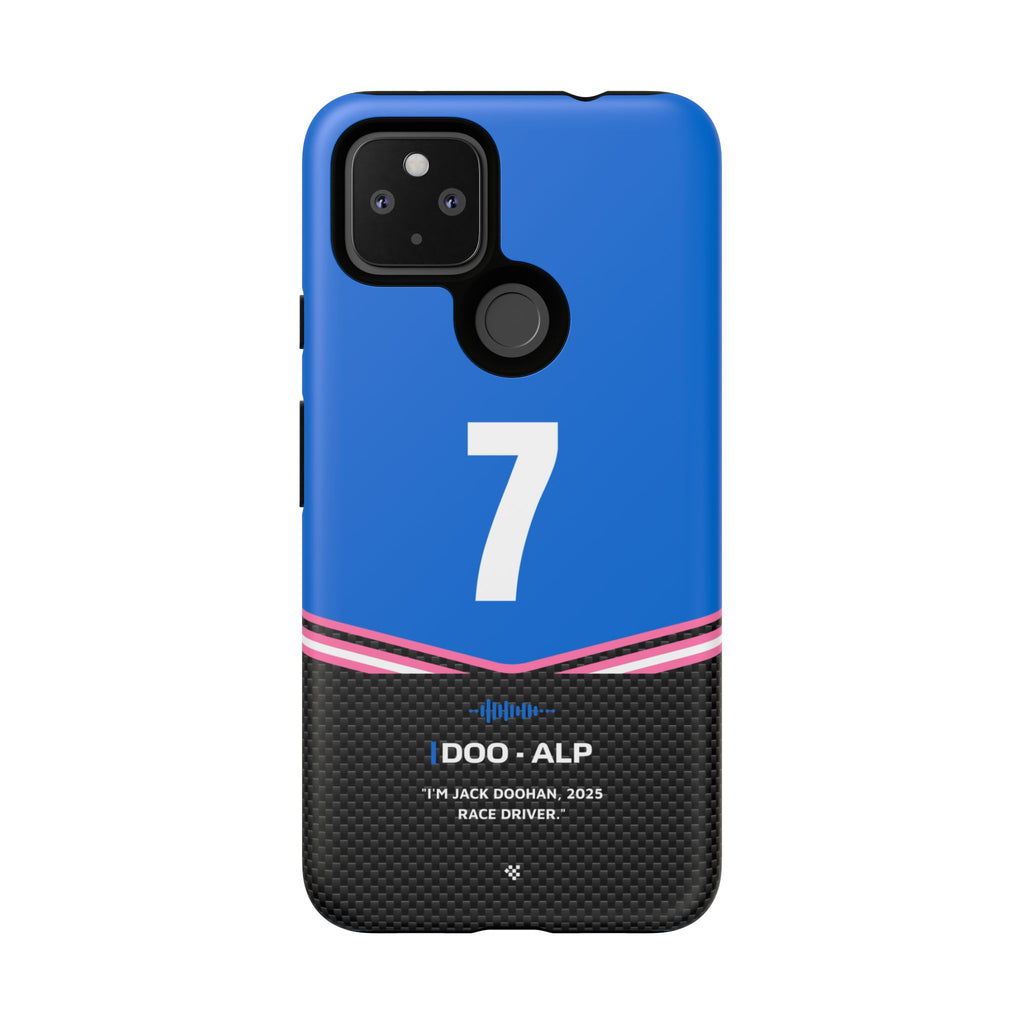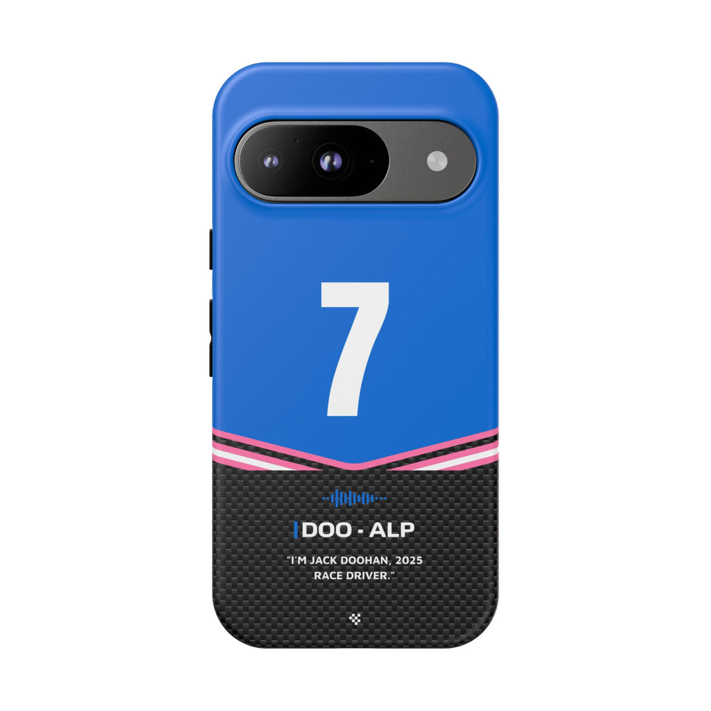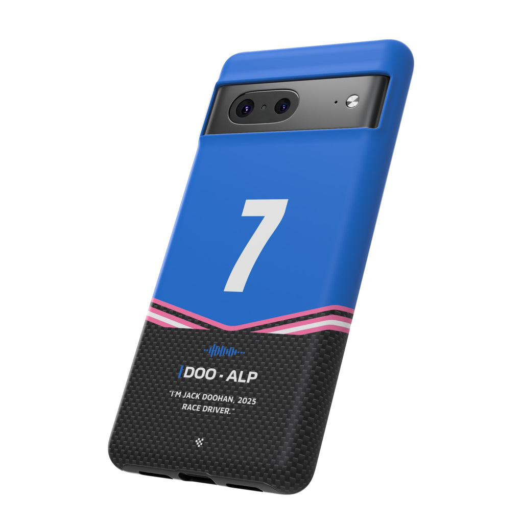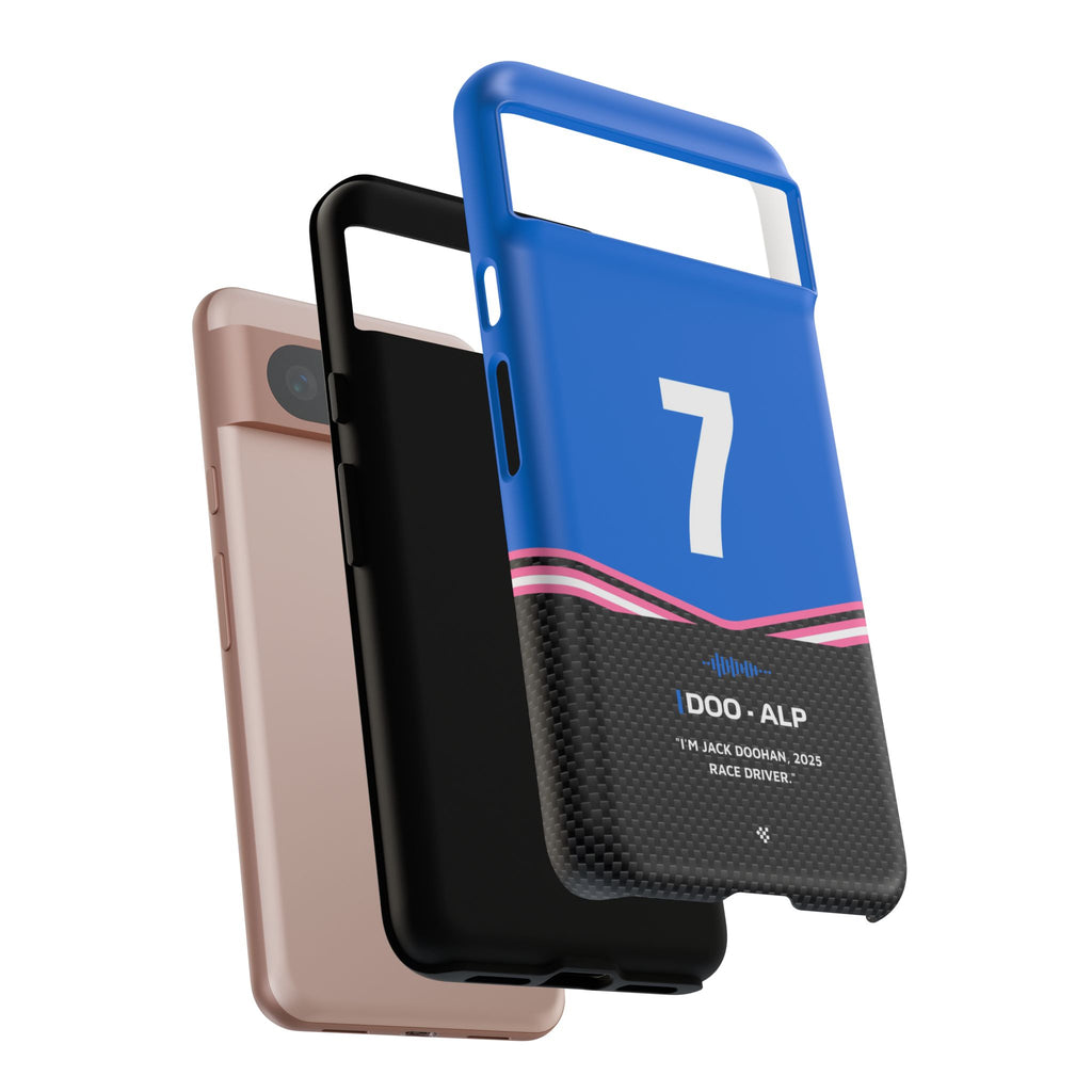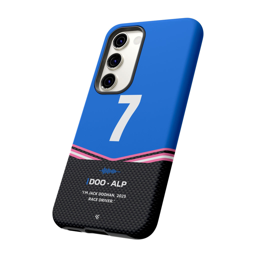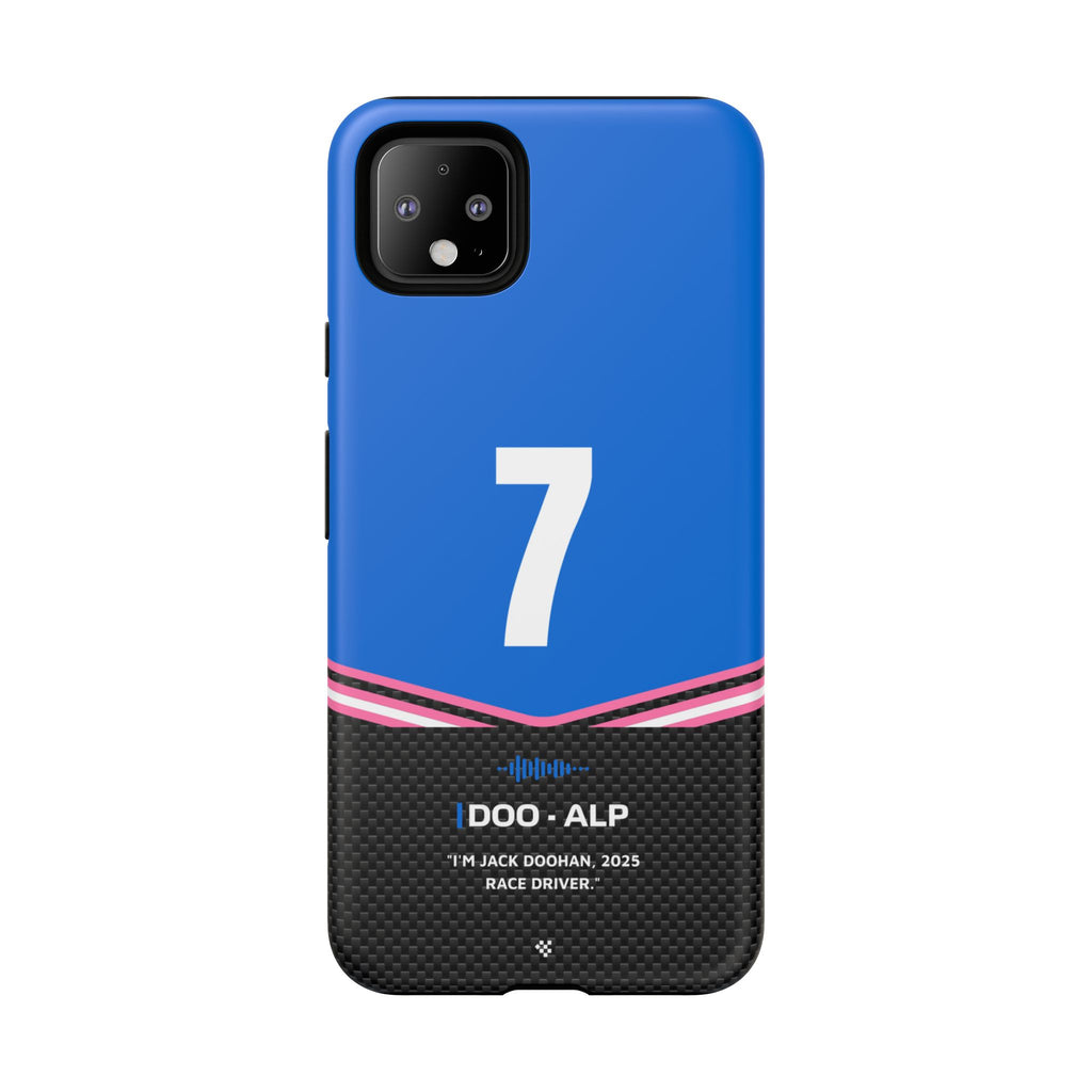Get ready to support Jack during the 2025 Formula 1 season with the Jack Doohan F1 2025 Team Phone Case. Designed for true Formula 1 fans, this case features his iconic #7 race car number alongside the striking 2025 Alpine colors. But that's not all - it also proudly showcases an iconic text that you can personalize. Whether you're cheering from the grandstands or watching from home, this premium phone case is a must-have for every Doohan fan.