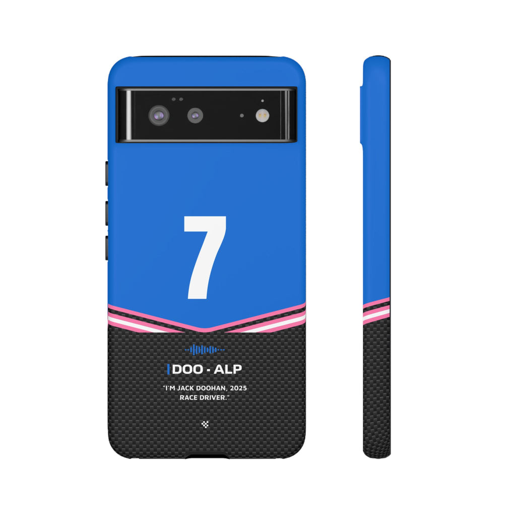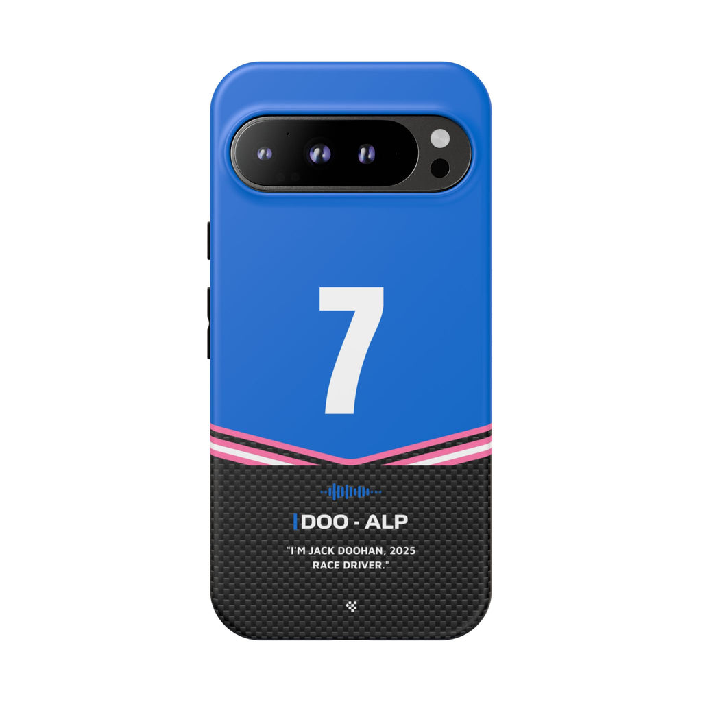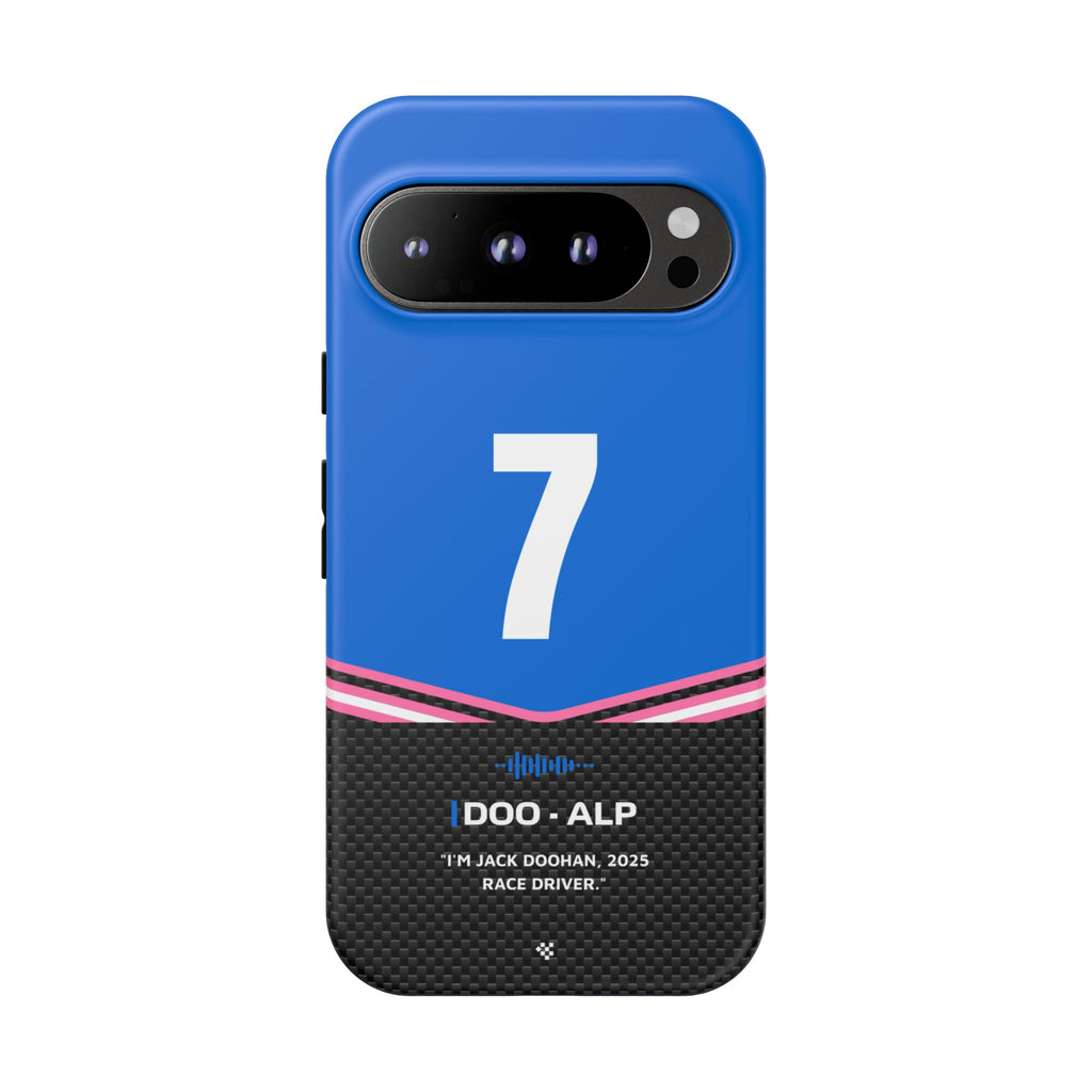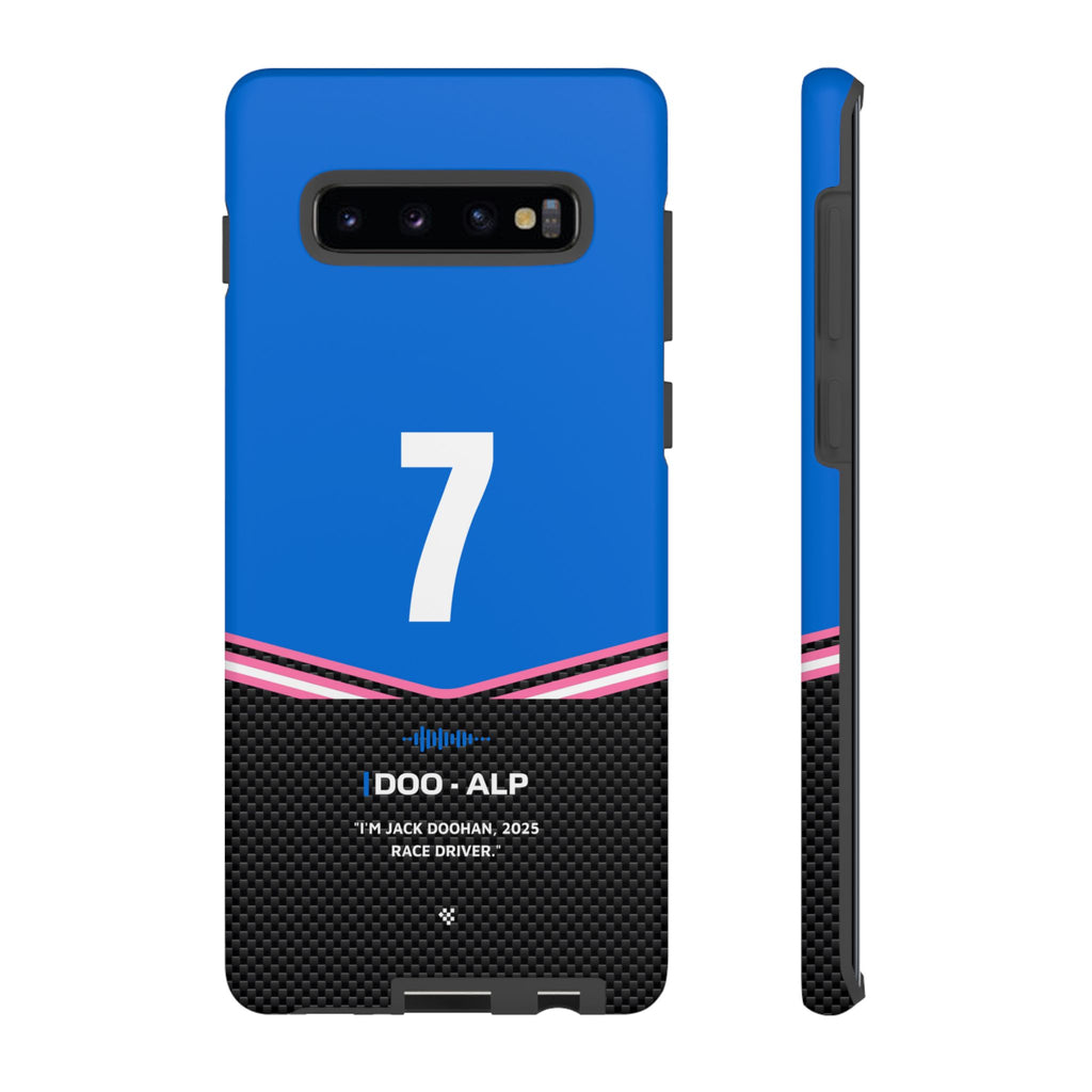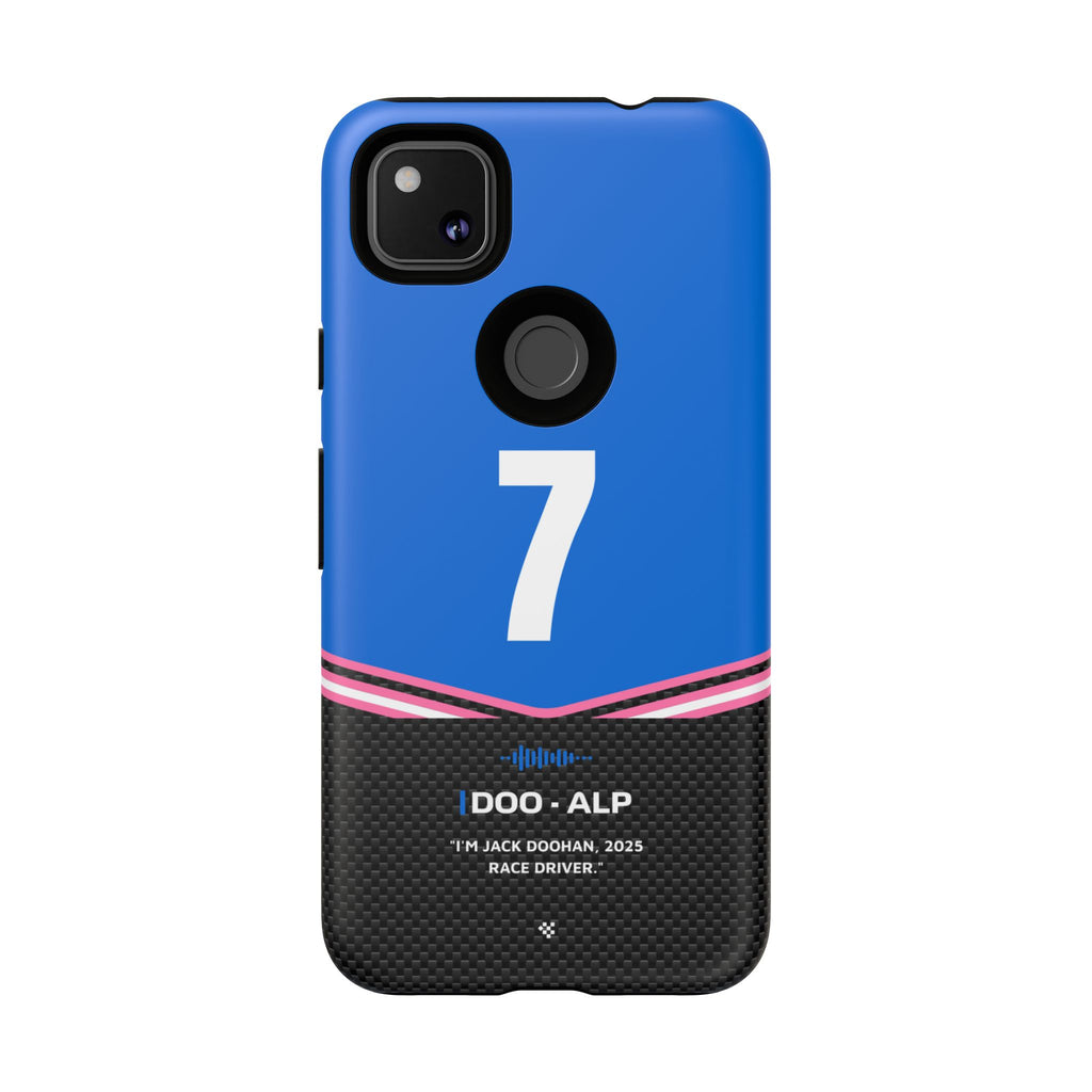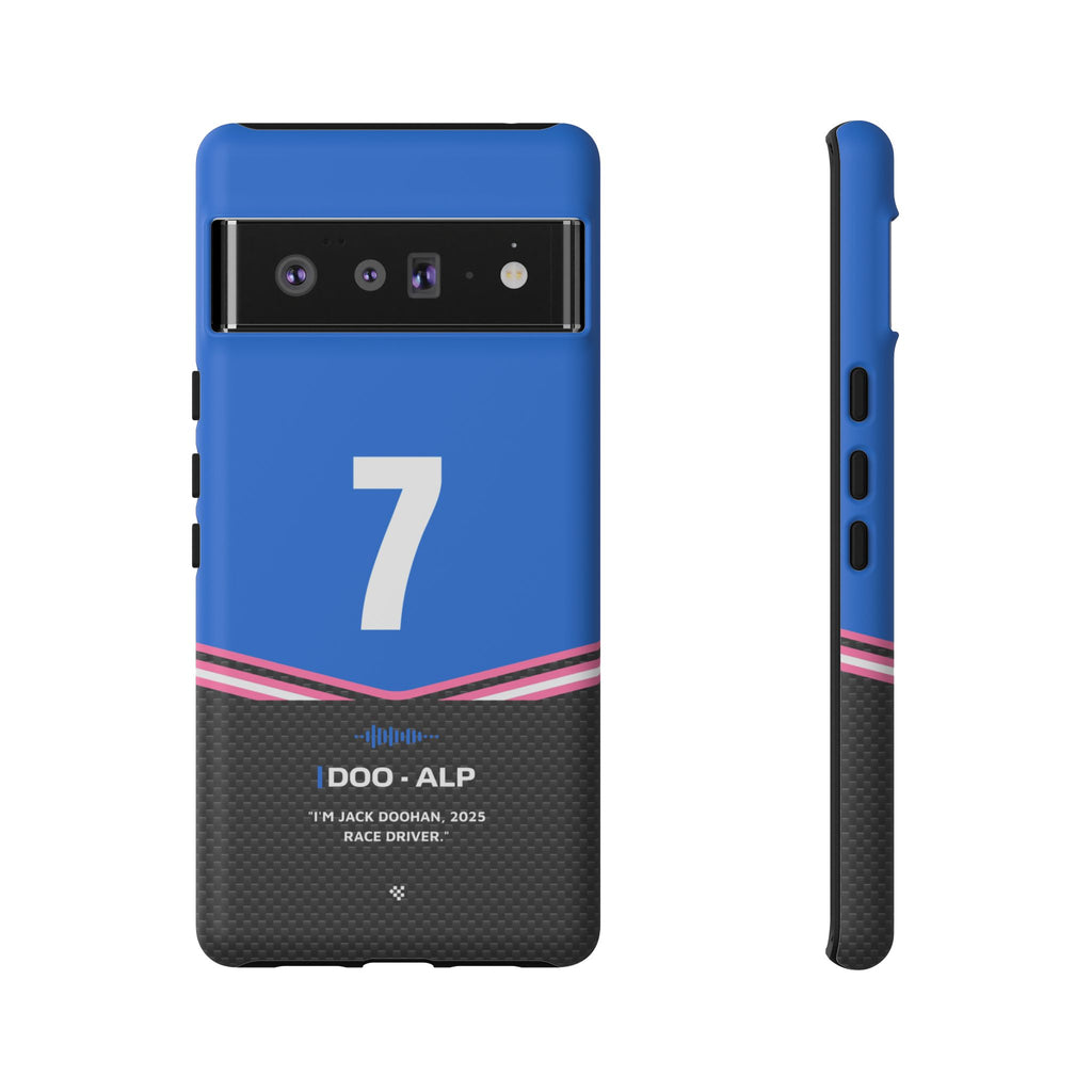 Get ready to support Jack during the 2025 Formula 1 season with the Jack Doohan F1 2025 Team Phone Case. Designed for true Formula 1 fans, this case features his iconic #7 race car number alongside the striking 2025 Alpine colors. But that's not all - it also proudly showcases an iconic text that you can personalize. Whether you're cheering from the grandstands or watching from home, this premium phone case is a must-have for every Doohan fan.
