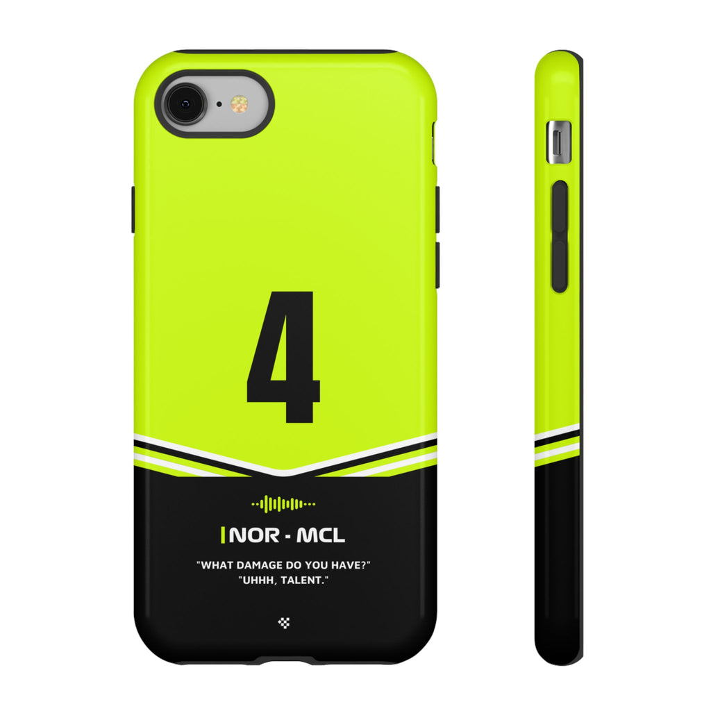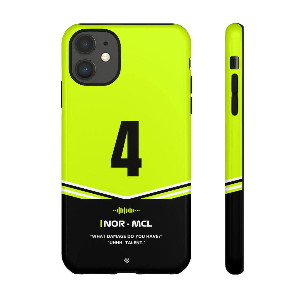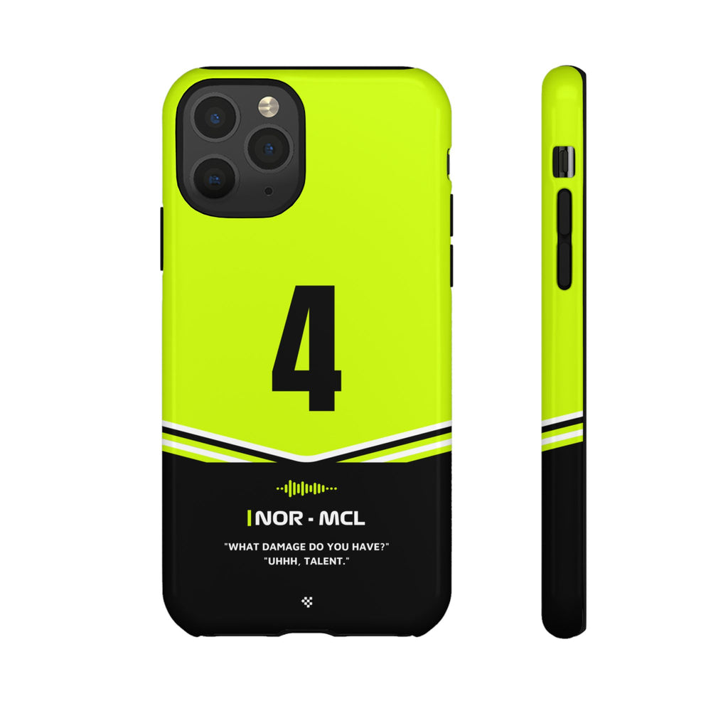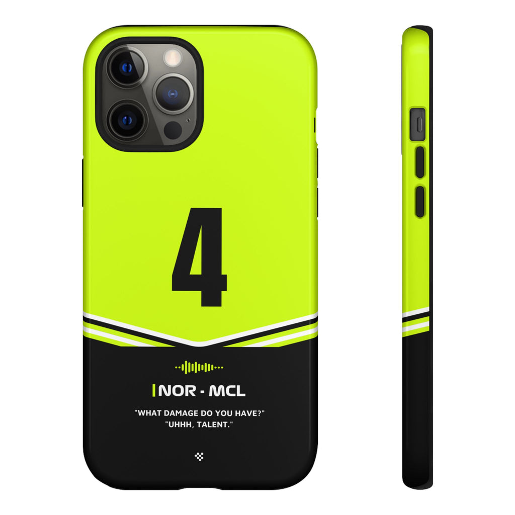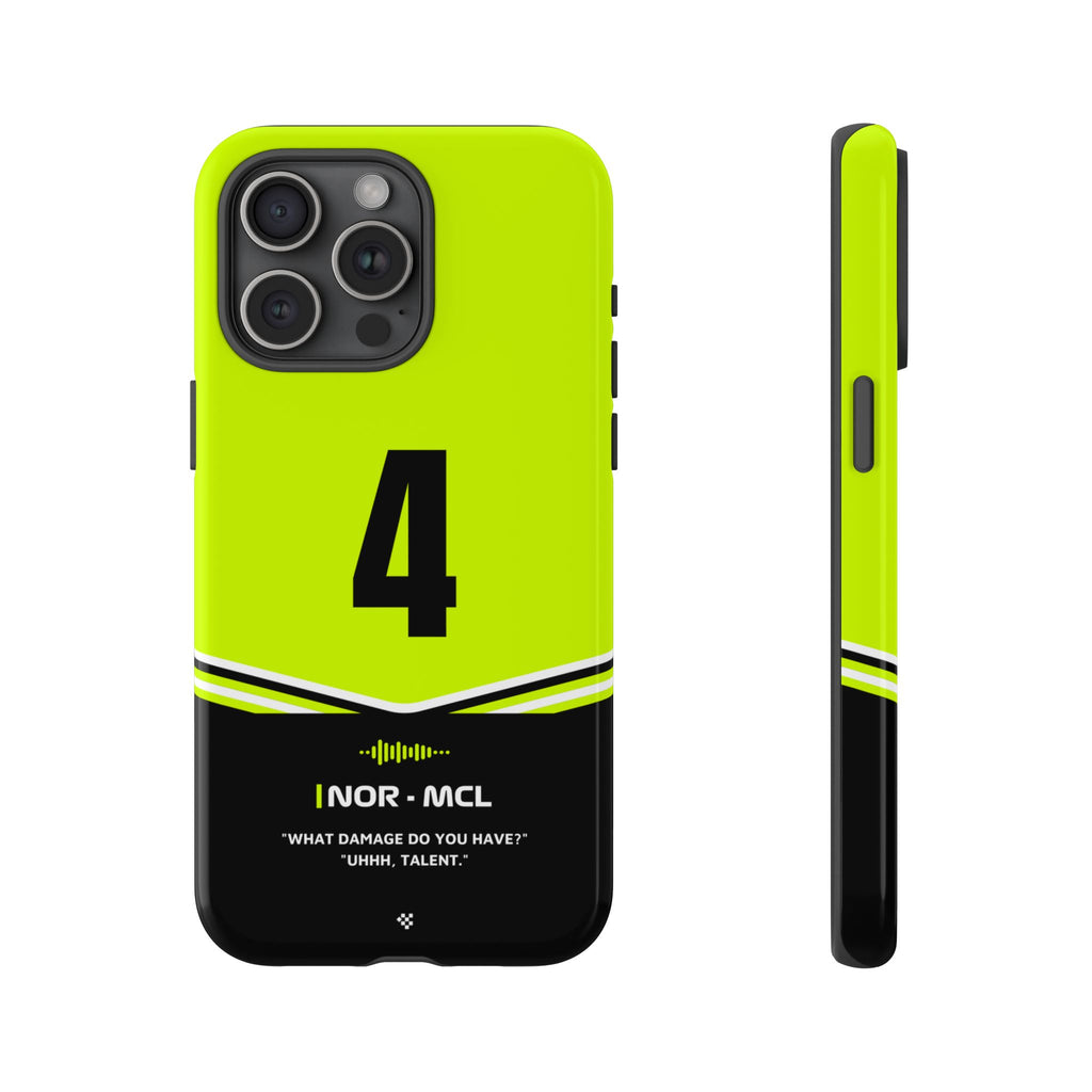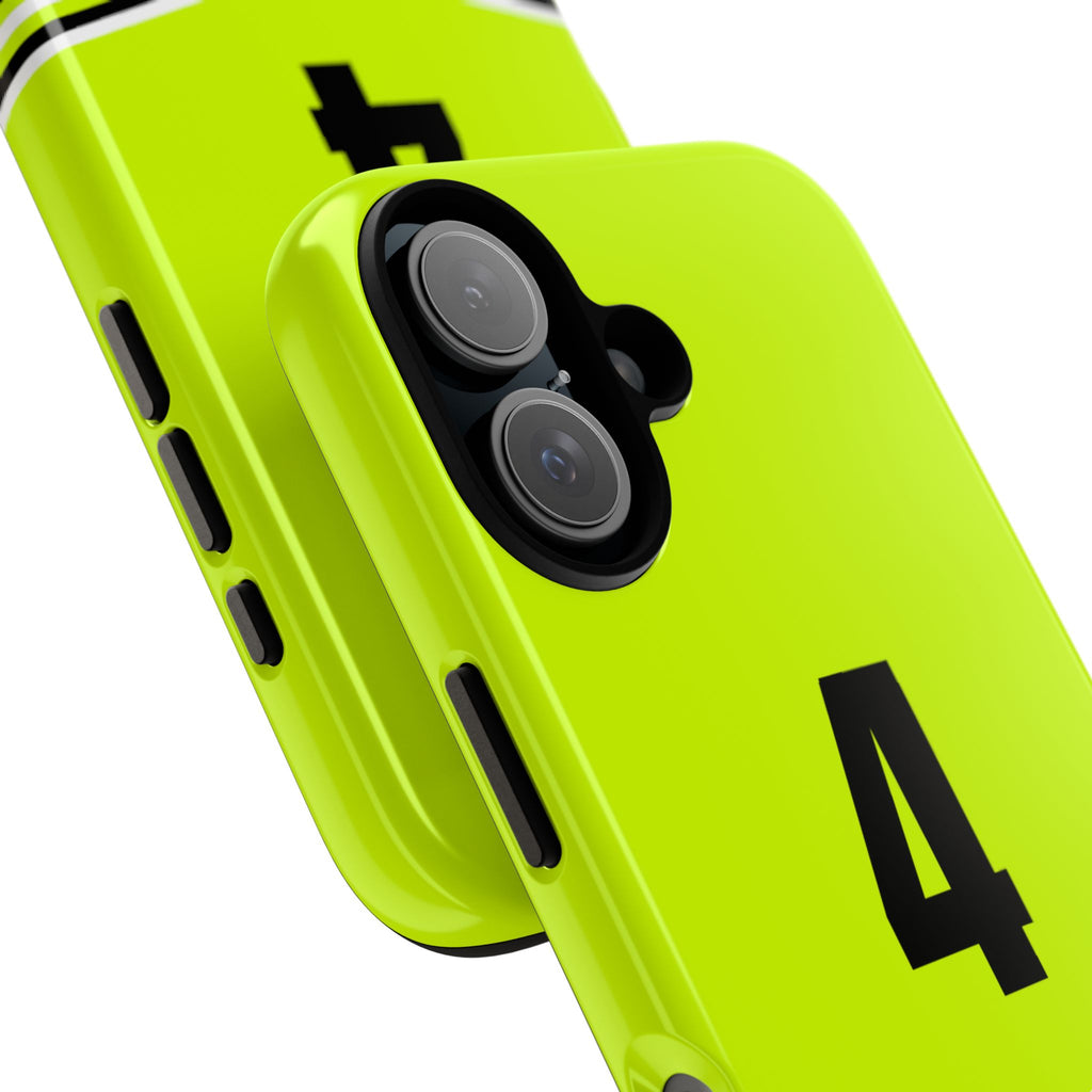 Support your favorite F1 driver with the exclusive Lando Norris F1 2025 Helmet Phone Case. It's the perfect accessory for every passionate Formula 1 and Norris fan. Featuring Lando's iconic #4 race number and his bold 2025 helmet colors, this yellow green phone case brings racing energy straight to your hand.