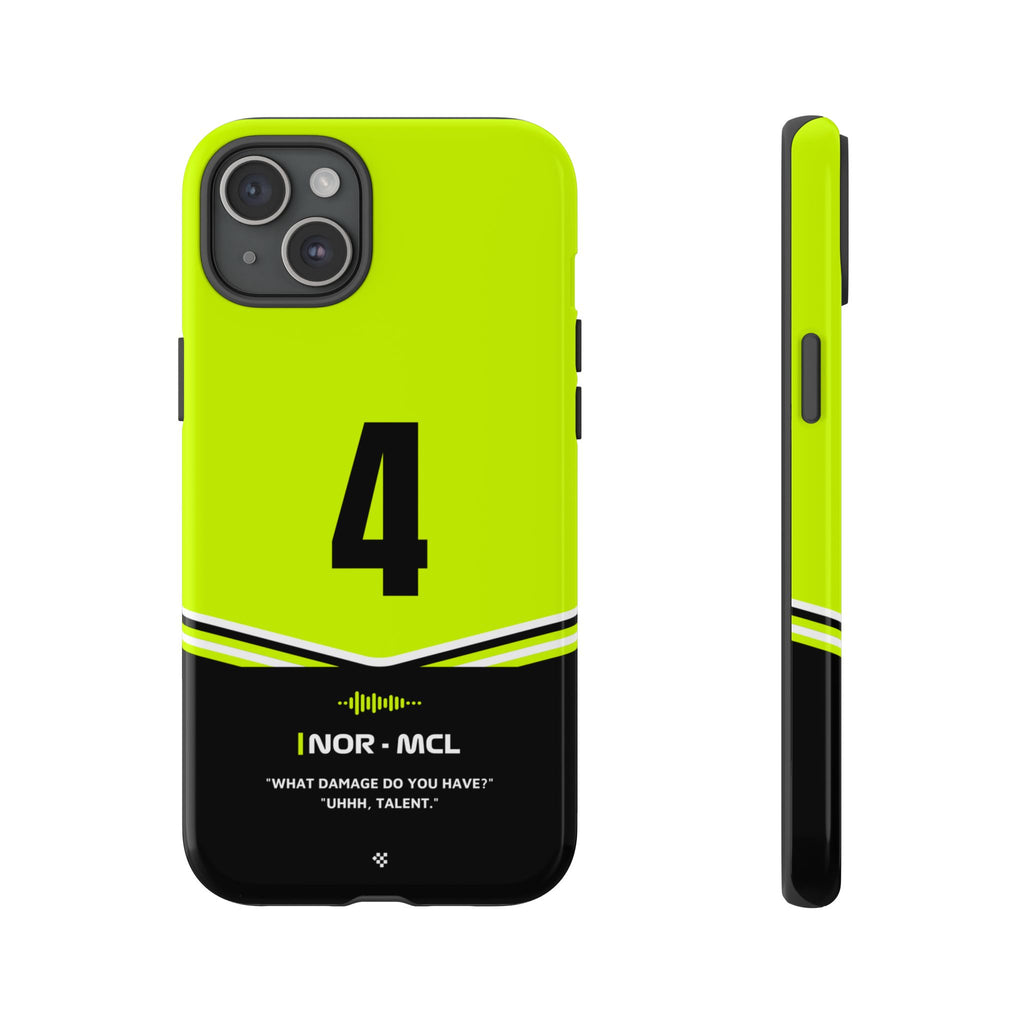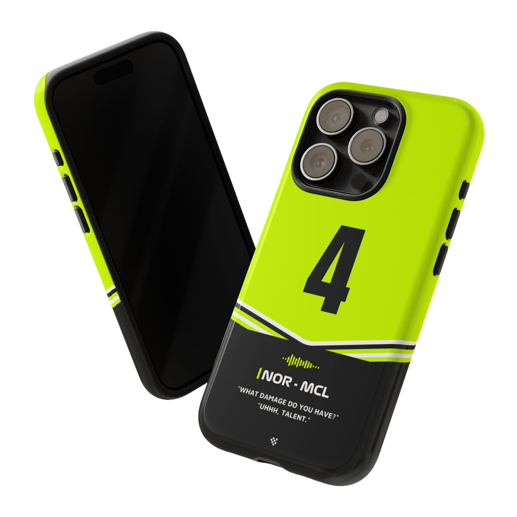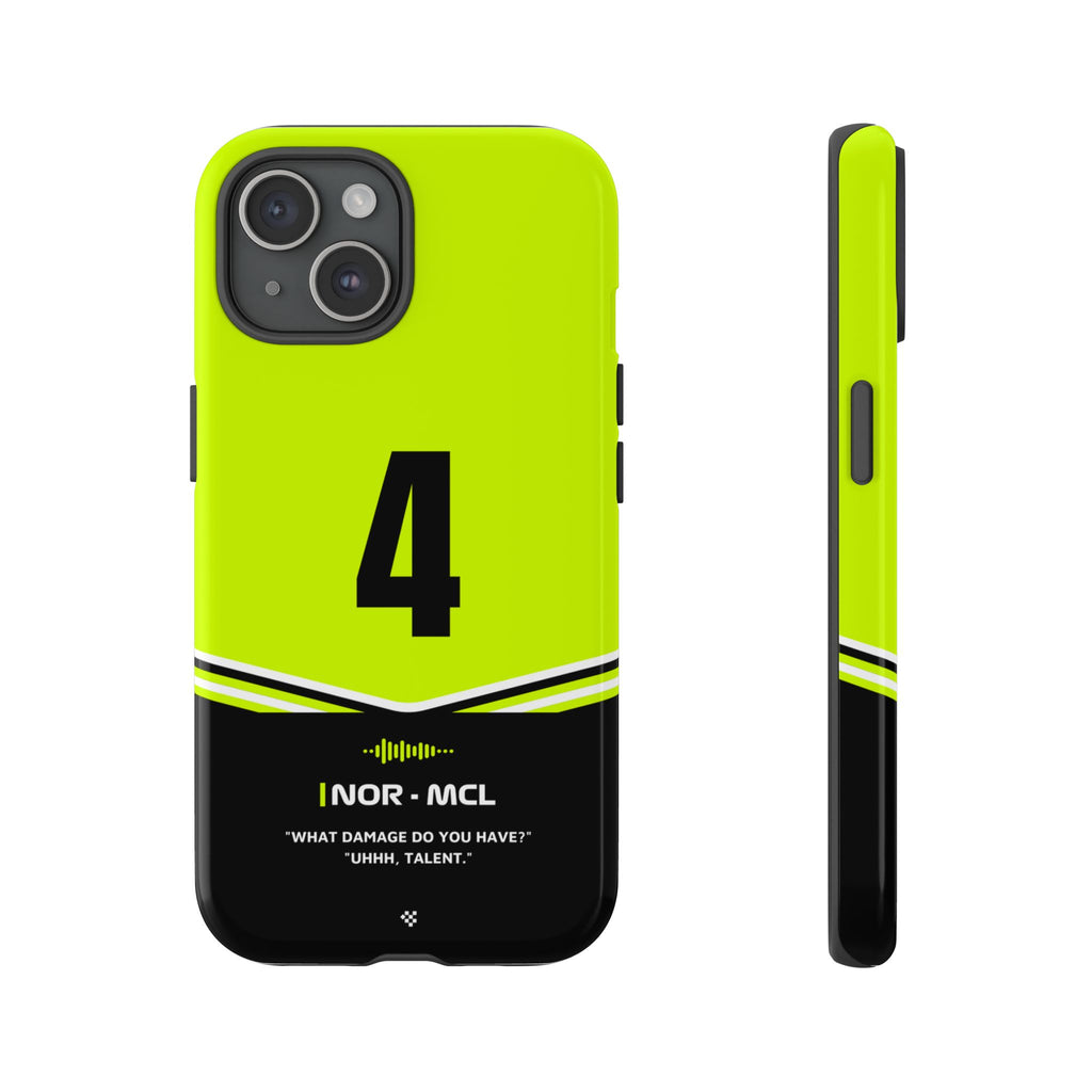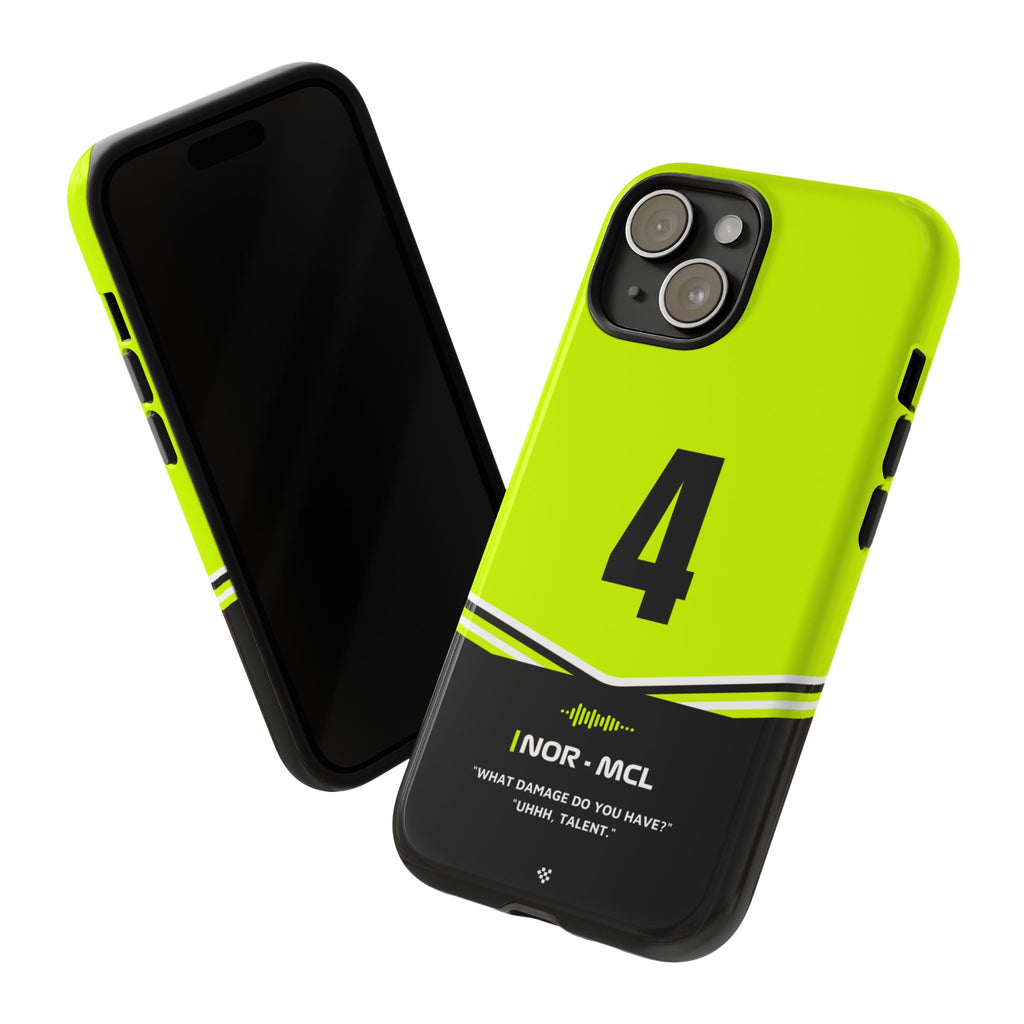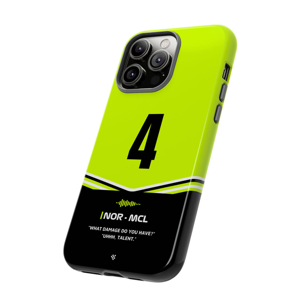 Support your favorite F1 driver with the exclusive Lando Norris F1 2025 Helmet Phone Case. It's the perfect accessory for every passionate Formula 1 and Norris fan. Featuring Lando's iconic #4 race number and his bold 2025 helmet colors, this yellow green phone case brings racing energy straight to your hand.
