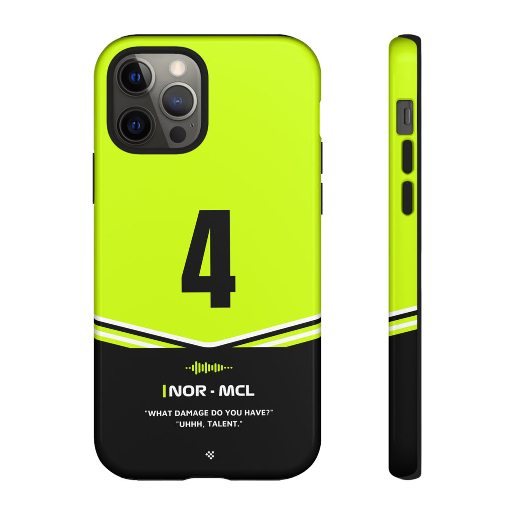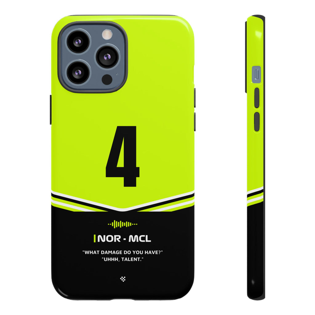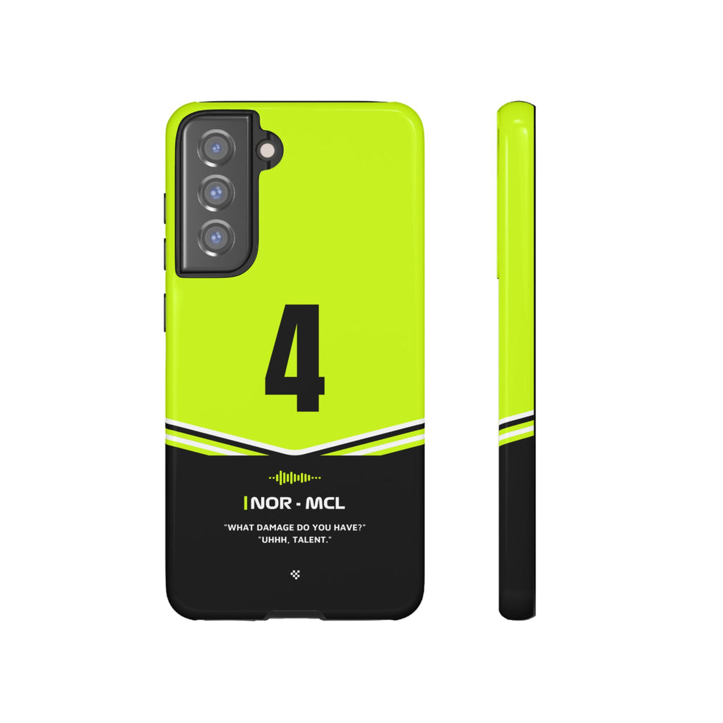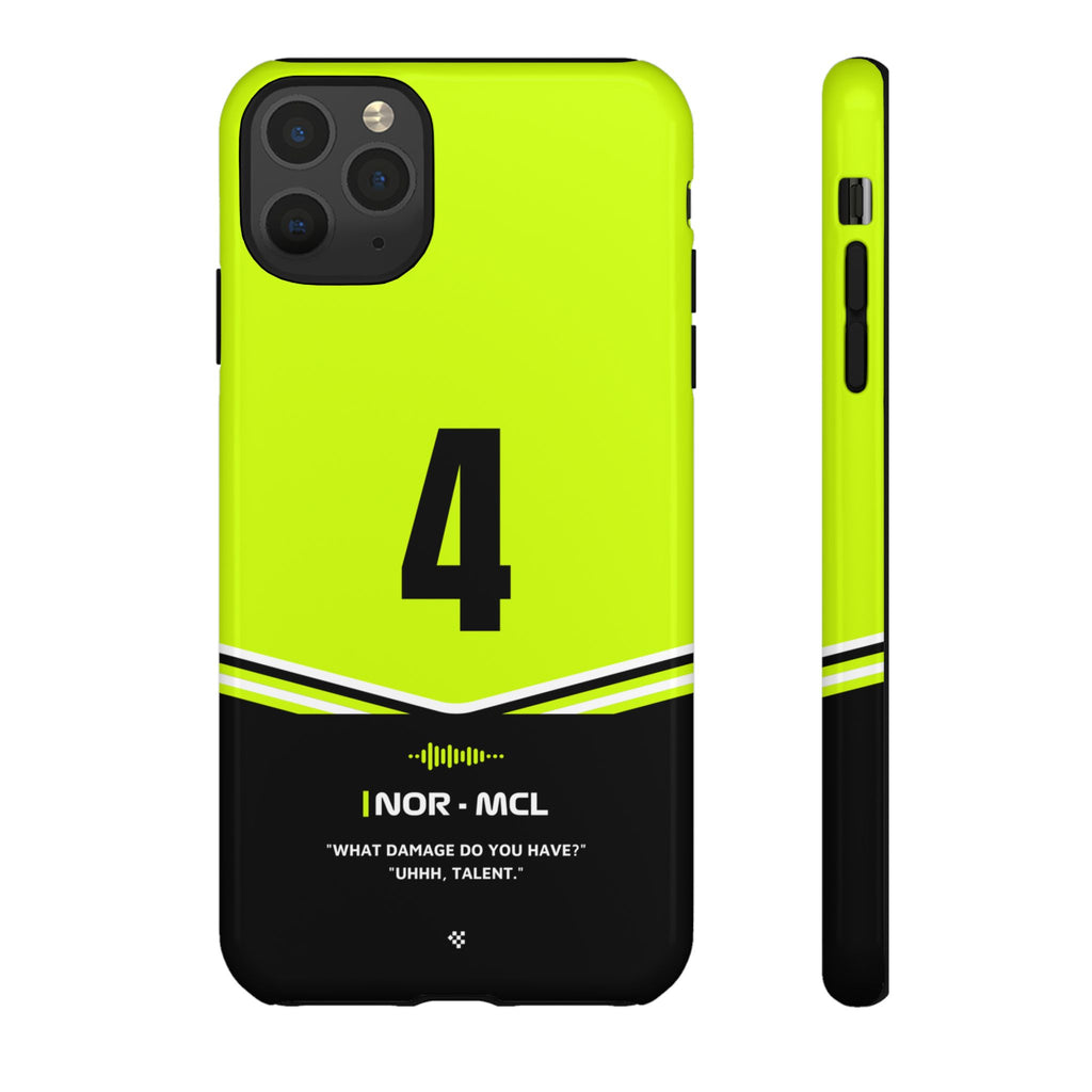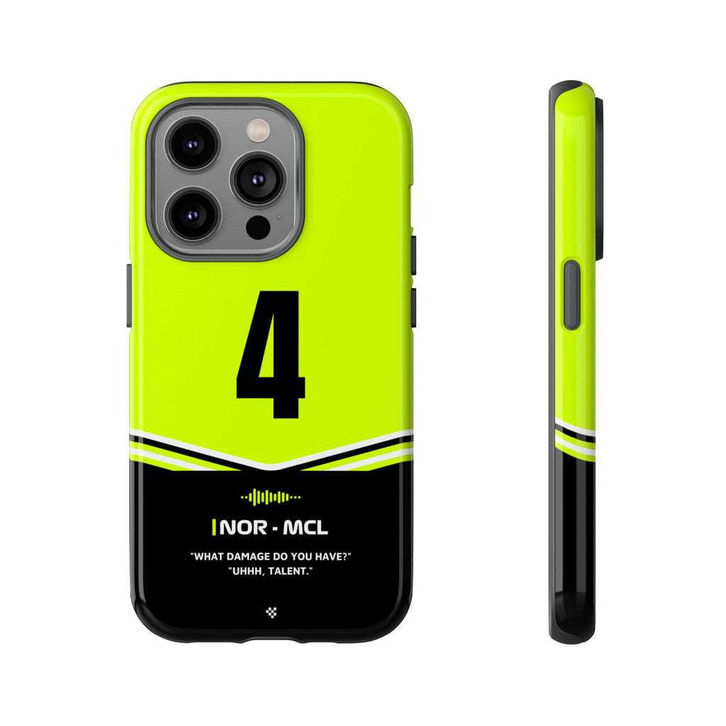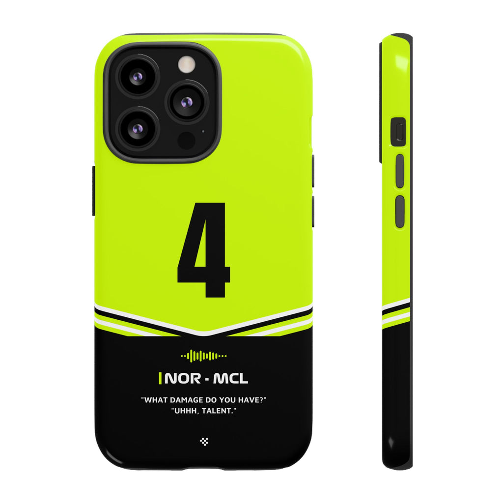 Support your favorite F1 driver with the exclusive Lando Norris F1 2025 Helmet Phone Case. It's the perfect accessory for every passionate Formula 1 and Norris fan. Featuring Lando's iconic #4 race number and his bold 2025 helmet colors, this yellow green phone case brings racing energy straight to your hand.