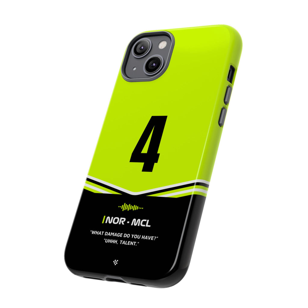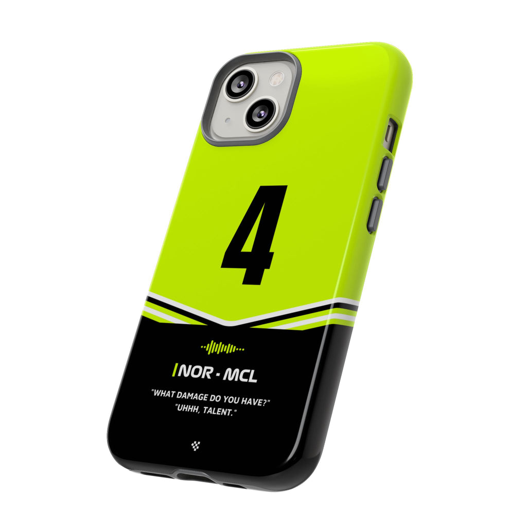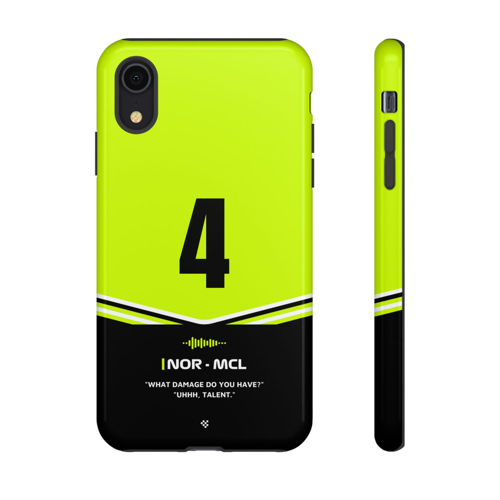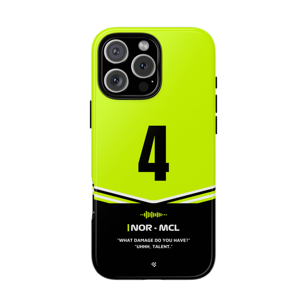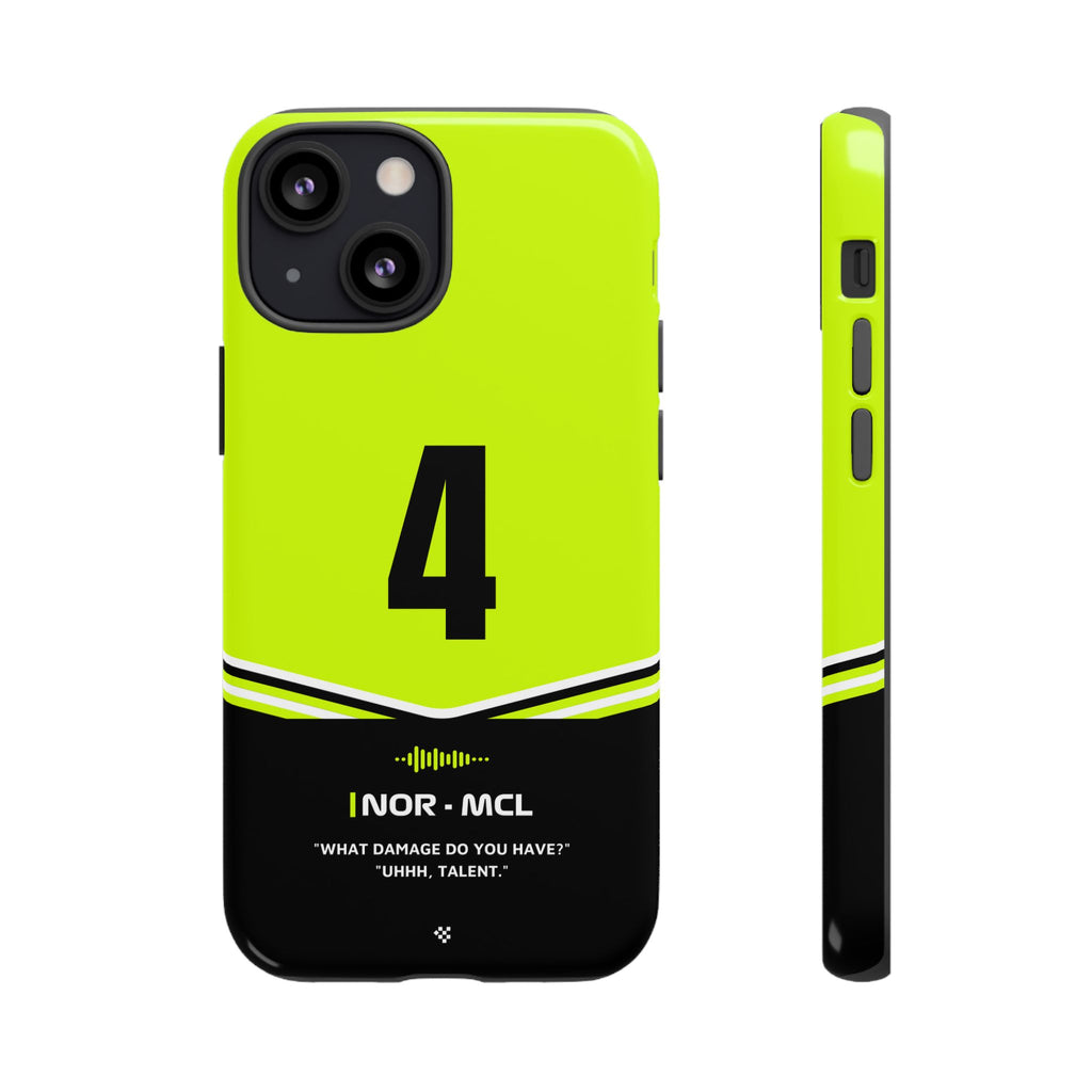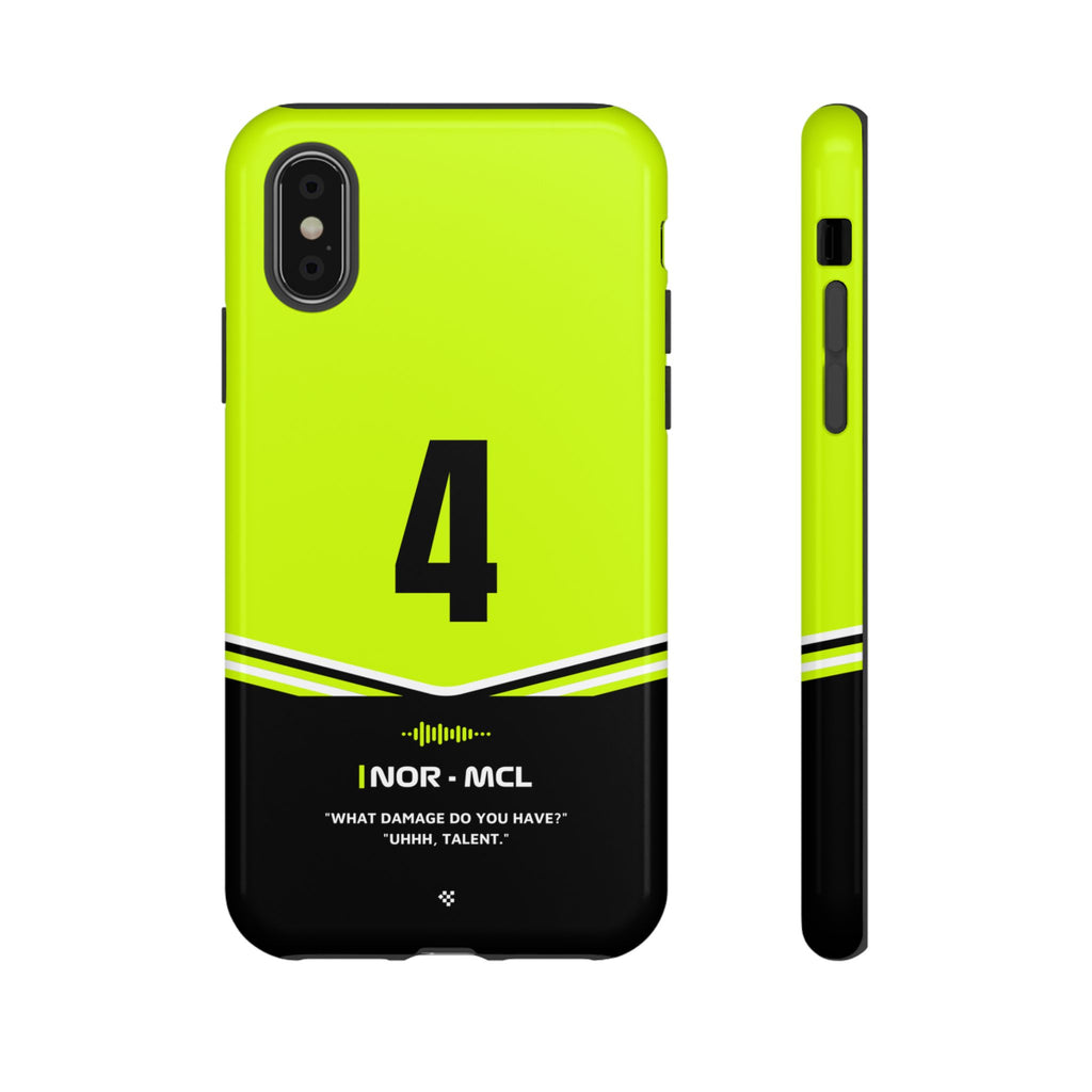 Support your favorite F1 driver with the exclusive Lando Norris F1 2025 Helmet Phone Case. It's the perfect accessory for every passionate Formula 1 and Norris fan. Featuring Lando's iconic #4 race number and his bold 2025 helmet colors, this yellow green phone case brings racing energy straight to your hand.