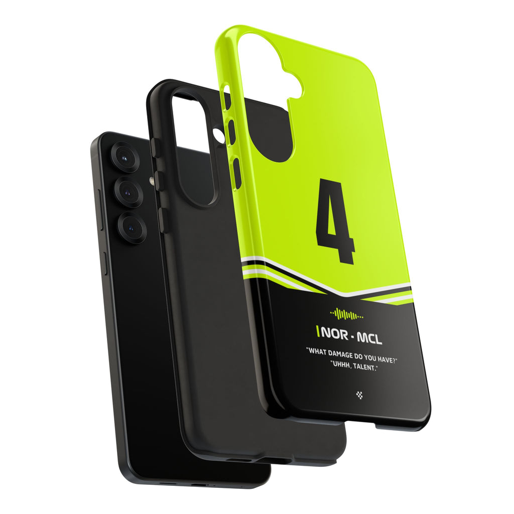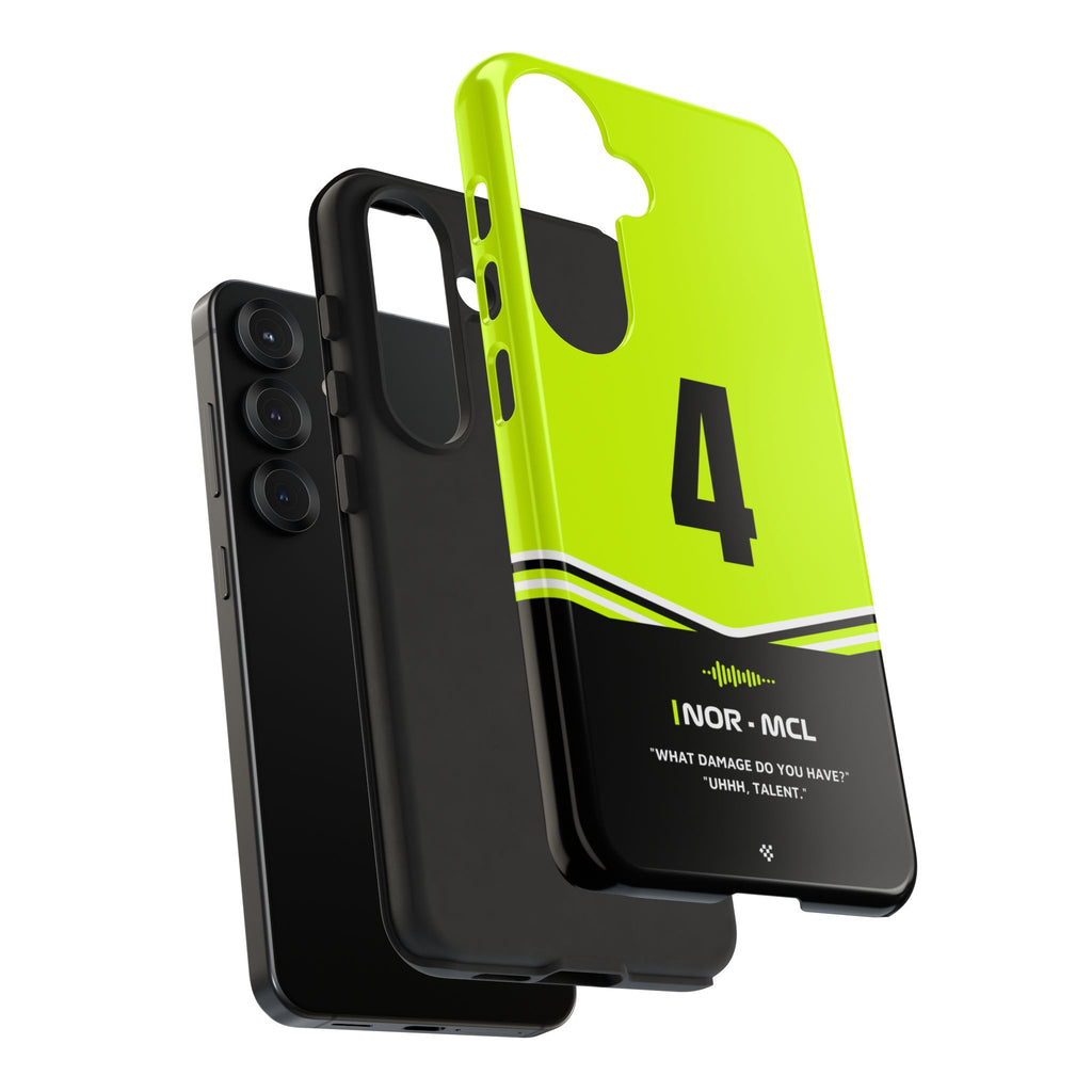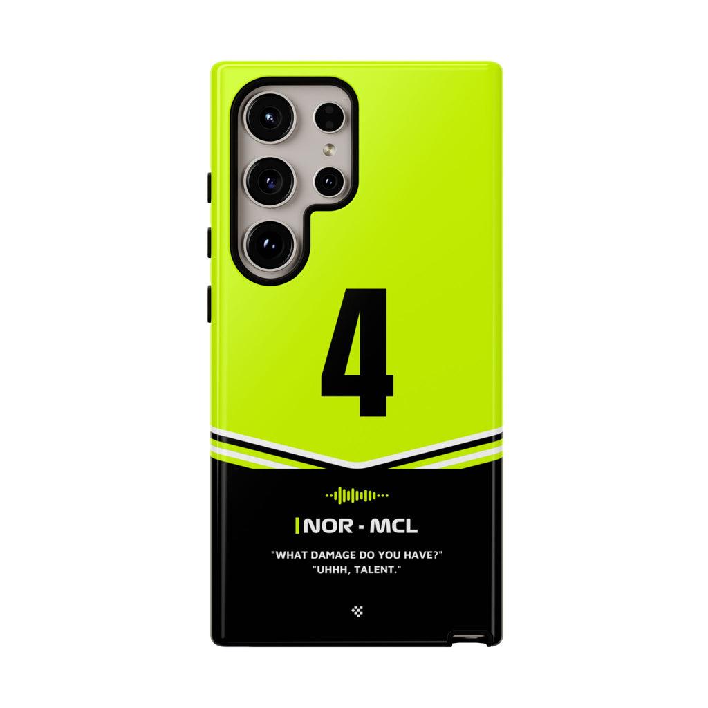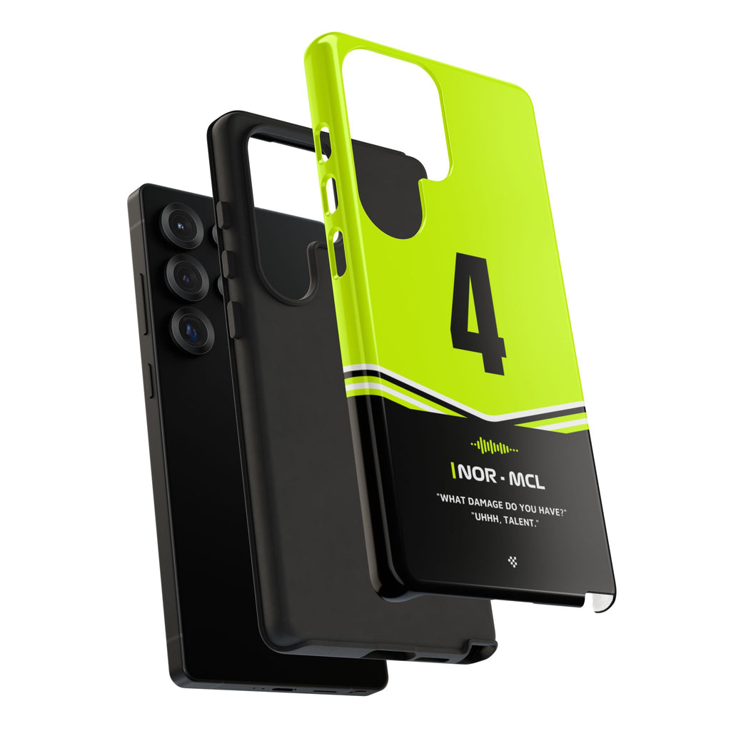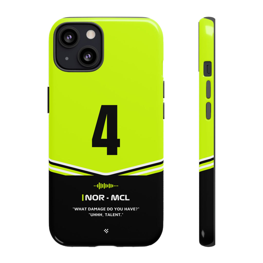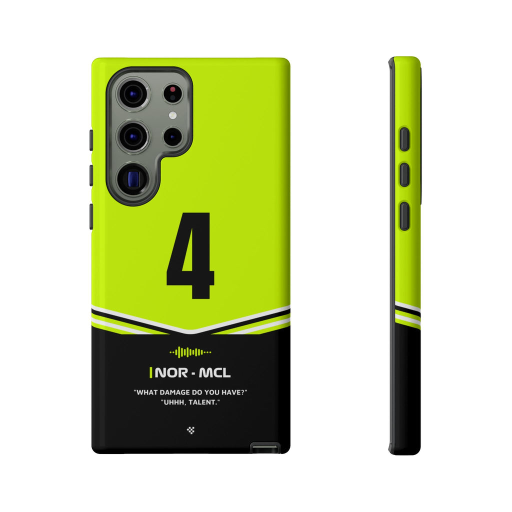 Support your favorite F1 driver with the exclusive Lando Norris F1 2025 Helmet Phone Case. It's the perfect accessory for every passionate Formula 1 and Norris fan. Featuring Lando's iconic #4 race number and his bold 2025 helmet colors, this yellow green phone case brings racing energy straight to your hand.