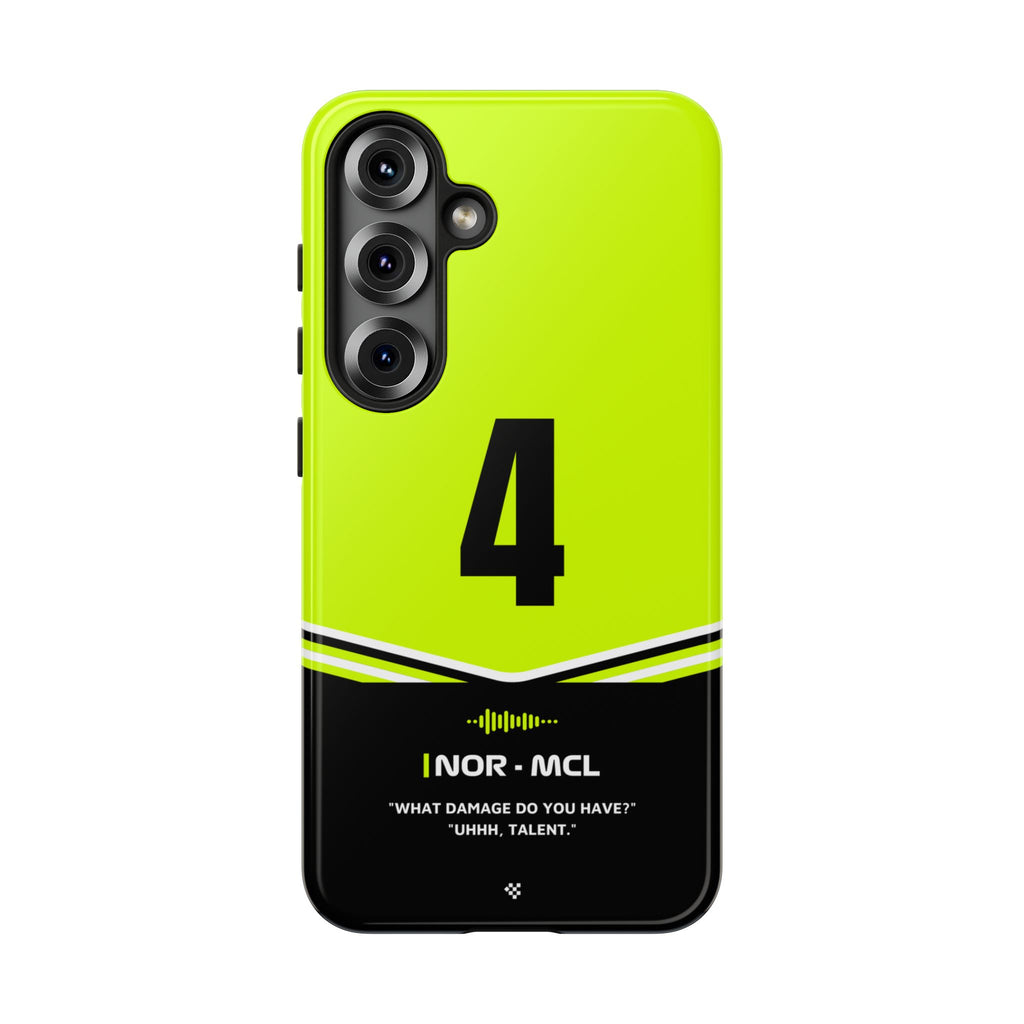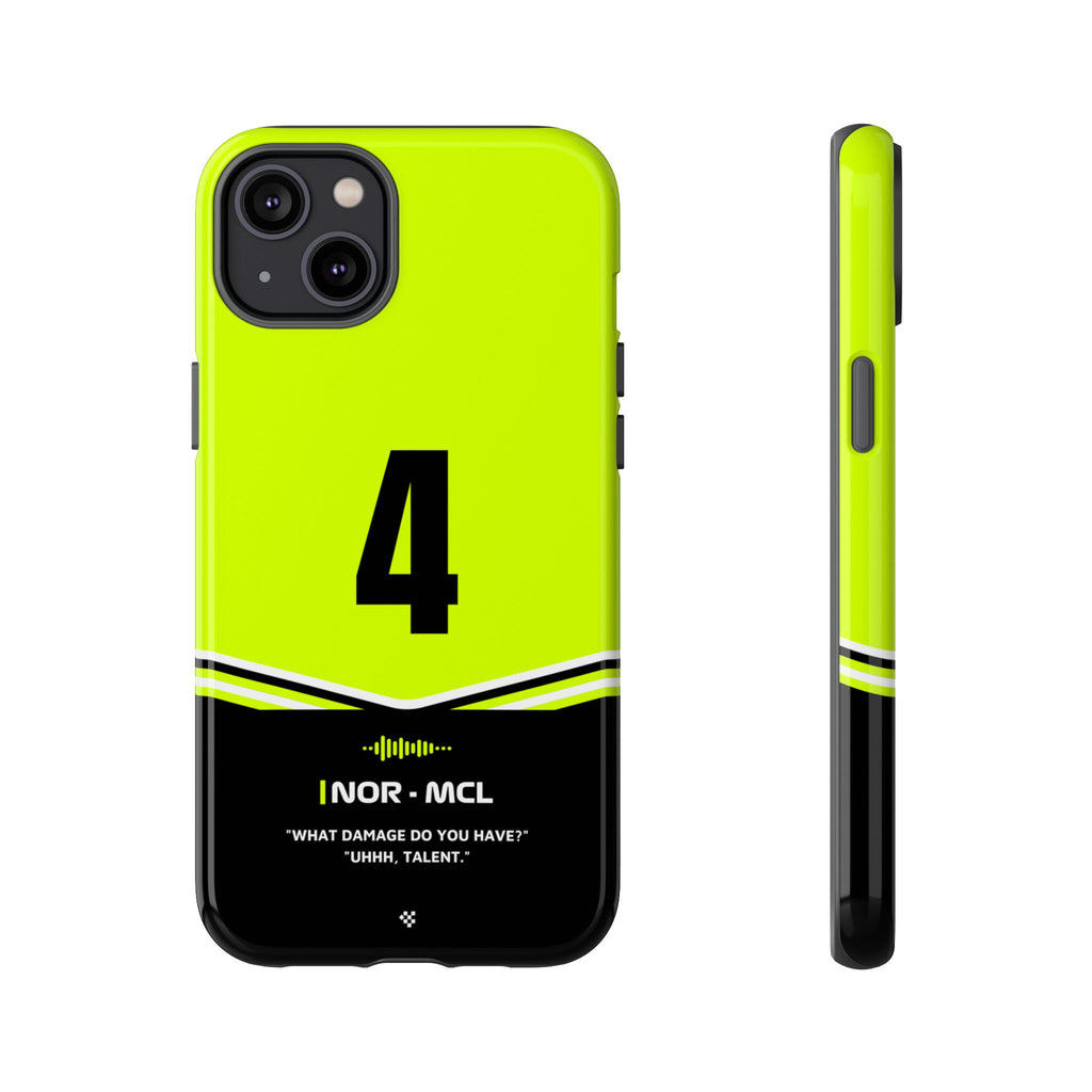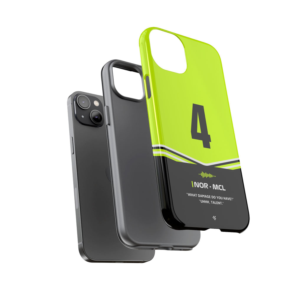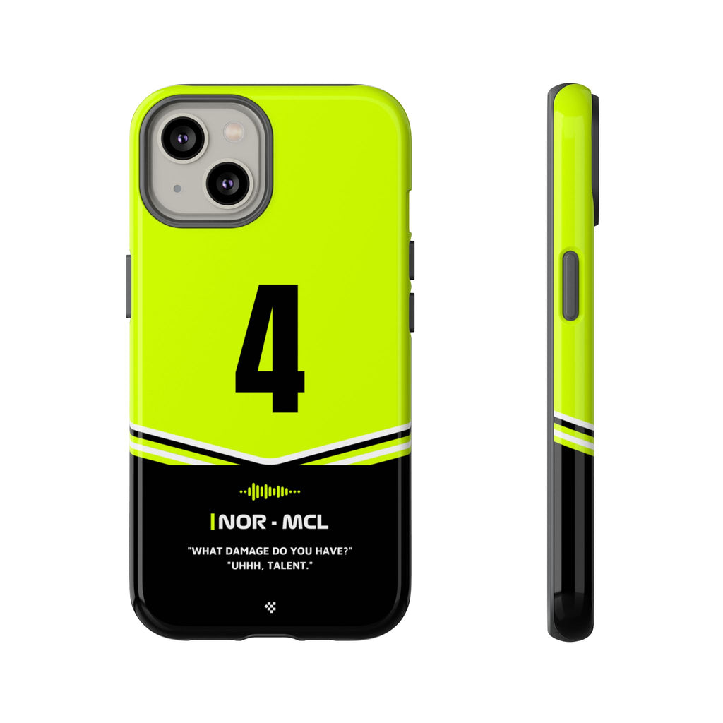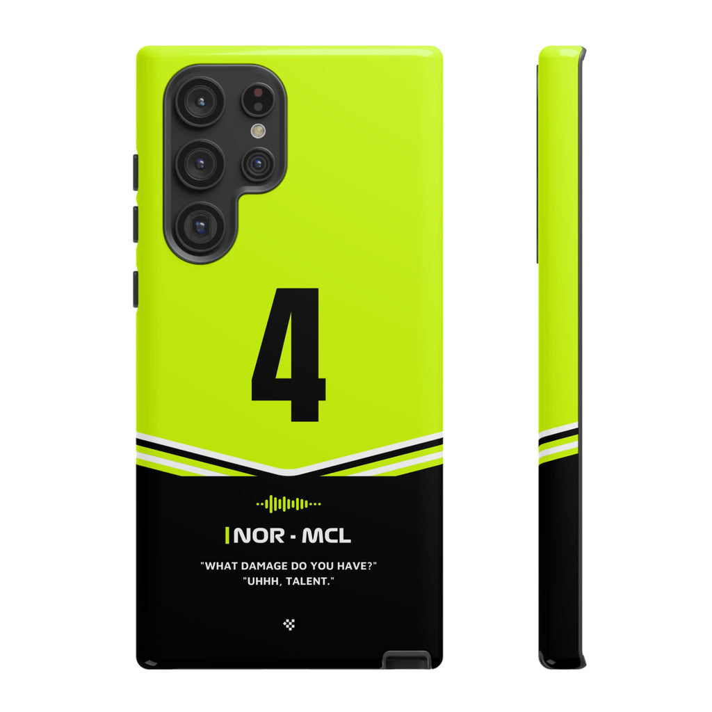 Support your favorite F1 driver with the exclusive Lando Norris F1 2025 Helmet Phone Case. It's the perfect accessory for every passionate Formula 1 and Norris fan. Featuring Lando's iconic #4 race number and his bold 2025 helmet colors, this yellow green phone case brings racing energy straight to your hand.