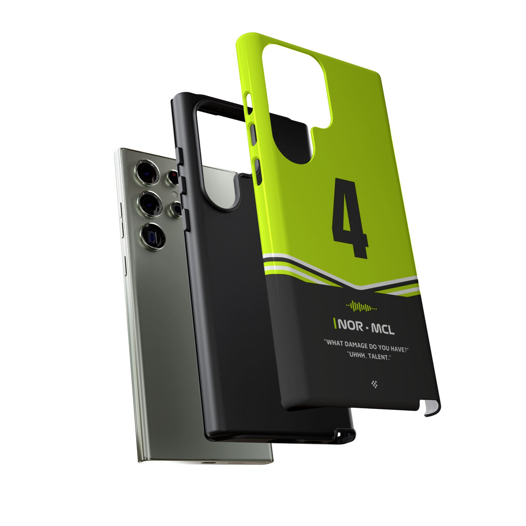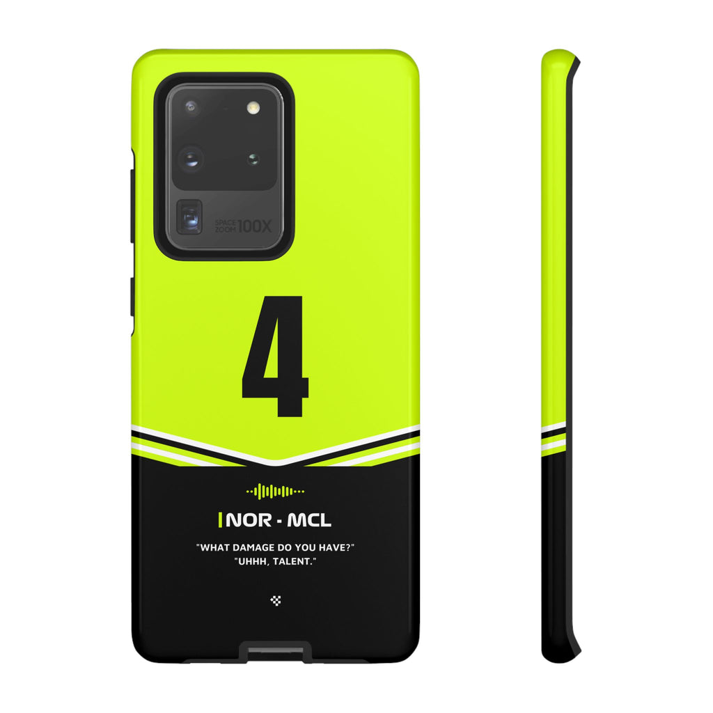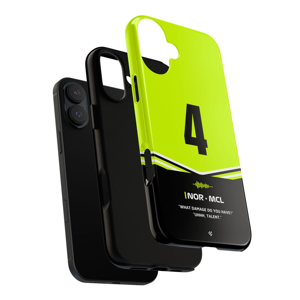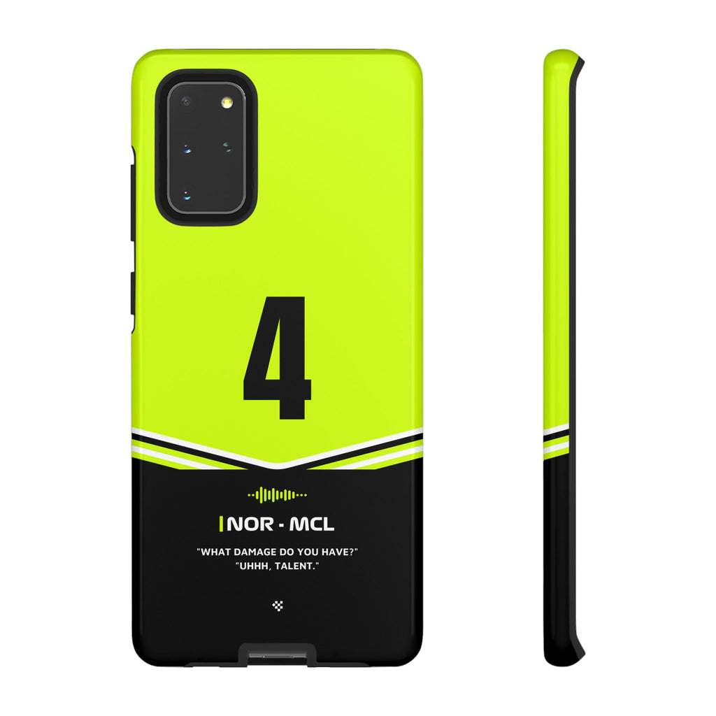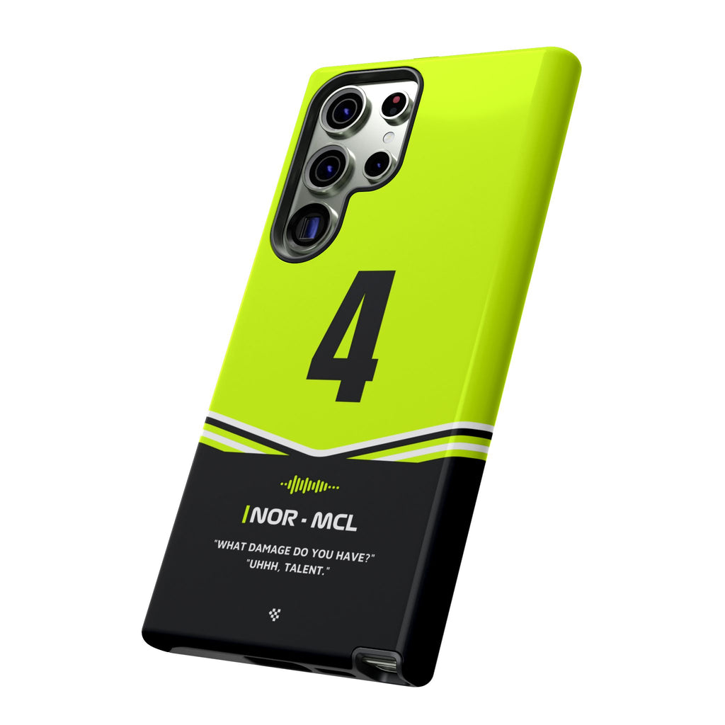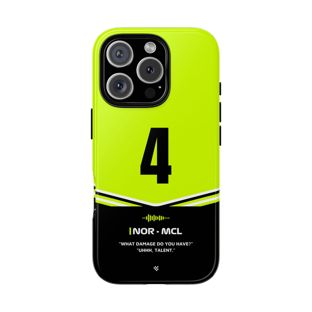 Support your favorite F1 driver with the exclusive Lando Norris F1 2025 Helmet Phone Case. It's the perfect accessory for every passionate Formula 1 and Norris fan. Featuring Lando's iconic #4 race number and his bold 2025 helmet colors, this yellow green phone case brings racing energy straight to your hand.