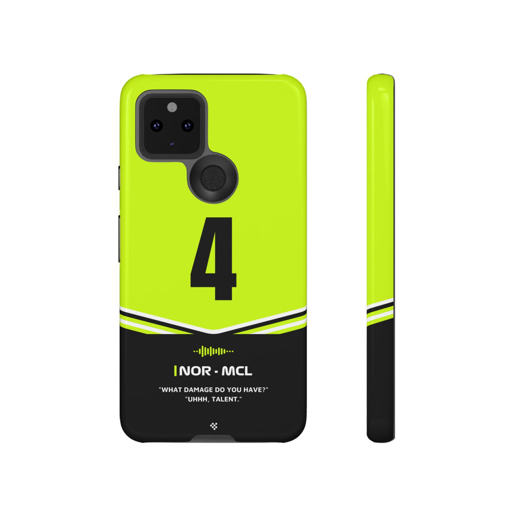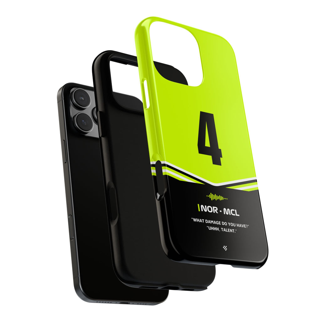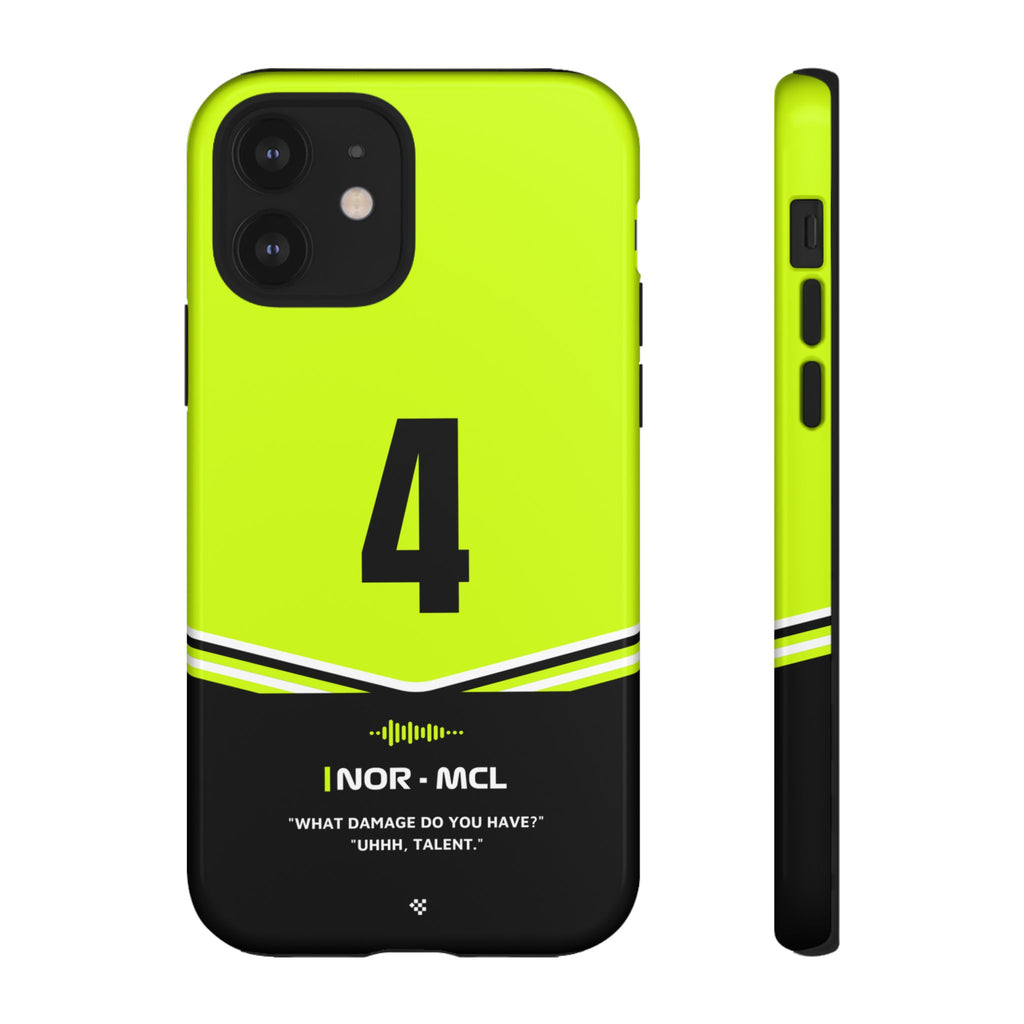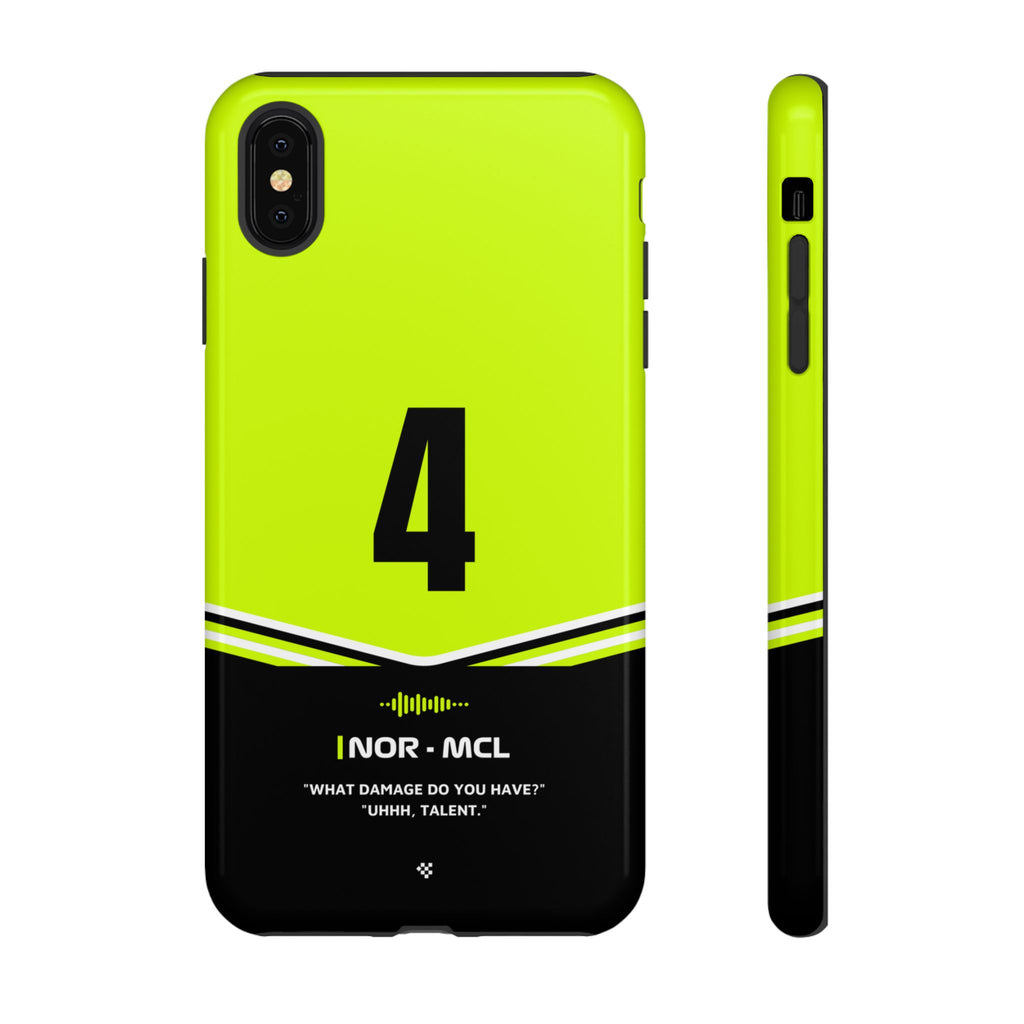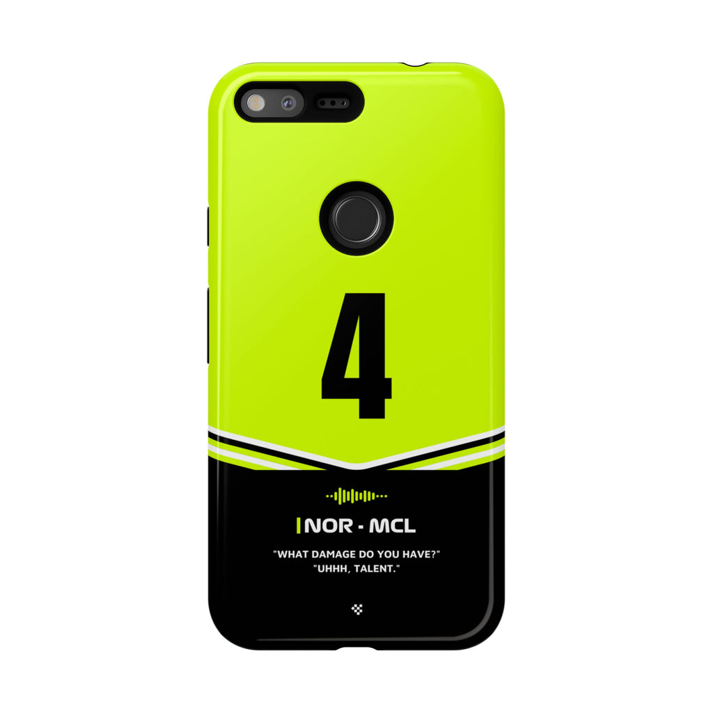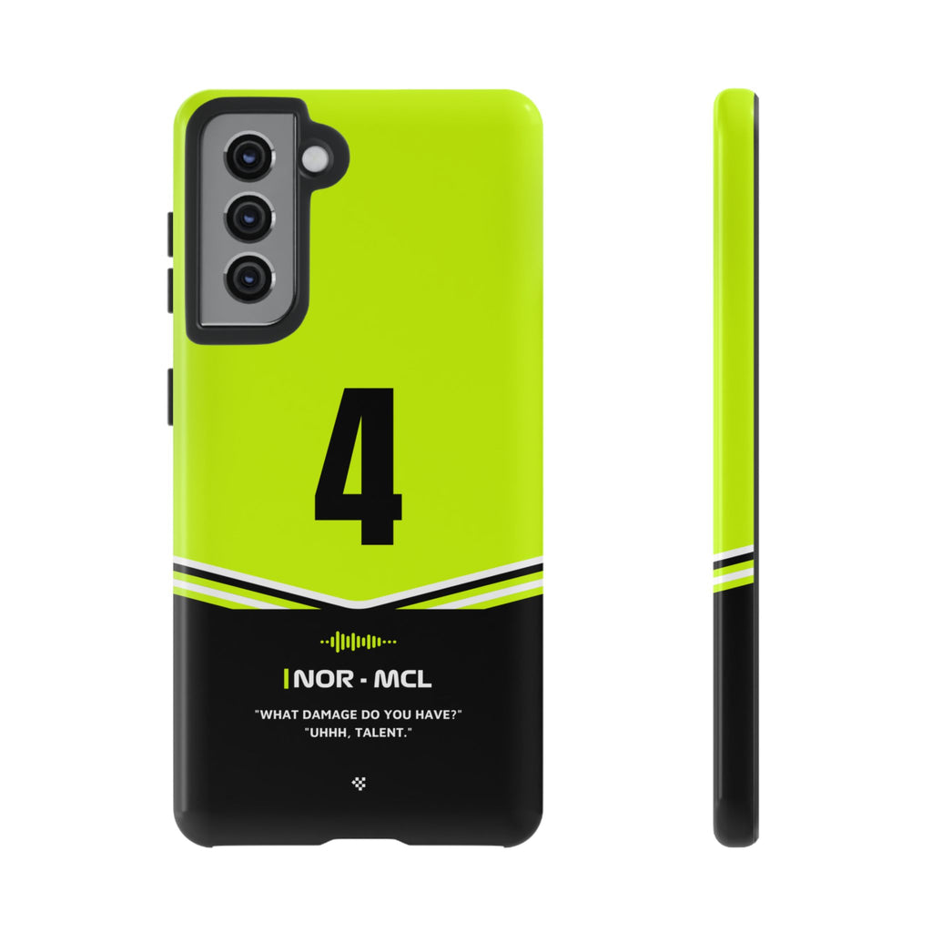 Support your favorite F1 driver with the exclusive Lando Norris F1 2025 Helmet Phone Case. It's the perfect accessory for every passionate Formula 1 and Norris fan. Featuring Lando's iconic #4 race number and his bold 2025 helmet colors, this yellow green phone case brings racing energy straight to your hand.
