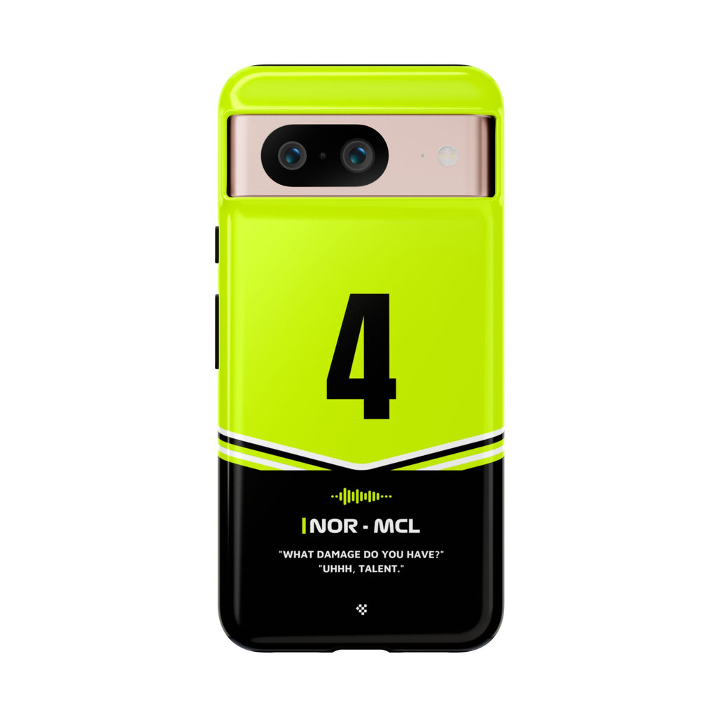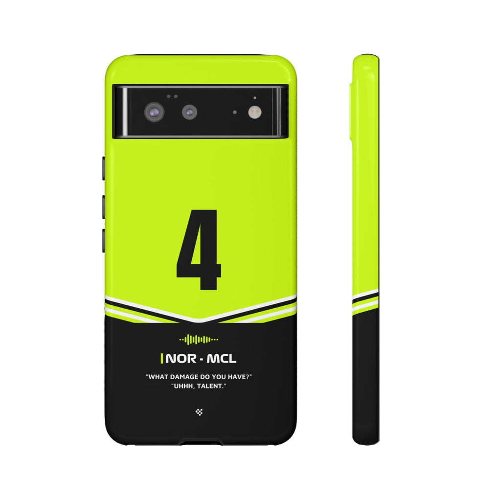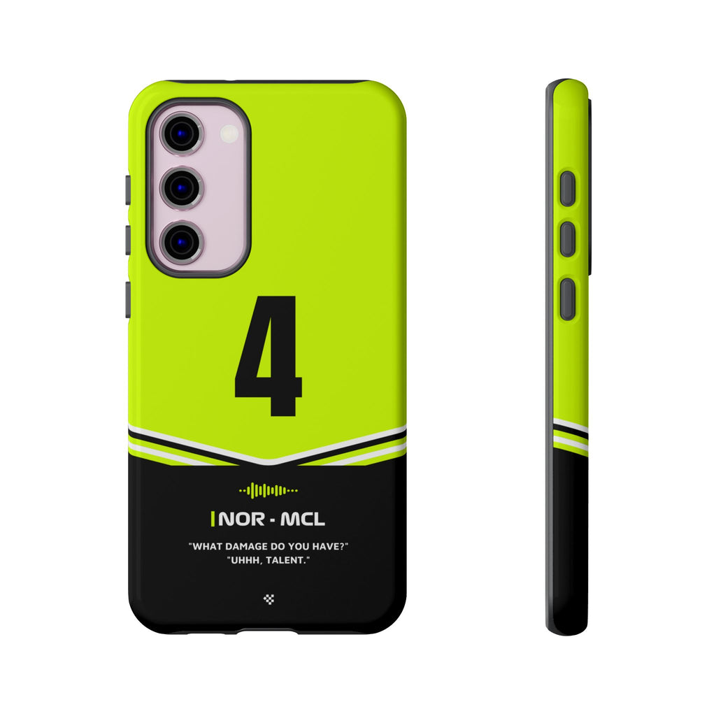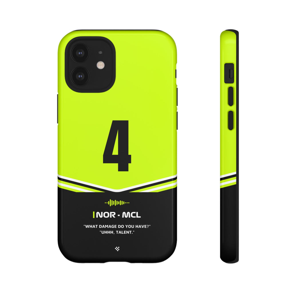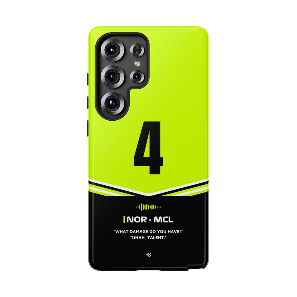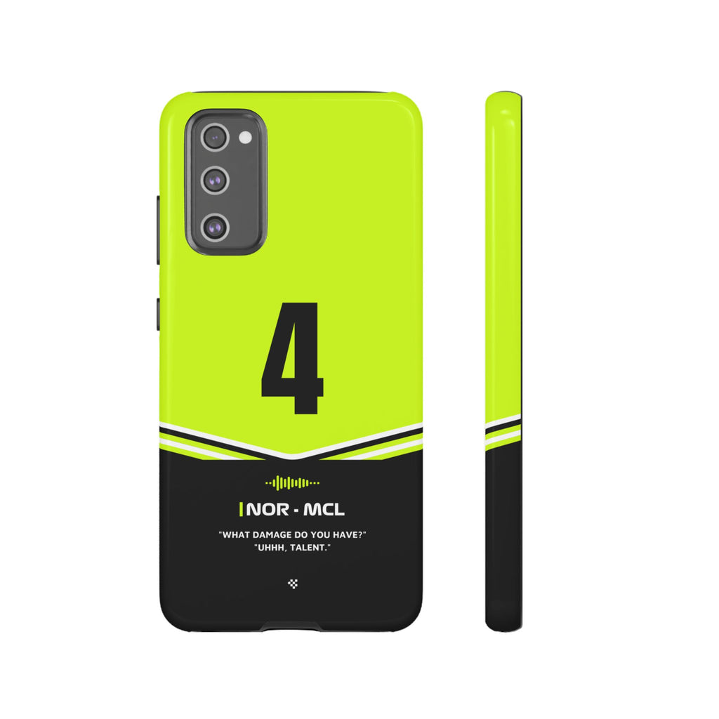 Support your favorite F1 driver with the exclusive Lando Norris F1 2025 Helmet Phone Case. It's the perfect accessory for every passionate Formula 1 and Norris fan. Featuring Lando's iconic #4 race number and his bold 2025 helmet colors, this yellow green phone case brings racing energy straight to your hand.