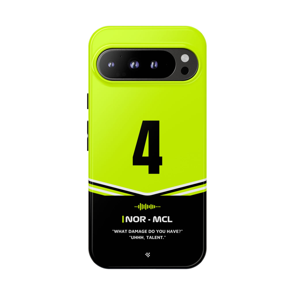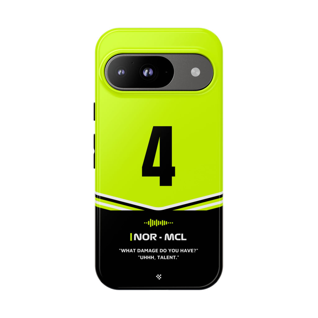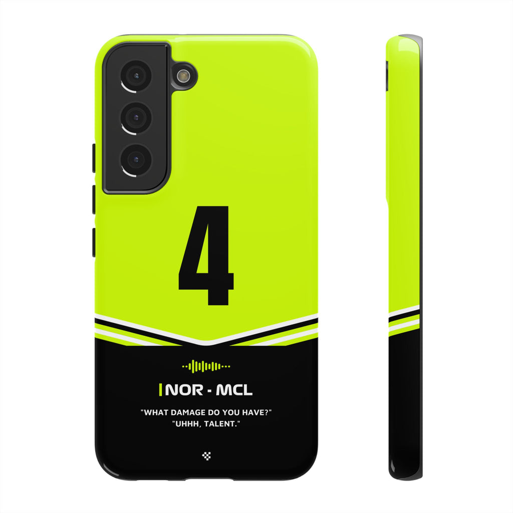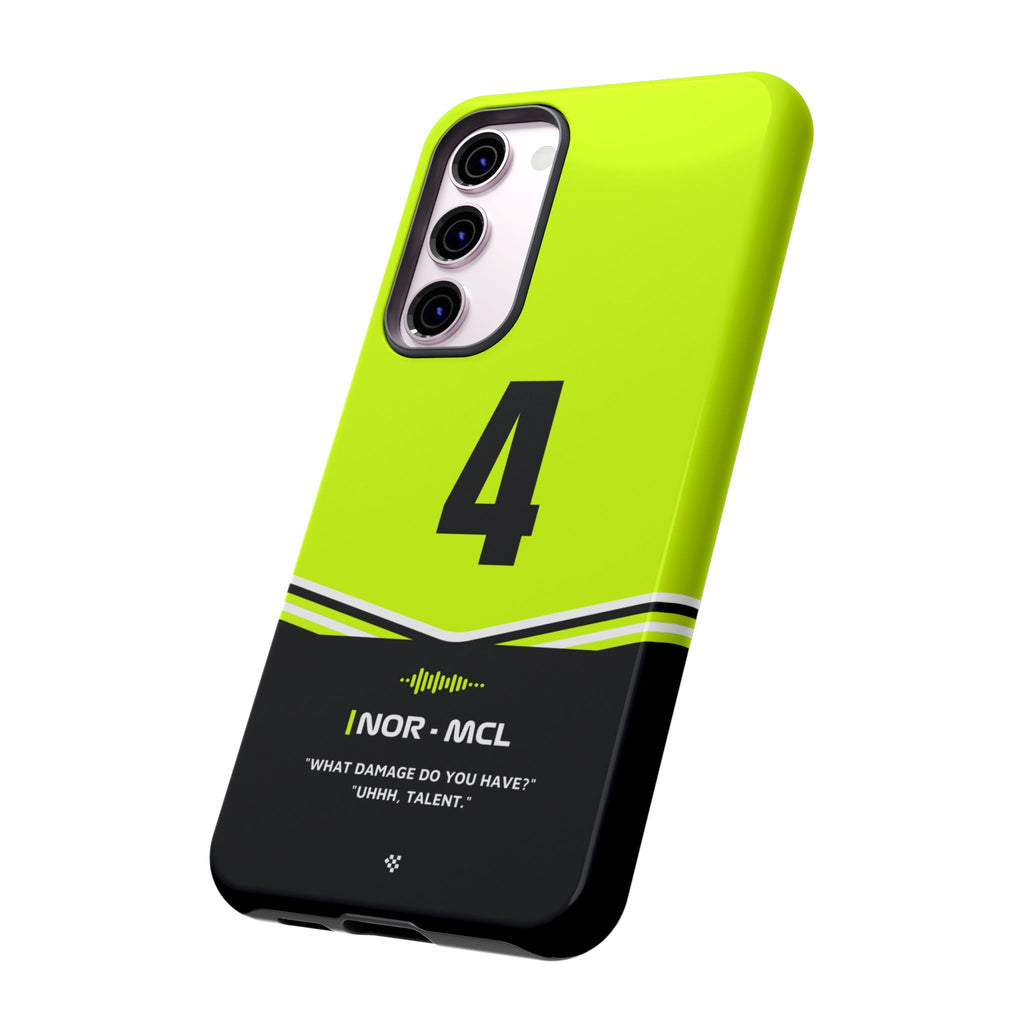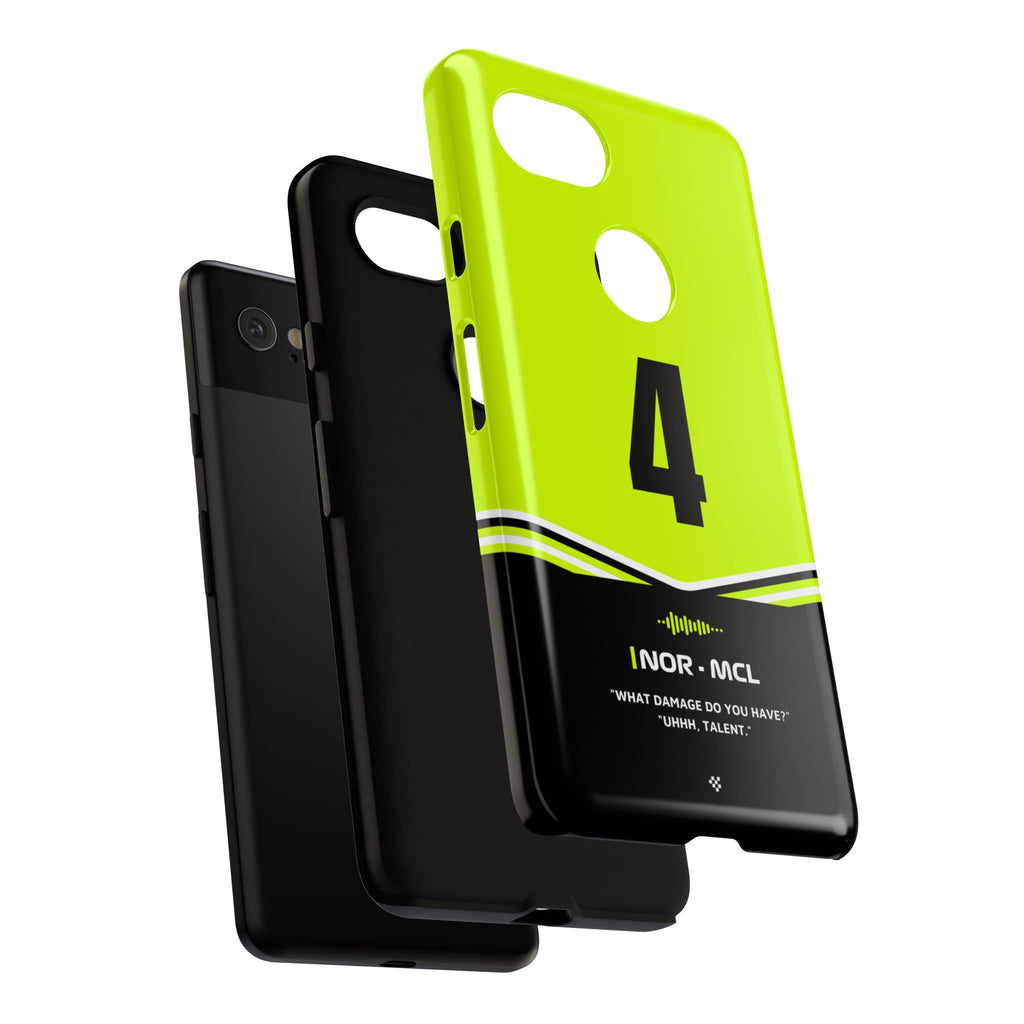 Support your favorite F1 driver with the exclusive Lando Norris F1 2025 Helmet Phone Case. It's the perfect accessory for every passionate Formula 1 and Norris fan. Featuring Lando's iconic #4 race number and his bold 2025 helmet colors, this yellow green phone case brings racing energy straight to your hand.