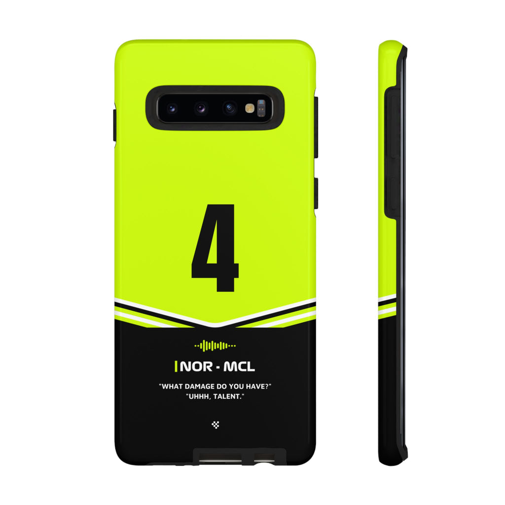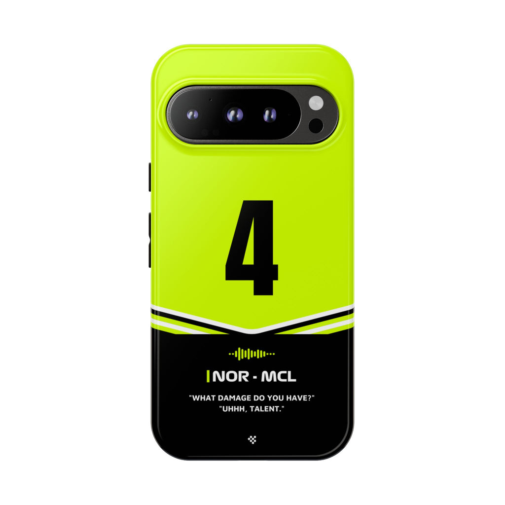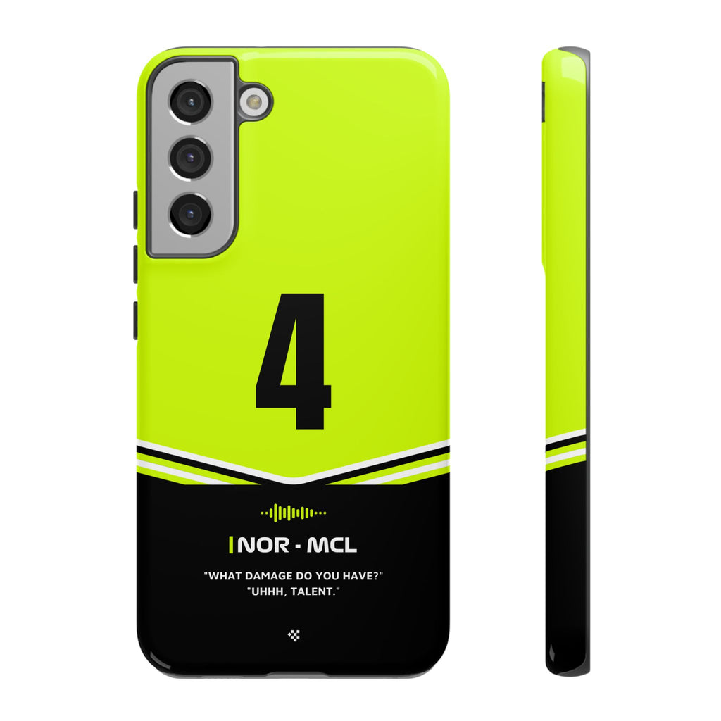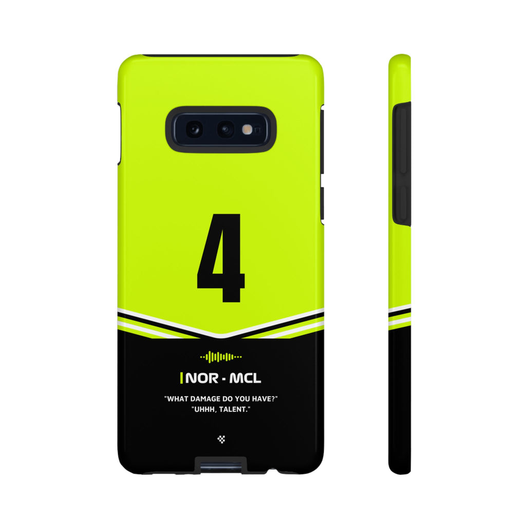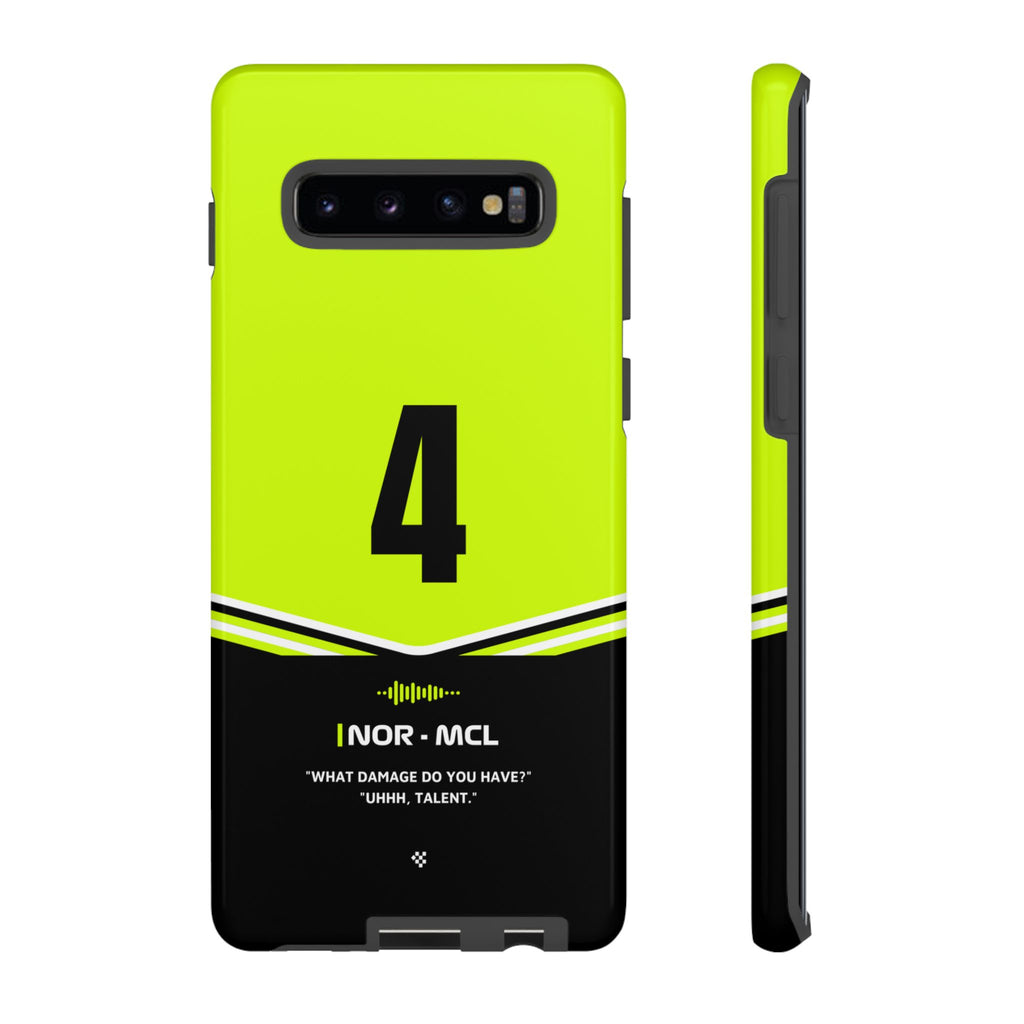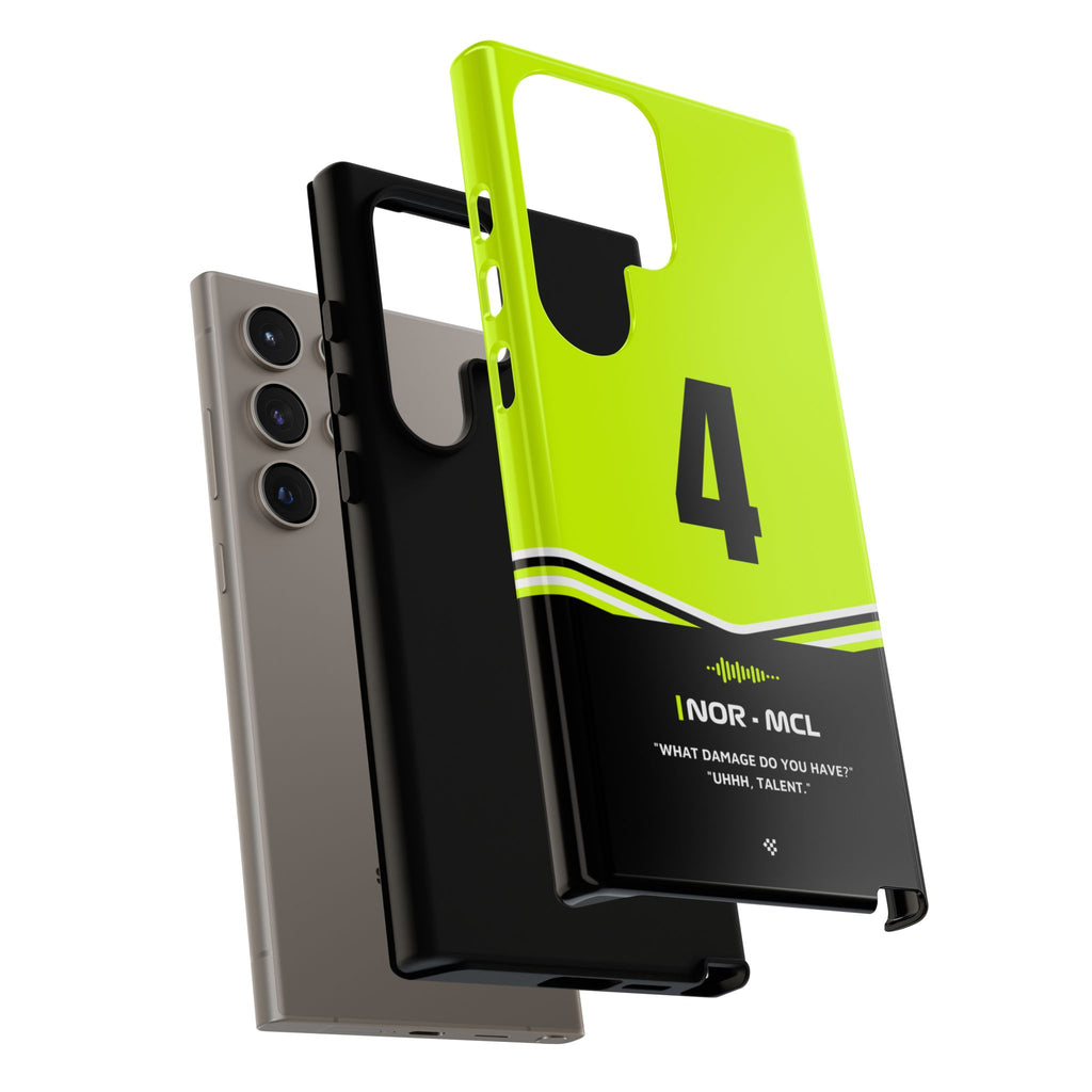 Support your favorite F1 driver with the exclusive Lando Norris F1 2025 Helmet Phone Case. It's the perfect accessory for every passionate Formula 1 and Norris fan. Featuring Lando's iconic #4 race number and his bold 2025 helmet colors, this yellow green phone case brings racing energy straight to your hand.