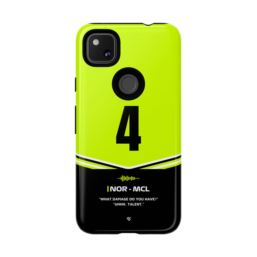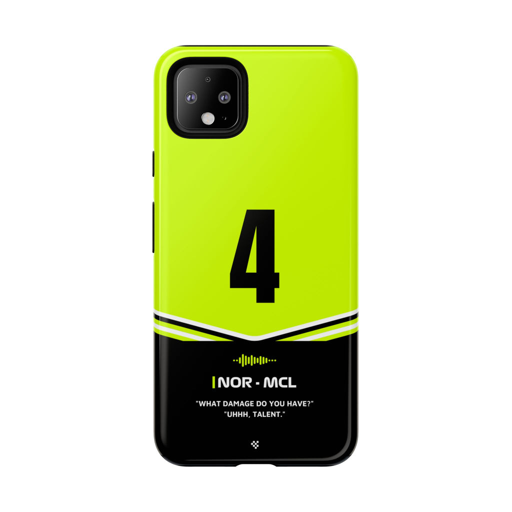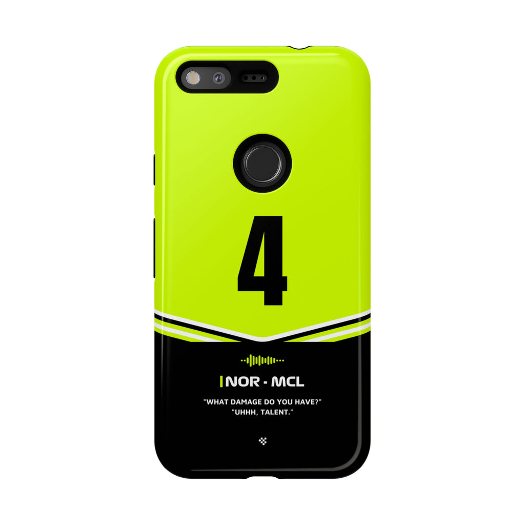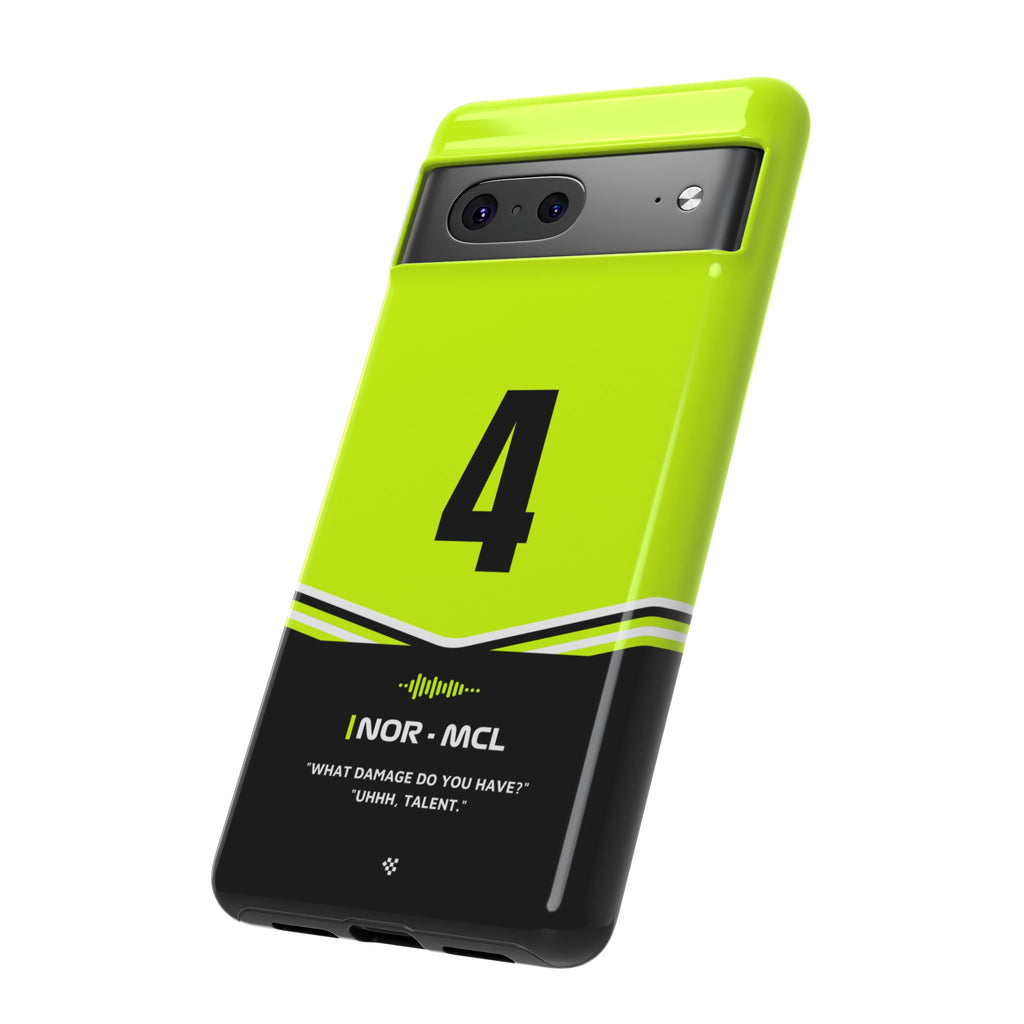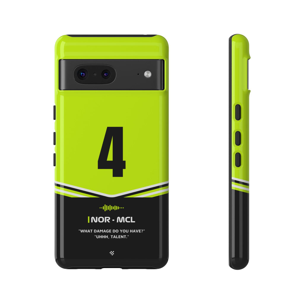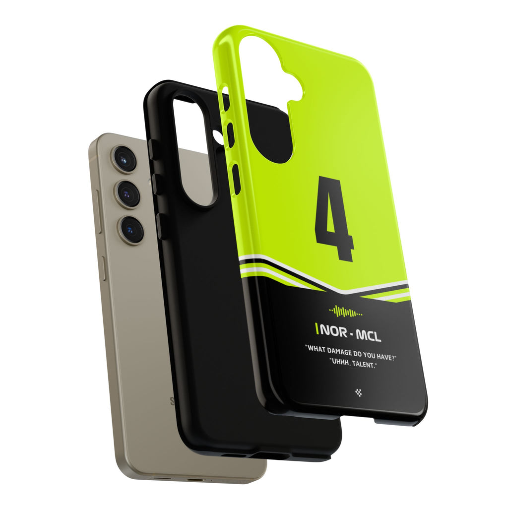 Support your favorite F1 driver with the exclusive Lando Norris F1 2025 Helmet Phone Case. It's the perfect accessory for every passionate Formula 1 and Norris fan. Featuring Lando's iconic #4 race number and his bold 2025 helmet colors, this yellow green phone case brings racing energy straight to your hand.