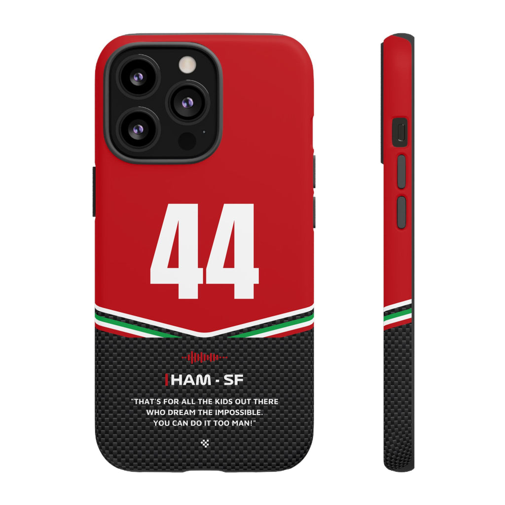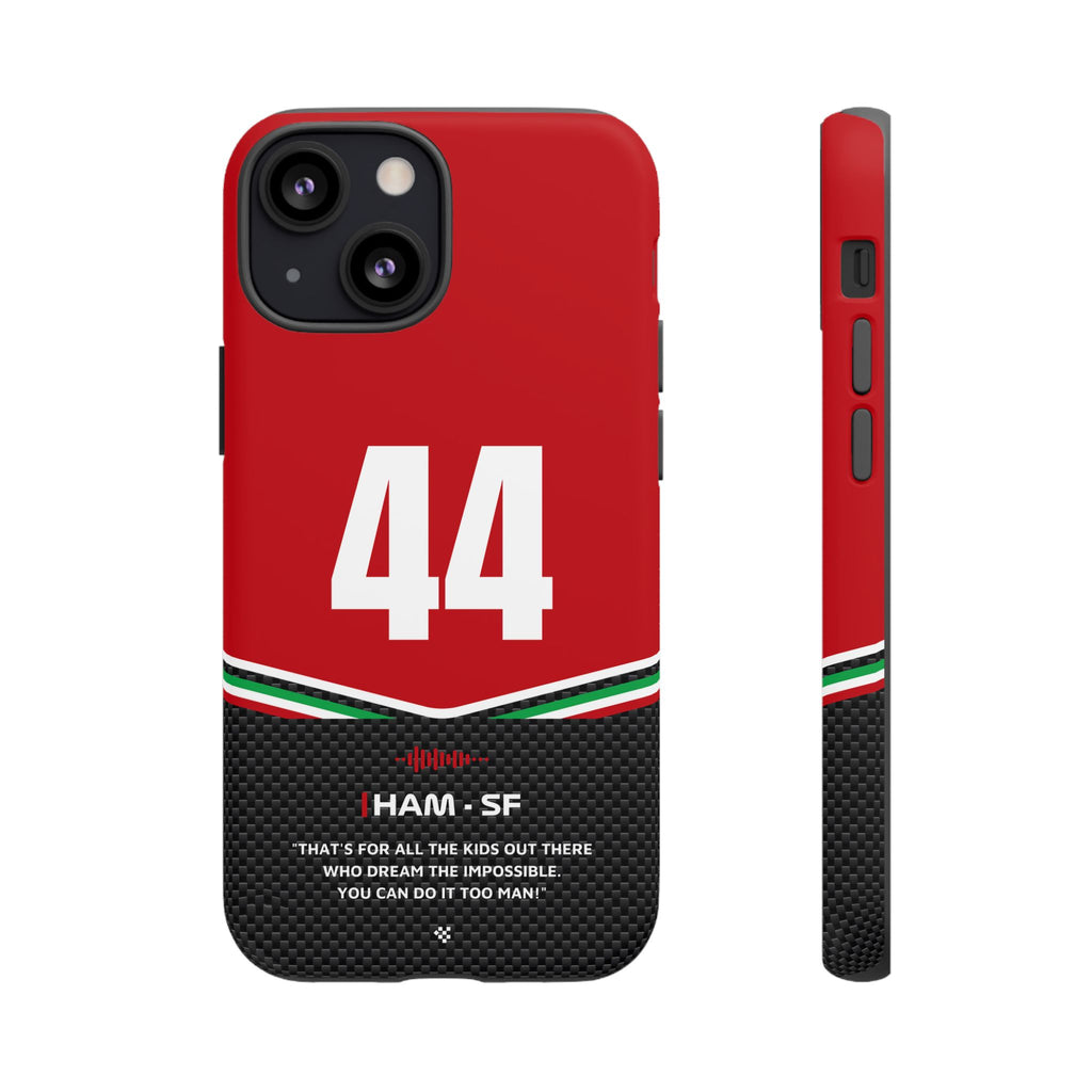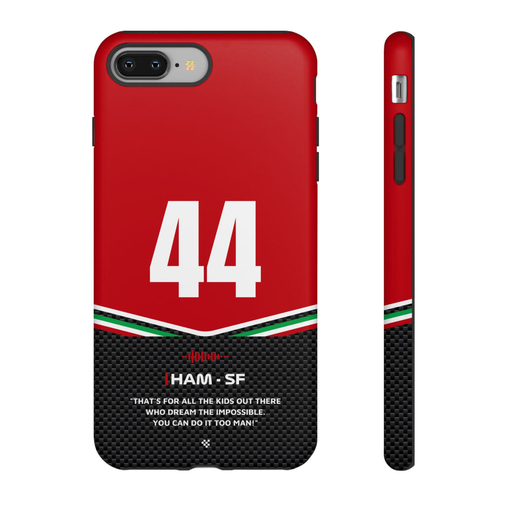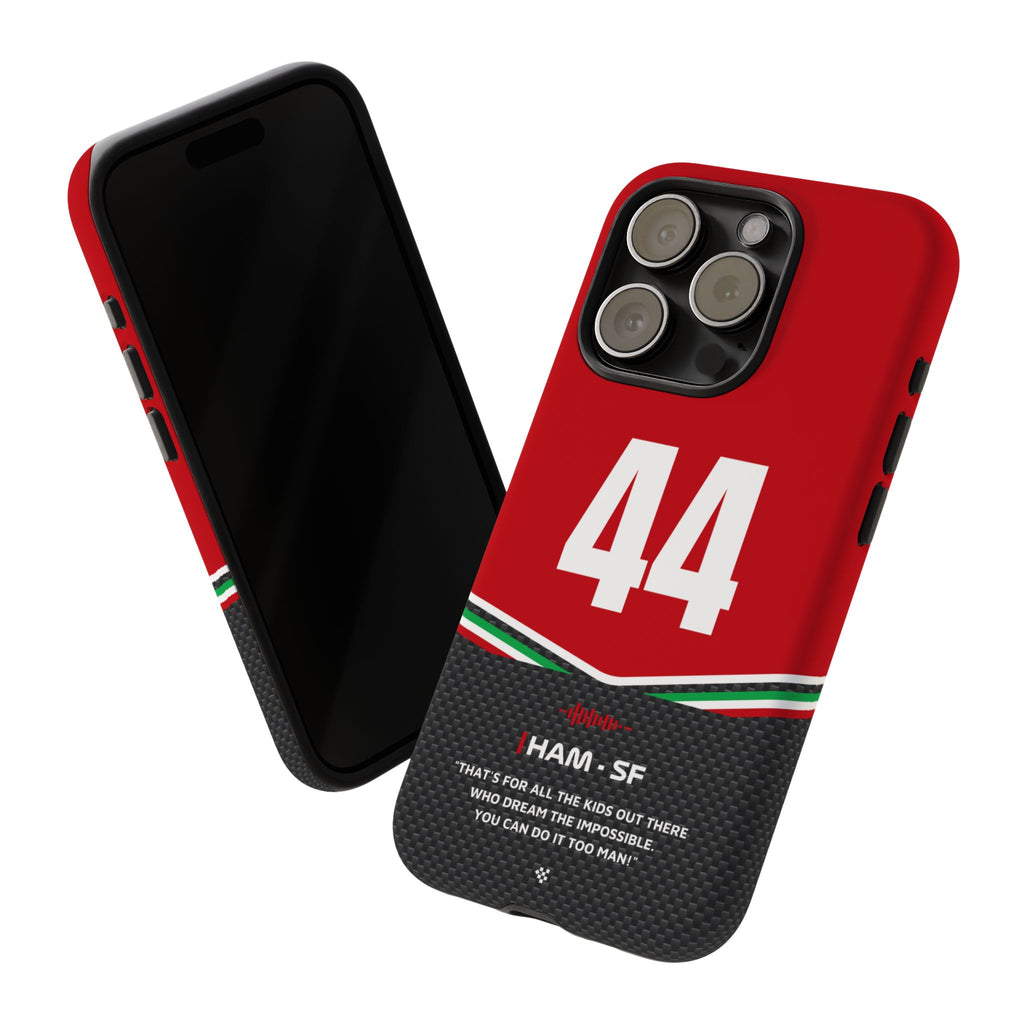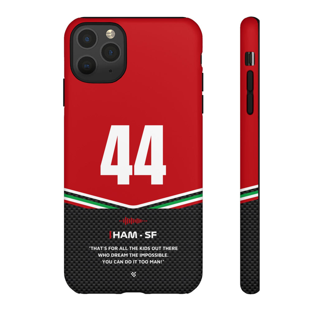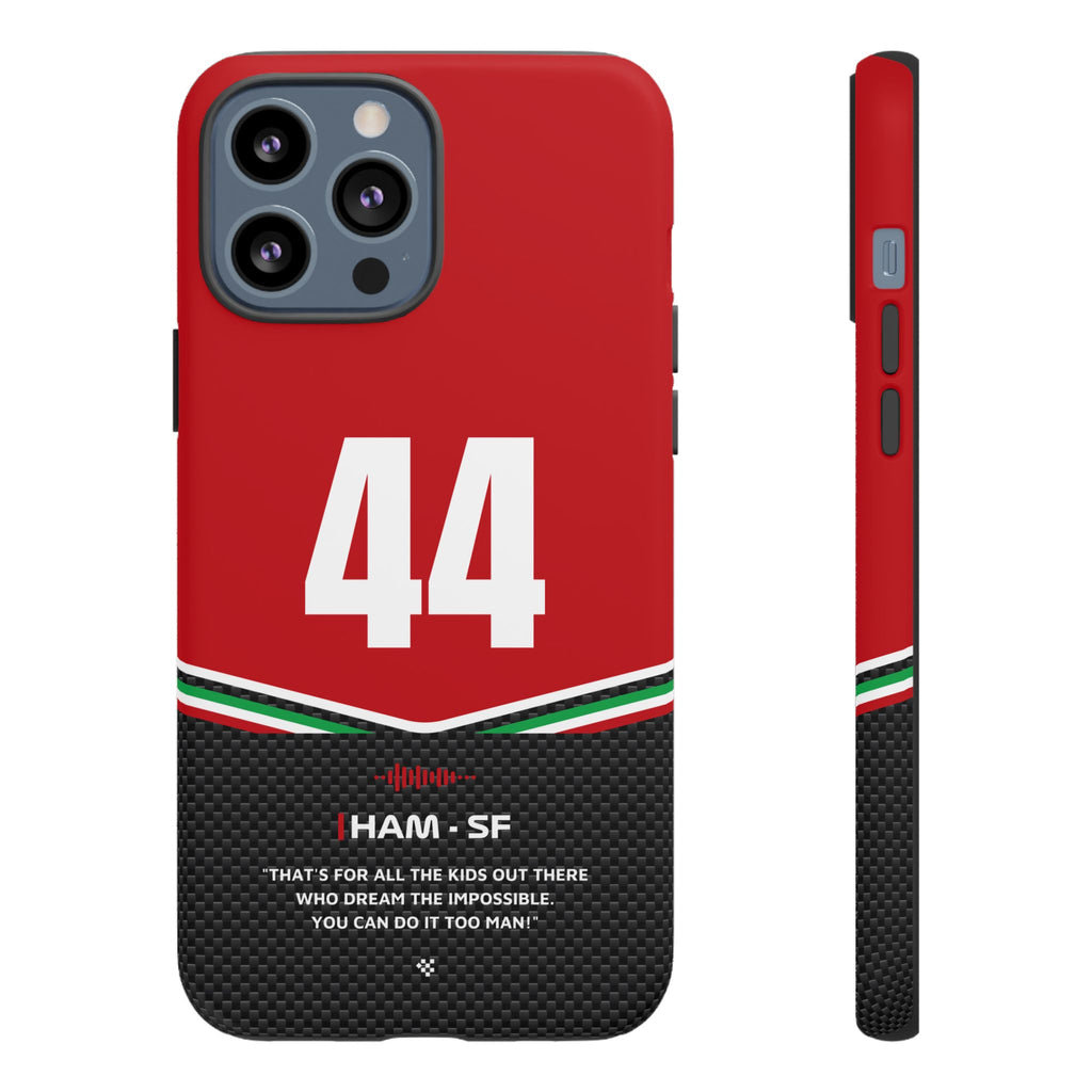 Support your favorite F1 driver with the exclusive Lewis Hamilton F1 2025 Team Phone Case. It's the perfect accessory for every passionate Formula 1 and Hamilton fan. Featuring Lewis's iconic #44 race number and the bold 2025 Scuderia Ferrari team colors, this red phone case brings racing energy straight to your hand.