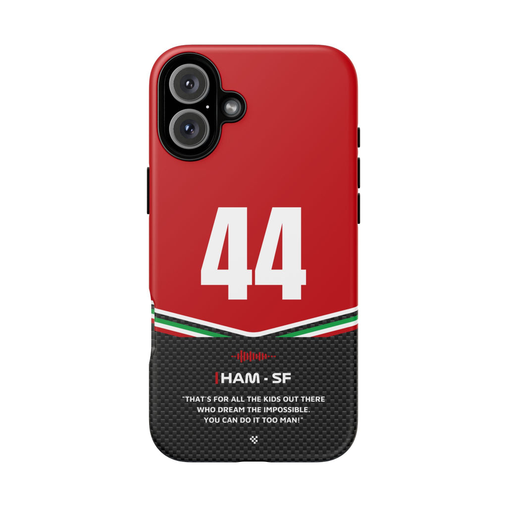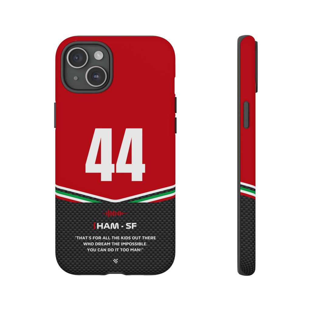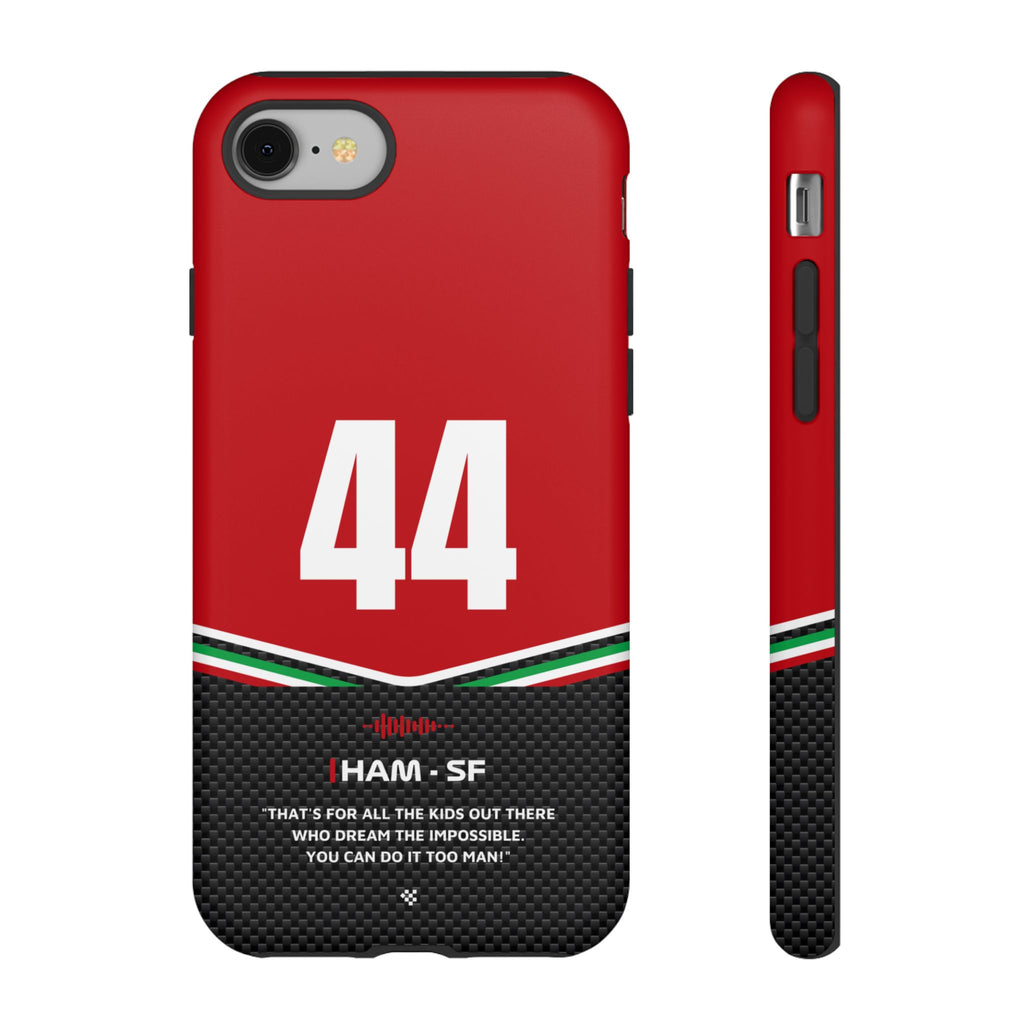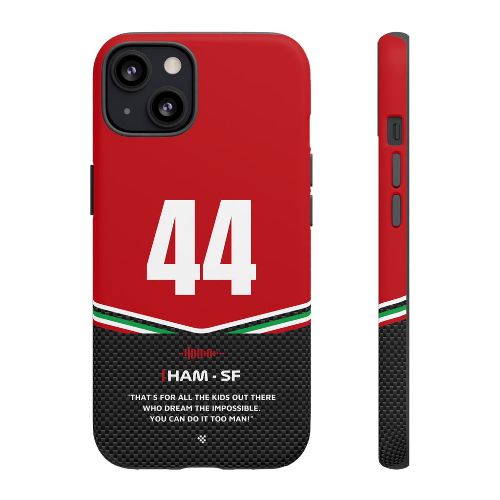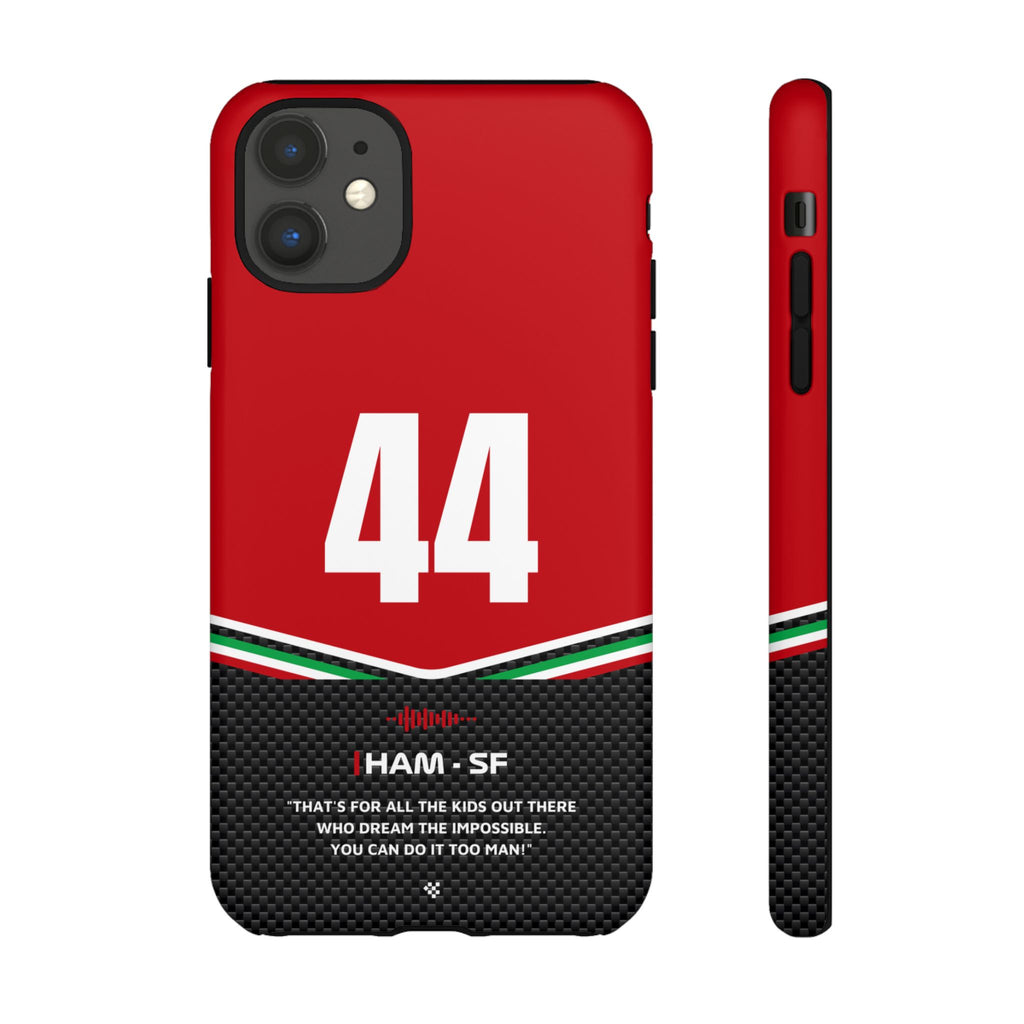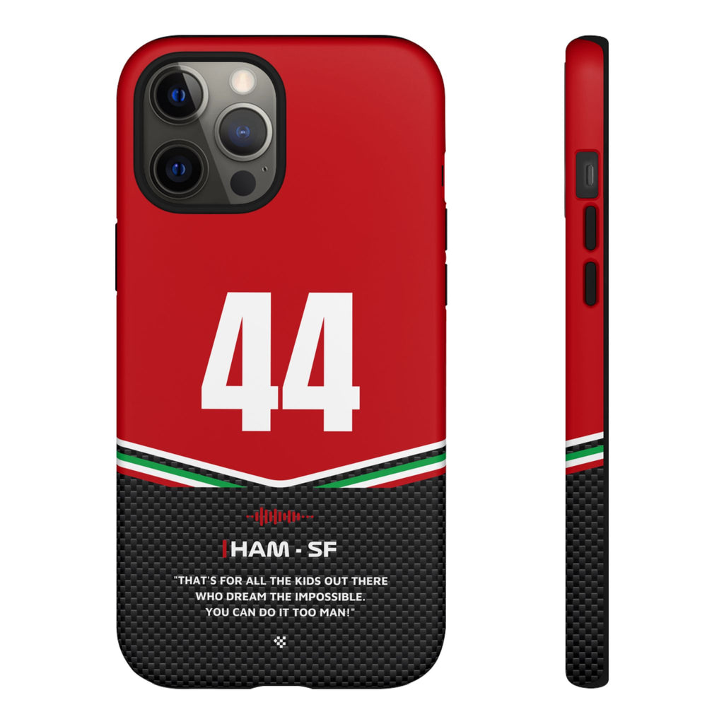 Support your favorite F1 driver with the exclusive Lewis Hamilton F1 2025 Team Phone Case. It's the perfect accessory for every passionate Formula 1 and Hamilton fan. Featuring Lewis's iconic #44 race number and the bold 2025 Scuderia Ferrari team colors, this red phone case brings racing energy straight to your hand.