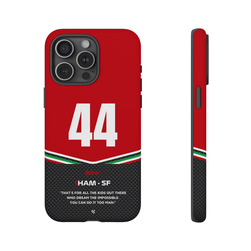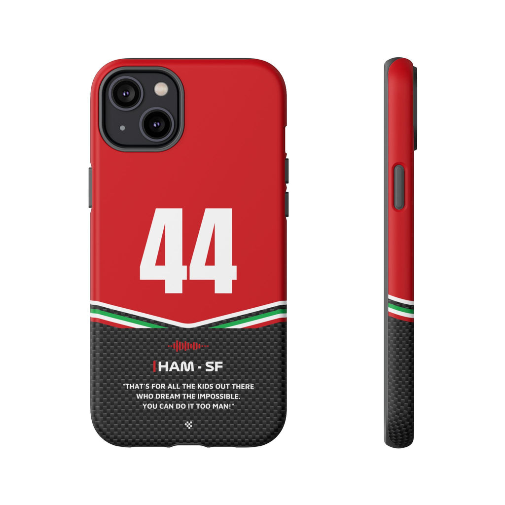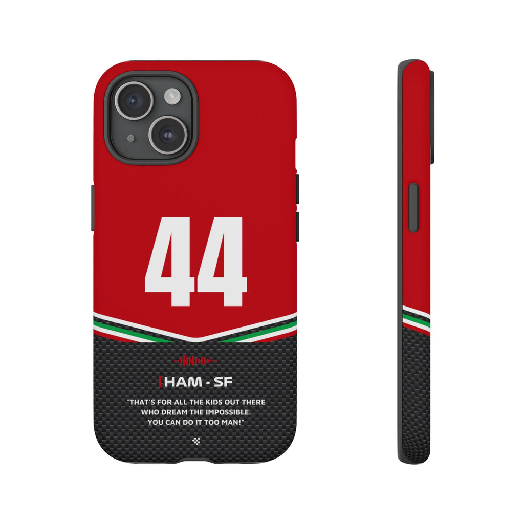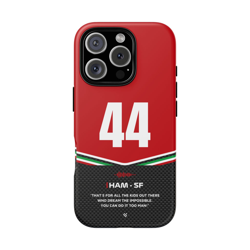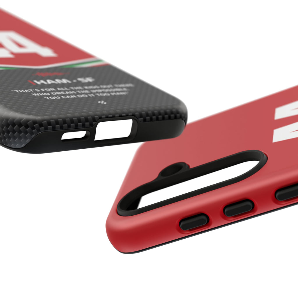 Support your favorite F1 driver with the exclusive Lewis Hamilton F1 2025 Team Phone Case. It's the perfect accessory for every passionate Formula 1 and Hamilton fan. Featuring Lewis's iconic #44 race number and the bold 2025 Scuderia Ferrari team colors, this red phone case brings racing energy straight to your hand.