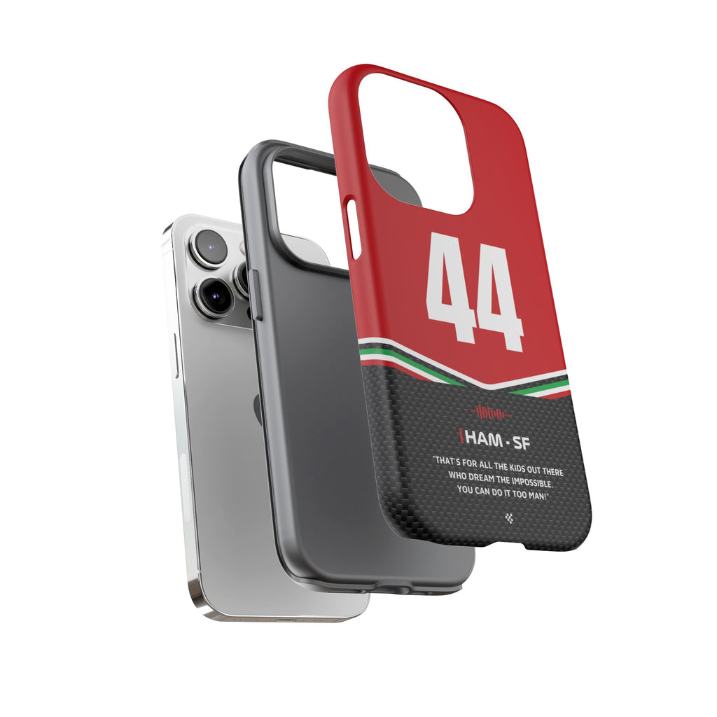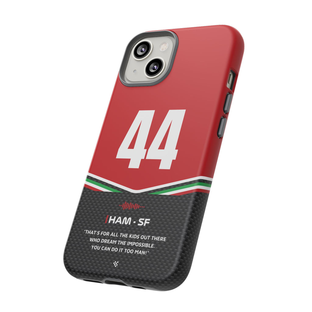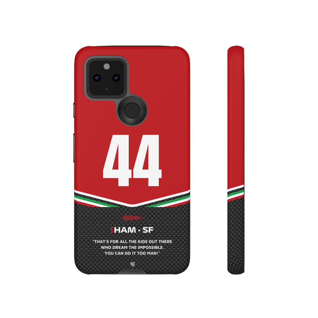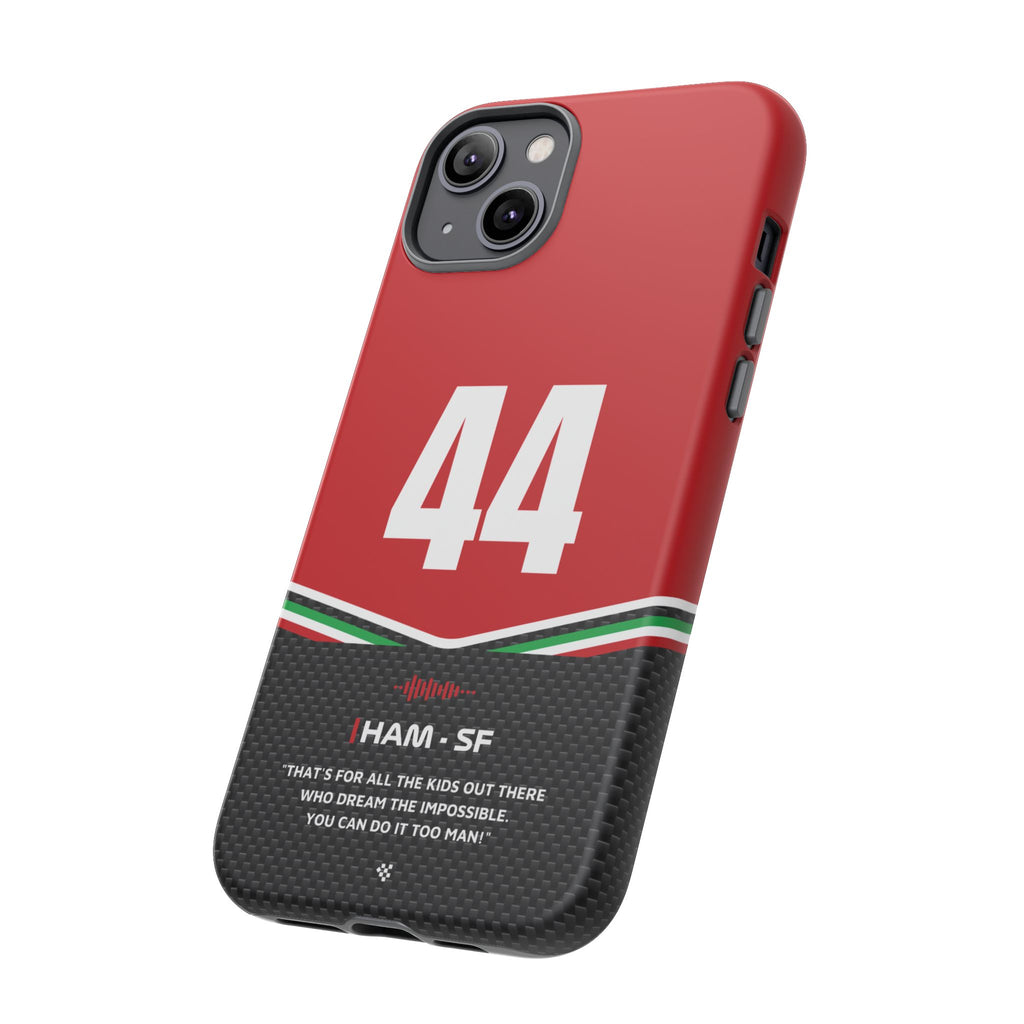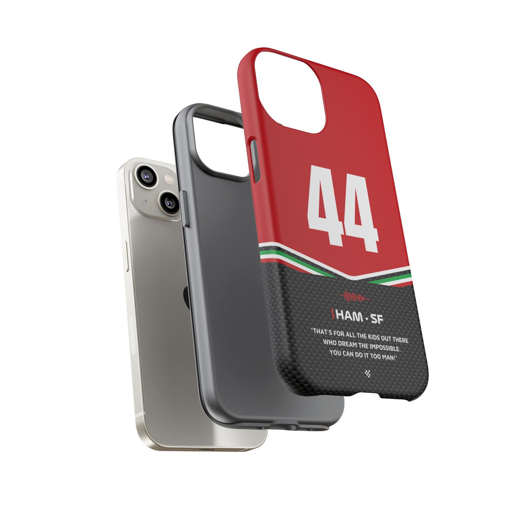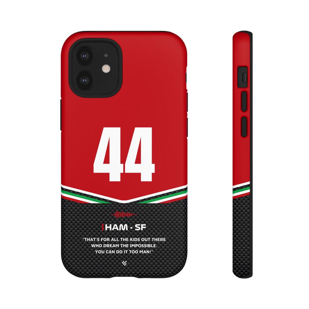 Support your favorite F1 driver with the exclusive Lewis Hamilton F1 2025 Team Phone Case. It's the perfect accessory for every passionate Formula 1 and Hamilton fan. Featuring Lewis's iconic #44 race number and the bold 2025 Scuderia Ferrari team colors, this red phone case brings racing energy straight to your hand.