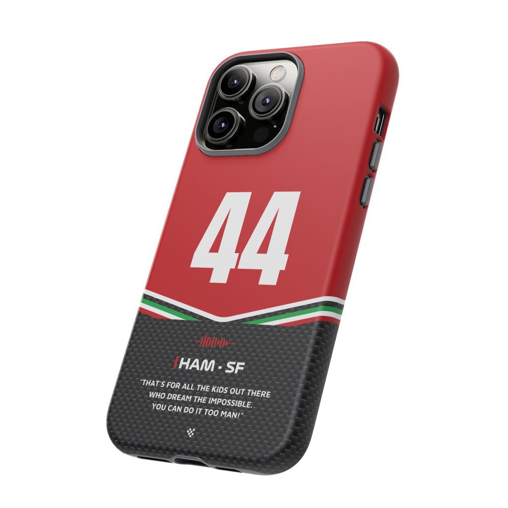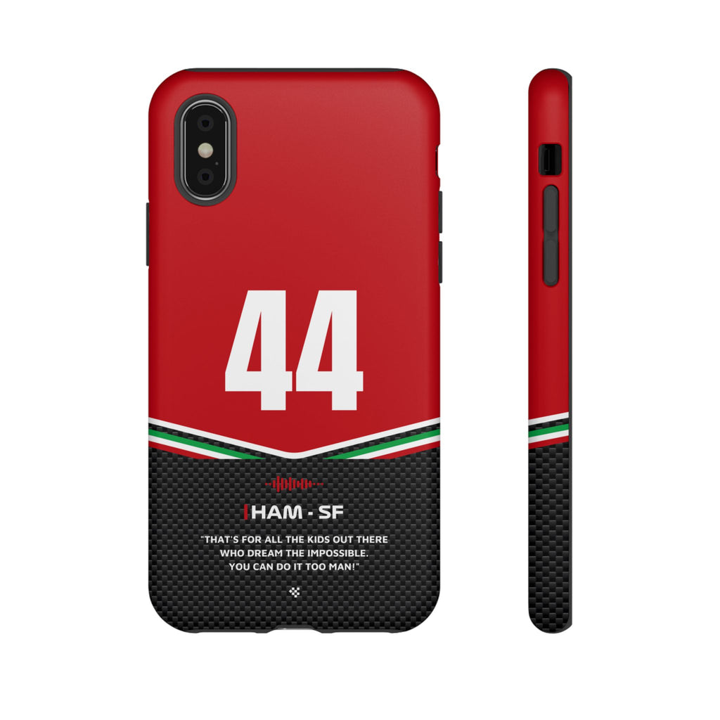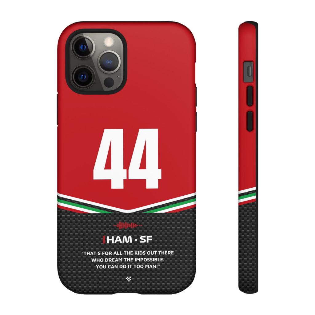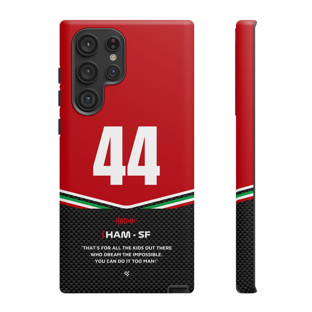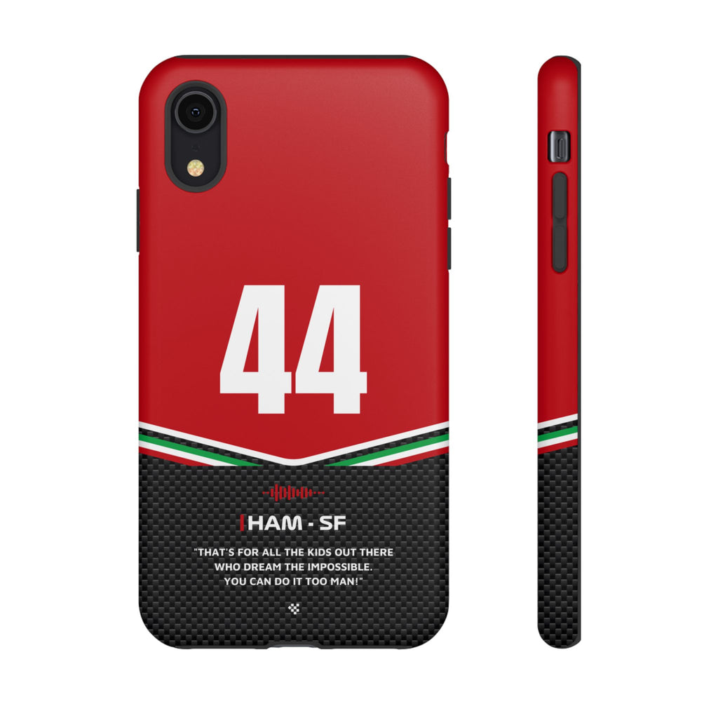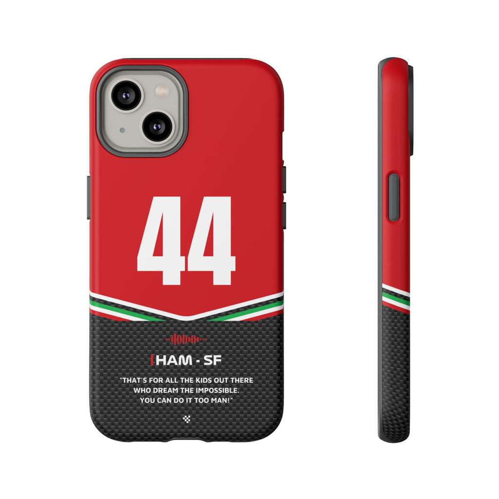 Support your favorite F1 driver with the exclusive Lewis Hamilton F1 2025 Team Phone Case. It's the perfect accessory for every passionate Formula 1 and Hamilton fan. Featuring Lewis's iconic #44 race number and the bold 2025 Scuderia Ferrari team colors, this red phone case brings racing energy straight to your hand.