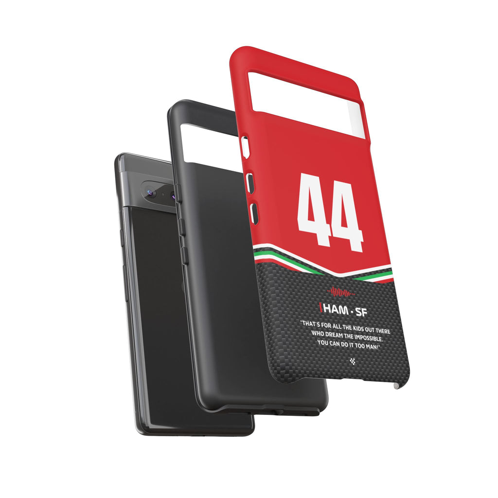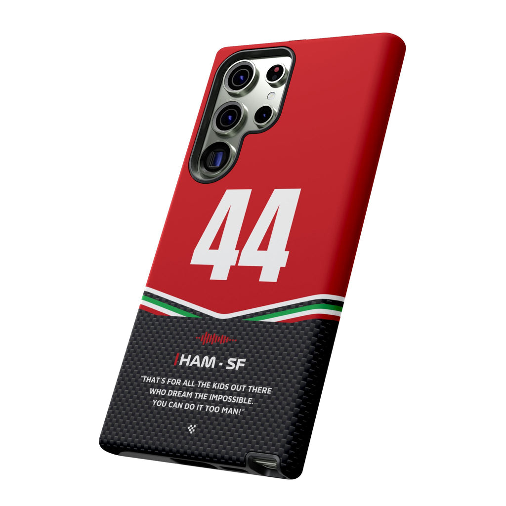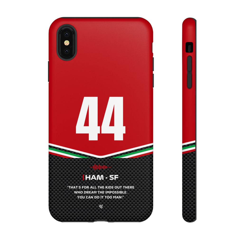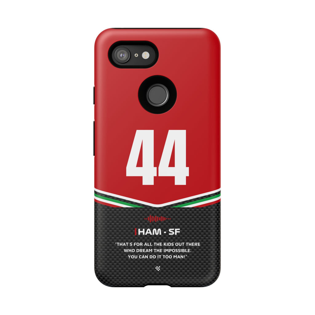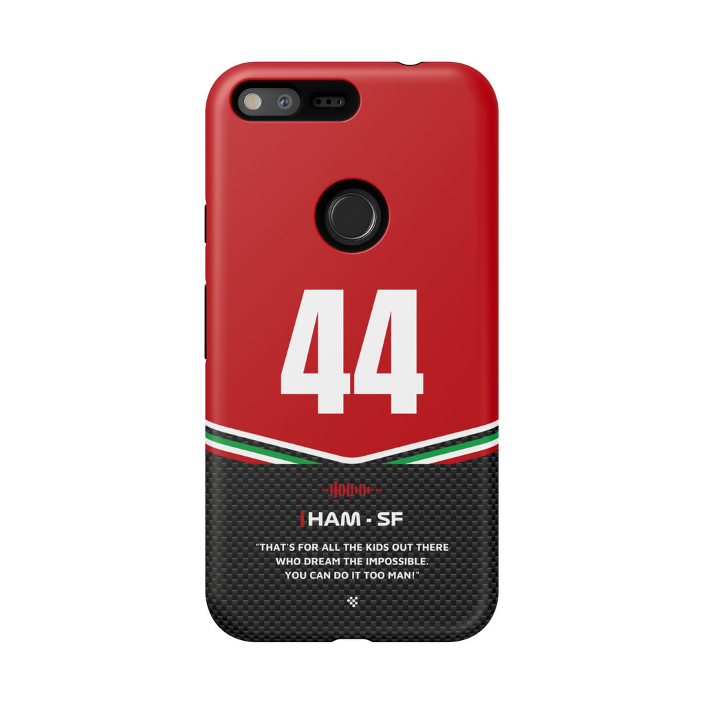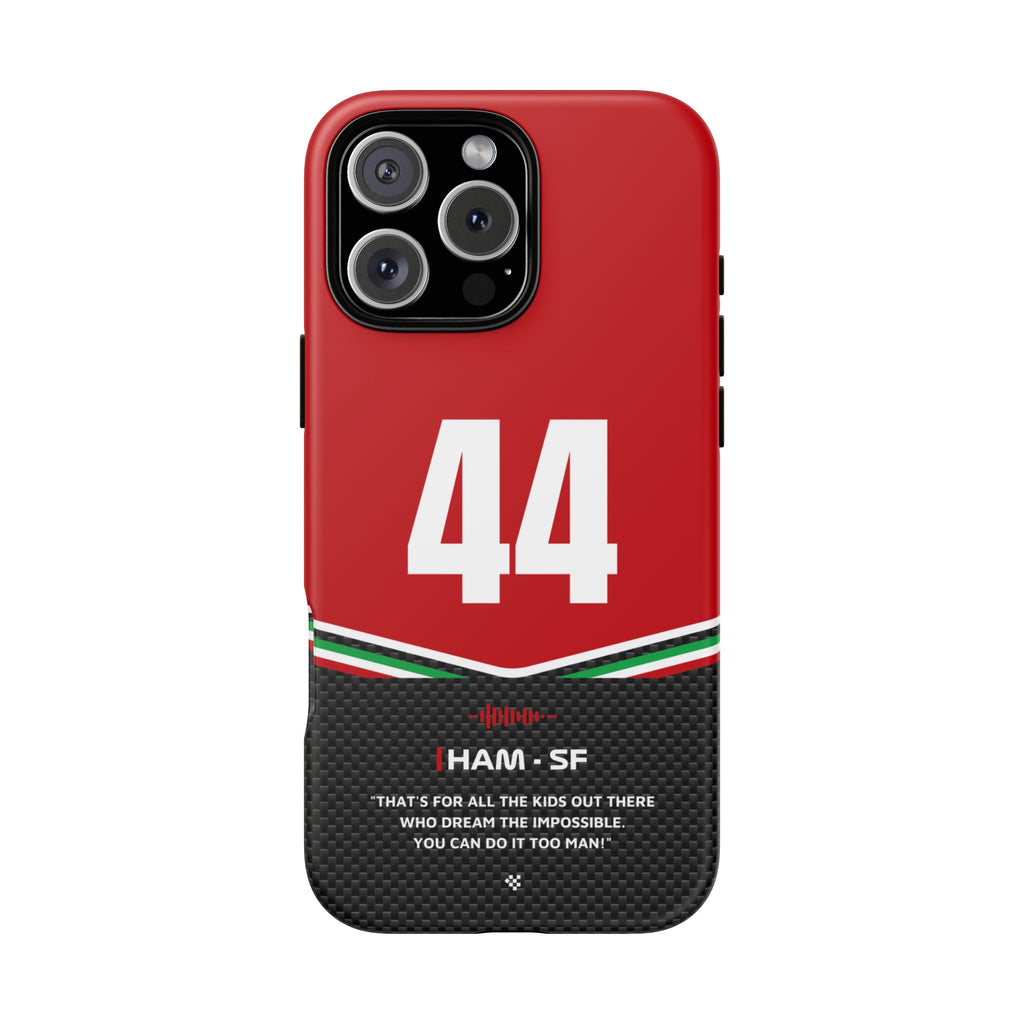 Support your favorite F1 driver with the exclusive Lewis Hamilton F1 2025 Team Phone Case. It's the perfect accessory for every passionate Formula 1 and Hamilton fan. Featuring Lewis's iconic #44 race number and the bold 2025 Scuderia Ferrari team colors, this red phone case brings racing energy straight to your hand.