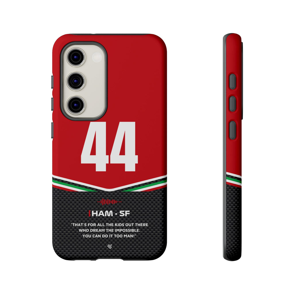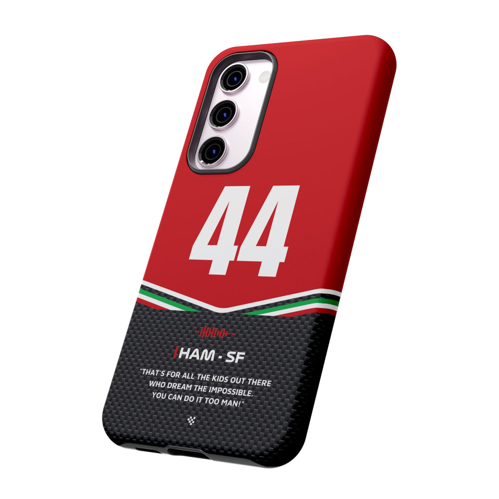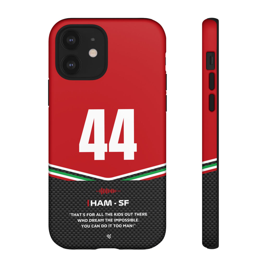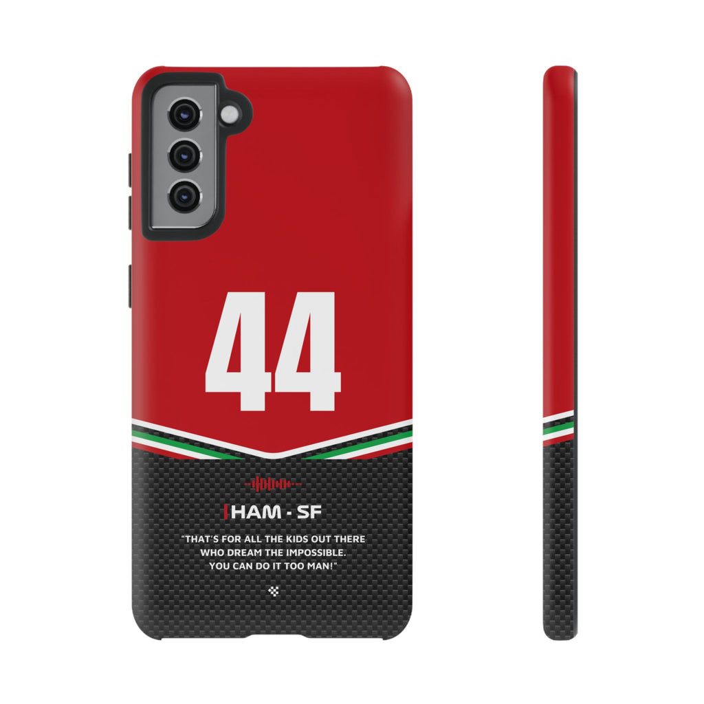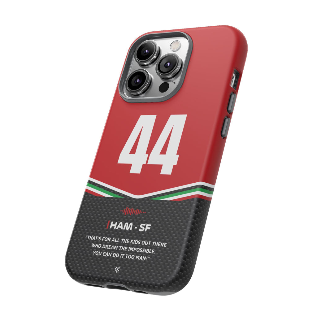 Support your favorite F1 driver with the exclusive Lewis Hamilton F1 2025 Team Phone Case. It's the perfect accessory for every passionate Formula 1 and Hamilton fan. Featuring Lewis's iconic #44 race number and the bold 2025 Scuderia Ferrari team colors, this red phone case brings racing energy straight to your hand.