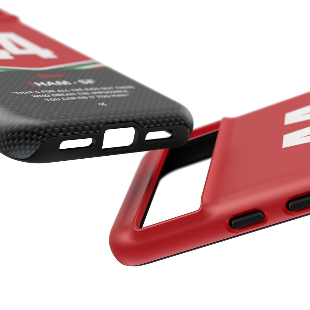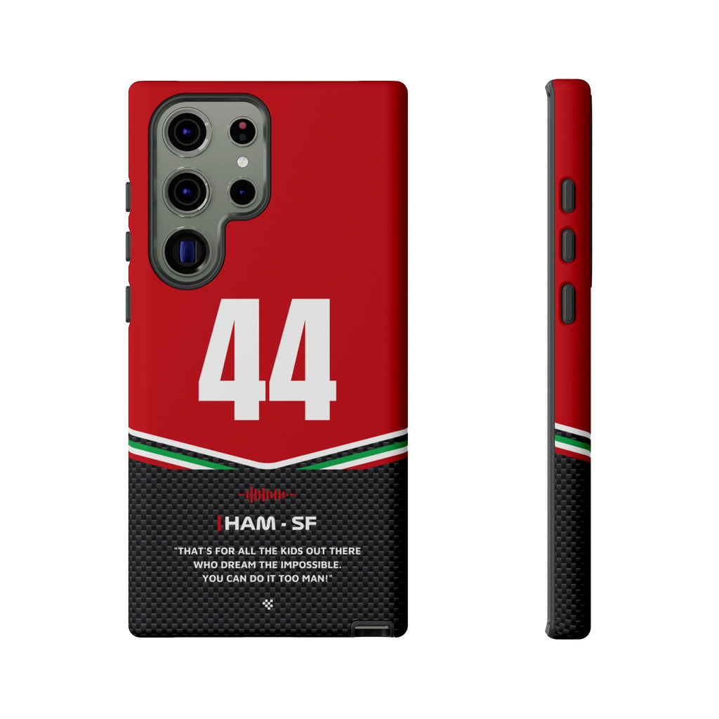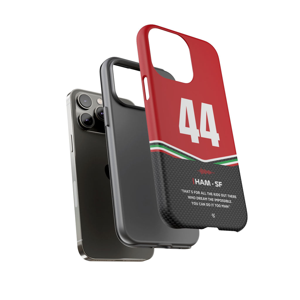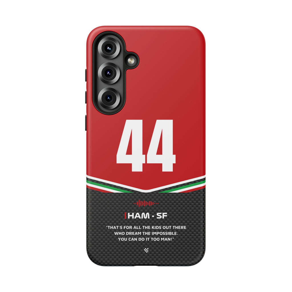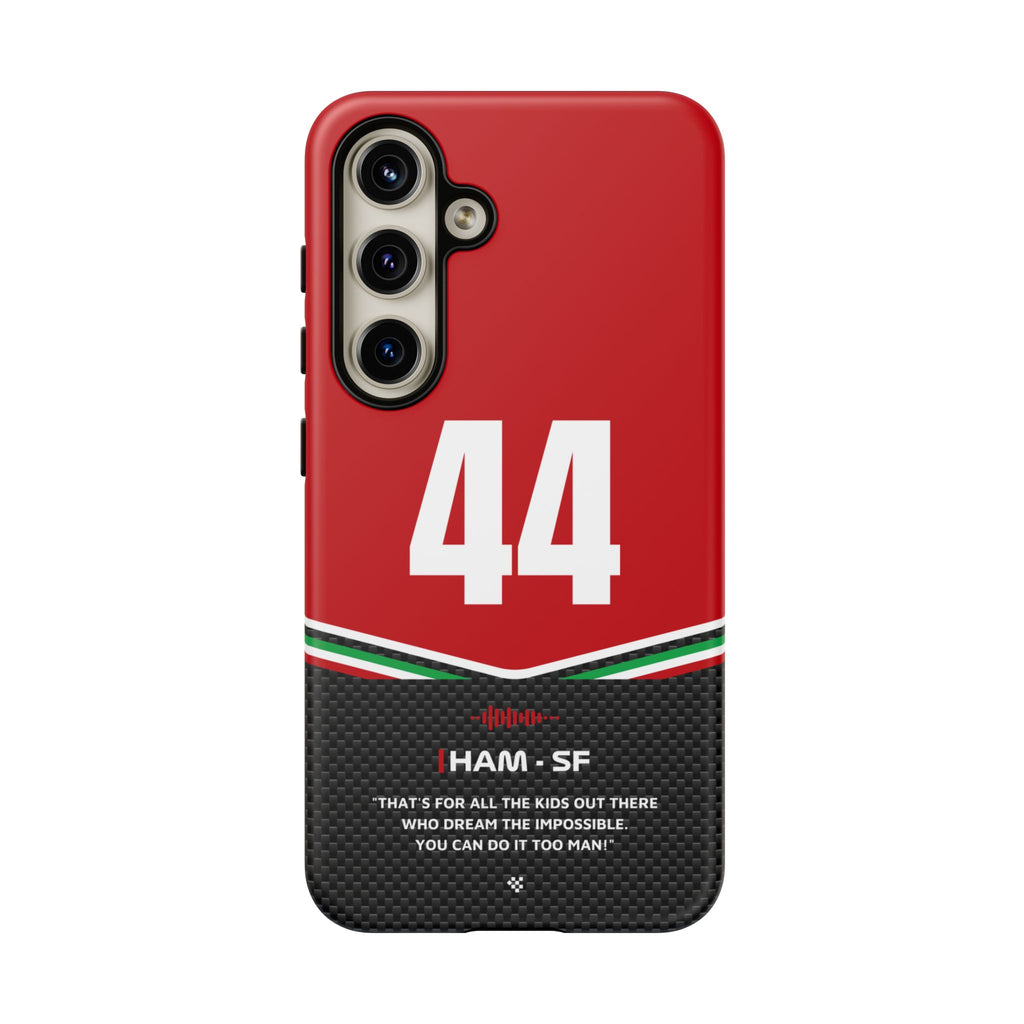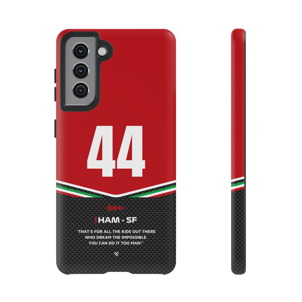 Support your favorite F1 driver with the exclusive Lewis Hamilton F1 2025 Team Phone Case. It's the perfect accessory for every passionate Formula 1 and Hamilton fan. Featuring Lewis's iconic #44 race number and the bold 2025 Scuderia Ferrari team colors, this red phone case brings racing energy straight to your hand.