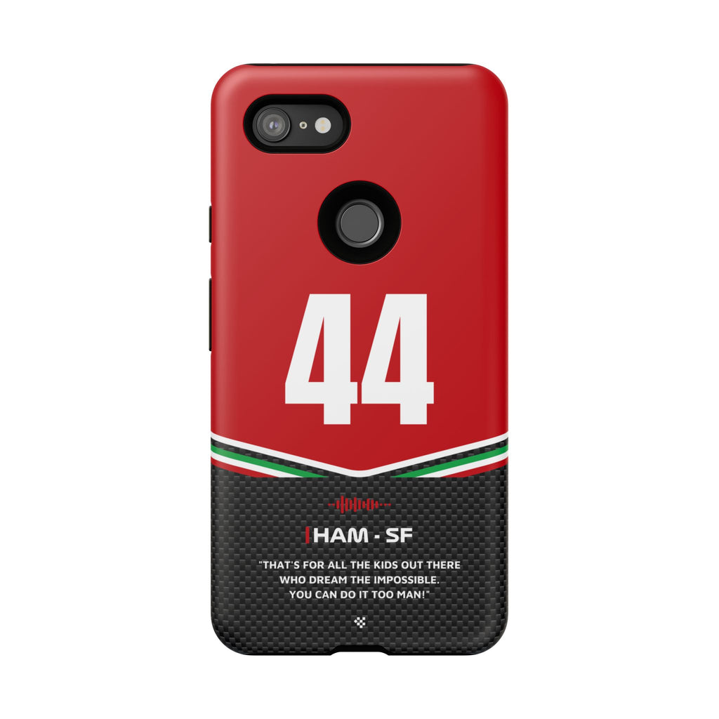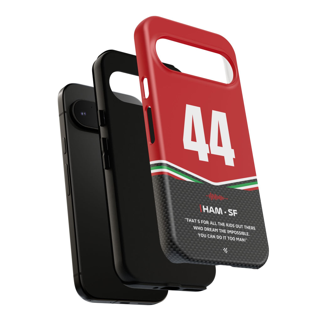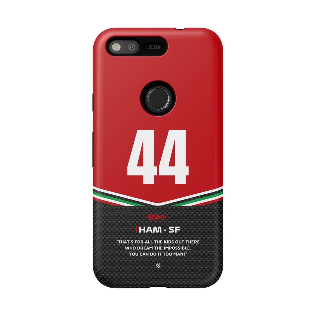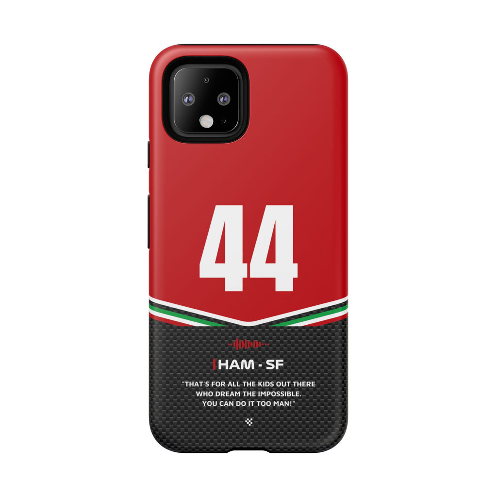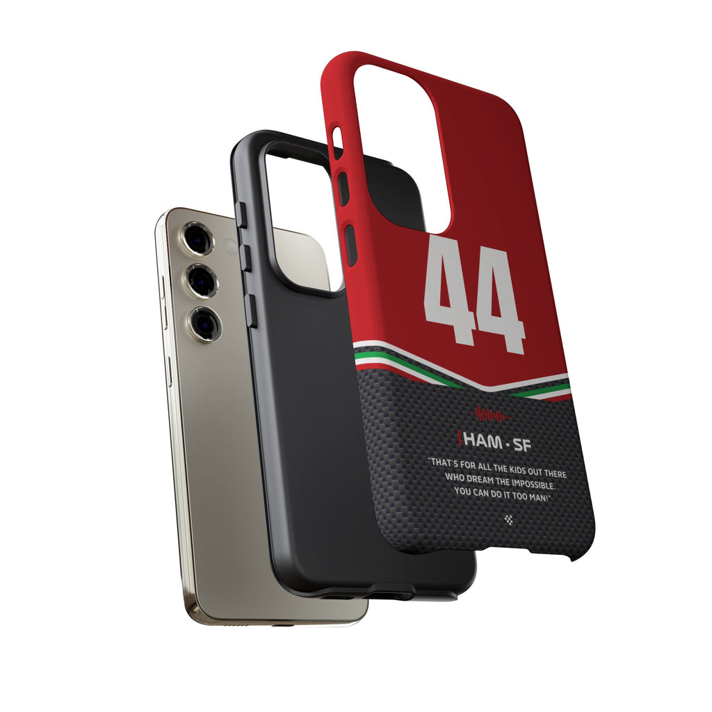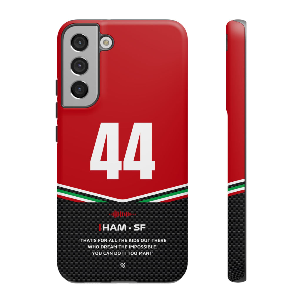 Support your favorite F1 driver with the exclusive Lewis Hamilton F1 2025 Team Phone Case. It's the perfect accessory for every passionate Formula 1 and Hamilton fan. Featuring Lewis's iconic #44 race number and the bold 2025 Scuderia Ferrari team colors, this red phone case brings racing energy straight to your hand.