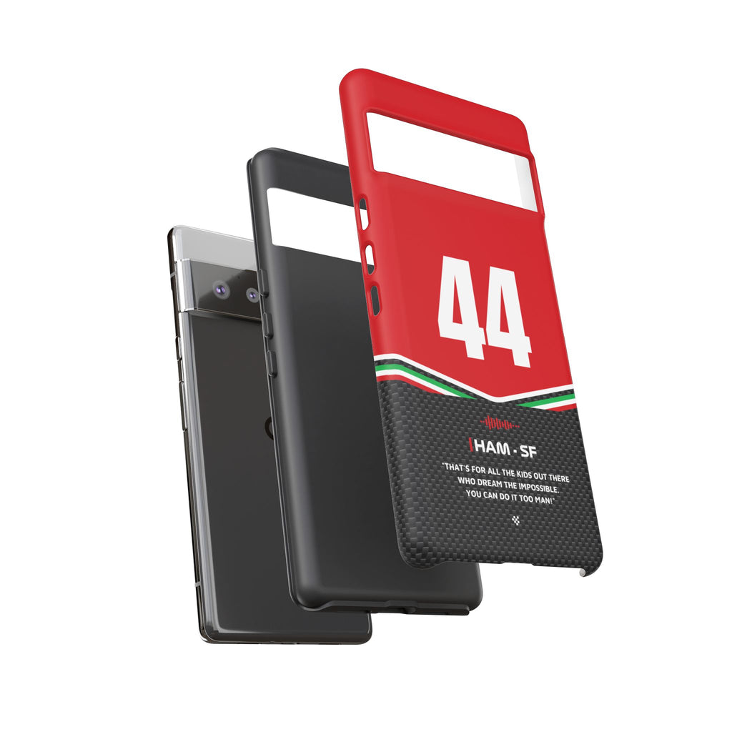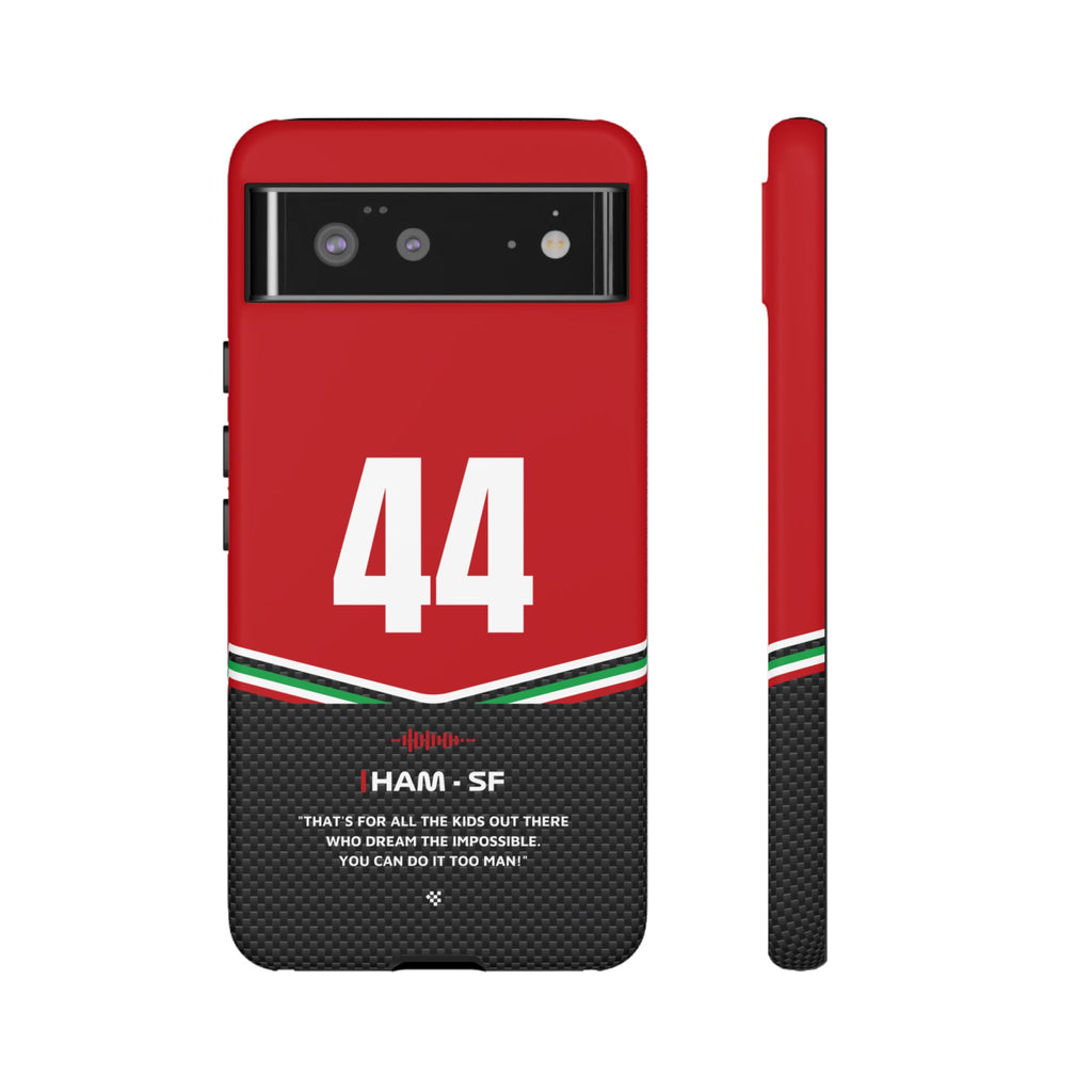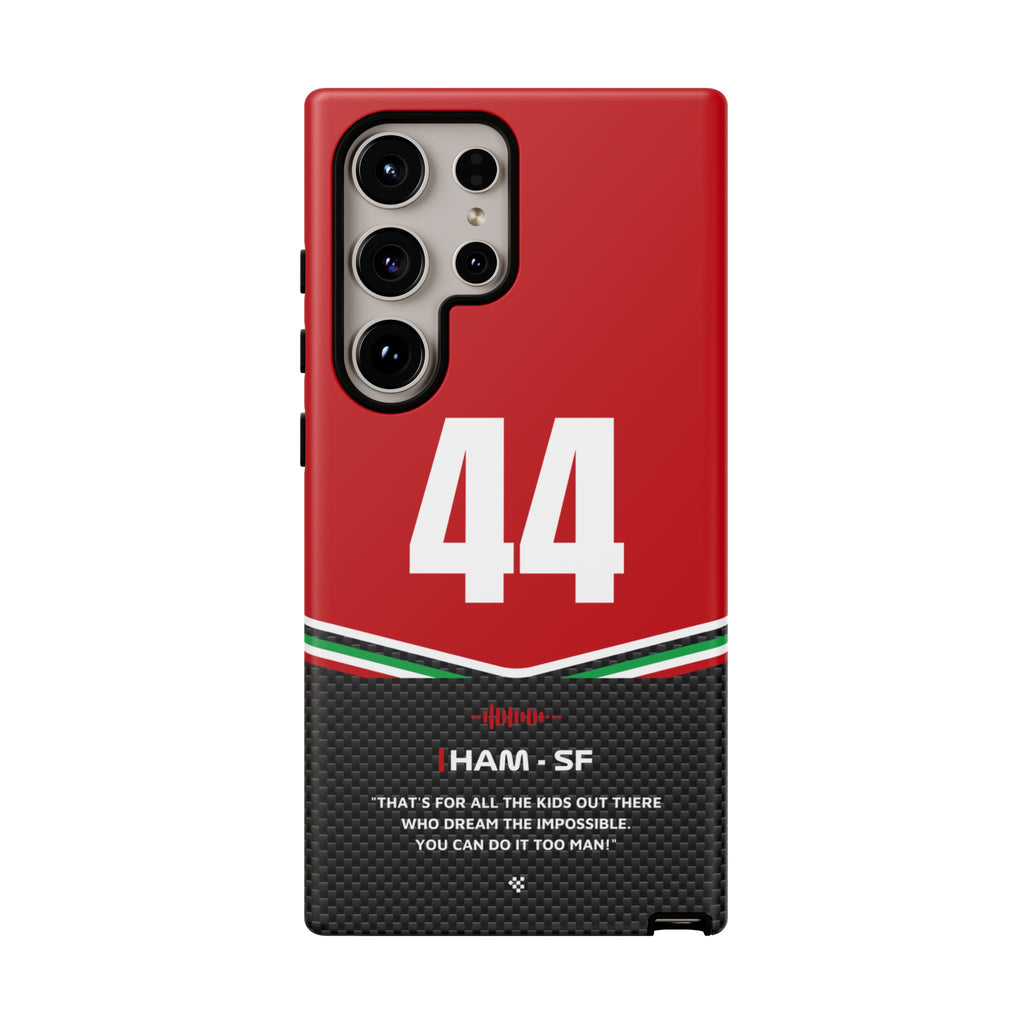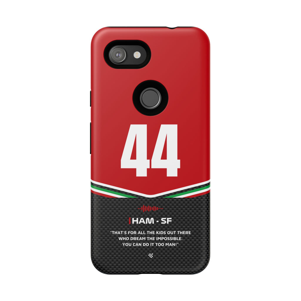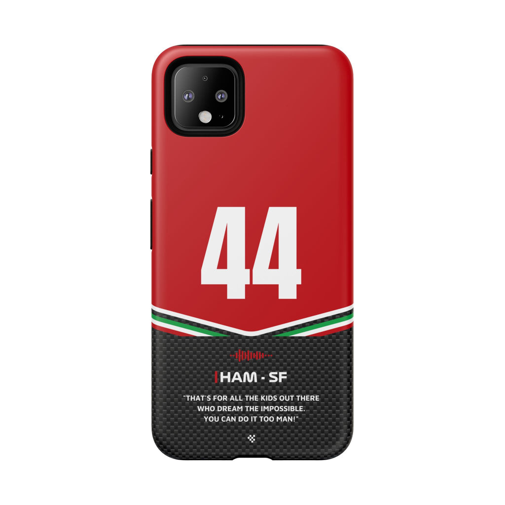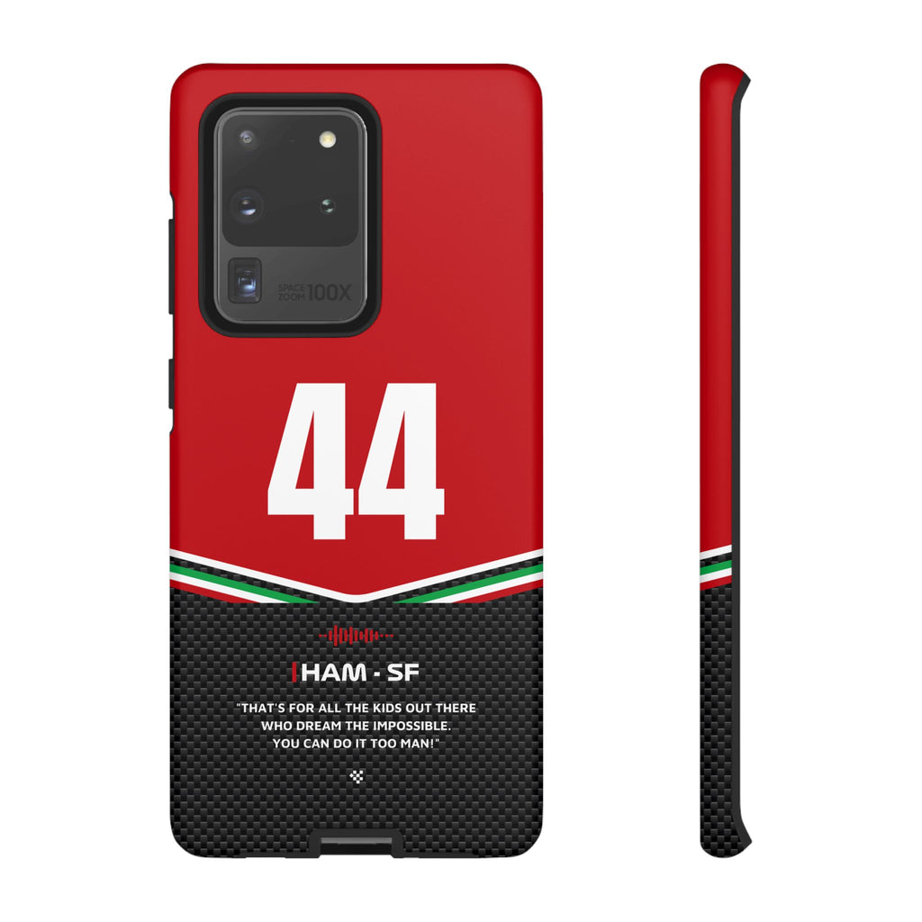 Support your favorite F1 driver with the exclusive Lewis Hamilton F1 2025 Team Phone Case. It's the perfect accessory for every passionate Formula 1 and Hamilton fan. Featuring Lewis's iconic #44 race number and the bold 2025 Scuderia Ferrari team colors, this red phone case brings racing energy straight to your hand.