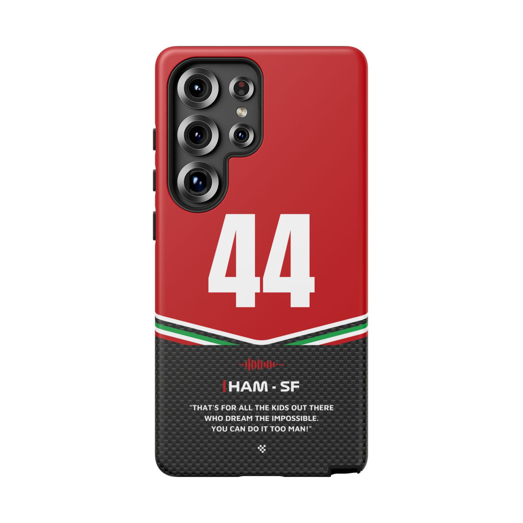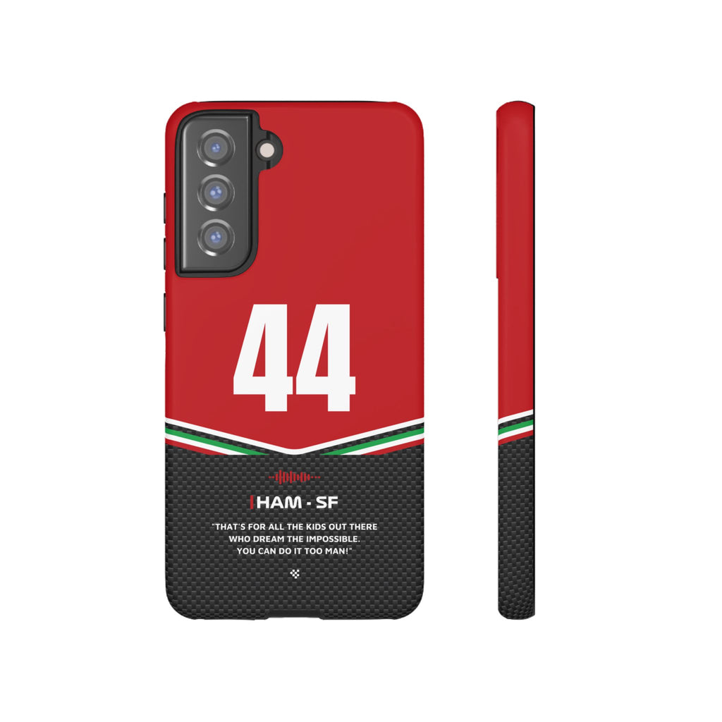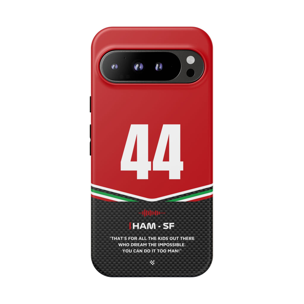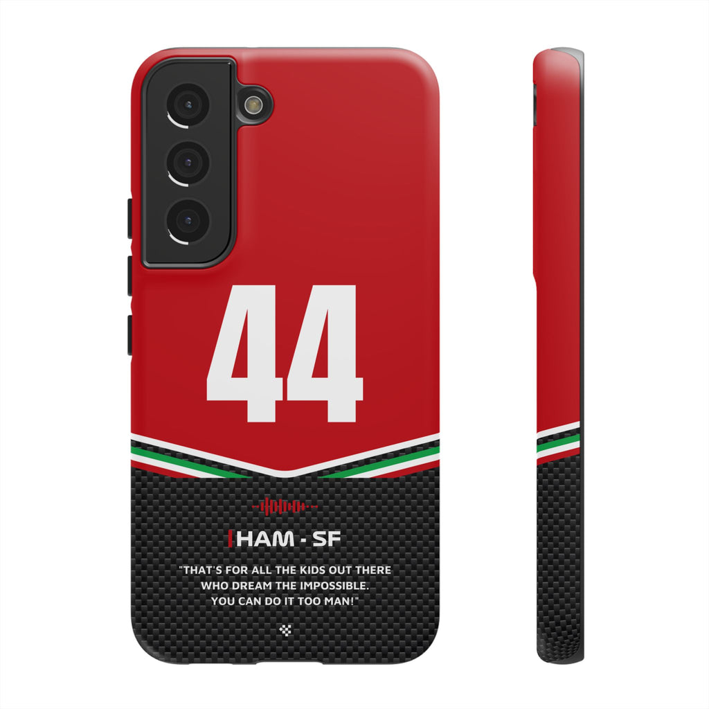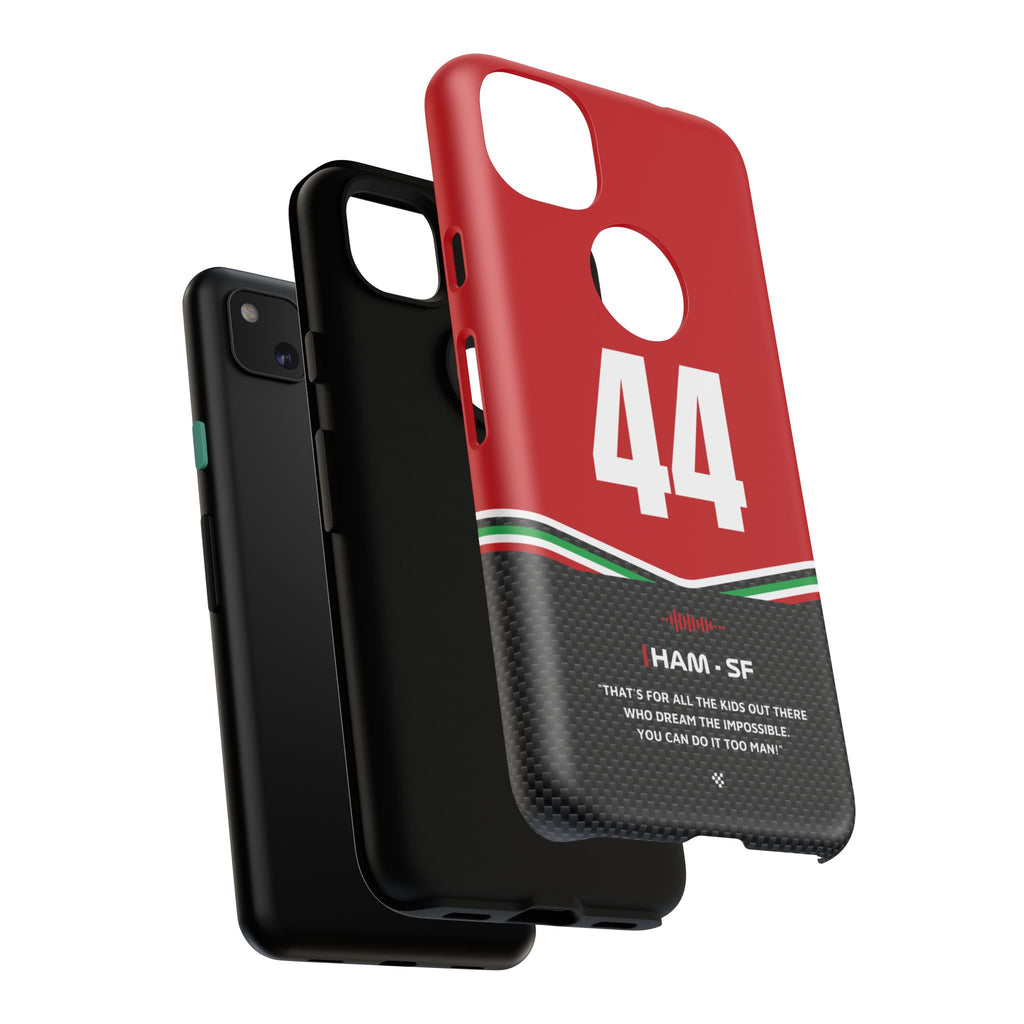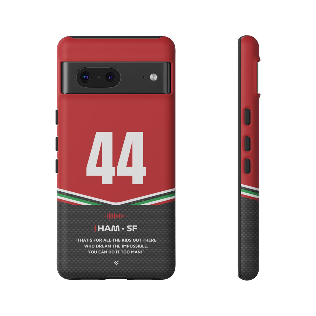 Support your favorite F1 driver with the exclusive Lewis Hamilton F1 2025 Team Phone Case. It's the perfect accessory for every passionate Formula 1 and Hamilton fan. Featuring Lewis's iconic #44 race number and the bold 2025 Scuderia Ferrari team colors, this red phone case brings racing energy straight to your hand.
