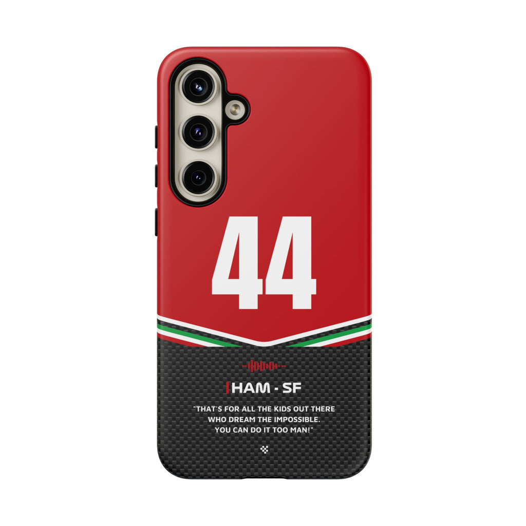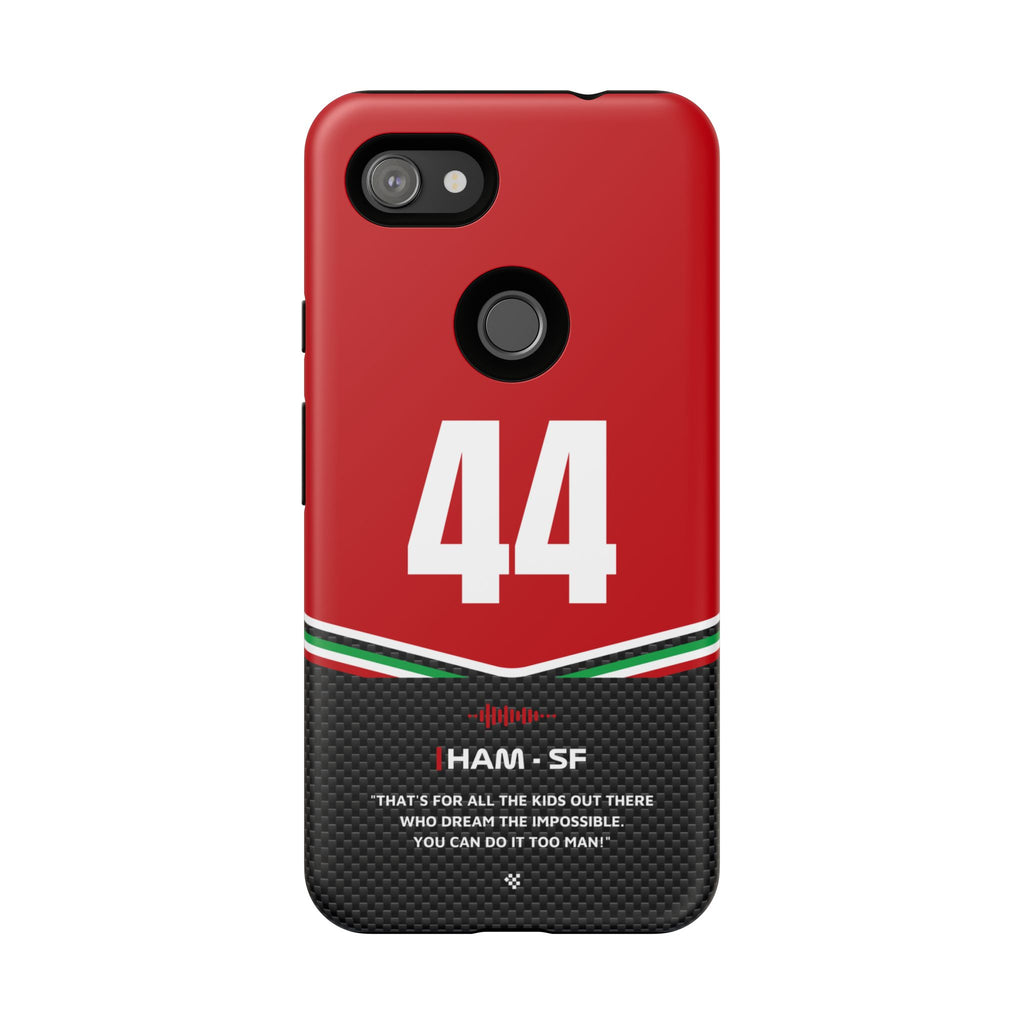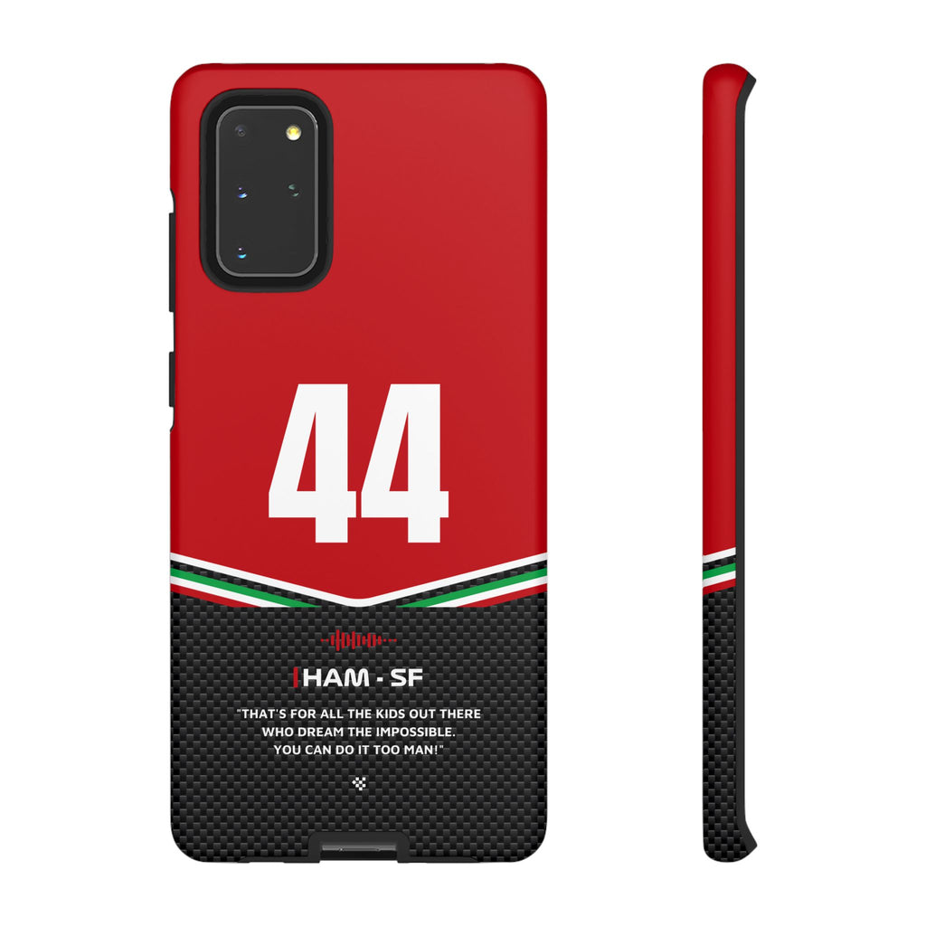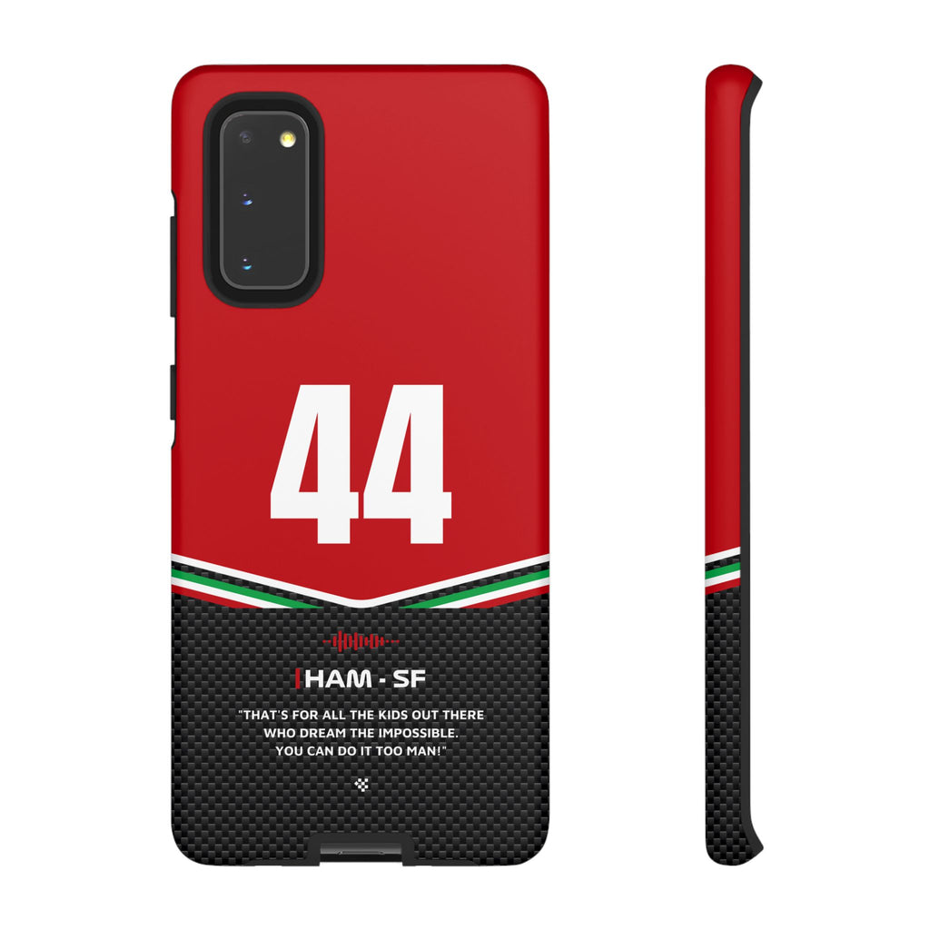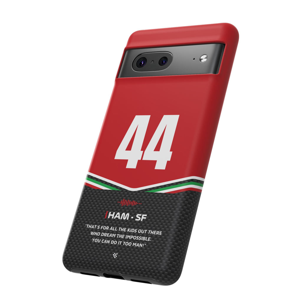 Support your favorite F1 driver with the exclusive Lewis Hamilton F1 2025 Team Phone Case. It's the perfect accessory for every passionate Formula 1 and Hamilton fan. Featuring Lewis's iconic #44 race number and the bold 2025 Scuderia Ferrari team colors, this red phone case brings racing energy straight to your hand.