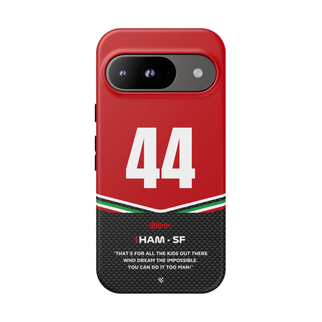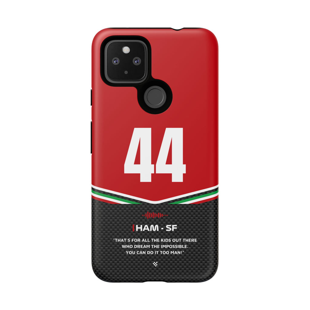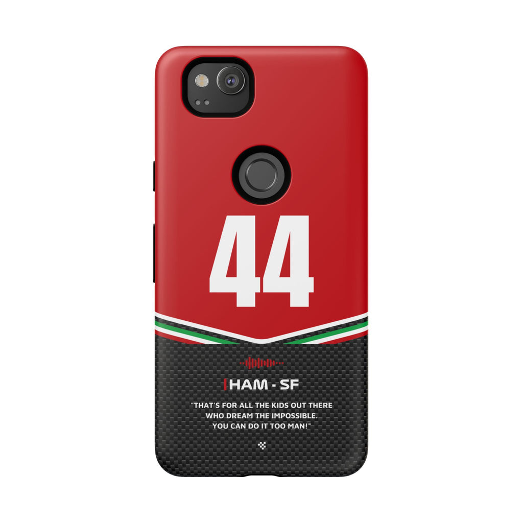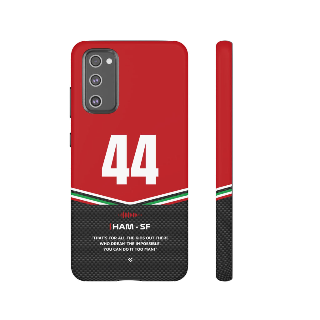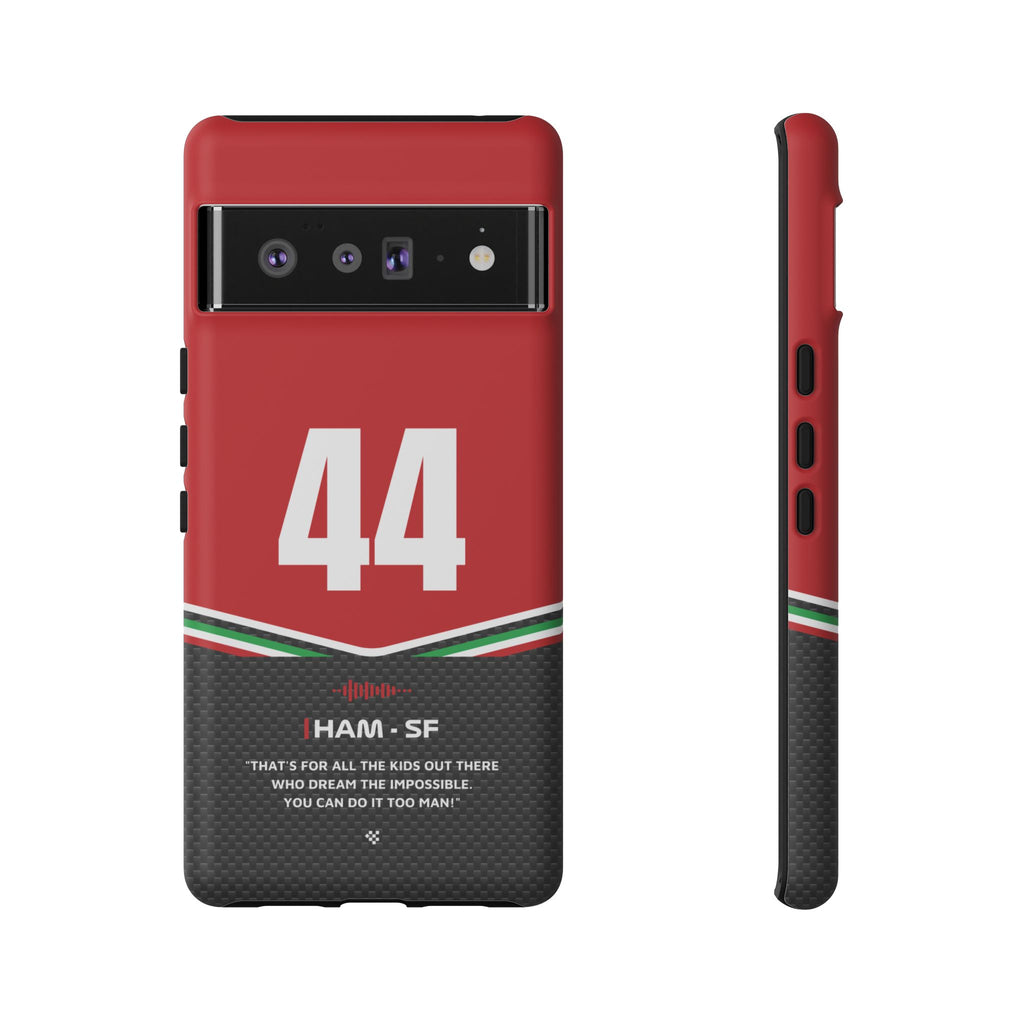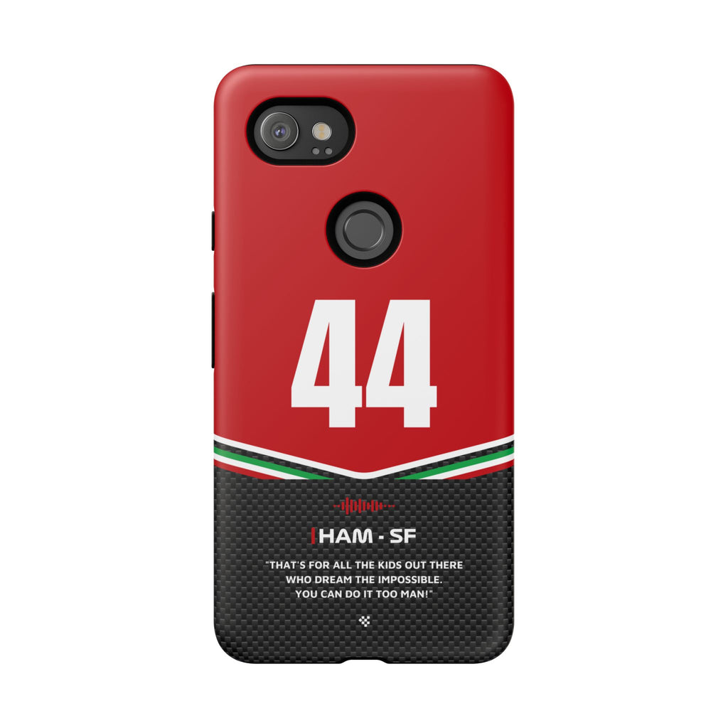Support your favorite F1 driver with the exclusive Lewis Hamilton F1 2025 Team Phone Case. It's the perfect accessory for every passionate Formula 1 and Hamilton fan. Featuring Lewis's iconic #44 race number and the bold 2025 Scuderia Ferrari team colors, this red phone case brings racing energy straight to your hand.