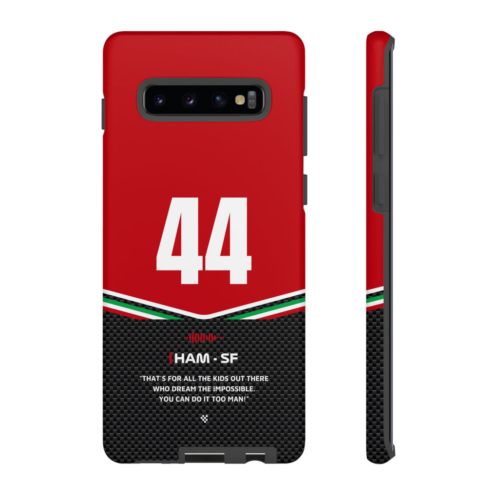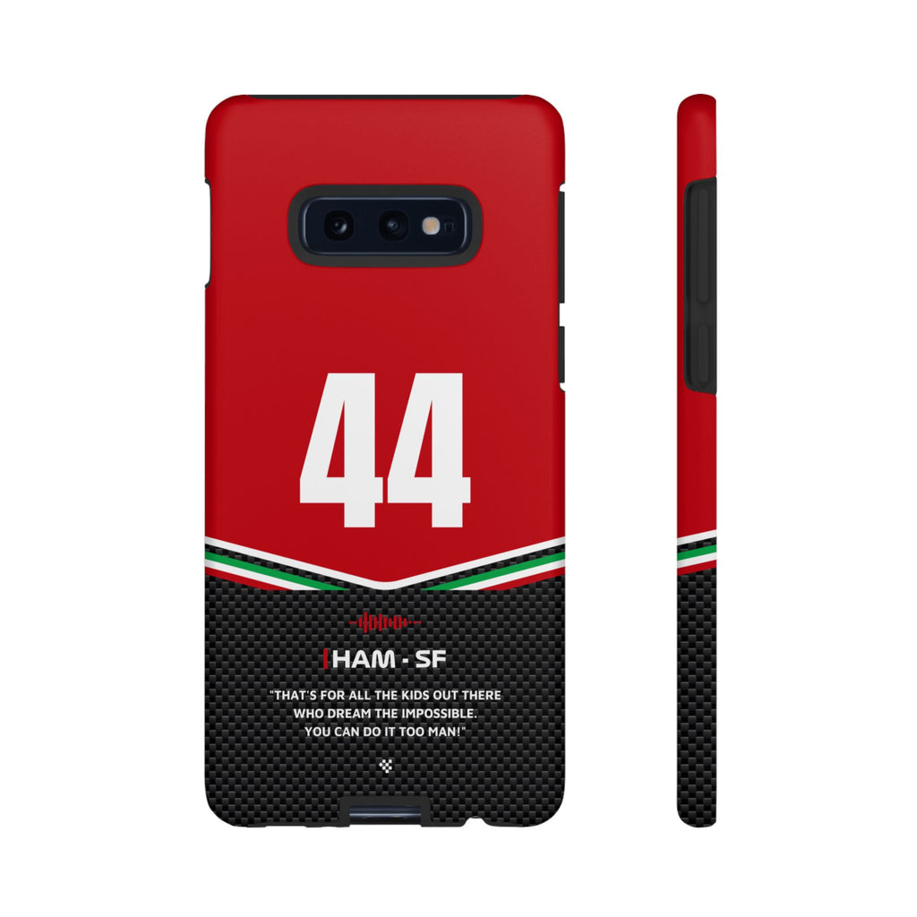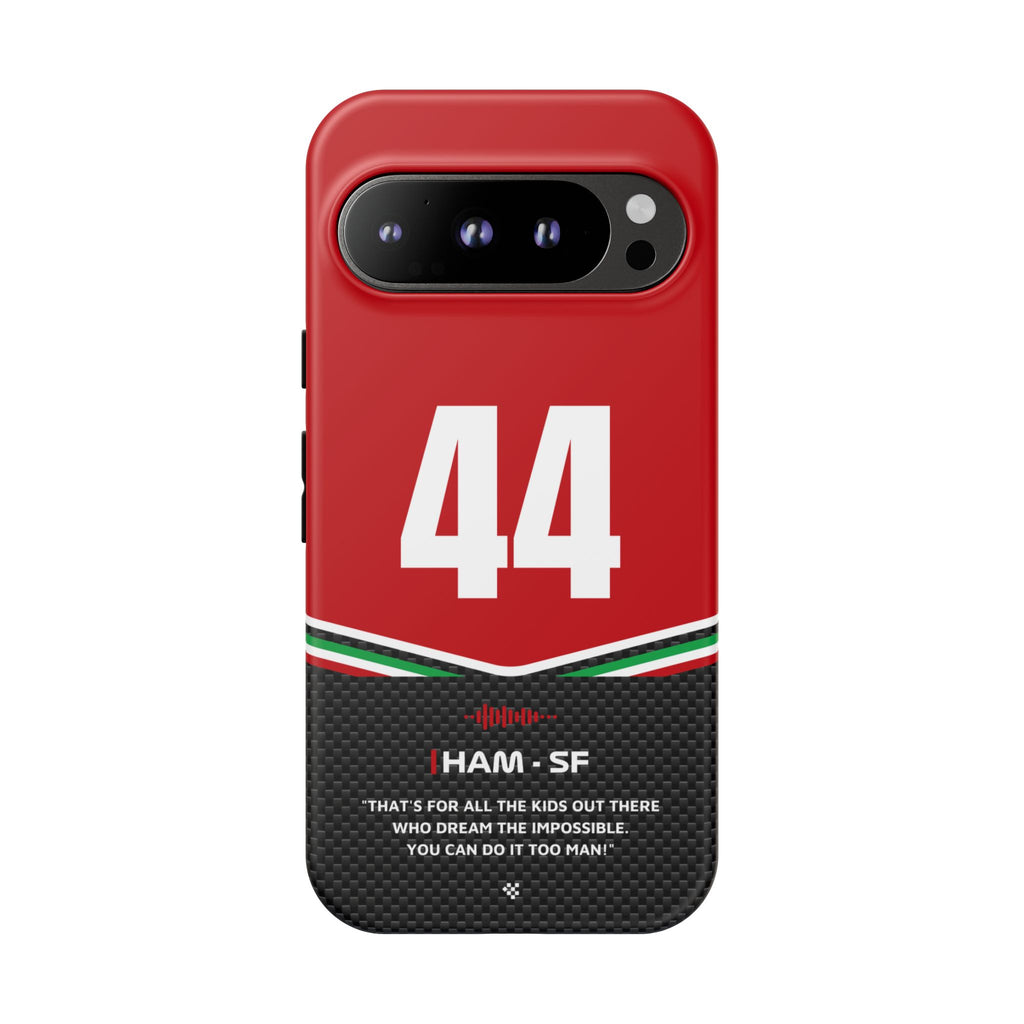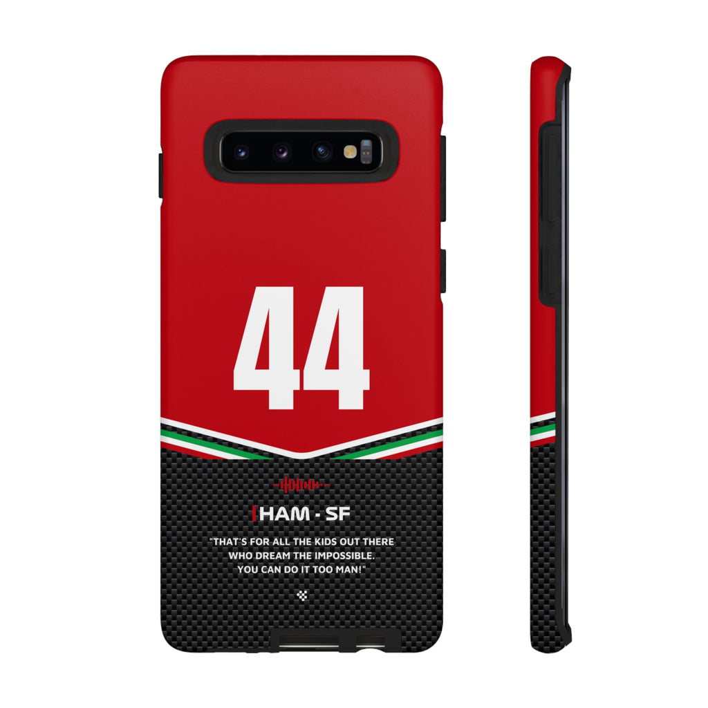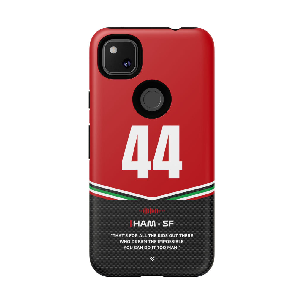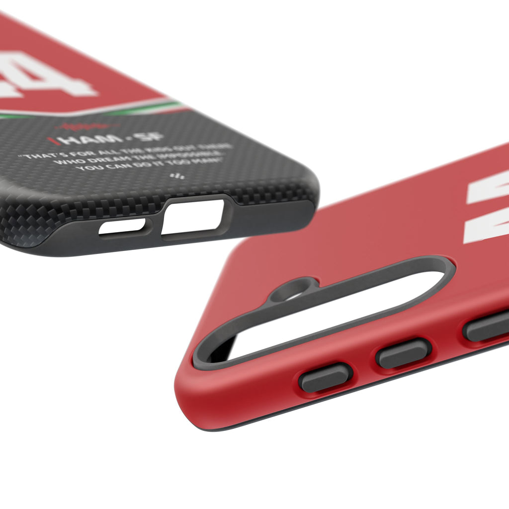 Support your favorite F1 driver with the exclusive Lewis Hamilton F1 2025 Team Phone Case. It's the perfect accessory for every passionate Formula 1 and Hamilton fan. Featuring Lewis's iconic #44 race number and the bold 2025 Scuderia Ferrari team colors, this red phone case brings racing energy straight to your hand.