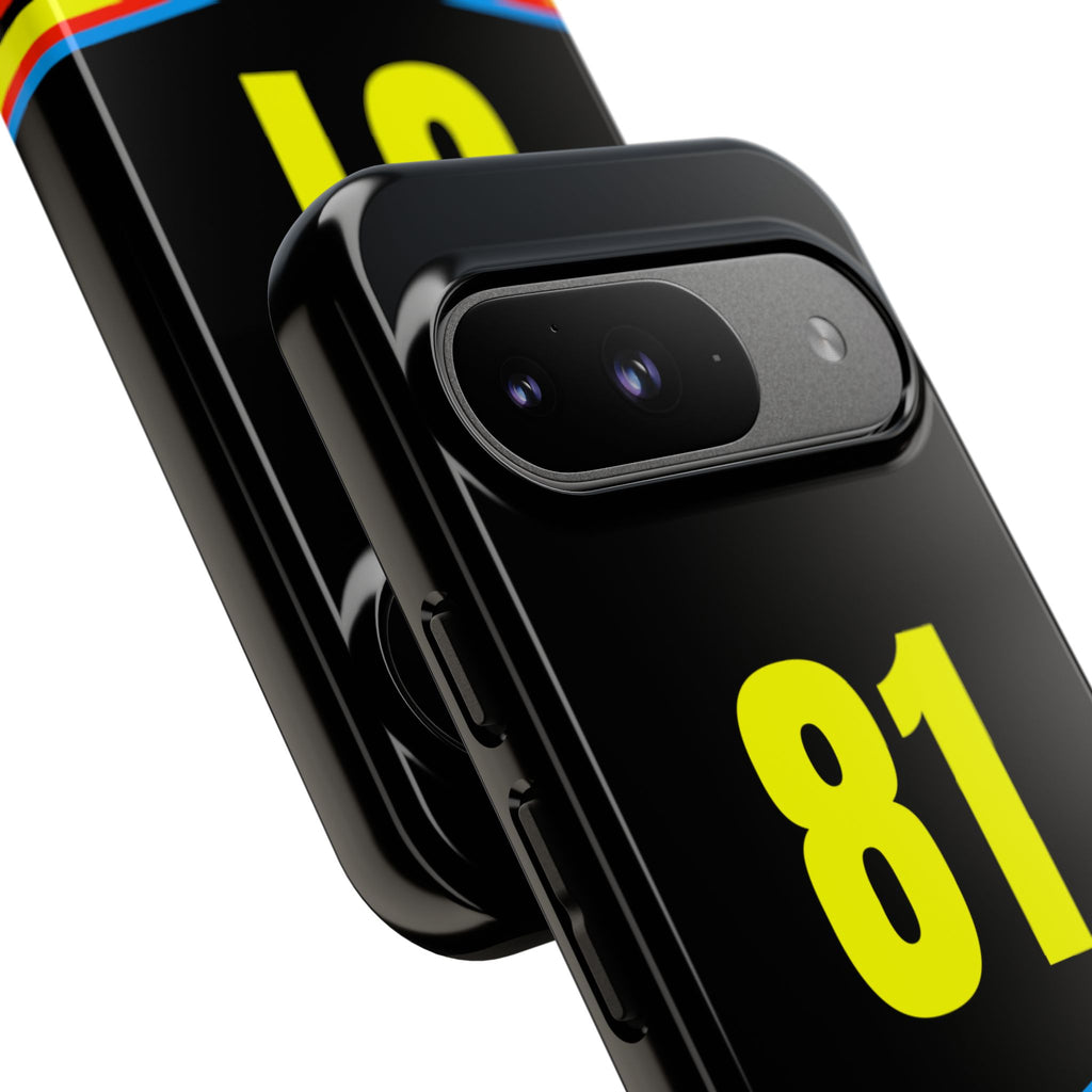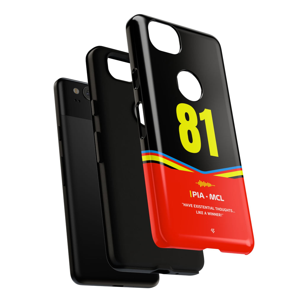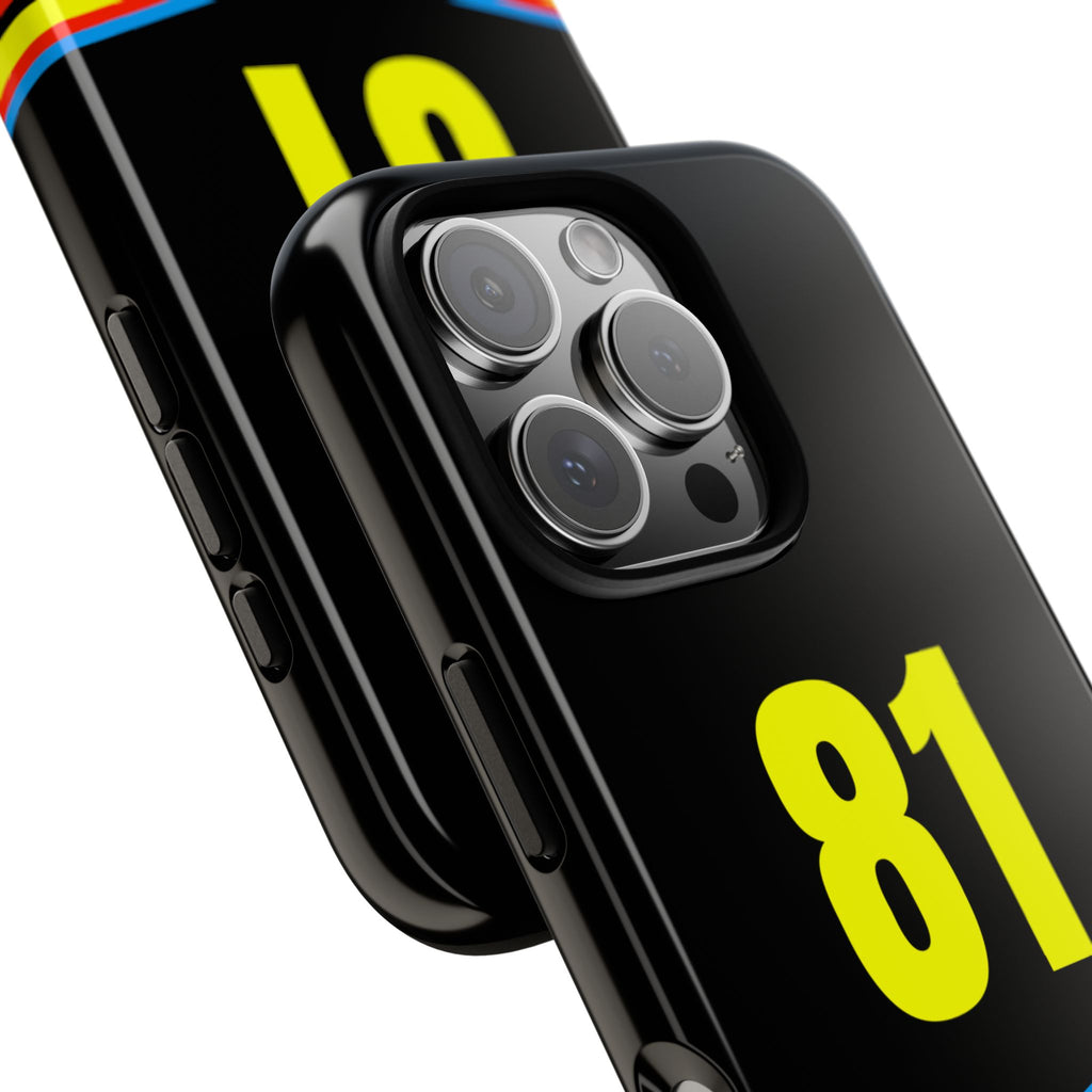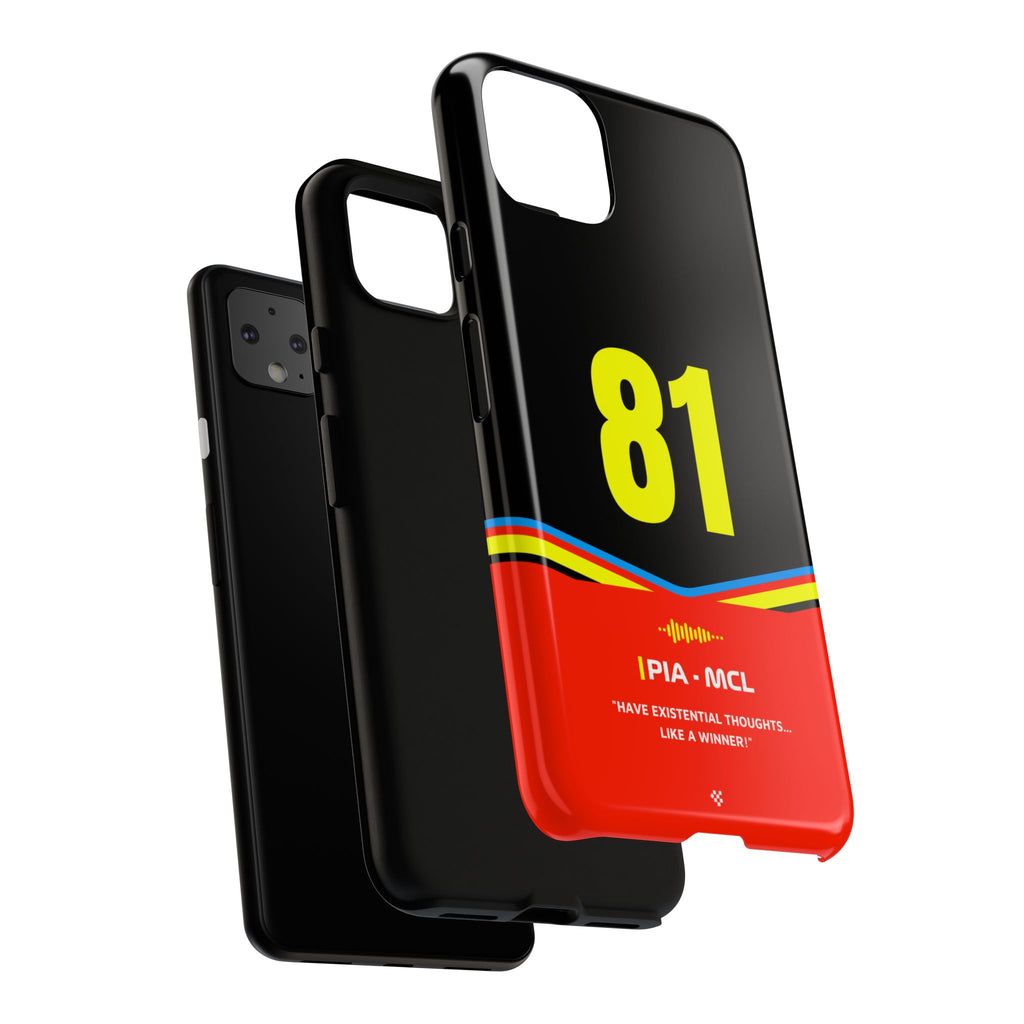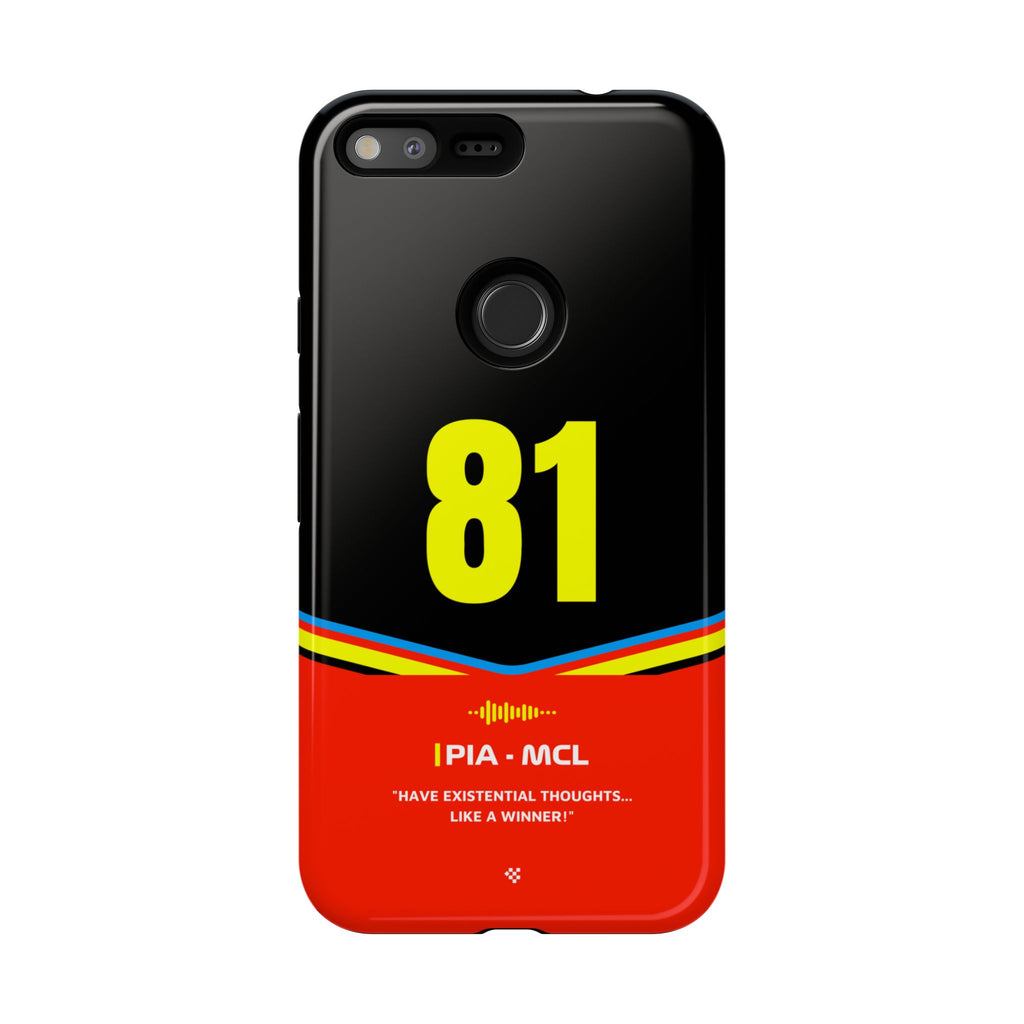 Support your favorite F1 driver with the exclusive Oscar Piastri F1 2025 Helmet Phone Case. It's the perfect accessory for every passionate Formula 1 and Piastri fan. Featuring Oscar's iconic #81 race number and his bold 2025 helmet colors, this black phone case brings racing energy straight to your hand.
