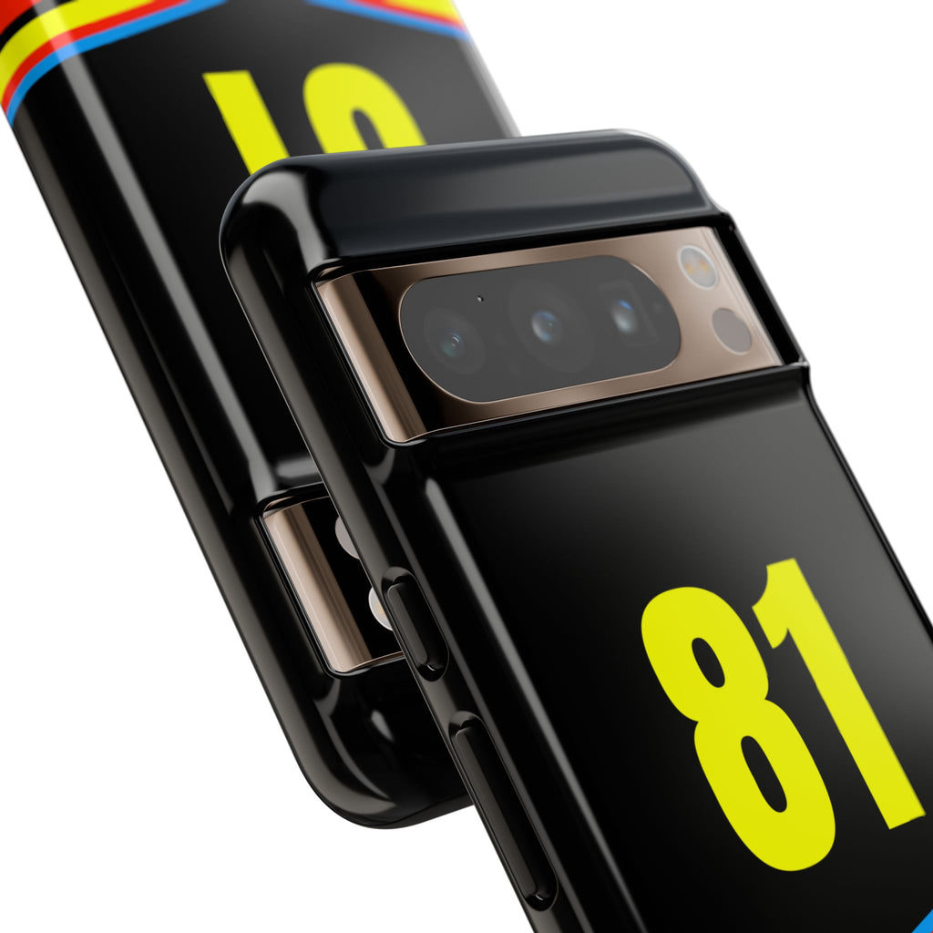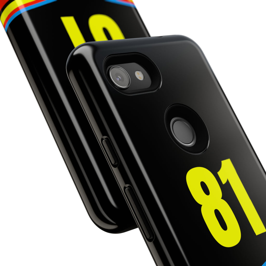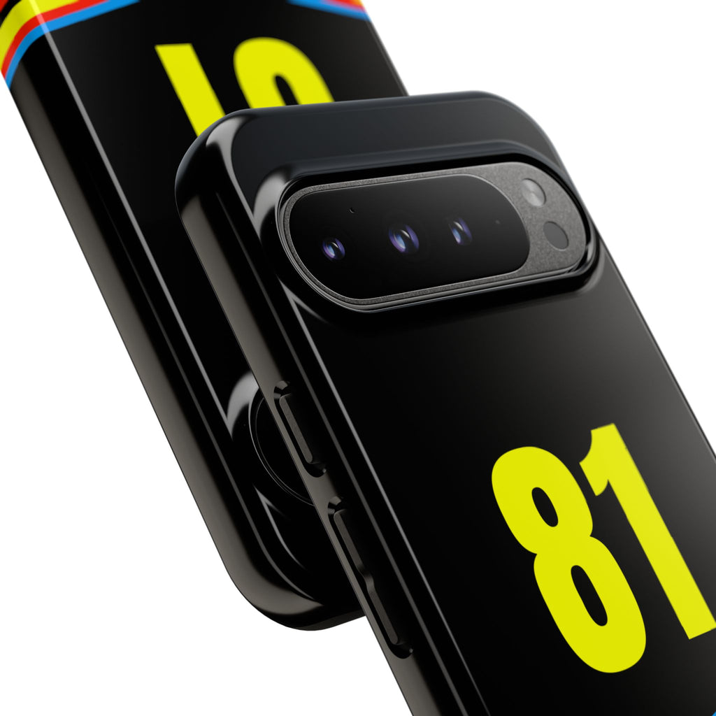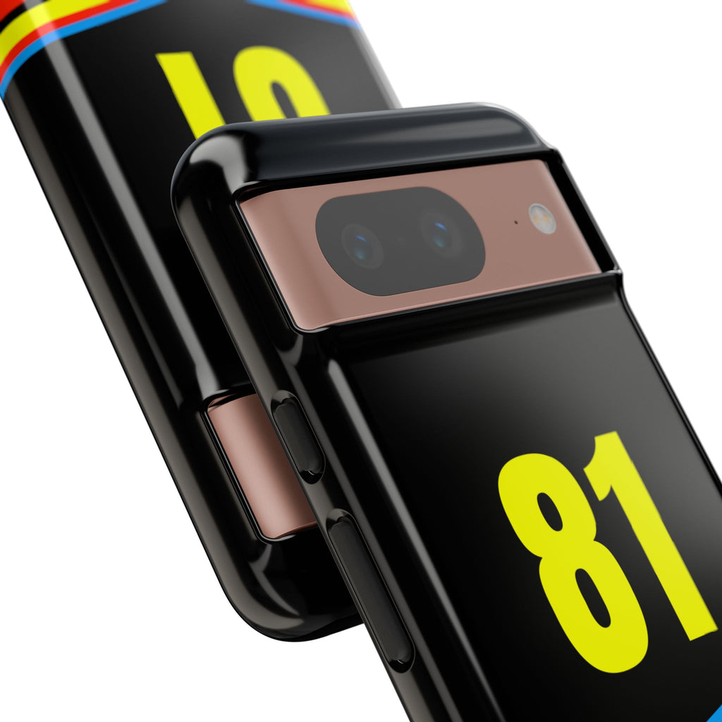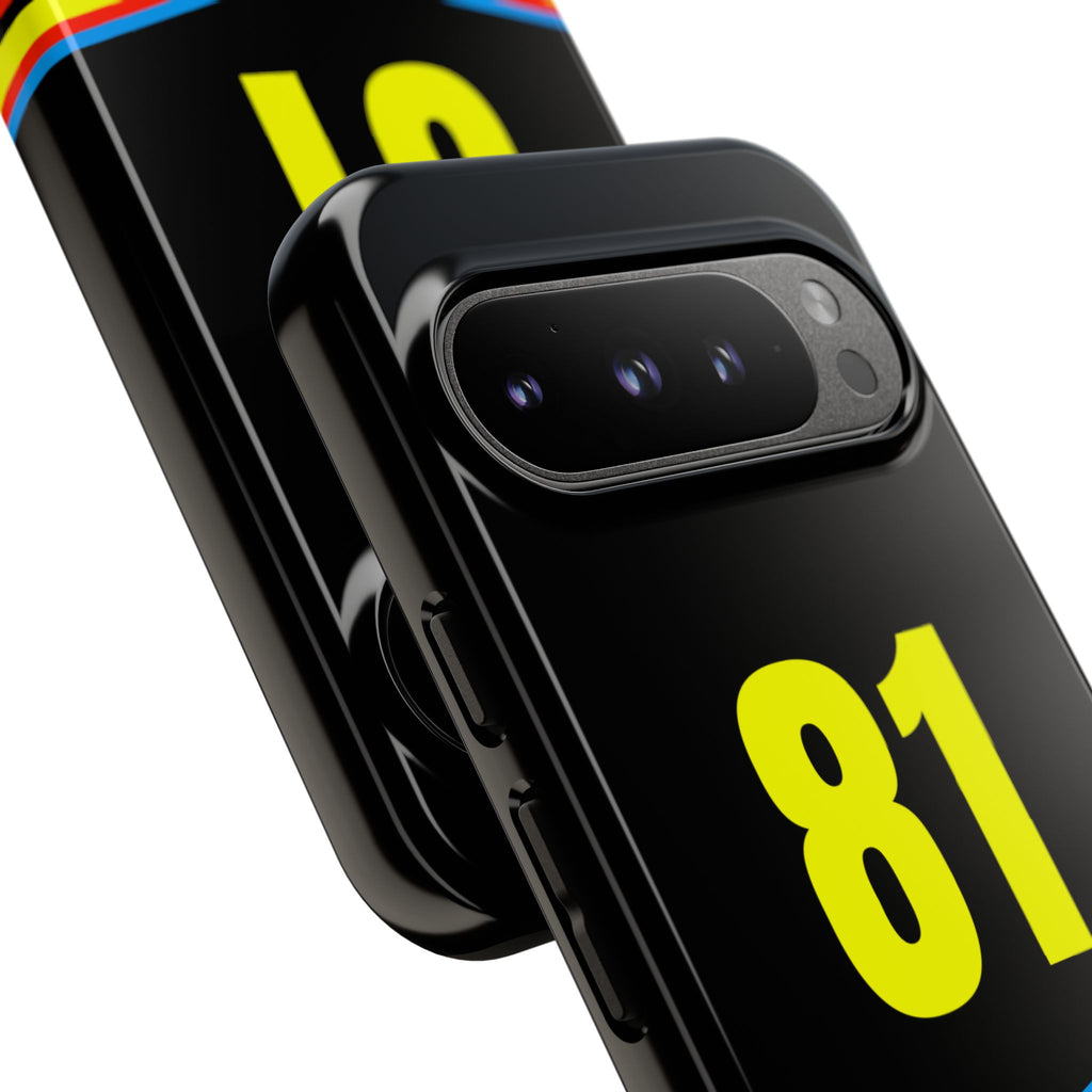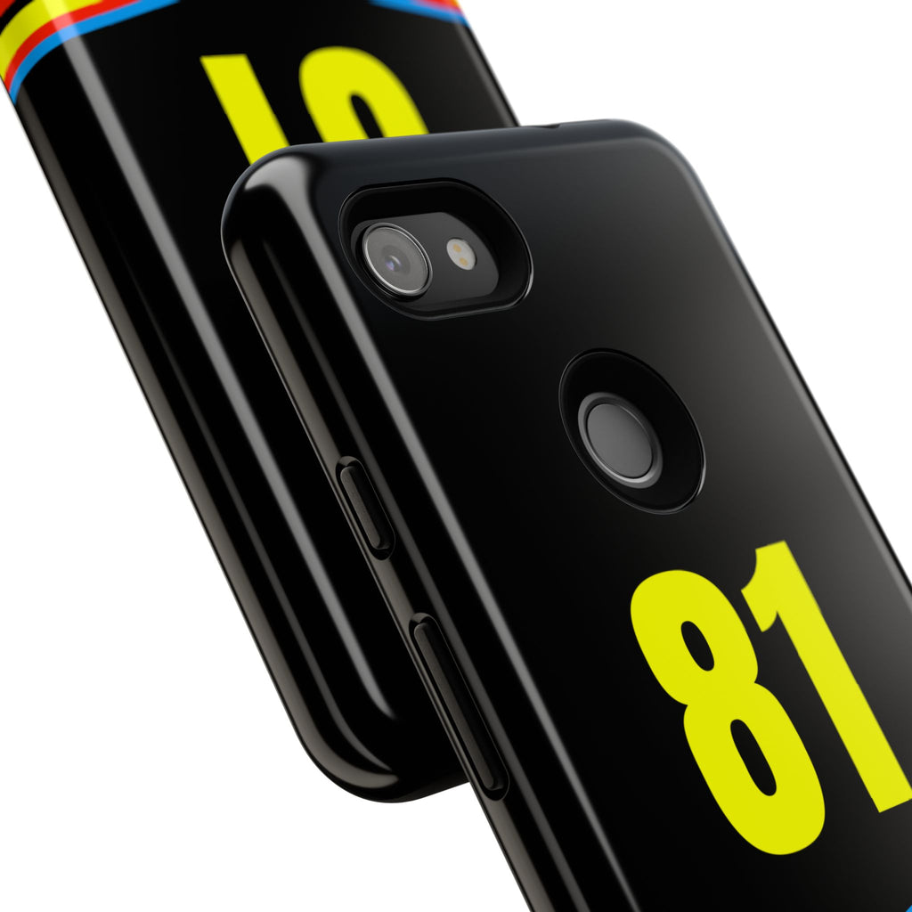 Support your favorite F1 driver with the exclusive Oscar Piastri F1 2025 Helmet Phone Case. It's the perfect accessory for every passionate Formula 1 and Piastri fan. Featuring Oscar's iconic #81 race number and his bold 2025 helmet colors, this black phone case brings racing energy straight to your hand.